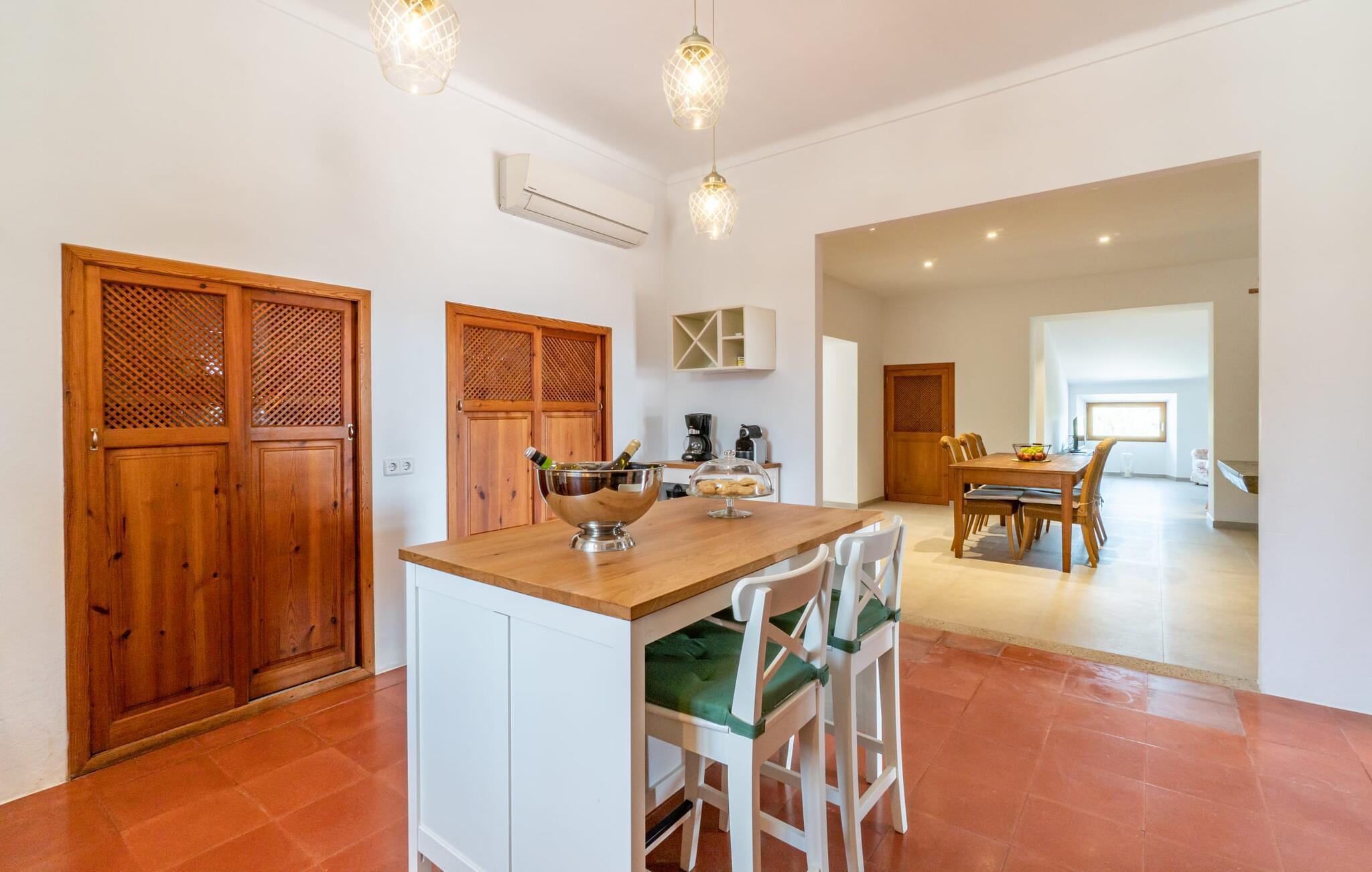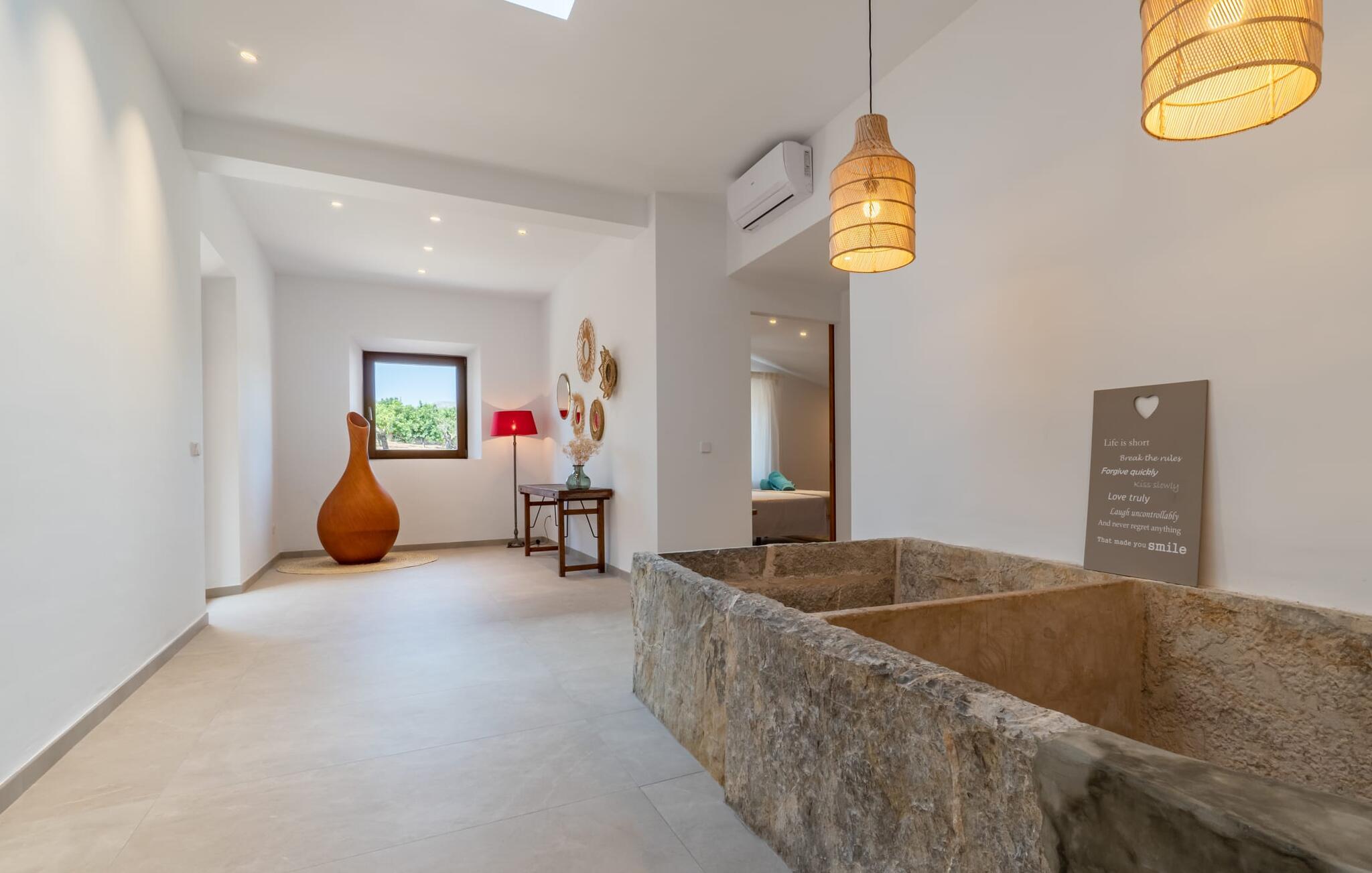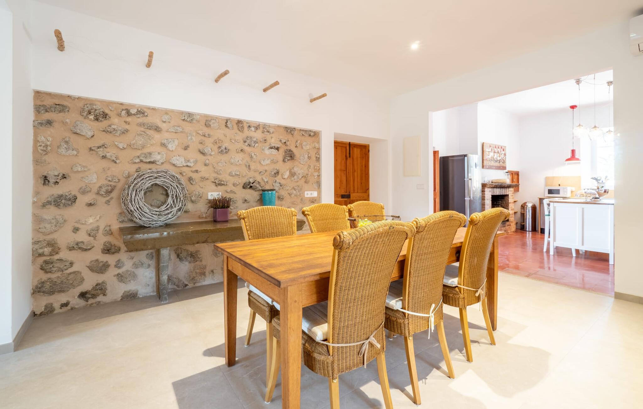 Stuehuset "Son Caminals", i en fantastisk landlig beliggenhed, repræsenterer vores portefølje på den bedst mulige måde. Udover det restaurerede sommerhus bidrager den enorme grund i landlig idyl med æsler, får og høns også til en førsteklasses feriefølelse. Ejendommen rækker ud over øjet og giver jer fordelen af en helt ugenert beliggenhed med landligt præg. Generøsiteten afspejles også i områdets indretning – der er simpelthen utroligt meget plads. Det gør ikke noget, at poolområdet kun ligger få meter fra hovedhuset og kan nås via den majestætiske trappe. Der finder I en hudvenlig swimmingpool med et område til solbadning og solterrasse. Der er også et overdækket område, hvorunder I kan nyde en vidunderlig udsigt over vores elskede bakkelandskaber, der er grønne hele året rundt. Da der også er et hyggeligt udekøkken med gasgrill, kan I nyde at tilbringe tid i naturen på alle tidspunkter af dagen. Stuehuset er også en drøm til familiefester eller en gruppe venner. Valget af adskillige attraktive siddepladser - et andet kan findes på poolniveau under den bambusbeklædte tello - gør dette inspirerende feriehus endnu mere attraktivt. Flyder I op til sommerhusniveau, finder I flere smukke udsigtspunkter - overdækkede eller åbne, men altid med et premium panorama. De to udendørs toiletter, adskilt efter køn, runder det ubekymrede liv udenfor. Et smukt renoveret landsted med et generøst designet boligareal på 500 m² venter på jer. Det traditionelle hus kan lejes hele året rundt, hvilket er yderst attraktivt prissat selv i de milde efterårs- og vintermåneder. Huset har ikke kun to pejse, men holdes også på en behagelig temperatur hele tiden af det varme-kolde klimaanlæg. I vil opleve den mest moderne komfort og en vellykket rumindretning med en stort set åben planløsning. Dette er pakket i en inspirerende blanding af puristisk, klar landstedsstil mellem tradition og boheme. Synlige stenbrud, terracotta og industrielt udseende gulvbelægninger, masser af træ og stilfuldt tilbageholdte dekorative genstande forstærker effekten. Dette er behageligt reduceret og forkæler også æstetik. I sover på i alt tre niveauer. Tre soveværelser er placeret i stueetagen, det fjerde ovenpå sammen med en anden lounge stue; To loftsstudier med en hyggelig beliggenhed på en bjergskråning bekræfter den høje kvalitet. Derudover har alle seks soveværelser enten et en-suite badeværelse eller et direkte brusekabine eller badekar. Vores konklusion: "Son Caminals" svarer til perfektion i et mallorcansk feriehus. Det bliver ikke bedre! Det storslåede bondehus "Son Caminals" er en renoveret ejendom beliggende på de bølgende bakker omkring Artà. Fra det glimrende indrettede feriehus i en behagelig rolig beliggenhed kommer I hurtigt til middelalderlandsbyen, der byder på indkøb i gågaden, på det populære tirsdagsmarked samt gode restauranter og lokale caféer. På kun 12 minutter i bil kan I nå Alcúdia-bugten, som byder på 16 km strande, herunder Son Serra de Marina og Colònia de Sant Pere.
