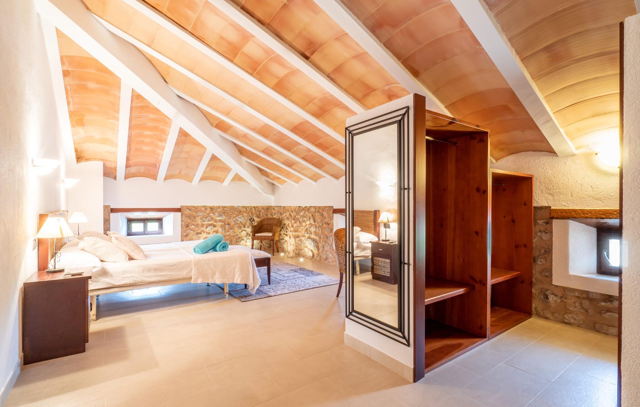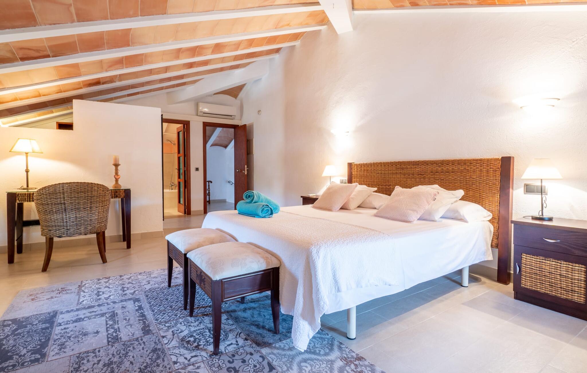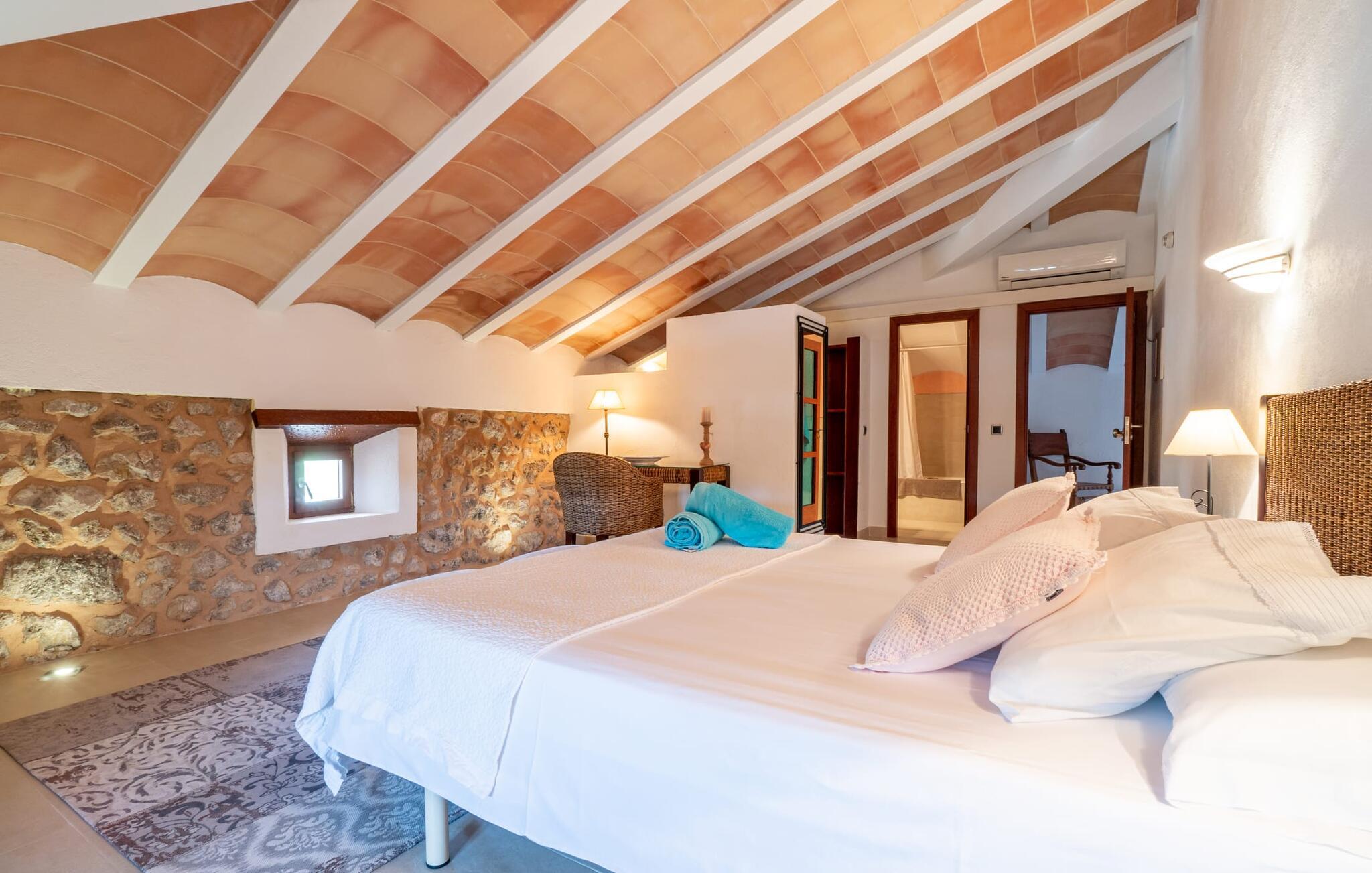 Stuehuset "Son Caminals", i en fantastisk landlig beliggenhed, repræsenterer vores portefølje på den bedst mulige måde. Udover det restaurerede sommerhus bidrager den enorme grund i landlig idyl med æsler, får og høns også til en førsteklasses feriefølelse. Ejendommen rækker ud over øjet og giver jer fordelen af en helt ugenert beliggenhed med landligt præg. Generøsiteten afspejles også i områdets indretning – der er simpelthen utroligt meget plads. Det gør ikke noget, at poolområdet kun ligger få meter fra hovedhuset og kan nås via den majestætiske trappe. Der finder I en hudvenlig swimmingpool med et område til solbadning og solterrasse. Der er også et overdækket område, hvorunder I kan nyde en vidunderlig udsigt over vores elskede bakkelandskaber, der er grønne hele året rundt. Da der også er et hyggeligt udekøkken med gasgrill, kan I nyde at tilbringe tid i naturen på alle tidspunkter af dagen. Stuehuset er også en drøm til familiefester eller en gruppe venner. Valget af adskillige attraktive siddepladser - et andet kan findes på poolniveau under den bambusbeklædte tello - gør dette inspirerende feriehus endnu mere attraktivt. Flyder I op til sommerhusniveau, finder I flere smukke udsigtspunkter - overdækkede eller åbne, men altid med et premium panorama. De to udendørs toiletter, adskilt efter køn, runder det ubekymrede liv udenfor. Et smukt renoveret landsted med et generøst designet boligareal på 500 m² venter på jer. Det traditionelle hus kan lejes hele året rundt, hvilket er yderst attraktivt prissat selv i de milde efterårs- og vintermåneder. Huset har ikke kun to pejse, men holdes også på en behagelig temperatur hele tiden af det varme-kolde klimaanlæg. I vil opleve den mest moderne komfort og en vellykket rumindretning med en stort set åben planløsning. Dette er pakket i en inspirerende blanding af puristisk, klar landstedsstil mellem tradition og boheme. Synlige stenbrud, terracotta og industrielt udseende gulvbelægninger, masser af træ og stilfuldt tilbageholdte dekorative genstande forstærker effekten. Dette er behageligt reduceret og forkæler også æstetik. I sover på i alt tre niveauer. Tre soveværelser er placeret i stueetagen, det fjerde ovenpå sammen med en anden lounge stue; To loftsstudier med en hyggelig beliggenhed på en bjergskråning bekræfter den høje kvalitet. Derudover har alle seks soveværelser enten et en-suite badeværelse eller et direkte brusekabine eller badekar. Vores konklusion: "Son Caminals" svarer til perfektion i et mallorcansk feriehus. Det bliver ikke bedre! Det storslåede bondehus "Son Caminals" er en renoveret ejendom beliggende på de bølgende bakker omkring Artà. Fra det glimrende indrettede feriehus i en behagelig rolig beliggenhed kommer I hurtigt til middelalderlandsbyen, der byder på indkøb i gågaden, på det populære tirsdagsmarked samt gode restauranter og lokale caféer. På kun 12 minutter i bil kan I nå Alcúdia-bugten, som byder på 16 km strande, herunder Son Serra de Marina og Colònia de Sant Pere.