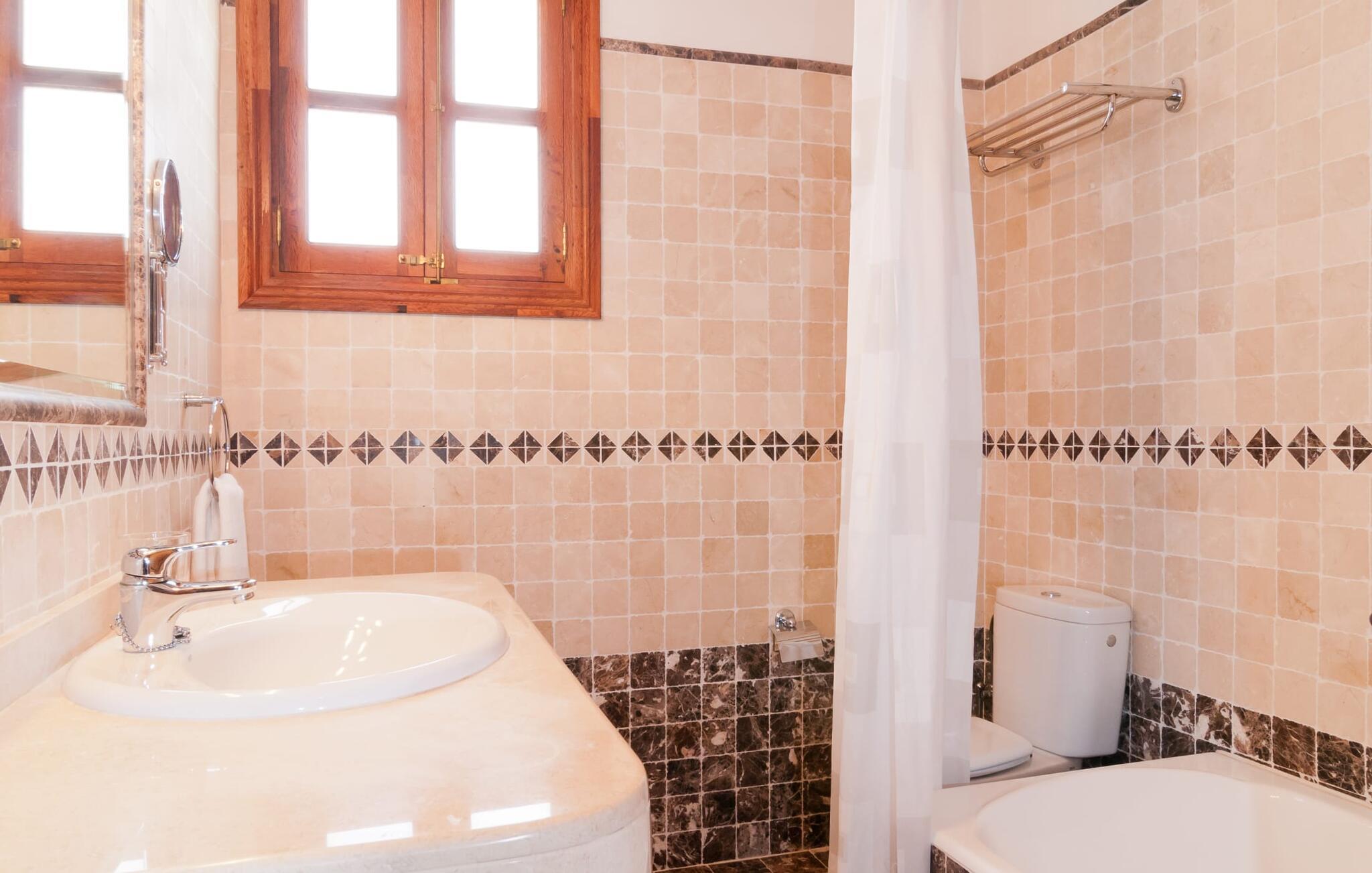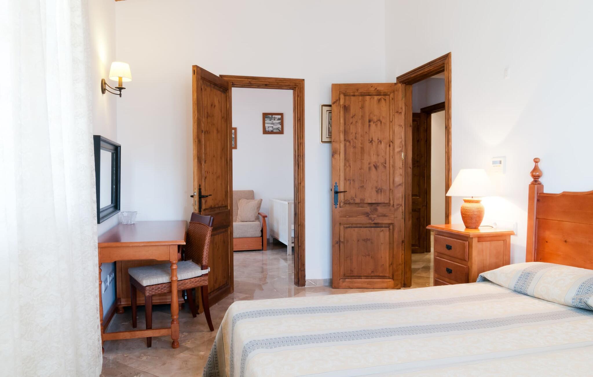 Indenfor kombinerer villaen smagfuld indretning med traditionelle bjælkelofter, marmorgulve og værelser med aircondition. Den rummelige opholdsstue har et fladskærms-tv, og det fuldt udstyrede køkken har alt, hvad I behøver for at lave mad derhjemme. Der er fem dobbeltværelser, hver med eget badeværelse, hvilket gør det perfekt til store grupper eller familier.
