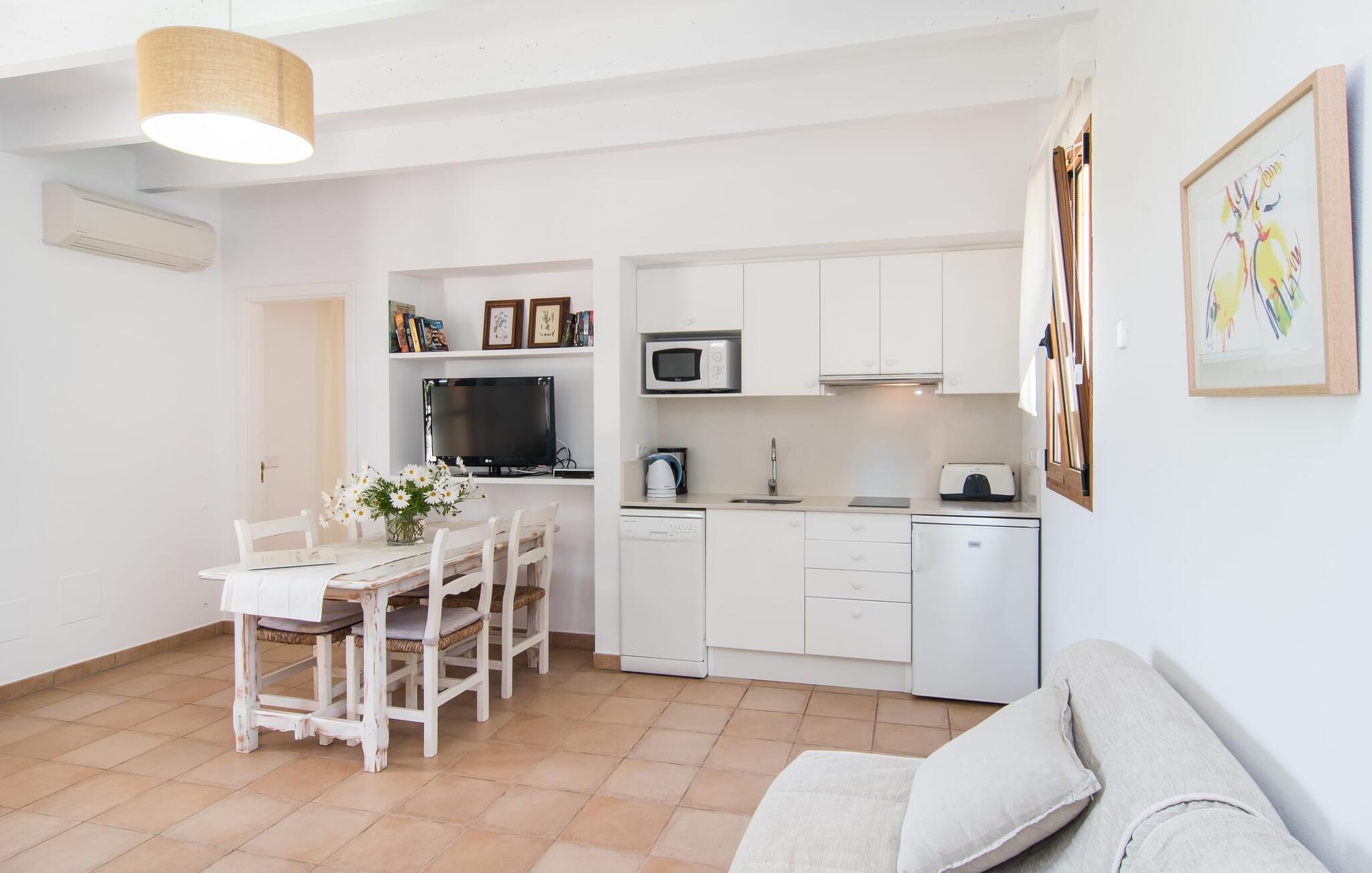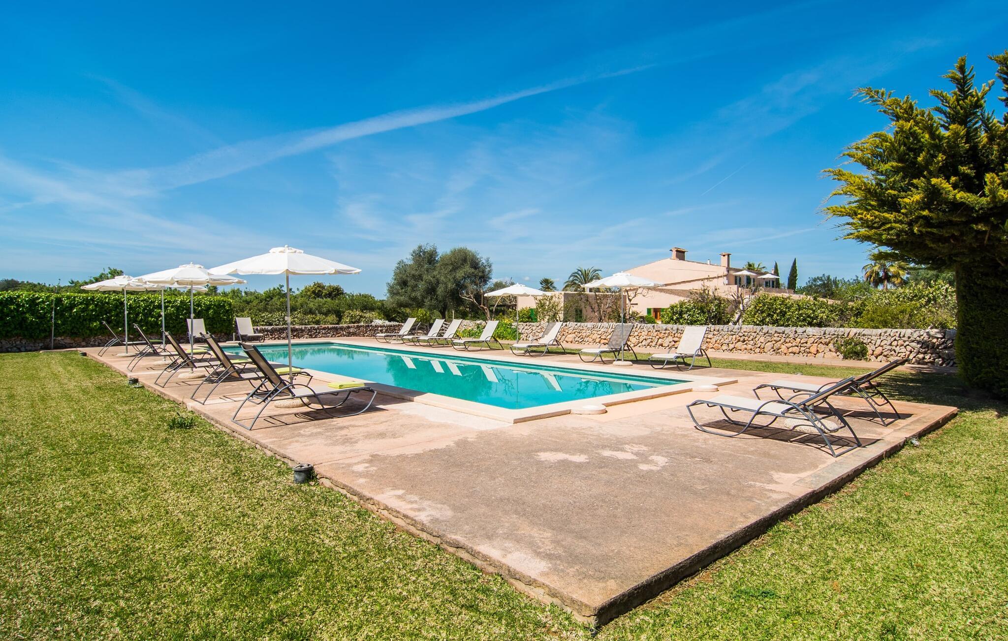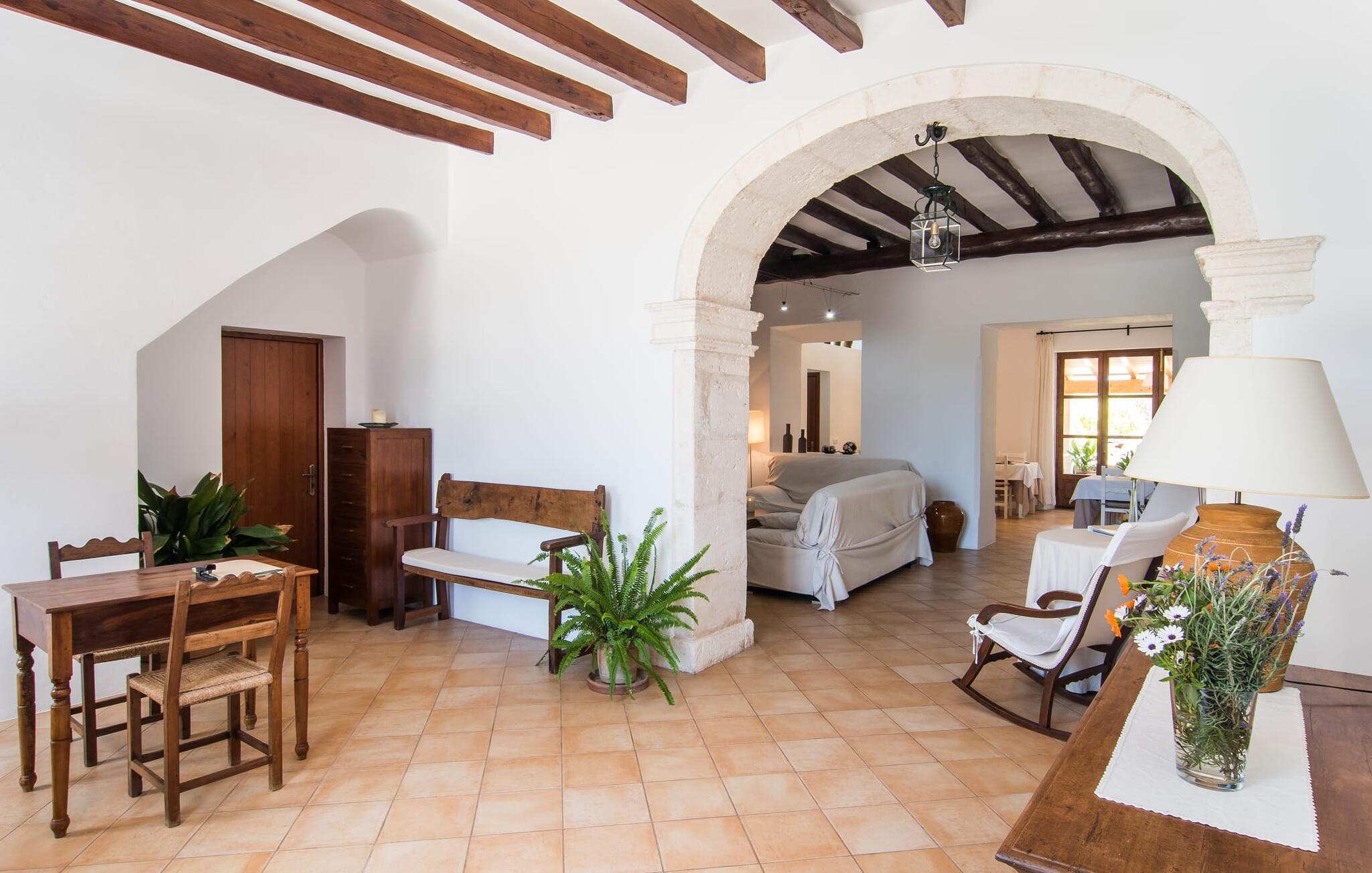 Så meget charme! Når bougainvilleaerne blomstrer, ser det over 200 år gamle hovedhus "Son Capellot" bogstaveligt talt ud til at gløde. Denne renoverede landejendom har mere end 200.000 m² jord og fem ferielejligheder, hver med et til to soveværelser - det er den perfekte feriedestination for landbrugsturisme for ren fred og afslapning! Når I går mellem de duftende æble-, citron-, oliven- og mandeltræer og ser fåreflokkene græsse i nærheden, har I naturligvis en tendens til at sætte farten ned og lade batterierne op. En vidunderlig 16 m lang pool - beskyttet af en børnebeskyttelseslåge - er som jeres eget lille hav lige foran hoveddøren, liggestole under parasoller er gratis til rådighed for alle gæster. Borde og stole på den delvist overdækkede fællesterrasse, nicher og hjørner dekoreret med blomster og den indendørs lounge med tilhørende morgenmadslokale (til kølige dage) giver rig mulighed for at sludre med andre gæster, slappe af osv. Krøll op med en god bog eller jeres yogamåtte tilbage i naturen. Og vil I efterlade jeres lejebil på ejendommen, er det kun 10 minutters cykeltur eller en halv times gåtur ind til byen, hvor I finder flere hyggelige caféer at besøge. Der er fem nyrenoverede, moderne ferielejligheder i forskellige størrelser at vælge imellem på pladsen: "Son Capellot Tres", et feriehus til to personer i stueetagen, har egen overdækket terrasse og udsigt over landskabet. Hvide vægge og hvide møbler skaber en lys, frisk og klar atmosfære på 40 m². Udover et hemslignende soveværelse - med dobbeltseng bestående af to madrasser på 0,90 x 2,00 m - og åben stue, er der også indrettet køkken med komfur, køleskab og mikroovn samt badeværelse med bruser. . I kan nemt tilberede mindre måltider selv eller bruge den fælles grill. De nærmeste restauranter er heller ikke langt væk. Lejligheden er naturligvis udstyret med aircondition og radiatorer, så I er forberedt på alt vejr i sæsonen fra april til oktober. Den lille by Felanitx har en af de ældste kirker på Mallorca og er et godt sted for en rolig ferie, men alligevel så centralt beliggende, at mange attraktive destinationer er inden for rækkevidde: fiskerbyen Portocolom og den børnevenlige sandstrand i Cala Marçal og stranden Platja de S'Arenal, det "Mallorcanske Toscana" omkring Santanyí og Cas Concos des Cavaller, Mondragó Naturpark, den smukke by Campos og Manacor, en by kendt for sine perler. Uanset om det er til fods, på cykel eller i bil - her er det utrolig nemt at komme rundt. Selve Felanitx er en by kendt for sine vine og vinmarker - efter en spadseretur gennem de smalle gader, anbefaler vi klart en vinsmagning i en af bodegaerne. To storslåede strukturer rejser sig mellem toppene af de omkringliggende bakker og tilbyder en spektakulær udsigt: det klippeudskårne Castell de Santueri og Santuari de Sant Salvador. Og strande som Es Trenc (25 km), Cala Sa Nau eller Cala Mitjana (begge 16 km) er bestemt et besøg værd! Idyllisk agriturisme oase af fred fra april til oktober: Lad jer fortrylle af fem separate ferielejligheder (med morgenmad) på den 200 år gamle "Son Capellot" ejendom. Frodige haver og frugtplantager, en lang, rektangulær fælles pool og den charmerende lille vinby Felanitx med butikker og et ugentligt marked - alt hvad I behøver for en helt afslappende ferie på landet. Her venter nogle af de smukkeste strande på øst- og sydkysten samt cykelture gennem vindmølleregionen.