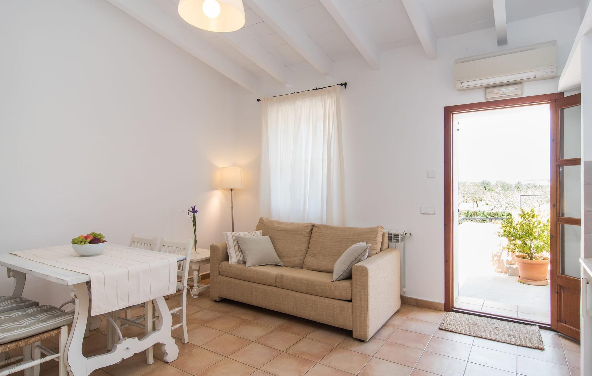 Så meget charme! Når bougainvilleaerne blomstrer, ser det over 200 år gamle hovedhus i "Son Cappelot" bogstaveligt talt ud til at gløde. Denne renoverede landejendom har mere end 200.000 m² jord og fem ferielejligheder, hver med et til to soveværelser - det er den perfekte feriedestination for landbrugsturisme for ren fred og afslapning! Når I går mellem de duftende æble-, citron-, oliven- og mandeltræer og ser fåreflokkene græsse i nærheden, har I naturligvis en tendens til at sætte farten ned og lade batterierne op. En vidunderlig 16 m lang pool - beskyttet af en børnebeskyttelseslåge - er som jeres eget lille hav lige foran hoveddøren, liggestole under parasoller er gratis til rådighed for alle gæster. Borde og stole på den delvist overdækkede fællesterrasse, nicher og hjørner dekoreret med blomster og den indendørs lounge med tilhørende morgenmadslokale (til kølige dage) giver rig mulighed for at sludre med andre gæster, slappe af osv. Krøll op med en god bog eller jeres yogamåtte tilbage i naturen. Og vil I efterlade jeres lejebil på ejendommen, er det kun 10 minutters cykeltur eller en halv times gåtur ind til byen, hvor I finder flere hyggelige caféer at besøge. Der er fem nyrenoverede, moderne ferielejligheder i forskellige størrelser at vælge imellem på pladsen: “Son Capellot Uno”, et feriehus til fire personer på øverste etage af det mindre hus, er tilgængeligt via sin egen lille terrasse, som byder på en vidunderlig udsigt over haven og poolen hele vejen til bjergene i Tramuntana-bjergene. Hvide vægge og hvide møbler skaber en lys, frisk og klar atmosfære på 80 m². Udover to soveværelser - et med 1,50 x 2 m dobbeltseng, et med to enkeltsenge - og en åben stue, er der separat minikøkken med komfur, køleskab, mikroovn og opvaskemaskine samt badeværelse med brus/bruser/ badekar kombination. I kan nemt tilberede mindre måltider selv eller bruge den fælles grill. De nærmeste restauranter er heller ikke langt væk. Lejligheden er naturligvis udstyret med aircondition og radiatorer, så I er forberedt på alt vejr i sæsonen fra april til oktober. Den lille by Felanitx har en af de ældste kirker på Mallorca og er et godt sted for en rolig ferie, men alligevel så centralt beliggende, at mange attraktive destinationer er inden for rækkevidde: fiskerbyen Portocolom og den børnevenlige sandstrand i Cala Marçal og stranden Platja de S'Arenal, det "Mallorcanske Toscana" omkring Santanyí og Cas Concos des Cavaller, Mondragó Naturpark, den smukke by Campos og Manacor, en by kendt for sine perler. Uanset om det er til fods, på cykel eller i bil - her er det utrolig nemt at komme rundt. Felanitx i sig selv er en by kendt for sine vine og vinmarker - efter en spadseretur gennem de smalle gader kan vi klart anbefale en vinsmagning i en af bodegaerne. To storslåede strukturer rejser sig mellem toppene af de omkringliggende bakker og tilbyder en spektakulær udsigt: det klippeudskårne Castell de Santueri og Santuari de Sant Salvador. Og strande som Es Trenc (25 km), Cala Sa Nau eller Cala Mitjana (begge 16 km) er bestemt et besøg værd! Idyllisk agriturisme oase af fred fra april til oktober: Lad jer fortrylle af fem separate ferielejligheder (med morgenmad) på den 200 år gamle "Son Capellot" ejendom. Frodige haver og frugtplantager, en lang, rektangulær fælles pool og den charmerende lille vinby Felanitx med butikker og et ugentligt marked - alt hvad I behøver for en helt afslappende ferie på landet. Her venter nogle af de smukkeste strande på øst- og sydkysten samt cykelture gennem vindmølleregionen.