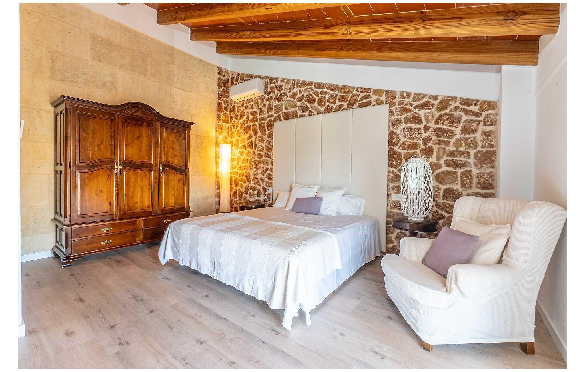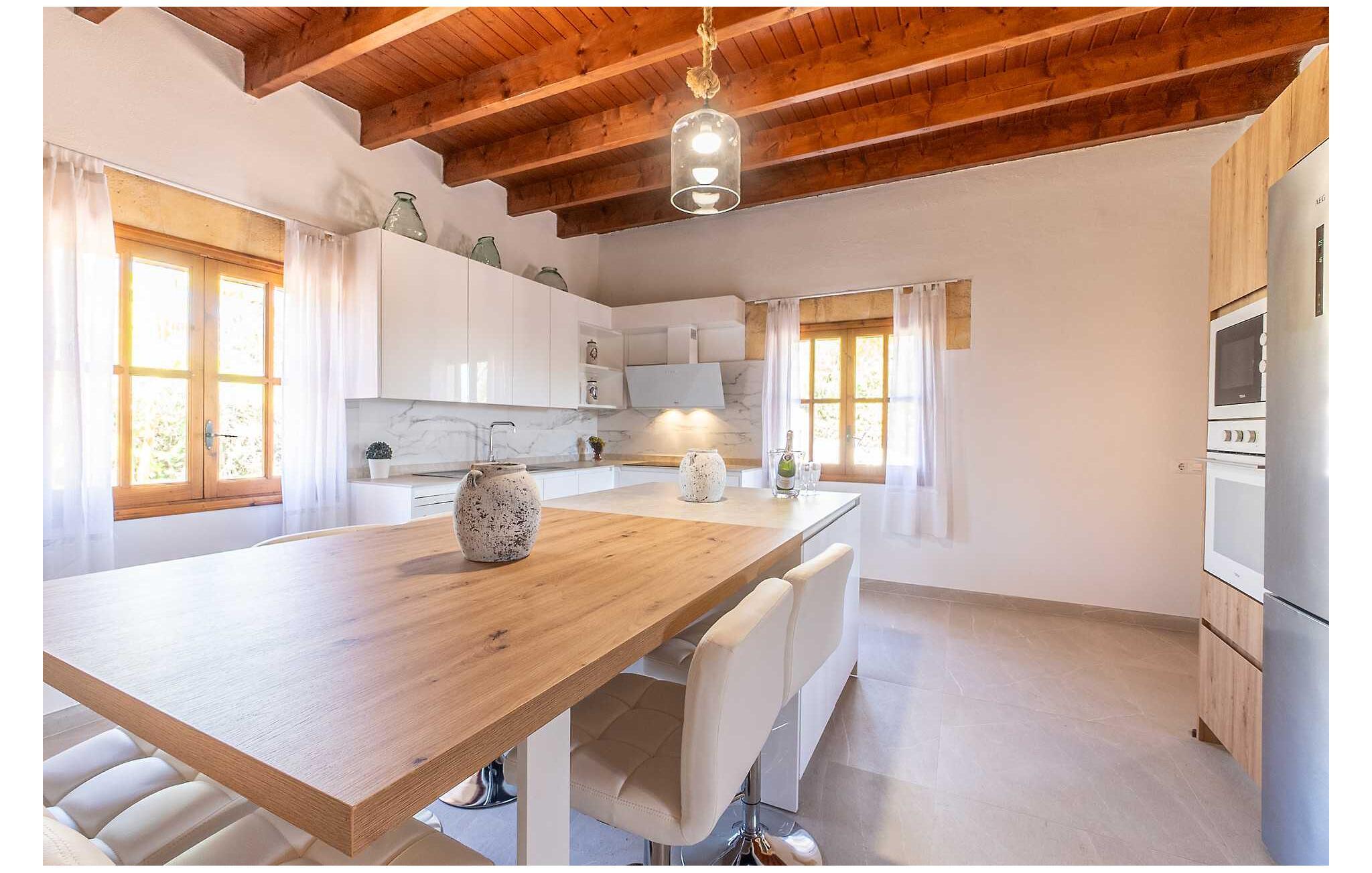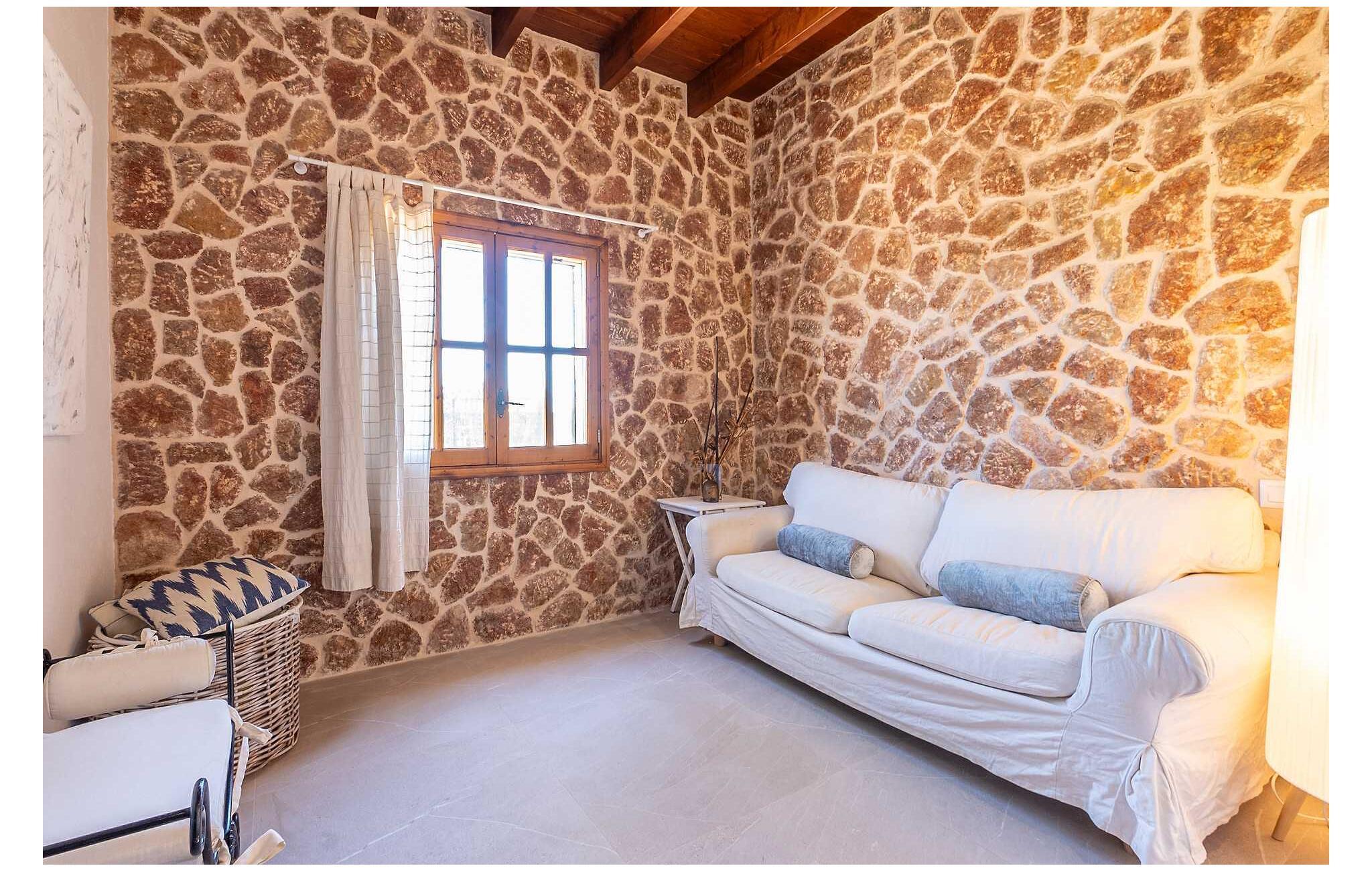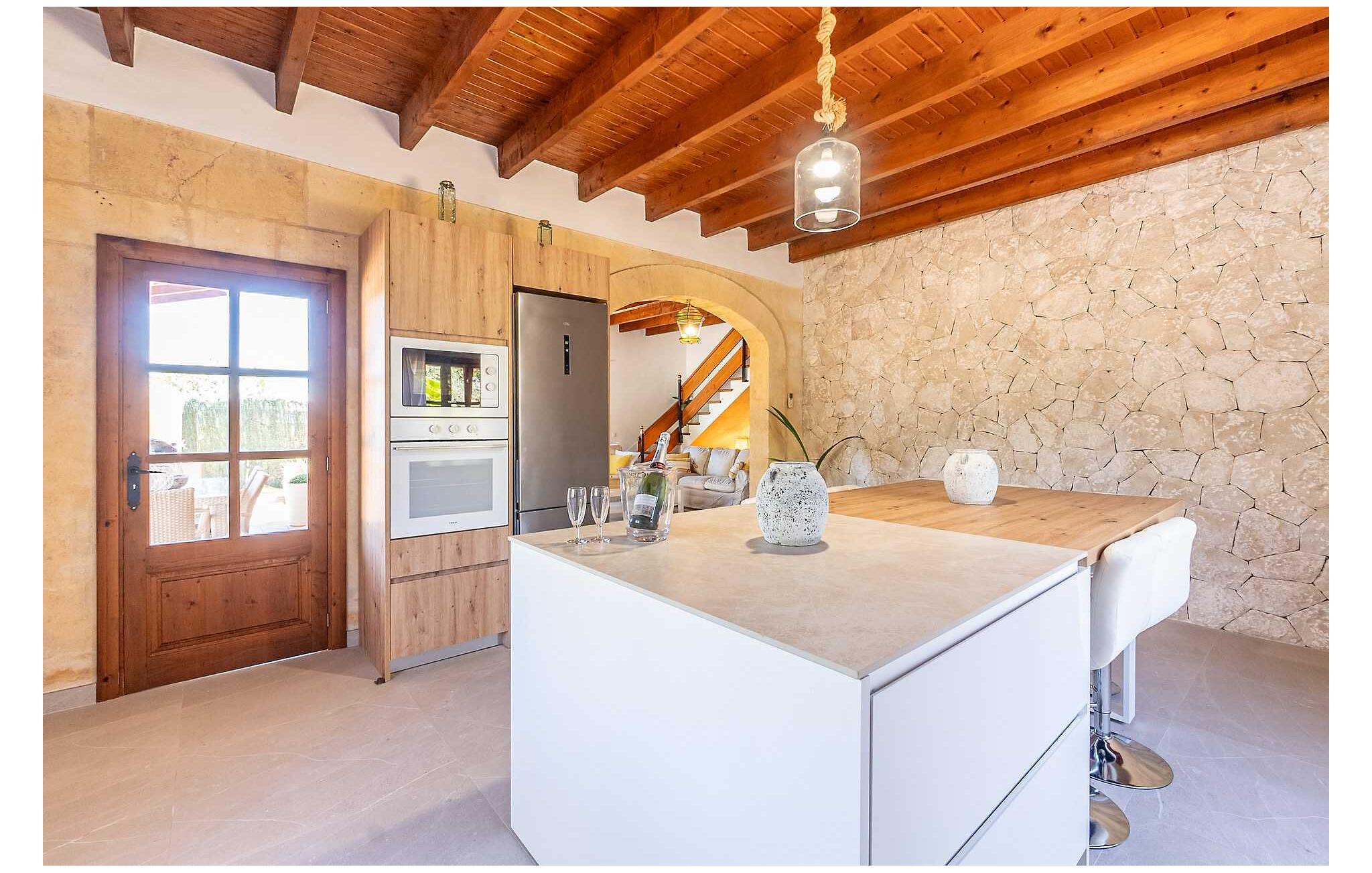 Feriehuset "Son Claret" er en grøn oase på fladt landbrugsområde nær Muro, kun 10 minutter fra sandstranden i Alcúdia-bugten. Ejendommen er helt privat og omgivet af hække og hegn. Poolterrassen har en let skrånende pool med trappeadgang, liggestole og en hyggelig dagseng med høje palmer, der giver skygge. I tilknytning til huset er en skyggefuld spiseplads under en overdækket terrasse med udsigt over poolen. Renoveret i 2024, interiøret omfatter lyse, smagfuldt indrettede værelser. Den åbne planløsning giver nem adgang til terrassen og poolen gennem en glasskydedør. Det rummelige køkken med integreret spiseplads er udstyret med moderne hårde hvidevarer og har egen udgang til det fri. Et badeværelse med bruser fuldender stueetagen. Der er tre komfortable dobbeltværelser på øverste etage; to har ensuite badeværelser og en har en privat balkon. Huset har aircondition og skodder til perfekt mørke. Beliggende omkring 3 km fra Muro og 8 km fra Can Picafort, er "Son Claret" ideel til fjernarbejde, med stabilt internet og god mobilmodtagelse. Den lange sandstrand i Alcúdia-bugten ligger mindre end 10 minutter væk i bil.