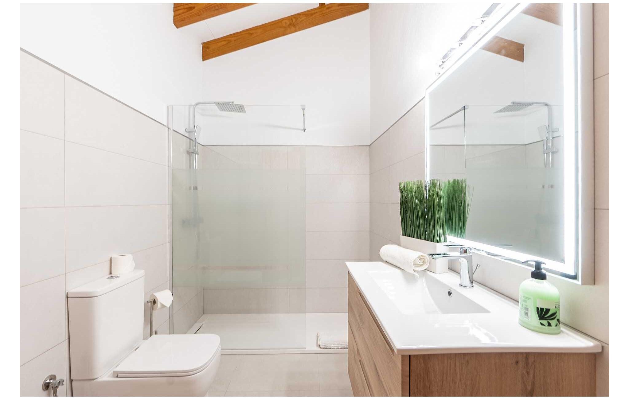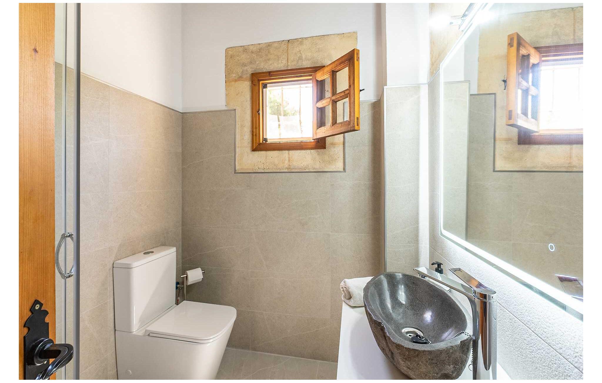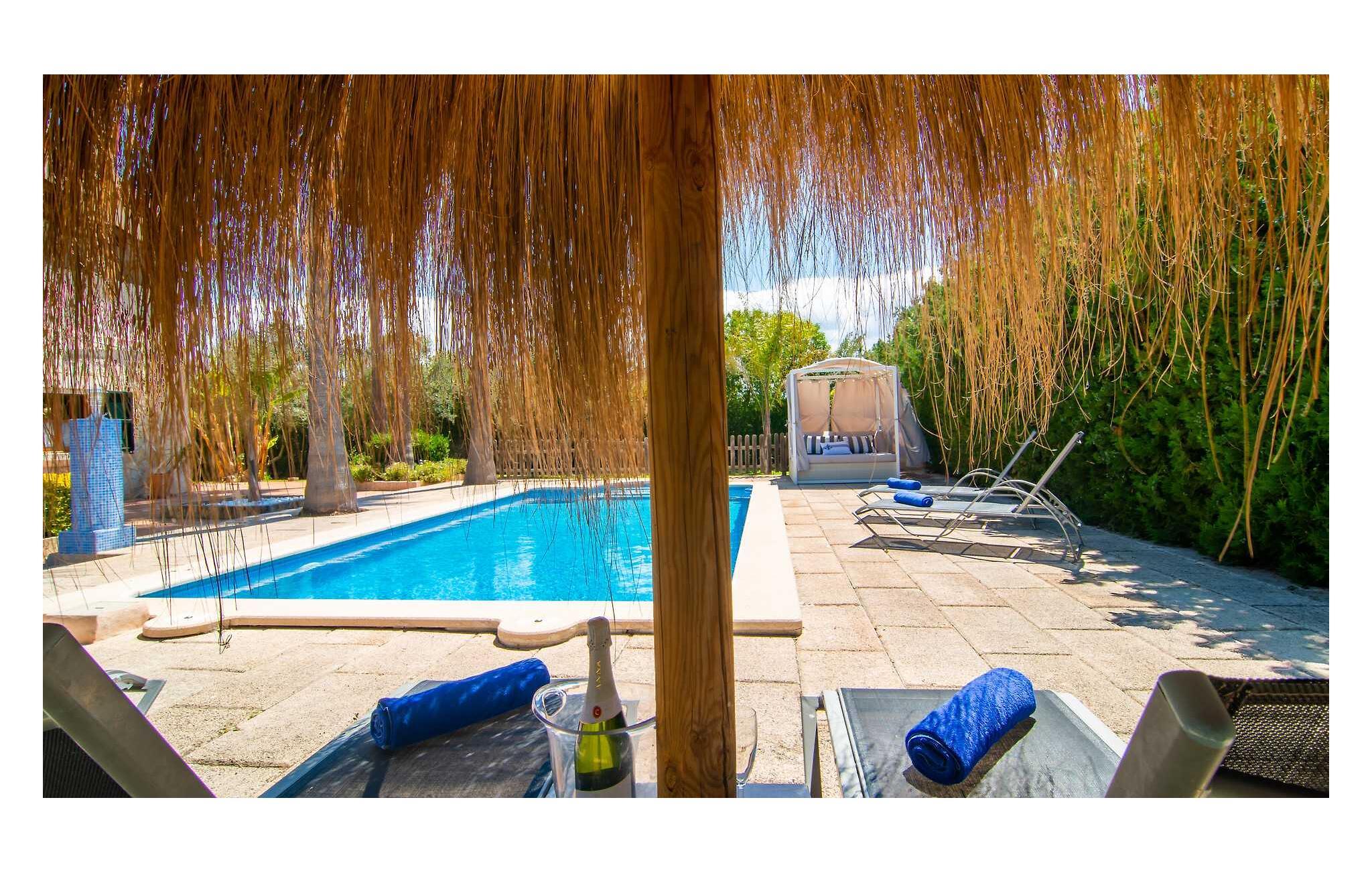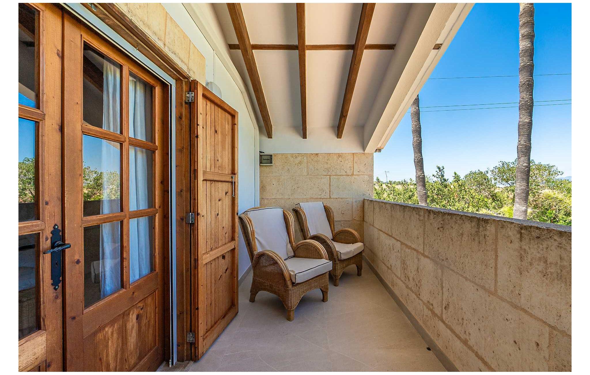 Feriehuset "Son Claret" er en grøn oase på fladt landbrugsområde nær Muro, kun 10 minutter fra sandstranden i Alcúdia-bugten. Ejendommen er helt privat og omgivet af hække og hegn. Poolterrassen har en let skrånende pool med trappeadgang, liggestole og en hyggelig dagseng med høje palmer, der giver skygge. I tilknytning til huset er en skyggefuld spiseplads under en overdækket terrasse med udsigt over poolen. Renoveret i 2024, interiøret omfatter lyse, smagfuldt indrettede værelser. Den åbne planløsning giver nem adgang til terrassen og poolen gennem en glasskydedør. Det rummelige køkken med integreret spiseplads er udstyret med moderne hårde hvidevarer og har egen udgang til det fri. Et badeværelse med bruser fuldender stueetagen. Der er tre komfortable dobbeltværelser på øverste etage; to har ensuite badeværelser og en har en privat balkon. Huset har aircondition og skodder til perfekt mørke. Beliggende omkring 3 km fra Muro og 8 km fra Can Picafort, er "Son Claret" ideel til fjernarbejde, med stabilt internet og god mobilmodtagelse. Den lange sandstrand i Alcúdia-bugten ligger mindre end 10 minutter væk i bil.