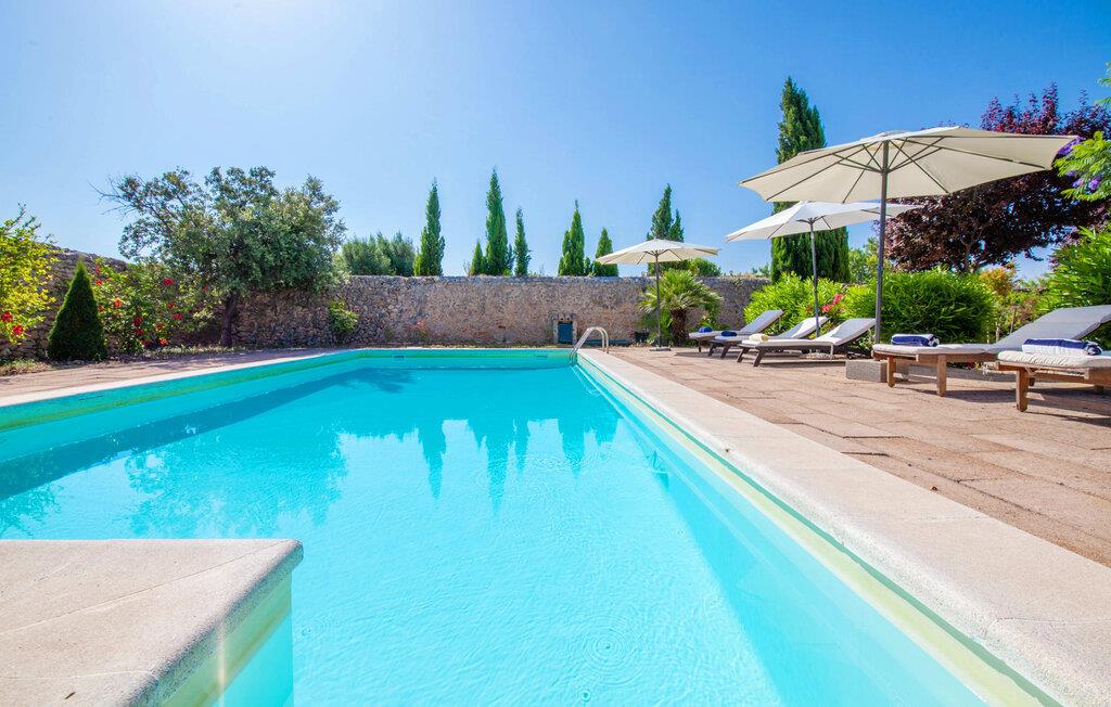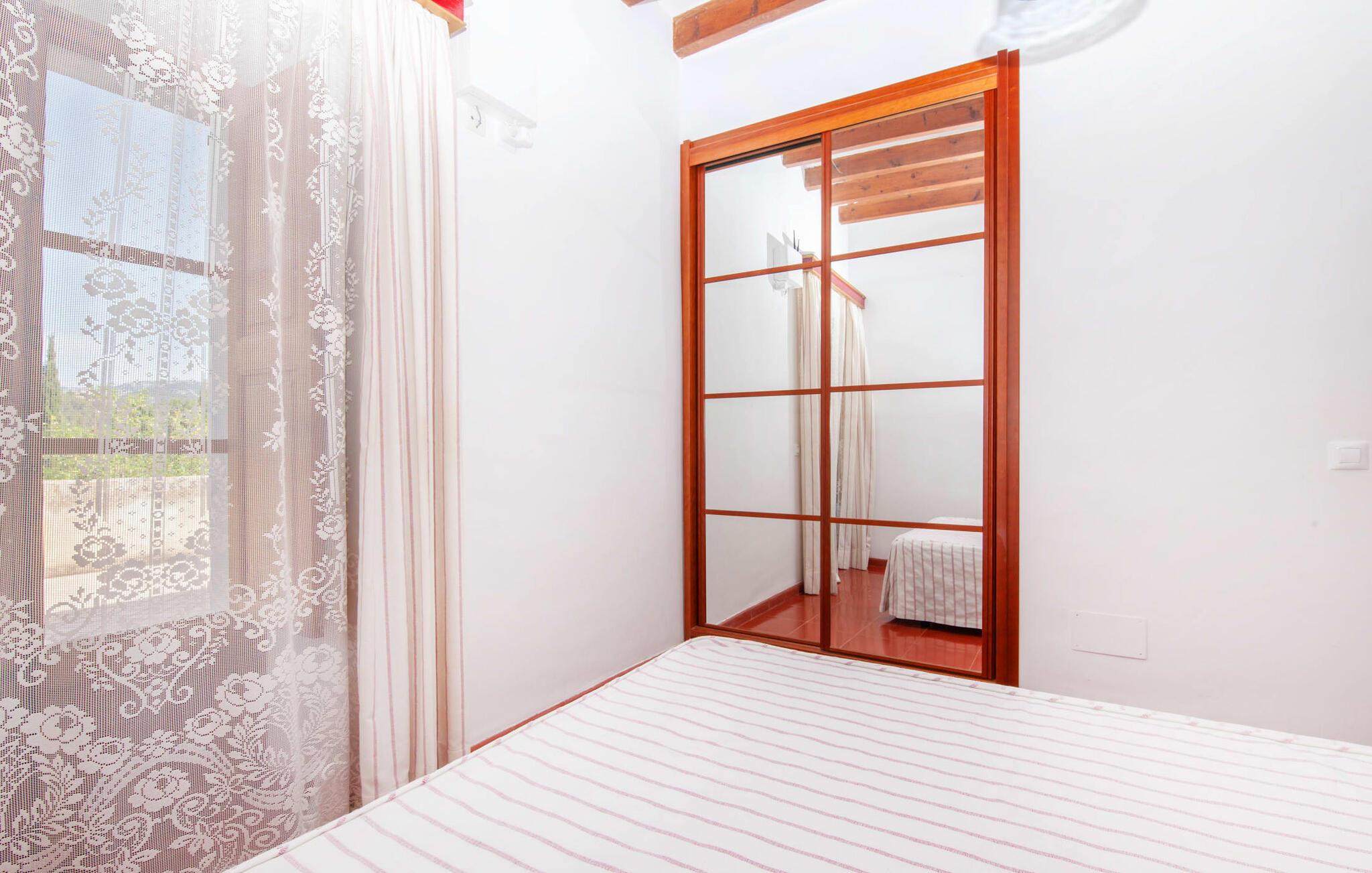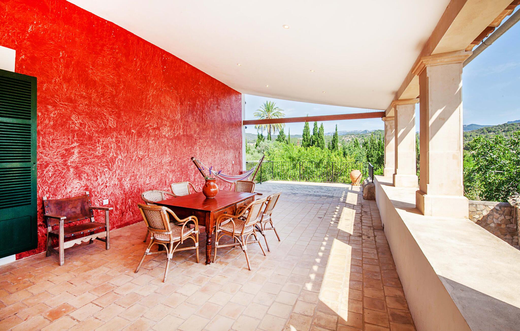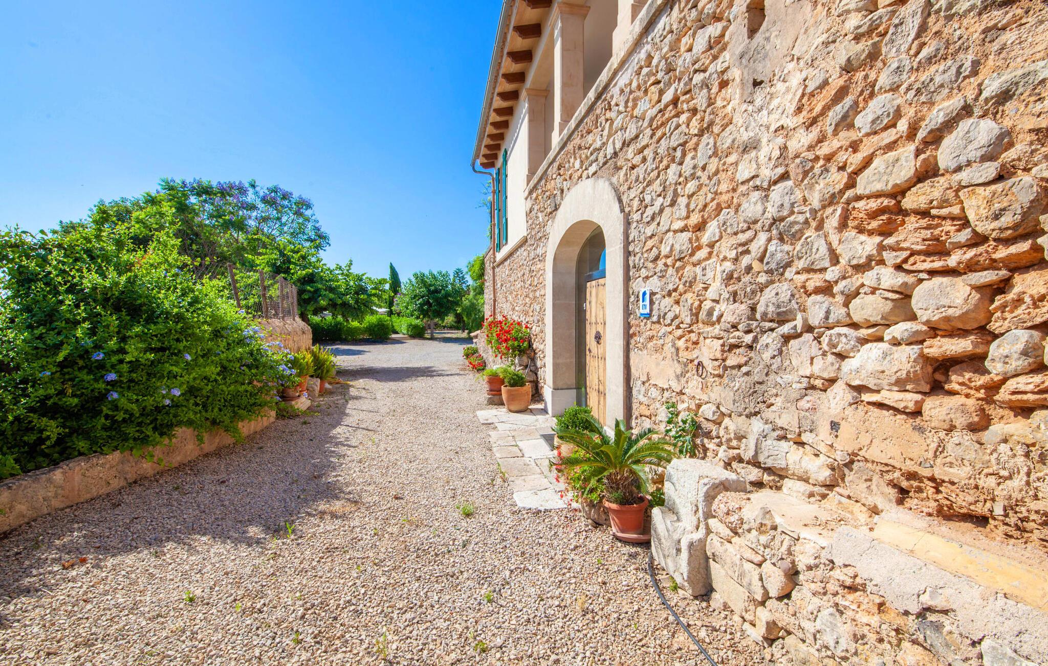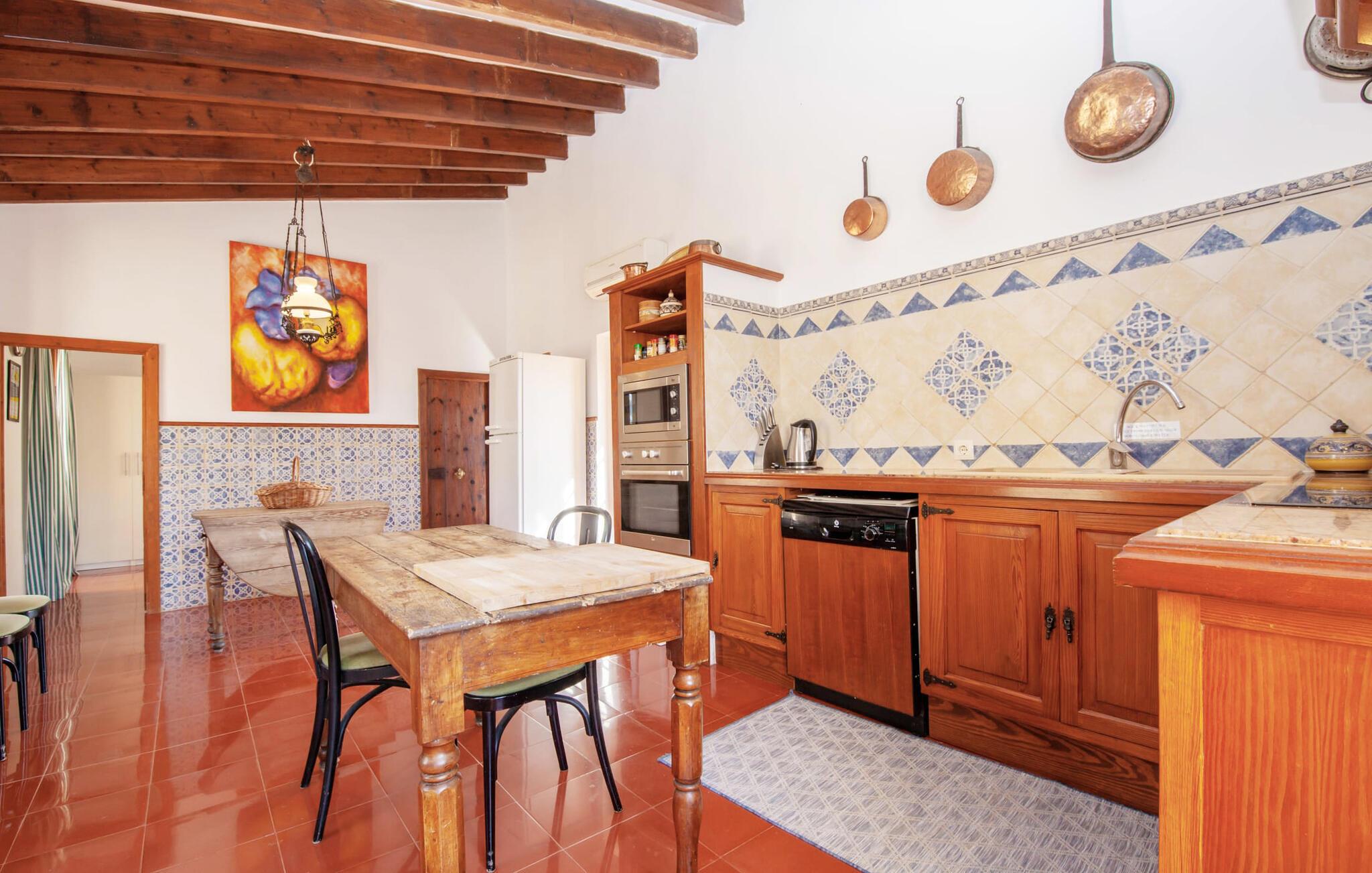 Den nænsomt restaurerede finca "Son Corco" i hjertet af Mallorca tilbyder et roligt, landligt tilflugtssted væk fra øens stress og jag. Beliggende på en gammel mallorcansk ejendom i vinregionen nær Consell, har dette charmerende 200 m² store gæstehus sin egen private pool og en rummelig overdækket terrasse, hvor I kan nyde både privatliv og en betagende panoramaudsigt. Den smukke, let skrånende pool er udstyret med komfortable liggestole og parasoller. Ejendommen er omgivet af frodige cypres-, palme-, mandel- og oliventræer. De diskrete naboer, der bor i det tilstødende gamle stuehus, har deres egen adgangsvej. Den rustikke opholdsstue er smagfuldt indrettet og skaber en autentisk og hyggelig atmosfære. Store vinduespartier giver masser af naturligt lys ind i de rummelige værelser. Det venlige køkken i landlig stil er udstyret med moderne apparater. De tre en-suite badeværelser tilbyder moderne komfort, og de rummelige soveværelser, ligesom opholdsområdet, er udstyret med aircondition. I den kølige årstid skaber radiatorer og et pillefyr en varm og indbydende atmosfære. jeres feriehus ligger ca. 2 km fra den rolige landsby Consell og kan nemt nås med bil via vejen, som kan høres akustisk afhængig af vindretningen. Det omkringliggende flade land indbyder til afslappede gå- og cykelture gennem vinmarkerne. Den smukke, gamle naturstensvilla "Son Corco" er beliggende nær landsbyen Consell på den nordlige del af øen. Det store hus med et stilfuldt udvalg af klassiske mallorcanske møbler og moderne elementer er bygget midt i et smukt, typisk middelhavslandskab, som I kan udforske på lange gå- eller vandreture. I kan køle af i poolen omgivet af frodige, grønne oleanderbuske. Alternativt kan I køre jeres lejebil cirka 25,5 km til Ciudad Jardin Strand. Bemærk venligst, at denne ejendom ikke accepterer ungdomsgrupper eller polterabender. En ungdomsgruppe på denne ejendom består af personer på 27 år eller derunder. Book ikke denne ejendom, hvis I er en ungdomsgruppe eller polterabend, da jeres reservation vil blive afvist, når den er booket, hvilket også kan være tilfældet ved ankomst til ejendommen eller under jeres ophold, og I vil ikke modtage en refusion