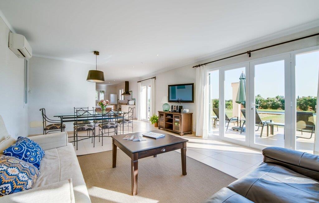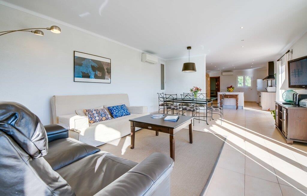 På en ugeneret ejendom med en betagende, uforstyrret udsigt over den sydlige del af øen ligger den smukke villa "Son Coves Petit", omgivet af en smukt anlagt have, hvis omfattende græsplæne er afskærmet fra omverdenen af en række oleandere. Den lille, men dejlige pool er forbundet med terrassen foran det sydvendte hus via en asfalteret sti. Der er i alt seks liggestole, som I kan stille op hvor som helst på plænen - perfekt til at nyde middelhavsklimaet og den varmende sol efter en kort, forfriskende svømmetur i havebruseren. Der er to skønne terrasser at vælge imellem. På siden ud mod poolen er den overdækkede terrasse, hvor der er en spisegruppe bestående af højkvalitets aluminiumsstole og et bord med glasplade. På siden af huset er der en muret grill til afslappet madlavning om aftenen. Det andet opholdsområde er placeret på et lige så attraktivt sted på terrassen foran husets indgang. Hvilket bedre sted at sidde om morgenen, planlægge jeres dag og nyde dette landlige paradis end her under det ærværdige gamle figentræ? Halvdelen af denne markante villa består af en restaureret stald, så indenfor finder I mange charmerende detaljer som trekantede vinduer, murstensnicher og fritlagte murværker, der giver et kærligt og smagfuldt designet interiør. Kombineret med usædvanligt smarte, moderne møbler, opfylder denne villa alle ønsker fra en lille moderne familie eller to par, der holder ferie sammen. Opholds- og spiseafdelingen fører ind i køkkenet. De store, sandstensfarvede gulvfliser sikrer kontinuitet i de enkelte områder. Den delikate brændeovn ved siden af de mørke lædersofaer i stuen komplementerer det sarte klassiske metalværk i spisestuesættet i art deco-stil. Det enorme køkken med indbygget belysning er visuelt adskilt fra de øvrige områder af et fritstående skab. Bag den, gemt, finder I træskabe og et fuldt udstyret køkken med Senseo kaffemaskine, mikroovn, brødrister, opvaskemaskine og meget mere. De to soveværelser er fordelt på de to etager. To smarte bruserum indrettet i nostalgisk stil sikrer, at I ikke skal stå i kø til badeværelset om morgenen. Soveværelserne er udstyret med en 1,60 m bred dobbeltseng eller to enkeltsenge ved siden af hinanden. En ekstra børnefoldeseng på 1,77 mx 0,78 m og en sovesofa med en bredde på 1,4 m fås også. Det øverste soveværelse har en-suite badeværelse og udgang til en solrig tagterrasse. Den yderst gennemtænkte, rummelige planløsning giver så mange muligheder for en lille gruppe, at vi uforbeholdent kan anbefale denne charmerende og rustikke villa. Ejendommen "Son Coves Petit" er beliggende i en populær landlig beliggenhed mellem den lille landsby Ses Salines og det velkendte Campos. Villaen ligger tæt på vejen mellem Ses Salines og Campos (afhængig af vindretningen kan der være trafikstøj) og er derfor et godt udgangspunkt for diverse ø-udflugter. Ses Salines er en typisk mallorcansk lille by, hvor I finder butikker og et par gode restauranter. Landsbyen er berømt for sin saltproduktion, så det er ikke overraskende, at flere kendte producenter tilbyder smagninger, hvor I kan købe deres varer som en gave til venner eller som en souvenir til jer selv. På nordkysten omkring Colonia de Sant Jordi er der nogle smukke sandstrande, især den spektakulære Es Trenc strand. Dette er det ideelle sted for en afslappende gåtur mellem de naturlige klitter på den 5 km lange strandstrækning. Eller, hvis I foretrækker noget endnu mere naturnært, er der også en nudiststrandsektion. I slutningen af dagen vender I tilbage til roen i den smukke villa "Son Coves Petit". Ægtheden af denne ejendoms landbrugsfortid afspejles i det nærliggende mejeri - nogle dage kan man høre og lugte noget af det, men kun under visse vindforhold. Vi hos Fincallorca ønsker jer en afslappende ferie på landet i den indbydende villa "Son Coves Petit". Den restaurerede villa "Son Coves Petit" er beliggende i en idyllisk landlig beliggenhed nord for den smukke landsby Ses Salines. Der er butikker i landsbyen, og om torsdagen er der et livligt ugentligt marked med friske råvarer. Campos ligger også kun 10 minutter væk i bil. Den nærmeste badeby er den naturlige strand Es Trenc, som ofte omtales som det Baleariske Caribien på grund af sit turkise vand og fine sand – selvom man her kan finde utallige fyrretræer i stedet for palmer.