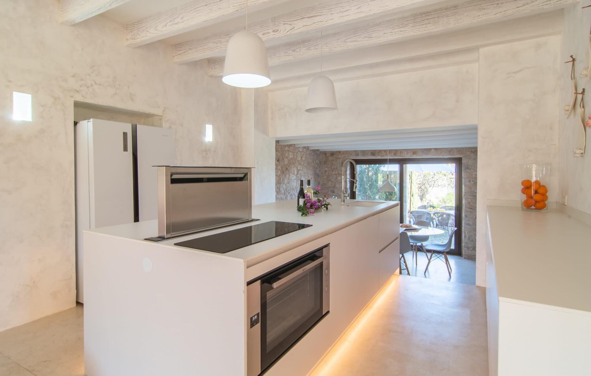 Åh, hvor er Mallorca smuk midt i bakkerne og kystlandskaberne i den østlige del af øen. Kun 10 minutter i bil fra kysten byder den øverste etage af "Son Cullera Petit"-gården på en vidunderlig udsigt over den romantiske landsby Son Servera til det nærliggende hav. Børn i alle aldre kan slippe dampen ud i den store have, mens I slapper af i de mange sidde- og afslapningsområder omkring huset eller køle af i poolen. Trinene i poolen inviterer jer til at slappe af. I et hyggeligt opholdsområde bag hjemmet kan I slutte dagen af med et godt glas vin på lune sommeraftener. Derudover er der en skøn spiseplads på terrassen med et stort træsæt, hvor I kan nyde kulinariske lækkerier i det fri. Med den eksisterende varme bordgrill kan I fremtrylle en lækker BBQ på ingen tid. Til cykelentusiaster er der et cykelstativ med multiværktøjssæt. Så intet står i vejen for at udforske de mange mountainbike- og racercykelruter i nærheden. Ejendommen er beskyttet mod indsyn, så I kan nyde en uforglemmelig bondegårdsferie i fuldstændig fred. "Son Cullera Petit" er et totalrenoveret hus med en kompakt planløsning og moderne indretning. Rumindretningen er stort set åben, og indretningen er af høj kvalitet. Dels upudsede, dels lyse hvidmalede stenbrudsvægge og træbjælker skaber sammen med den minimalistiske indretning en forfriskende luftig og samtidig hyggelig effekt. Det gælder også opholdsstuen med fladskærms-tv og behagelig lædersofa. Lige ved siden af er der en stor køkkenø, der ikke lader noget tilbage at ønske, og hvor fælles selvforsørgelse på ferien er ren hygge. Et halvt niveau lavere er spisepladsen med et smart bord placeret mellem køkkenet og en stor vinduesfront. To skønne dobbeltværelser sikrer en afslappende søvn. Begge er udstyret med trendy, åbne og walk-in badeværelsesområder. Samlet set er det stilfuldt indrettede bondehus et vellykket feriehus, hvor I nemt kan tilbringe en afslappende tid. Gæsterne på bondegården nyder en vidunderlig landlig beliggenhed i udkanten af den lille by Son Servera. Samtidig kan man nå østkysten af øen på under ti minutter via den lille vej Ma-4030, som kun kan høres, når vinden blæser i den rigtige retning. Her følger den ene smukke sandstrand den næste. Der er nogle gode restauranter og barer på Costa de los Pinos, som I bestemt bør stoppe ved på jeres udflugter. Et særligt højdepunkt i Son Servera er Iglésia Nova, en kirke designet af en elev af Gaudí. En stor del af ydervæggene inklusive vinduerne og rosenvinduerne blev bygget. Taget blev dog ikke færdigt, hvilket giver stedet sin helt særlige charme i dag. Andre højdepunkter i regionen er promenaderne i Cala Bona og Cala Millor eller de gigantiske drypstensgrotter i Artà. Det nænsomt totalrenoverede og stilfuldt indrettede bondehus "Son Cullera Petit" med swimmingpool ligger kun 1 km nordøst for Son Servera med vidunderlig havudsigt over østkysten nær Cala Millor. Talrige indkøbsmuligheder, for eksempel i Son Servera, kan nås på få minutter. Cala Millor og Cala Bona ligger kun 10 minutter væk i bil og har smukke promenader til at slentre og gå ud om aftenen. På Sa Marjal-stranden finder I altid et ledigt sted at slappe af i solen. **COVID-foranstaltning: For at give den størst mulige beskyttelse, anvendes to industrielle ozonfiltre ved rengøring af huset. **