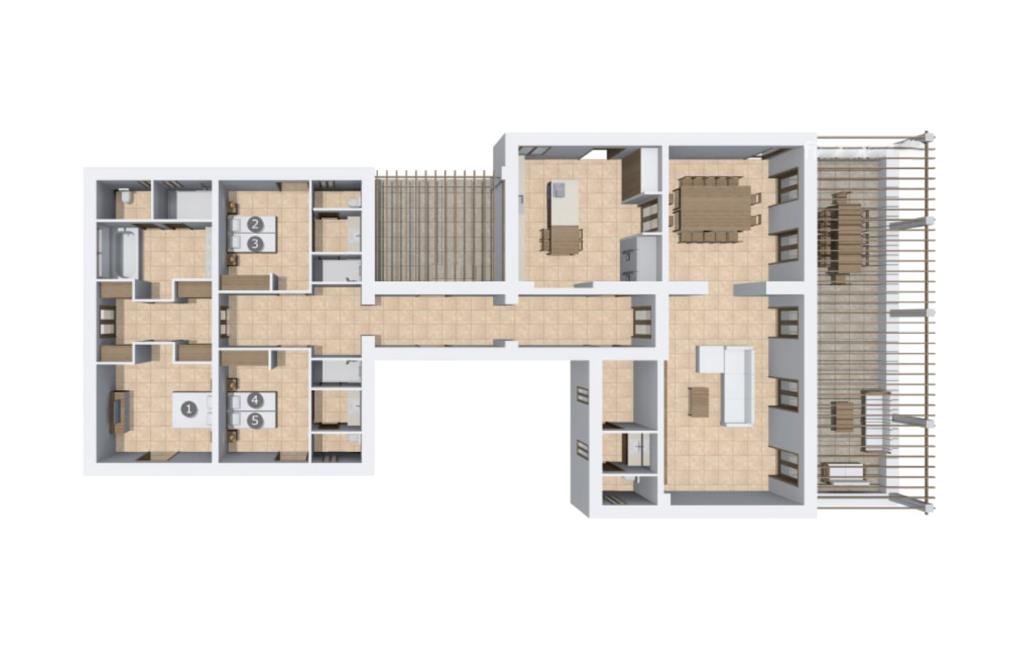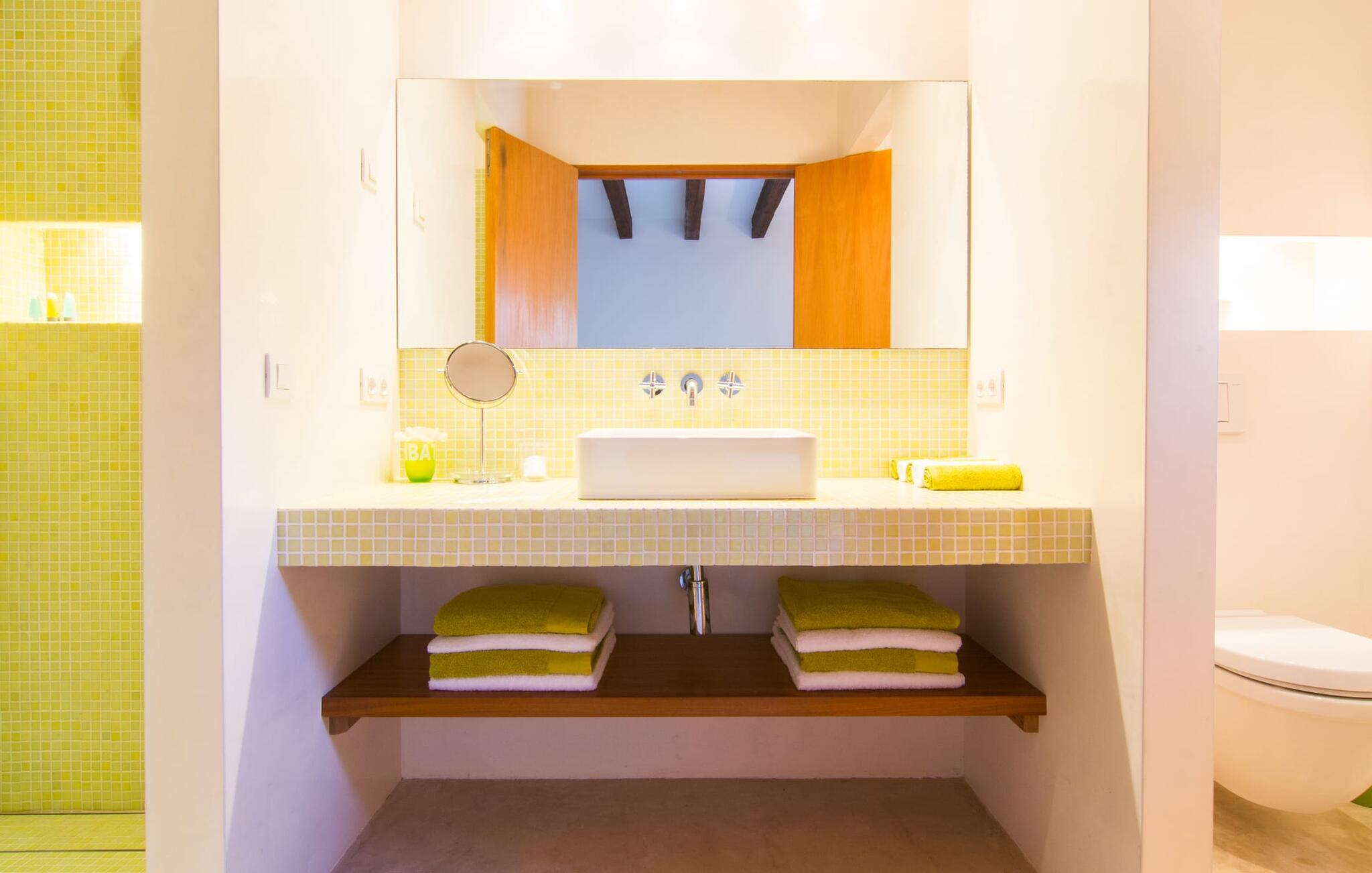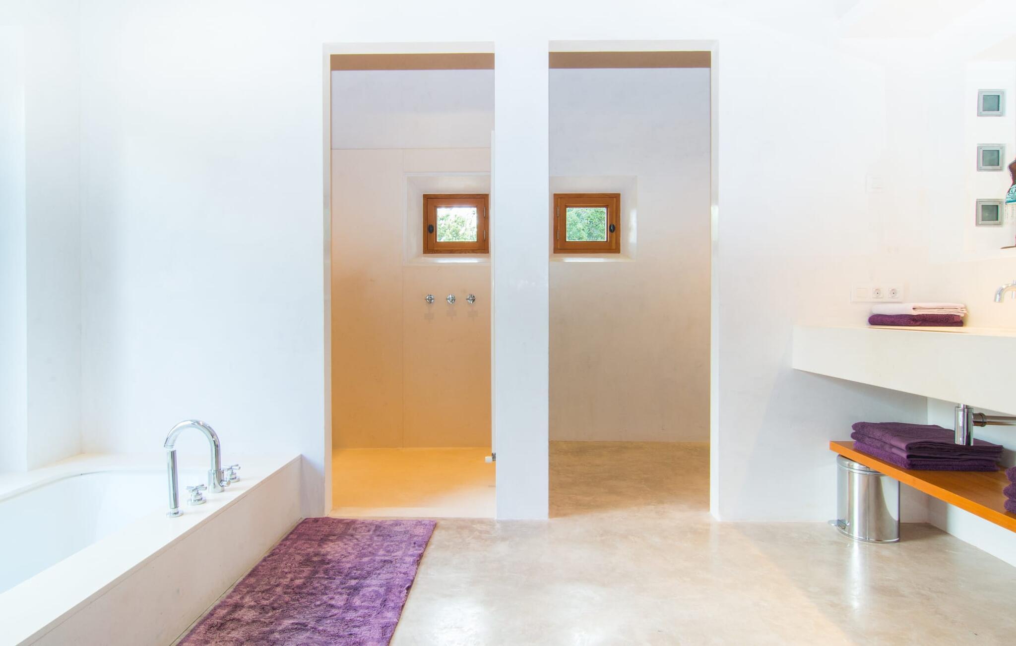 Eksklusiviteten af denne villas beliggenhed er tydelig ved første øjekast: Appelsin- og oliventræslunde, mandeltræer og duftende blomstrende planter præger denne rolige region lige vest for Artà, hvor den smukke villaejendom "Son Cullera" ligger. Idyllisk landskab, ren natur, absolut fred, en fabelagtig panoramaudsigt, alt i moderne stil og kærligt og med meget god smag, en fantastisk infinity pool, fantastisk udendørs siddepladser og endda en fodboldbane med ægte græs - det er alle funktioner, der gør dette Udpeg ejendommen som en premium ejendom. Lad os se på detaljerne sammen. Villaen, der er bygget for et par år siden, ligger på en svag skråning og har derfor en slags rækkehushave. På det nederste niveau er den enorme 15m pool. Poolen, dækket med turkise mosaikfliser, er designet i en uendelig stil, hvilket betyder, at den i den "lange" ende ser ud til at flyde ind i det vidunderlige landskab og de bølgende bakker i horisonten, hvilket giver en virkelig eventyrlig baggrund. I kan også nyde dette panorama fra en af liggestolene på solterrassen. I den "korte" ende af poolen er der en overdækket siddeplads med stort bord og masser af stole samt en slags sommerkøkken, der også kan bruges skønt som poolbar. Huset nås ved at gå fra poolområdet hen over de frodige græsplæner og haven. Der er en overdækket terrasse direkte foran stue og spisestue. Her er god plads til et hyggeligt opholdsområde med to knaldblå træbænke i vintagestil mellem store plantekasser med duftende blomster og et langt spisebord foran en glasvæg med sprøjter. Bag vinduesskydefronten er der en spisestue med et flot, overdimensioneret, rustikt træbord, der kan rumme op til ti personer. Fra dette værelse er der adgang til både køkken og stue, et stort lyst værelse med hyggelig pejs. Som alle rum skinner den med sine hvide vægge og et let, specialforarbejdet betongulv. Et stort sofaområde, blot nogle få møbler med en fantastisk retro karakter, men placeret så meget desto mere effektivt, samt moderne kunst sætter scenen for dette rum og formår samtidig at gøre det behageligt. Køkkenet ser ud som om det kom ud af et indretningsmagasin - et rigtigt drømmekøkken, ikke kun for amatørkokke. Den centrale ø i rustfrit stål med integrerede siddepladser er et rigtigt blikfang. Køkkenskabene er lavet af ægte træ af høj kvalitet, hvilket skaber en meget effektiv, ultramoderne blanding. Her finder I naturligvis al den tekniske komfort, I har brug for til en ferie med selvforplejning. I venstre halvdel af huset fører en korridor til tre dobbeltværelser med eget badeværelse, hvoraf de fleste har direkte adgang til det fri. Alle badeværelser har en klar designlinje med trendy brusekabiner. Det store soveværelse med eget badeværelse har et ekstra badekar og et separat påklædningsområde. Landligt-landligt: fred, privatliv og masser af natur præger regionens karakter. Den middelalderlige by Artà ligger kun omkring 4 km væk. Gå en tur gennem det ugentlige marked i gågaden og nyd travlheden ved Placa del Conqueridor. Trænger I til en pause fra shopping i de smukke butikker, kan I stoppe ved en af de mange caféer og gode restauranter. Hvis I kan lide at spille golf, bør I besøge den populære "Capdepera Golf" golfbane, hvis bakkede fairways er blevet integreret i det eksisterende landskab. Sandstrandene i Alcúdia-bugten kan nås lige så hurtigt og nemt som de afsondrede naturstrande, herunder Cala Varques. Vil I opleve lidt af travlheden, så tag til Cala Ratjada, hvor I finder nogle meget attraktive restauranter lige ved stranden og havnepromenaden. Vi hos Fincallorca ønsker jer et vidunderligt ophold i den stærkt anbefalede villa "Son Cullera". Den rummelige villaejendom "Son Cullera" er beliggende i en vidunderlig idyllisk, landlig og rolig beliggenhed midt i grønne bakker omkring middelalderbyen Artà. Til jeres indkøbsbehov er det kun 4 km fra Artà, som også kan kombineres med et besøg på det ugentlige marked omkring Placa del Conqueridor om tirsdagen. For en dag på stranden kan I vælge mellem smukke sandstrande som Sa Marjal eller endda bystrande som Colonia de Sant Pere, som ligger kun 20 minutter væk i bil.