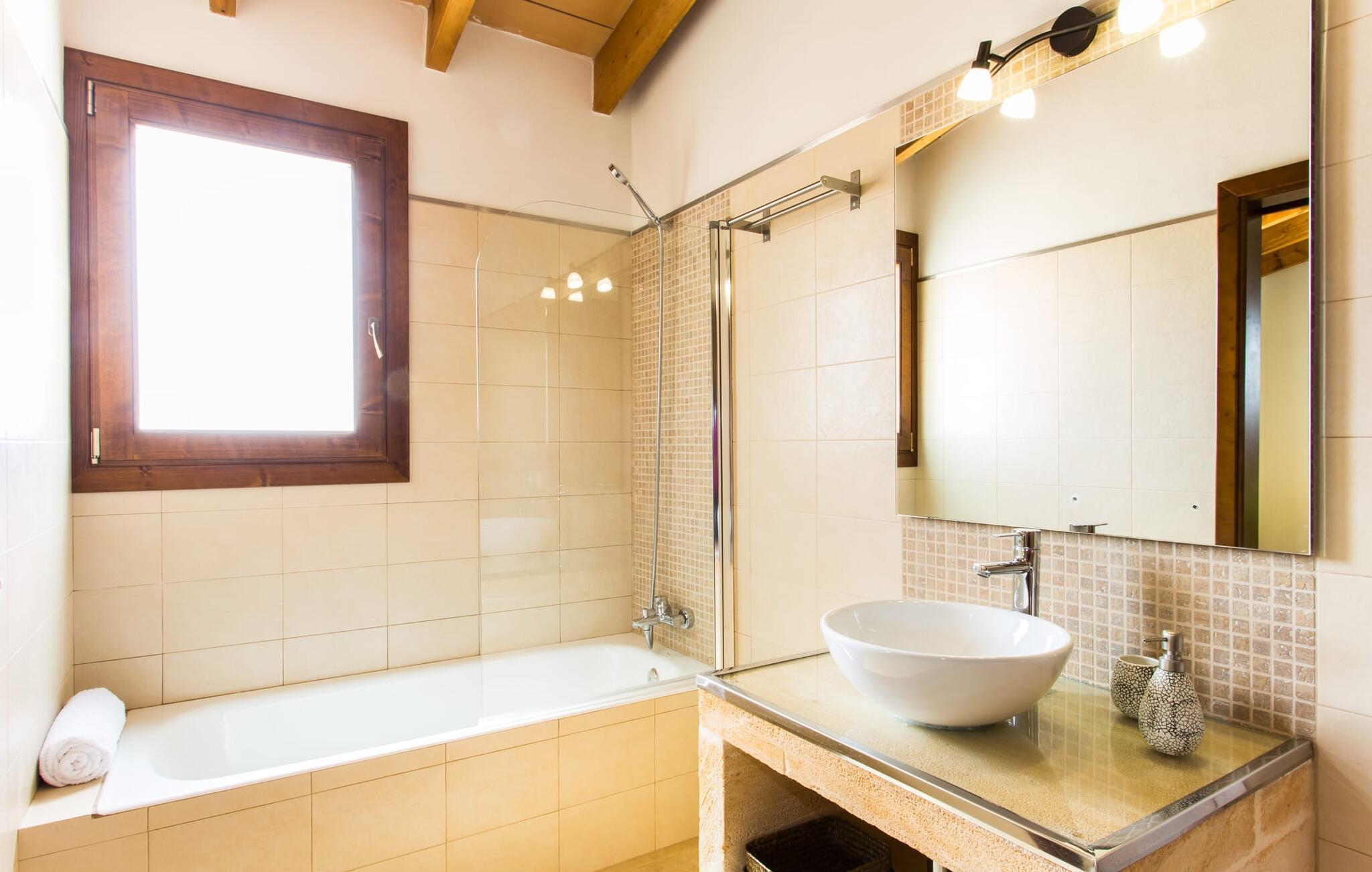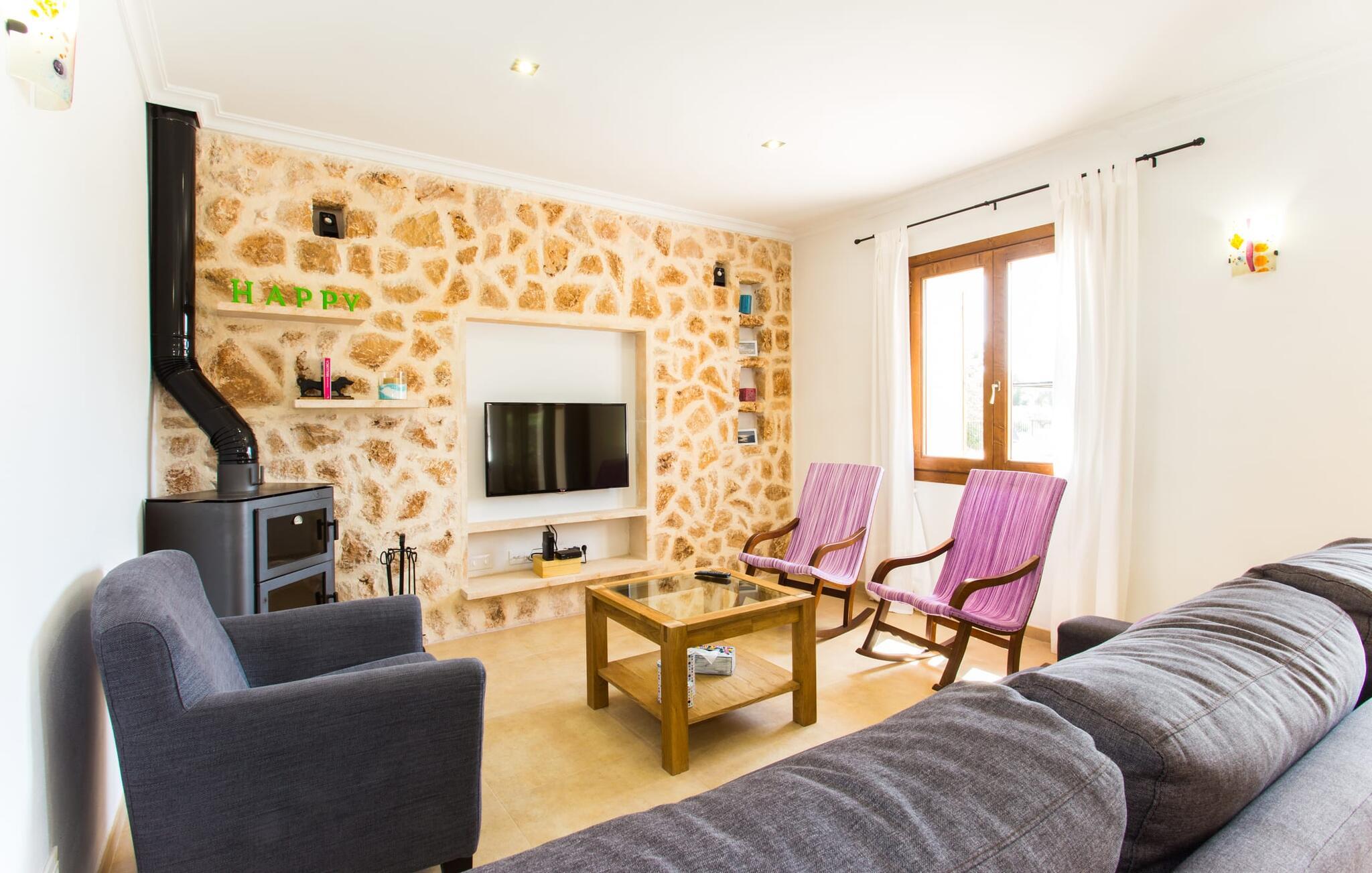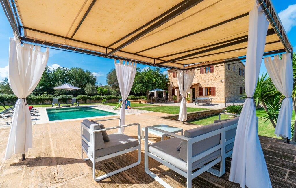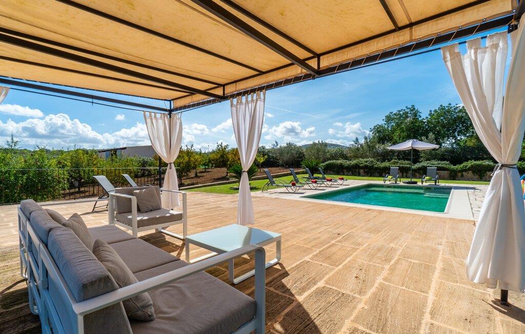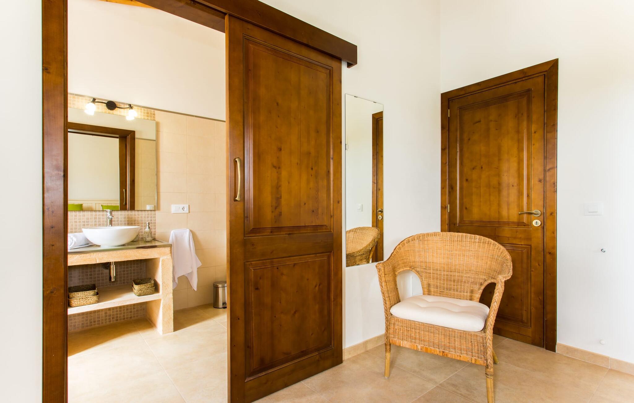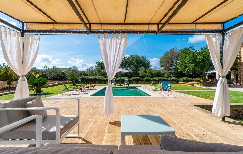 Det charmerende feriehus "Son Duri" nær Manacor er beliggende i rolige landlige omgivelser, omgivet af fladt landskab. Det næsten trinløse, rummelige udendørsareal har en rummelig græsplæne, der indbyder til leg og afslapning. Skyggefulde legeområder byder de små gæster varmt velkommen. Poolen har nem adgangstrin og et bredt siddeområde og kan sikkert indhegnes, hvis det ønskes. Solterrassen, foret med en stor pavillon og komfortable havemøbler, inviterer jer til at slappe af. En overdækket terrasse giver et hyggeligt sted til udendørs spisning, så I kan nyde måltider fra murstensgrillen, mens I holder øje med poolen. Den omfattende ejendom tilbyder en betagende udsigt over landskabet nord for Manacor og sikrer masser af privatliv. Det rummelige interiør er ideelt til en afslappende ferie med hele familien. I stueetagen finder I en lys opholds- og spisestue med siddepladser og pejs. Det moderne, veludstyrede køkken er halvåbent til spisepladsen. Der er direkte udgang til den overdækkede terrasse fra både køkken og spiseplads. Den brede bruser og døre i stueetagen gør denne del af fincaen let tilgængelig for alle. På øverste etage er der yderligere tre soveværelser med dobbeltsenge og to badeværelser. De hyggelige soveværelser byder på en smuk udsigt over det omkringliggende landskab og vinduerne kan let mørklægges med skodder. Dette dejlige feriehus nær Manacor tilbyder også pålidelig mobiltelefonmodtagelse, god WiFi og et skrivebord. Den moderne villa "Son Duri" ligger på en kæmpe ejendom på den østlige del af øen, omkring 60 km fra lufthavnen. Det er centralt beliggende, små byer og strande er i nærheden.