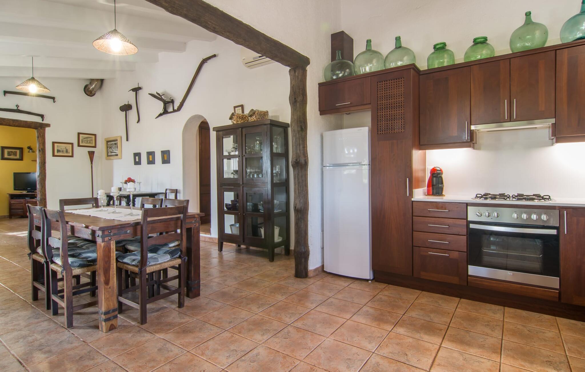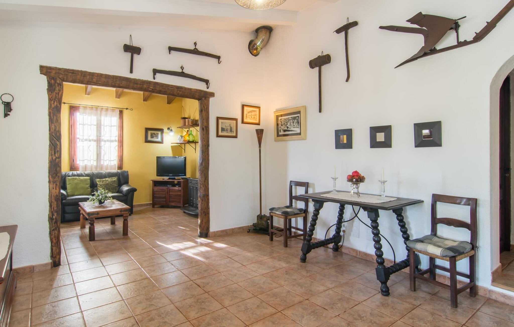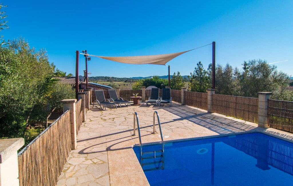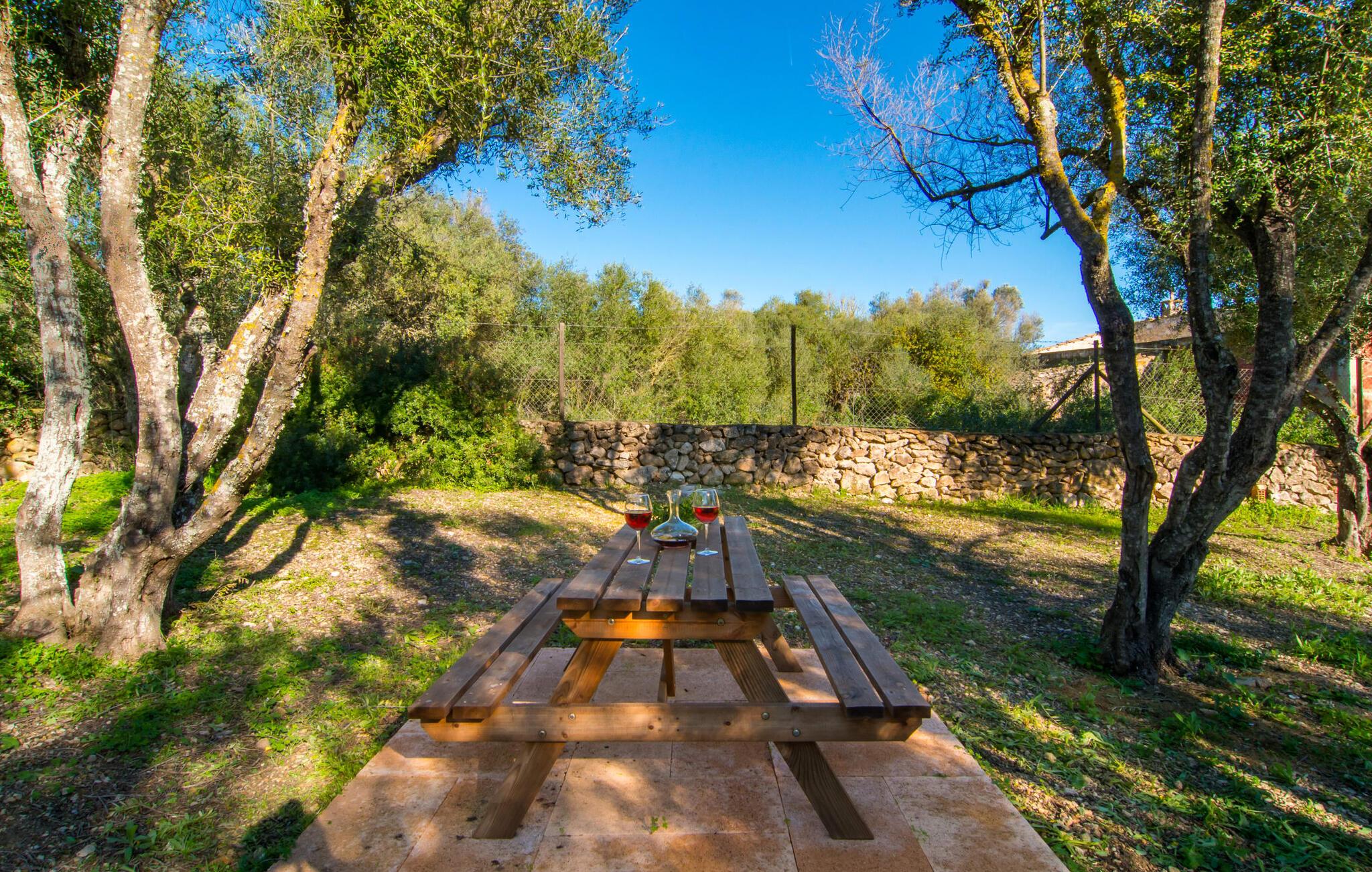 Den traditionelle villa "So Fangos" i en perfekt landlig beliggenhed lige syd for Manacor er perfekt til børn og familier. Dette kan allerede ses udefra, for eksempel ved den let hævede pool bag huset lige ved siden af et smukt, skyggefuldt skovområde med solterrasse og en lille græsplæne. Da poolområdet er indhegnet og aflåst med låge, er det sikret, at børn ikke kan lege på dette område uden opsyn. Ved poolen er der i alt seks liggestole til solbadning og to parasoller til skygge. Selve villaen er omgivet af et natursten terrasseområde omgivet af middelhavsgrønne planter. Et højt palmetræ grænser direkte op til den overdækkede terrasse langs huset. I dette område finder I et enkelt træbord med seks komfortable træstole - en fantastisk udendørs spiseplads kun få meter fra husets indgang og køkken. På den anden side af verandaen er der et loungeområde - perfekt om aftenen, når børnene er i seng, og man bare vil nyde græshoppernes kvidren og det milde klima med en sidste drink. På bagsiden af huset er der endnu en lille overdækket terrasse med siddeplads til vores folk. Det fine ved denne terrasse er, at den er direkte tilgængelig fra to af de tre soveværelser. Terrassen er desuden omgivet af en træport og kan lukkes med en dør. Der er en basketballbane til rådighed for gæsterne. Bagefter kan I tage en forfriskende svømmetur i den private pool. Den familievenlige karakter og design bekræftes også inde i villaen. Vi kan især godt lide, at villaen efter restaureringen har et stort spise-/opholds- og køkkenområde, som kombinerer alle de funktioner, som en familie bruger sammen (bortset fra de private områder i soveværelset, naturligvis) til et fælles opholdsrum. Træbordet med træstole står midt i rummet. Her er plads nok, hvilket giver rummet en rummelig følelse. Væggene er dekoreret med landbrugsredskaber, der illustrerer den oprindelige landbrugsmæssige anvendelse af denne ejendom. Til højre for spisepladsen er det åbne køkkenområde, hvor loftsbjælkerne af egetræ er synlige. Det smarte, mørke trækøkken behøver ikke at gemme sig i et lukket rum. Det fulde tekniske udstyr gør selvforplejning til jeres individuelle ferie let. Til venstre for spisepladsen, adskilt af en egetræsbue, er der en hyggelig opholdsstue malet i solgul. Sorte lædermøbler som et hyggeligt opholdsområde foran en støbejernspejs og foran det moderne LCD-tv inviterer til en hyggelig aften. Fra stuen når man master soveværelset med en 1,60 m bred dobbeltseng og en-suite badeværelse. De to andre soveværelser er i gangen, der fører væk fra spisepladsen. De to soveværelser deler badeværelse, hvor begge badeværelser er udstyret med moderne walk-in brusere. Det ene af de to soveværelser er udstyret med en 1,60 m bred dobbeltseng, det tredje soveværelse er et klassisk børneværelse med en dobbelt køjeseng, mens den nederste seng har en queen-size seng på 1,40 m. Fra disse to soveværelser er der også udgang til den lille børnesikre indhegnede terrasse. I kan starte dagen med en kop kaffe i morgensolen, inden I begynder at planlægge jeres dag og tænke over, hvor I gerne vil hen på jeres næste tur. Den fordelagtige beliggenhed i den frugtbare slette i centrum af øen, den såkaldte "Pla de Mallorca", giver den fordel, at I herfra kan opdage Mallorcas forskellige attraktioner. På grund af nærheden til vejen (som kan høres afhængig af vinden) kan I hurtigt nå Manacor på 3,5 km, hvor I ikke kun kan gøre jeres daglige indkøb, men også shoppe og slentre i en af øens største byer . Og I kan nemt nå kystbyerne som Porto Cristo, hvor I kan slentre langs promenaden og få en snack på en af caféerne og restauranterne. Et besøg i drypstenshulerne nær Artà, "Coves des Dracs", er ikke kun interessant for børn. For en dag ved havet kan I vælge mellem østkystens smukke strande, kendt som "Calas de Mallorca". Her finder I fantastiske, næsten uberørte naturstrande som Cala Varques. Sidst på dagen venter den autentiske villa "Son Fangos" sine gæster, og I kan slappe af med en svømmetur i poolen eller en grillaften og nyde samværet med jeres familie eller som par, for villaen kan lejes på et nedsat pris for to personer. Den typiske mallorcanske villa "Son Fangos" ligger lidt væk fra byen Manacor på vej til Felanitx. Gør jeres daglige indkøb hurtigt og nemt i nærliggende Manacor, hvor der også er et smukt bondemarked hver mandag. De smukke strande, herunder den ensomme og næsten uberørte naturlige bugt "Cala Varques", kan nemt nås med lejebil.
