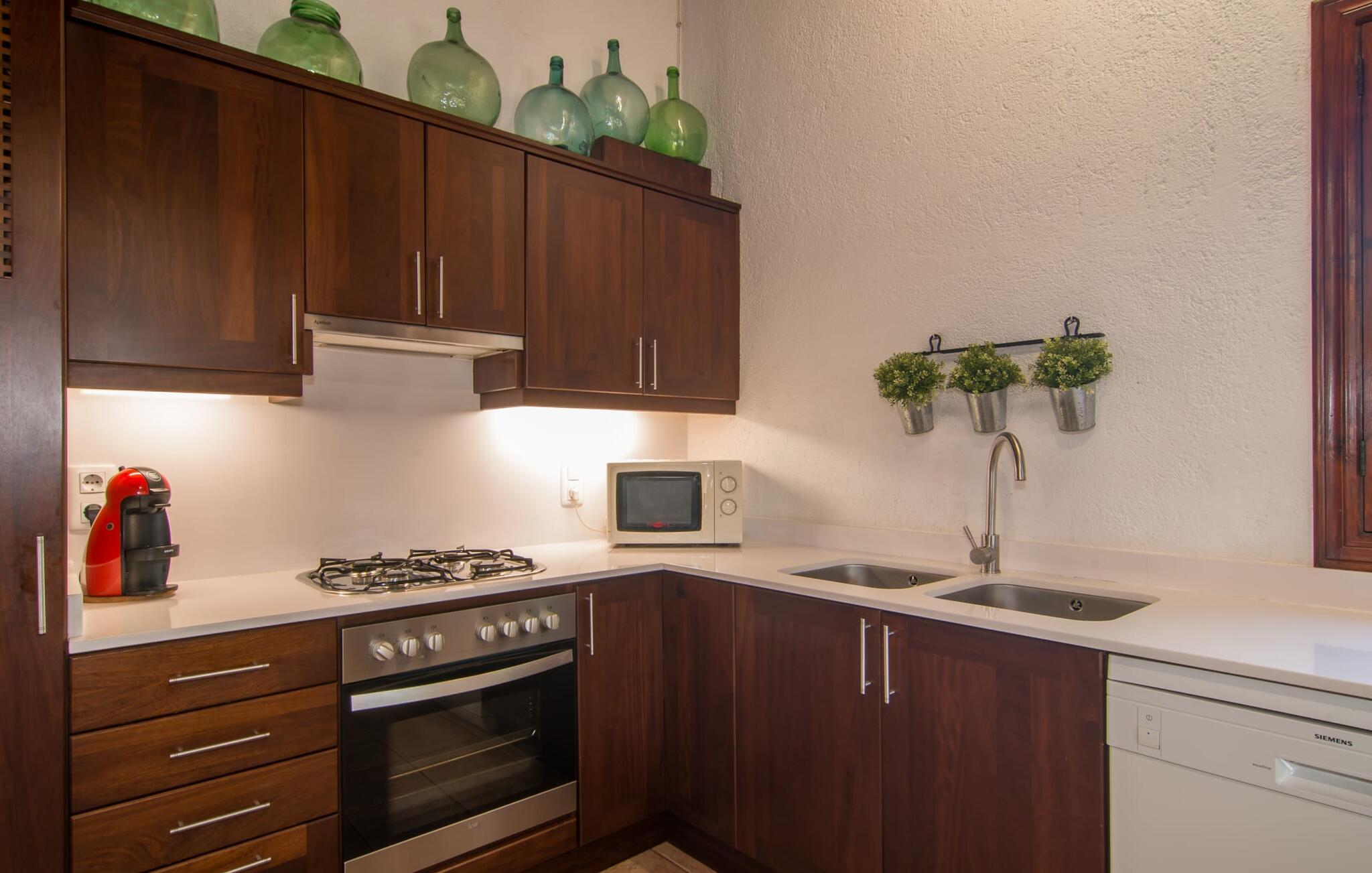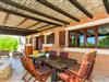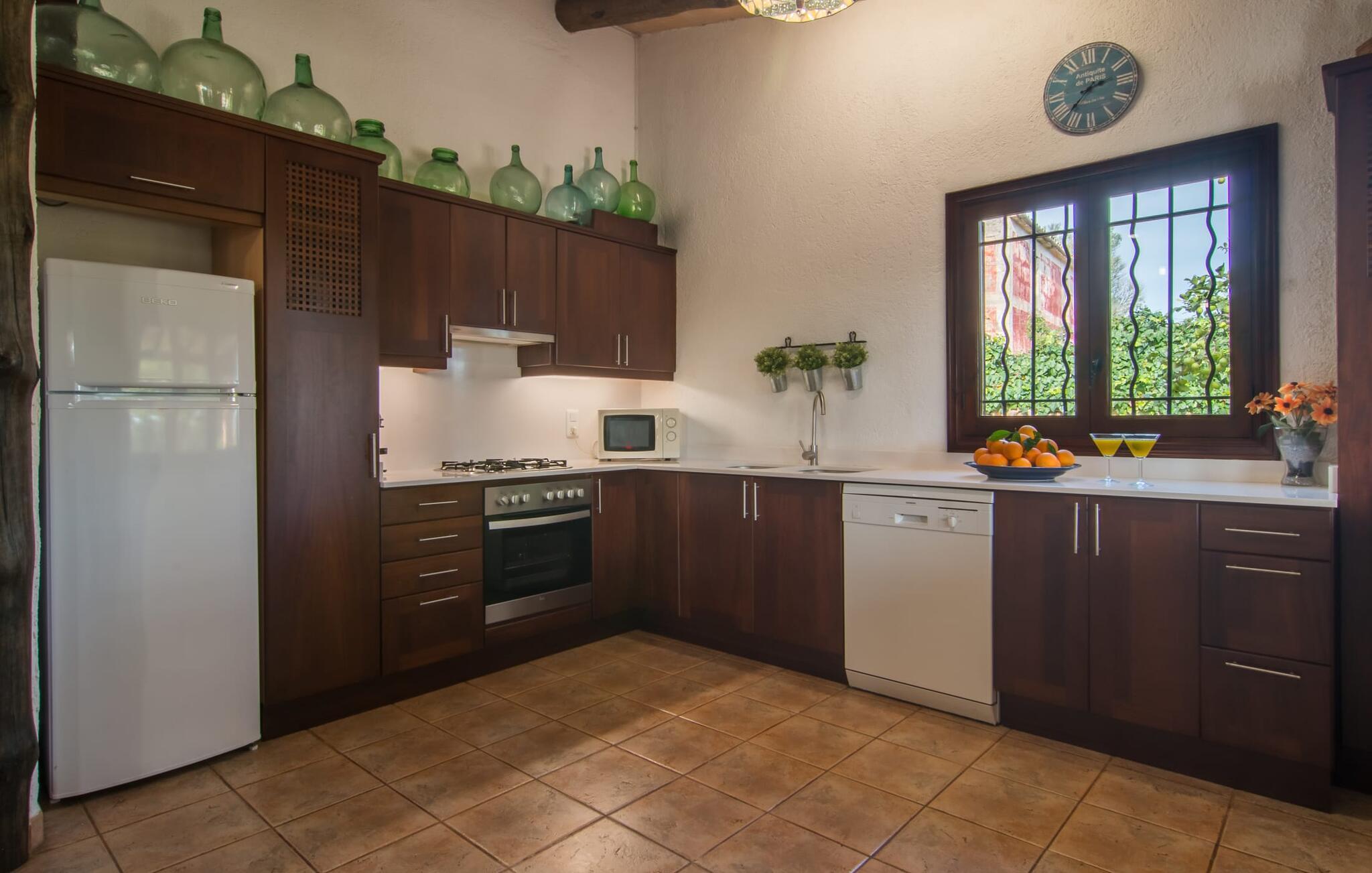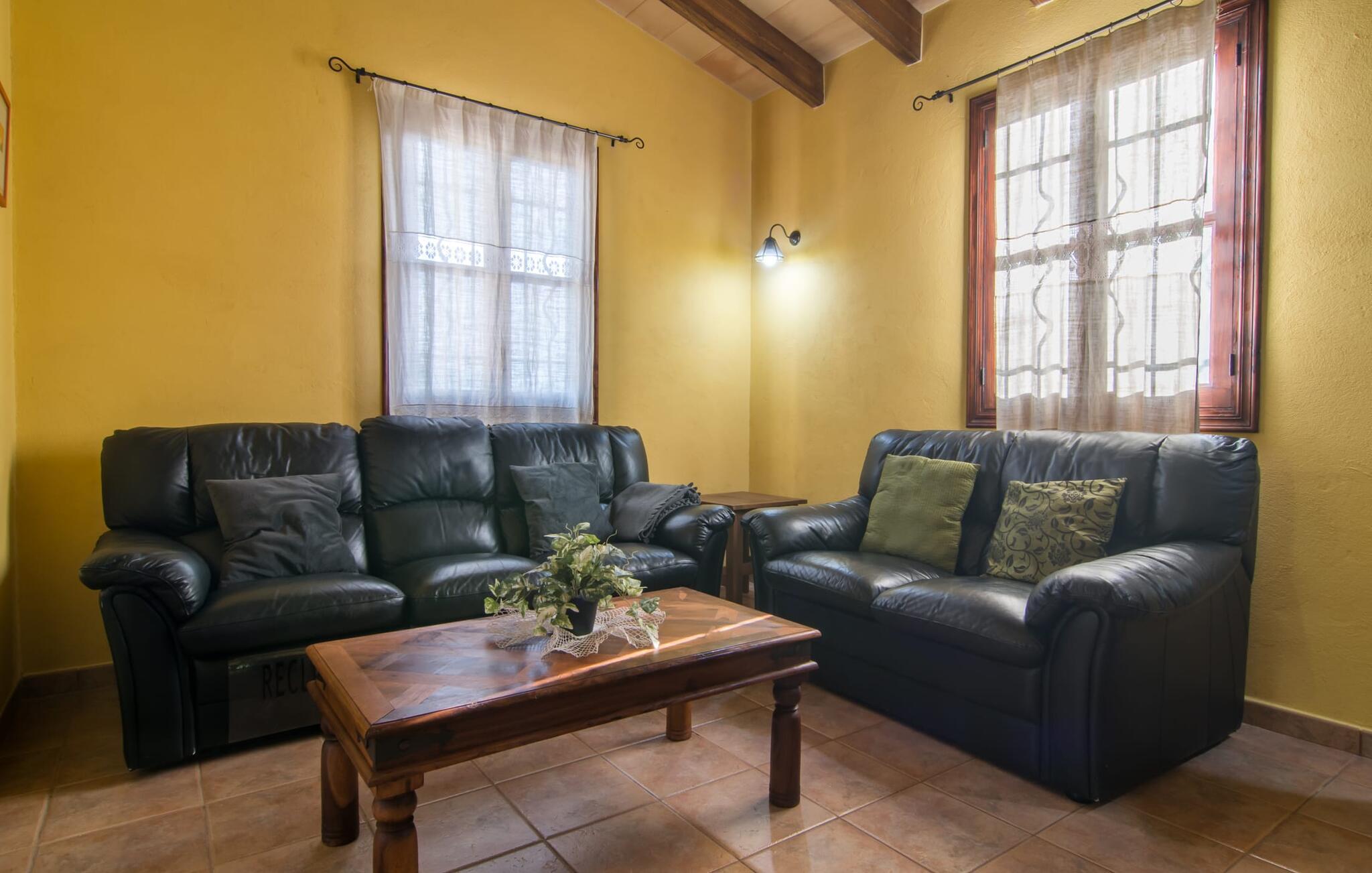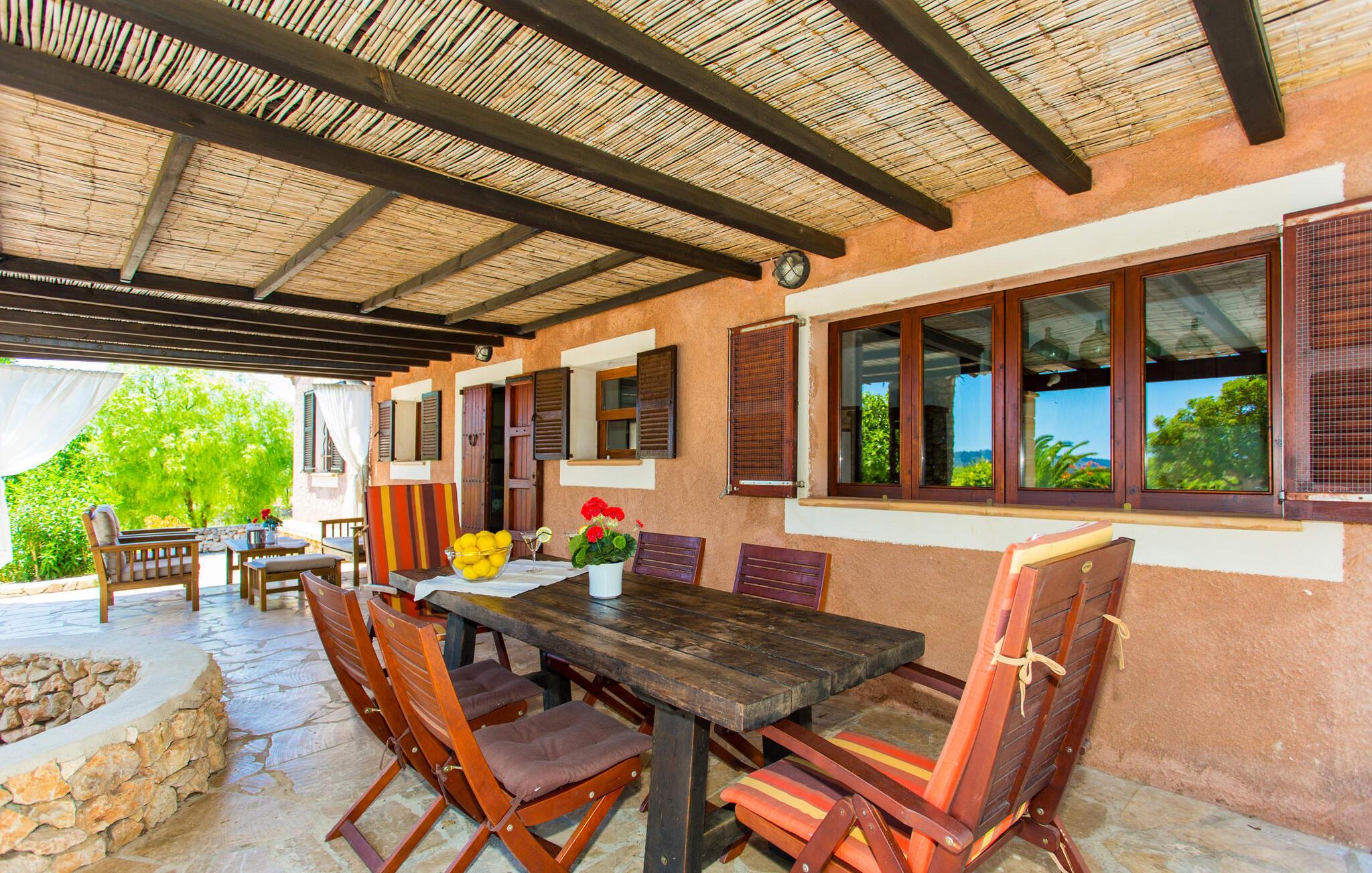 Den traditionelle villa "So Fangos" i en perfekt landlig beliggenhed lige syd for Manacor er perfekt til børn og familier. Dette kan allerede ses udefra, for eksempel ved den let hævede pool bag huset lige ved siden af et smukt, skyggefuldt skovområde med solterrasse og en lille græsplæne. Da poolområdet er indhegnet og aflåst med låge, er det sikret, at børn ikke kan lege på dette område uden opsyn. Ved poolen er der i alt seks liggestole til solbadning og to parasoller til skygge. Selve villaen er omgivet af et natursten terrasseområde omgivet af middelhavsgrønne planter. Et højt palmetræ grænser direkte op til den overdækkede terrasse langs huset. I dette område finder I et enkelt træbord med seks komfortable træstole - en fantastisk udendørs spiseplads kun få meter fra husets indgang og køkken. På den anden side af verandaen er der et loungeområde - perfekt om aftenen, når børnene er i seng, og man bare vil nyde græshoppernes kvidren og det milde klima med en sidste drink. På bagsiden af huset er der endnu en lille overdækket terrasse med siddeplads til vores folk. Det fine ved denne terrasse er, at den er direkte tilgængelig fra to af de tre soveværelser. Terrassen er desuden omgivet af en træport og kan lukkes med en dør. Der er en basketballbane til rådighed for gæsterne. Bagefter kan I tage en forfriskende svømmetur i den private pool. Den familievenlige karakter og design bekræftes også inde i villaen. Vi kan især godt lide, at villaen efter restaureringen har et stort spise-/opholds- og køkkenområde, som kombinerer alle de funktioner, som en familie bruger sammen (bortset fra de private områder i soveværelset, naturligvis) til et fælles opholdsrum. Træbordet med træstole står midt i rummet. Her er plads nok, hvilket giver rummet en rummelig følelse. Væggene er dekoreret med landbrugsredskaber, der illustrerer den oprindelige landbrugsmæssige anvendelse af denne ejendom. Til højre for spisepladsen er det åbne køkkenområde, hvor loftsbjælkerne af egetræ er synlige. Det smarte, mørke trækøkken behøver ikke at gemme sig i et lukket rum. Det fulde tekniske udstyr gør selvforplejning til jeres individuelle ferie let. Til venstre for spisepladsen, adskilt af en egetræsbue, er der en hyggelig opholdsstue malet i solgul. Sorte lædermøbler som et hyggeligt opholdsområde foran en støbejernspejs og foran det moderne LCD-tv inviterer til en hyggelig aften. Fra stuen når man master soveværelset med en 1,60 m bred dobbeltseng og en-suite badeværelse. De to andre soveværelser er i gangen, der fører væk fra spisepladsen. De to soveværelser deler badeværelse, hvor begge badeværelser er udstyret med moderne walk-in brusere. Det ene af de to soveværelser er udstyret med en 1,60 m bred dobbeltseng, det tredje soveværelse er et klassisk børneværelse med en dobbelt køjeseng, mens den nederste seng har en queen-size seng på 1,40 m. Fra disse to soveværelser er der også udgang til den lille børnesikre indhegnede terrasse. I kan starte dagen med en kop kaffe i morgensolen, inden I begynder at planlægge jeres dag og tænke over, hvor I gerne vil hen på jeres næste tur. Den fordelagtige beliggenhed i den frugtbare slette i centrum af øen, den såkaldte "Pla de Mallorca", giver den fordel, at I herfra kan opdage Mallorcas forskellige attraktioner. På grund af nærheden til vejen (som kan høres afhængig af vinden) kan I hurtigt nå Manacor på 3,5 km, hvor I ikke kun kan gøre jeres daglige indkøb, men også shoppe og slentre i en af øens største byer . Og I kan nemt nå kystbyerne som Porto Cristo, hvor I kan slentre langs promenaden og få en snack på en af caféerne og restauranterne. Et besøg i drypstenshulerne nær Artà, "Coves des Dracs", er ikke kun interessant for børn. For en dag ved havet kan I vælge mellem østkystens smukke strande, kendt som "Calas de Mallorca". Her finder I fantastiske, næsten uberørte naturstrande som Cala Varques. Sidst på dagen venter den autentiske villa "Son Fangos" sine gæster, og I kan slappe af med en svømmetur i poolen eller en grillaften og nyde samværet med jeres familie eller som par, for villaen kan lejes på et nedsat pris for to personer. Den typiske mallorcanske villa "Son Fangos" ligger lidt væk fra byen Manacor på vej til Felanitx. Gør jeres daglige indkøb hurtigt og nemt i nærliggende Manacor, hvor der også er et smukt bondemarked hver mandag. De smukke strande, herunder den ensomme og næsten uberørte naturlige bugt "Cala Varques", kan nemt nås med lejebil.