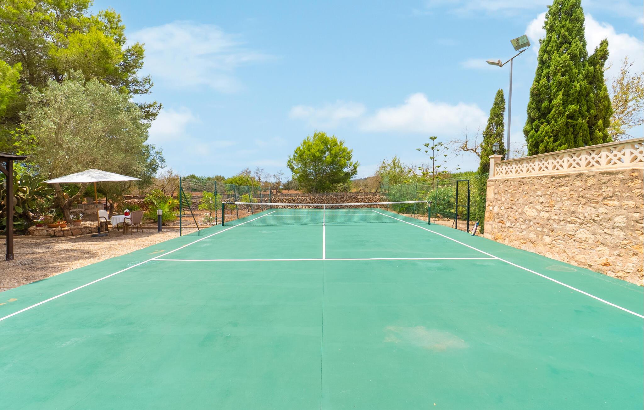 Villa "Son Gall" er et udsøgt tilflugtssted for en afslappende familieferie nær Porreres, Mallorca. Beliggende i en rolig beliggenhed tilbyder det en perfekt blanding af afsondrethed og strandnærhed med fantastiske sandede bugter kun en kort køretur væk. Villaen har en swimmingpool med et lavvandet område ideel til små børn, et stort legeområde og en tennisbane, der giver rigelige fritidsmuligheder. Det omfattende terrasseområde omfatter private siddepladser under gamle oliven-, fyrre- og johannesbrødtræer, der giver naturlig skygge. Havemøbler af høj kvalitet og en charmerende pavillon beriger udendørsoplevelsen, perfekt til aftengrill. Parkeringspladser er tilgængelige i skyggen på villaens ejendom. (Garagen er ikke inkluderet i lejeprisen). Indvendigt har villaen en komfortabel opholdsstue med fladskærms-tv og et fuldt udstyret køkken til at tilberede lækre familiemåltider samt en elegant spiseplads. Der er tre rummelige dobbeltværelser med moderne aircondition. Med sit gennemtænkte design er Villa “Son Gall” det ideelle valg til en uforglemmelig familieferie på Mallorca. Dette er en fantastisk beliggenhed med nem adgang til Porreres og sandstrandene på øst- og sydkysten. Helligdommen Monti Sionvilla fra 1400-tallet ligger kun 6 km derfra. Bemærk venligst, at denne ejendom ikke accepterer ungdomsgrupper eller polterabender. En ungdomsgruppe på denne ejendom består af personer under 30 år. Book ikke denne ejendom, hvis I er en ungdomsgruppe eller polterabend, da jeres reservation vil blive afvist, når den er booket, hvilket også kan være tilfældet ved ankomst til ejendommen eller under jeres ophold, og I vil ikke modtage en refusion