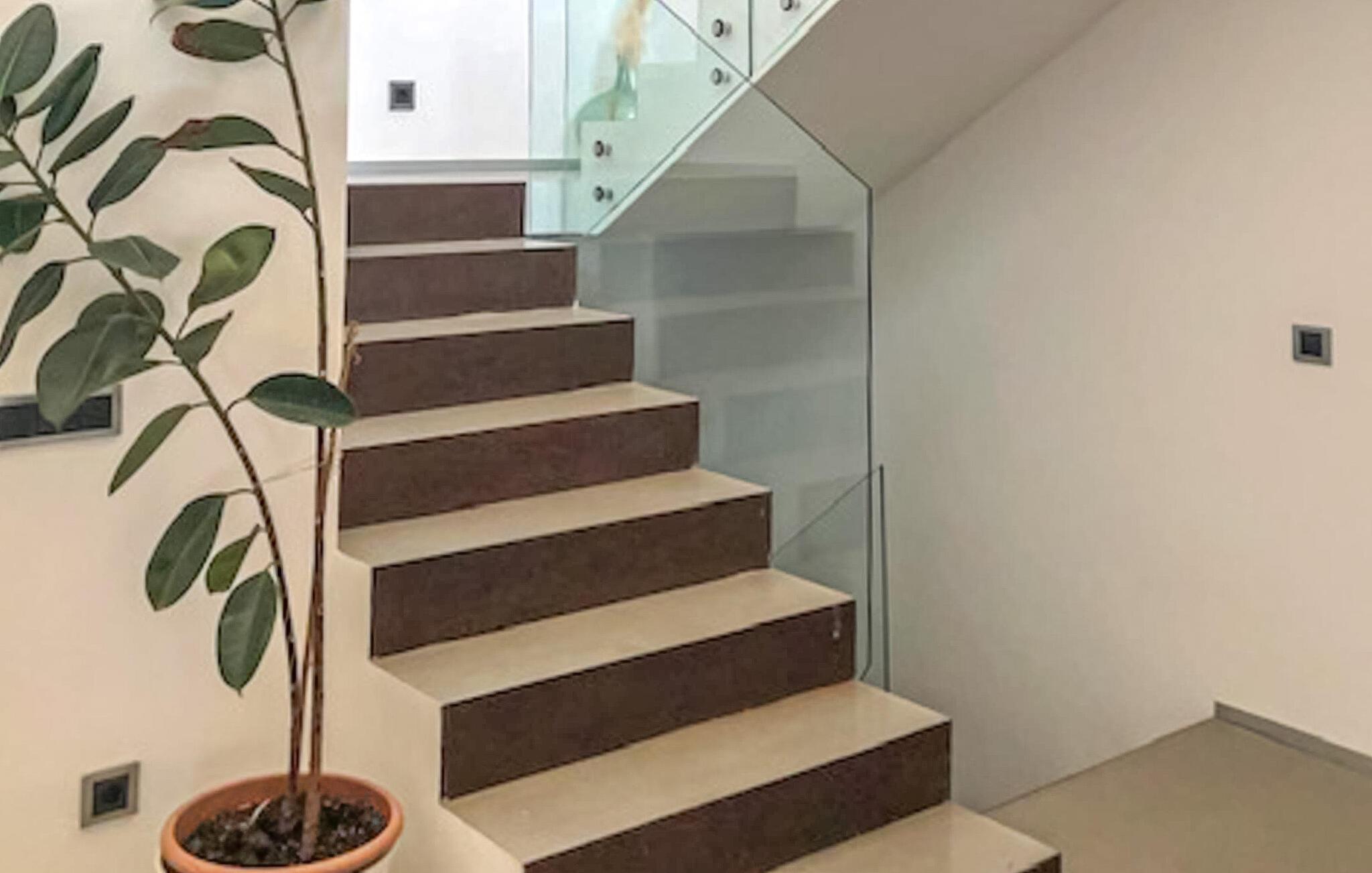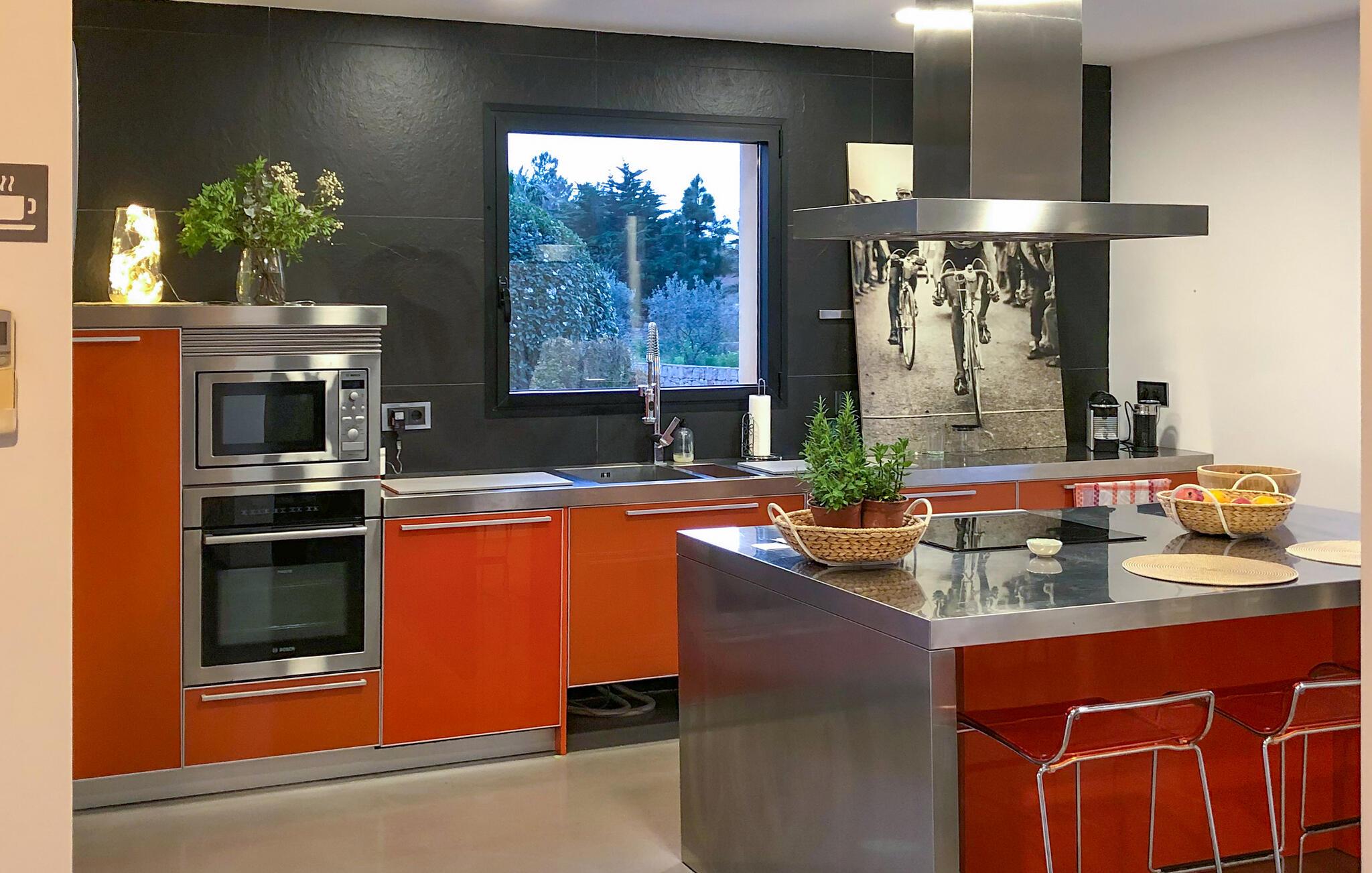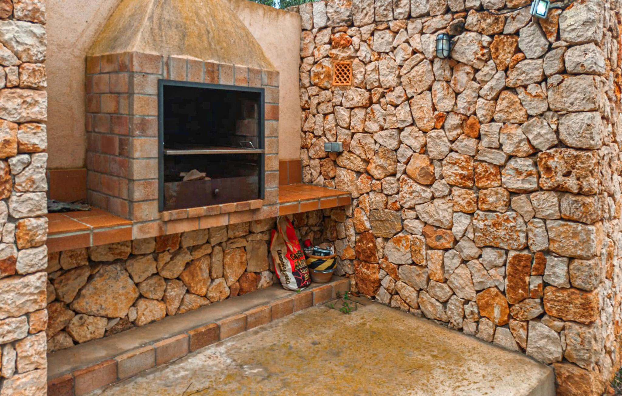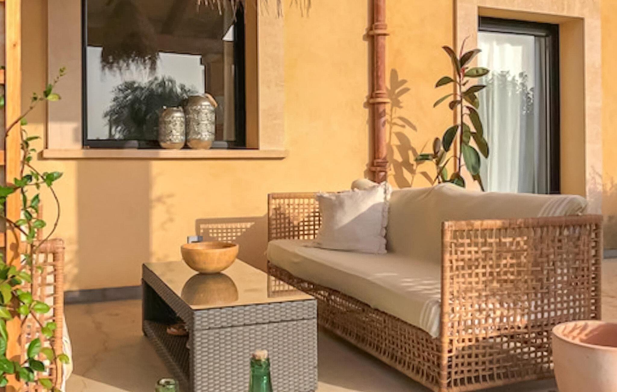 Flotte grus- og terrassearealer omgiver denne finca, som byder på et stilfuldt feriehus for op til 6 personer i det smukke sydlige Mallorca. Frugttræer som granatæbler, blommer og figner præger det rummelige område, ligesom rustikke oliventræer. Lige ved siden af huset kan I sidde hyggeligt i stuen eller spise sammen ved spisebordet. Den 20 m lange og usædvanligt store pool er et fantastisk sted at dyrke sport. Komfortable liggestole på den omkringliggende solterrasse inviterer jer til at slappe af. Hvis I ønsker det, kan I også finde et par naturlige skyggefulde områder her. Balkonterrassen byder på en vid udsigt, og der er også komfortable liggestole til rådighed. En muret kulgrill er tilgængelig til grillaftener. Husets rummelige interiør er trendy, moderne og hyggeligt. Der blev lagt megen kærlighed i udvalget af moderne møbler og tilbehør. Harmoniske farver, elegante gulve og masser af lys kendetegner også den meget smagfulde stemning, der strækker sig over to stueetager. I stueetagen er der stue og spisestue samt det stilfulde, fuldt udstyrede køkken. Til venstre for indgangen er der et soveværelse med dobbeltseng og et brusebad. På øverste etage er der yderligere to soveværelser, hvoraf det ene har eget brusebad. Huset har radiatorer og et varmt-koldt klimaanlæg og byder derfor på en behagelig opholdsoplevelse i hver sæson. Den er drevet af solenergi. Den moderne Mallorca finca "Son Grancampio" ligger i et landligt område og kun omkring 5 minutter i bil fra Campos, hvor I finder restauranter, barer og butikker til jeres daglige behov. Grundet den strategisk gode beliggenhed er vejforbindelserne ideelle. Nogle af de indbydende strande i det sydlige Mallorca ligger kun et kvarter væk fra fincaen, for eksempel det velkendte fine sandstrand Es Trenc. Bemærk venligst, at denne ejendom ikke accepterer ungdomsgrupper eller polterabender. En ungdomsgruppe på denne ejendom består af personer på 25 år eller derunder. Book ikke denne ejendom, hvis I er en ungdomsgruppe eller polterabend, da jeres reservation vil blive afvist, når den er booket, hvilket også kan være tilfældet ved ankomst til ejendommen eller under jeres ophold, og I vil ikke modtage en refusion. Elektricitet er inkluderet i prisen, hvis den anvendes hensigtsmæssigt. I det sjældne tilfælde, at dette beløb overskrides, vil I blive opkrævet gebyret kontant på stedet.