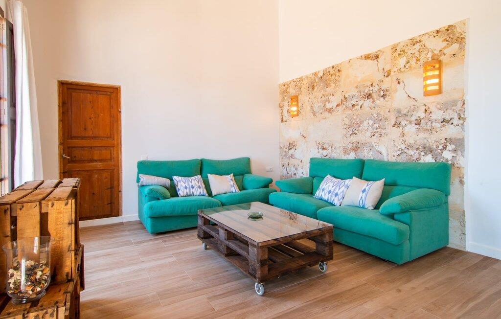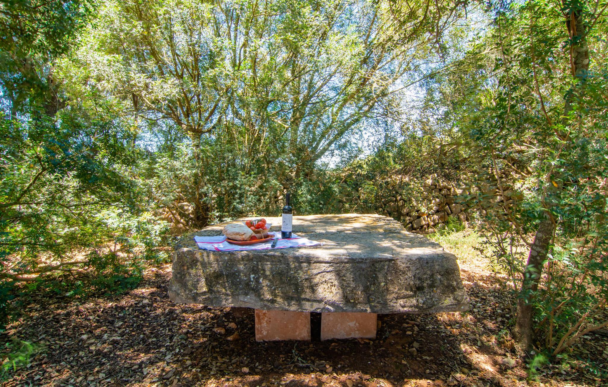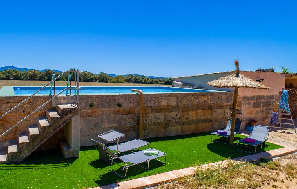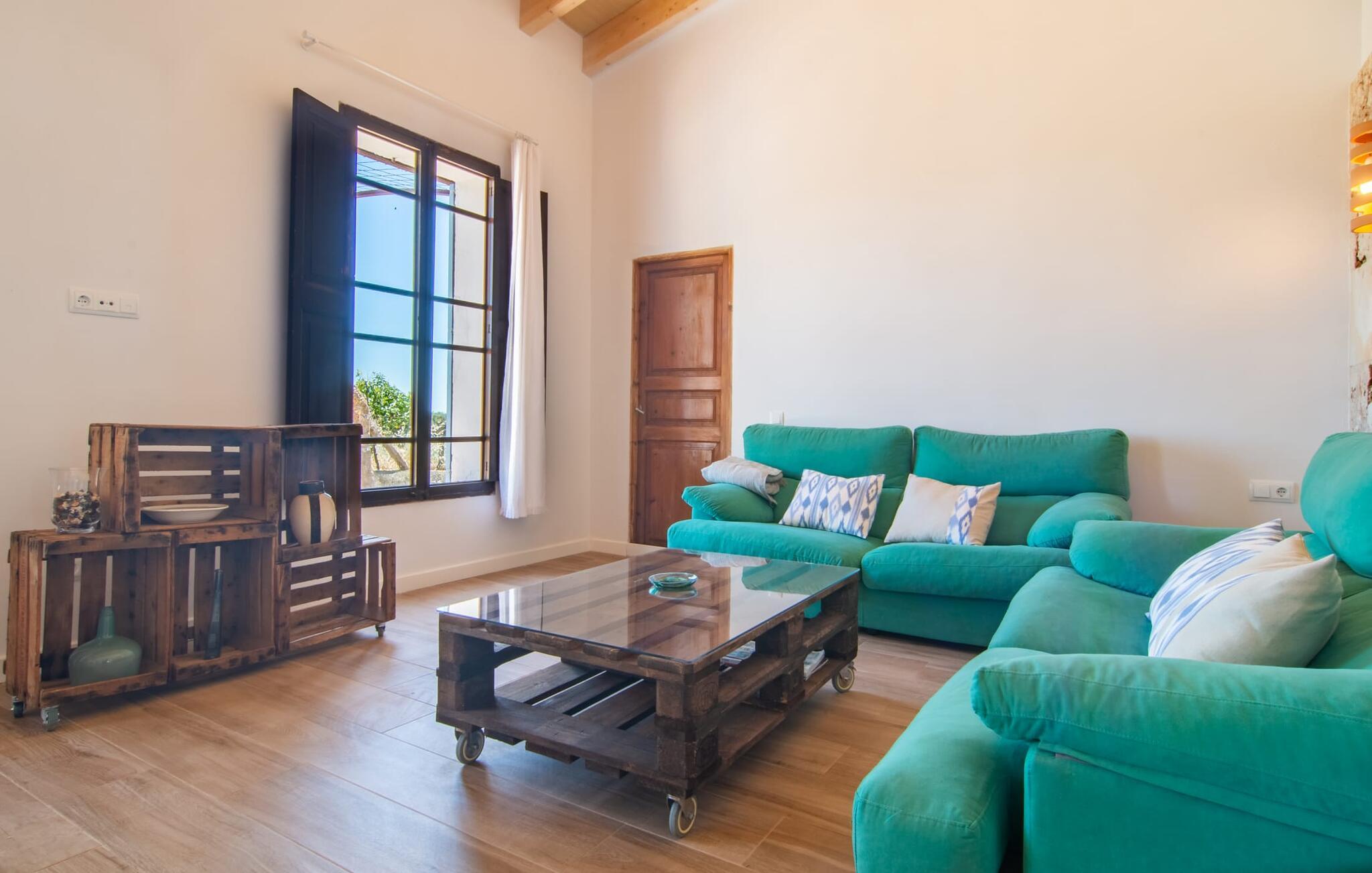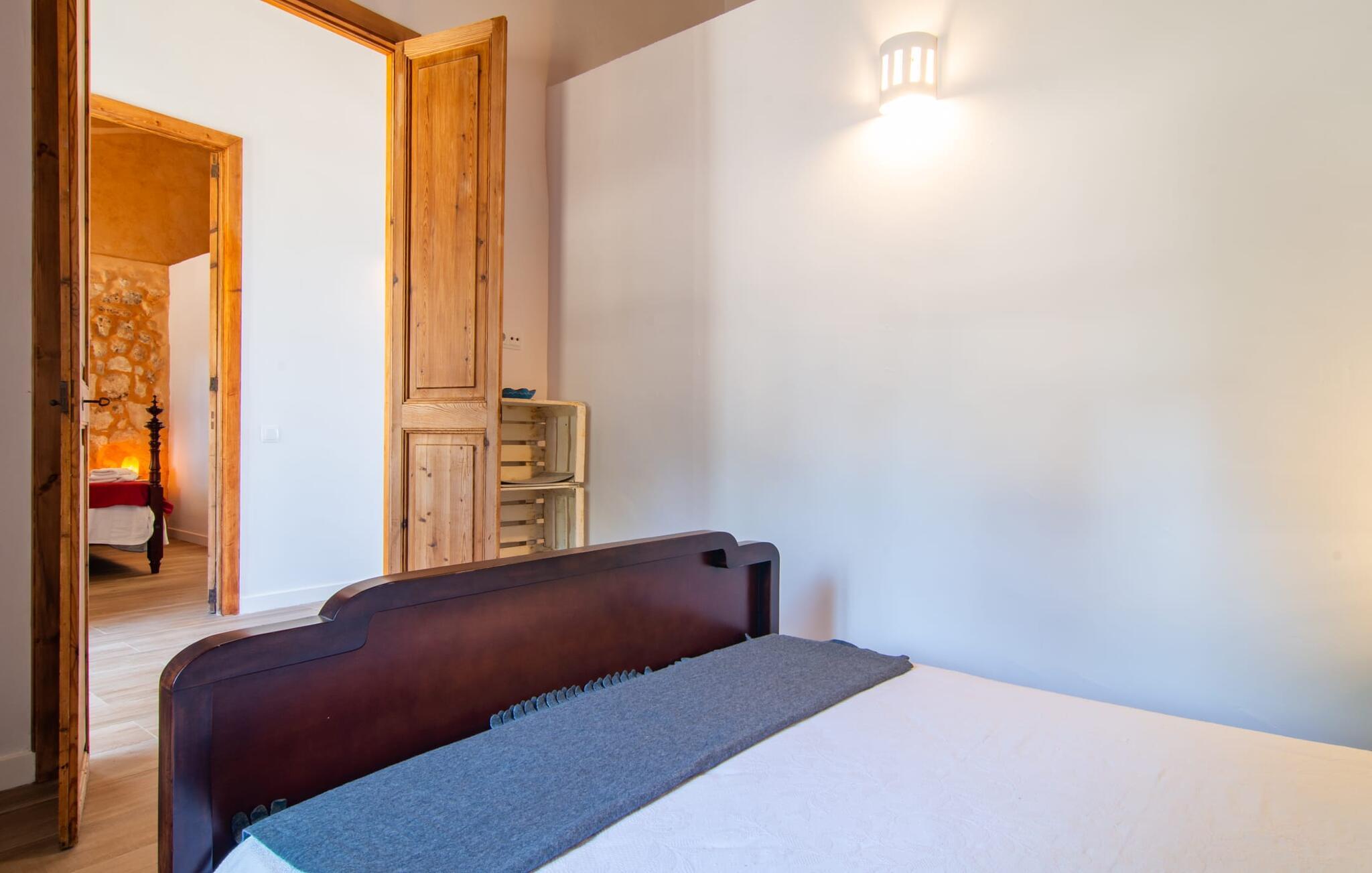Vælger I villaen “Son Julià”, bliver I belønnet – med en skøn beliggenhed, der byder på dejlige afslappende dage: Omgivet af marker og små skove er udeområdet som en oase. Og der er selvfølgelig også en pool at køle af i. Med en størrelse på 8 x 4 m byder poolen på masser af plads til at plaske rundt og svømme efter hjertens lyst. Herfra er udsigten så bred, at I endda kan se foden af Tramuntana-bjergene i det fjerne. Der er en skyggefuld spiseplads i det overdækkede udekøkken, hvor I kan nyde de friske lækkerier fra grillen. Villaen har desuden en hyggelig terrasse, hvis tag er delvist dækket af vilde, skyggefulde vinstokke. Direkte foran poolen har I også mulighed for at slappe af på komfortable liggestole under en halmparasol. Hvis I leder efter et sted at holde en udendørs picnic, finder I et godt sted under trætoppene lidt længere fra huset. Husets autentiske stenbrudsfacade skaber en helt særlig atmosfære, der er typisk for steder, der er gennemsyret af historie. Selve huset er moderne og enkelt indrettet, med en god sans for praktisk æstetik. Stue, køkken og spiseplads flyder problemfrit ind i hinanden. Der er plads til alle jeres indkøb i det store køleskab. Så I kan spise frisk og sund hver dag - gaskomfuret kan tændes på ingen tid for at varme jeres opvask op. En emhætte sørger for, at madlavningslugte ikke holder længere end nødvendigt. De to soveværelser er hver udstyret med en dobbeltseng lavet af mørkbejdset træ, og de komfortable madrasser vil gøre deres bedste for at give jer himmelske drømme. Et af værelserne har eget badeværelse. Her og i husets andet badeværelse er de farverige fliser i bruseren særligt iøjnefaldende og formidler en middelhavsglæde. At en del af den oprindelige stenfacade er fritlagt inde i huset, øger ejendommens rustikke behagelig faktor markant. Eventyrere, sportsentusiaster og vandelskere - de behøver alle ikke at rejse langt fra Villa "Son Julià" for at finde det, der gør dem glade. I kan vandre gennem floraen direkte fra ejendommen. Eller I kan bestige et kloster 2 km fra Porreres, Santuari de Monti-Zion, hvis historie kan spores tilbage til 1348. Klippeslottet Castell de Santueri og San Salvador-klosteret nær Felanitx er også et besøg værd. På de duftende ugentlige markeder kan I smage de abrikoser, der er typiske for Porreres. Bodegaerne i Porreres er også et besøg værd for at smage øens vine. Ma-5100 er let tilgængelig fra ejendommen, hvilket betyder, at I kan nå de forskellige strande på østkysten inden for en halv time. Villaen “Son Julià” ligger 15 minutters kørsel fra landsbyerne Porreres (8,5 km) og Felanitx (9,5 km) - her finder I alt hvad I behøver til jeres daglige behov, cafeer, bodegaer og barer runder tilbuddet af. I finder et endnu større udvalg i Campos eller Manacor, begge 18 km væk. De smukke sandstrande på øst- og sydkysten, herunder Cala Marçal eller Es Trenc, kan nås på cirka en halv time i bil.