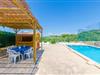Køkken(komfur, kaffemaskine, mikrobølgeovn), soveværelse(2x enkeltseng), soveværelse(dobbeltseng), soveværelse(dobbeltseng), badeværelse, badeværelse, badeværelse, køle-fryseskab, bruser, bruser, bruser, håndvask, håndvask, håndvask, toilet, toilet, toilet, have, havemøbler, 6x solstole, grill, swimmingpool, bordtennisbord, barneseng, barnestol