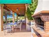 Villaens rummelige poolterrasse med luksuriøse træliggestole og parasoller tilbyder et vidunderligt afslapningsområde. Selve poolen er ideel til banesvømning, mens et lavvandet område sikrer sikker sjov for børn. En rummelig, overdækket terrasse med indbygget grillplads lægger op til at spise under åben himmel, og smagfulde lanterner sørger for, at aftenbadning er lige så behagelig. Skyggen fra de omkringliggende træer øger komforten på varme dage.