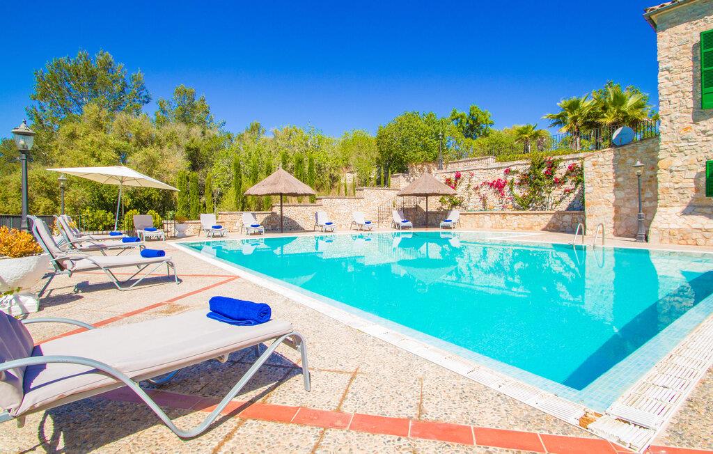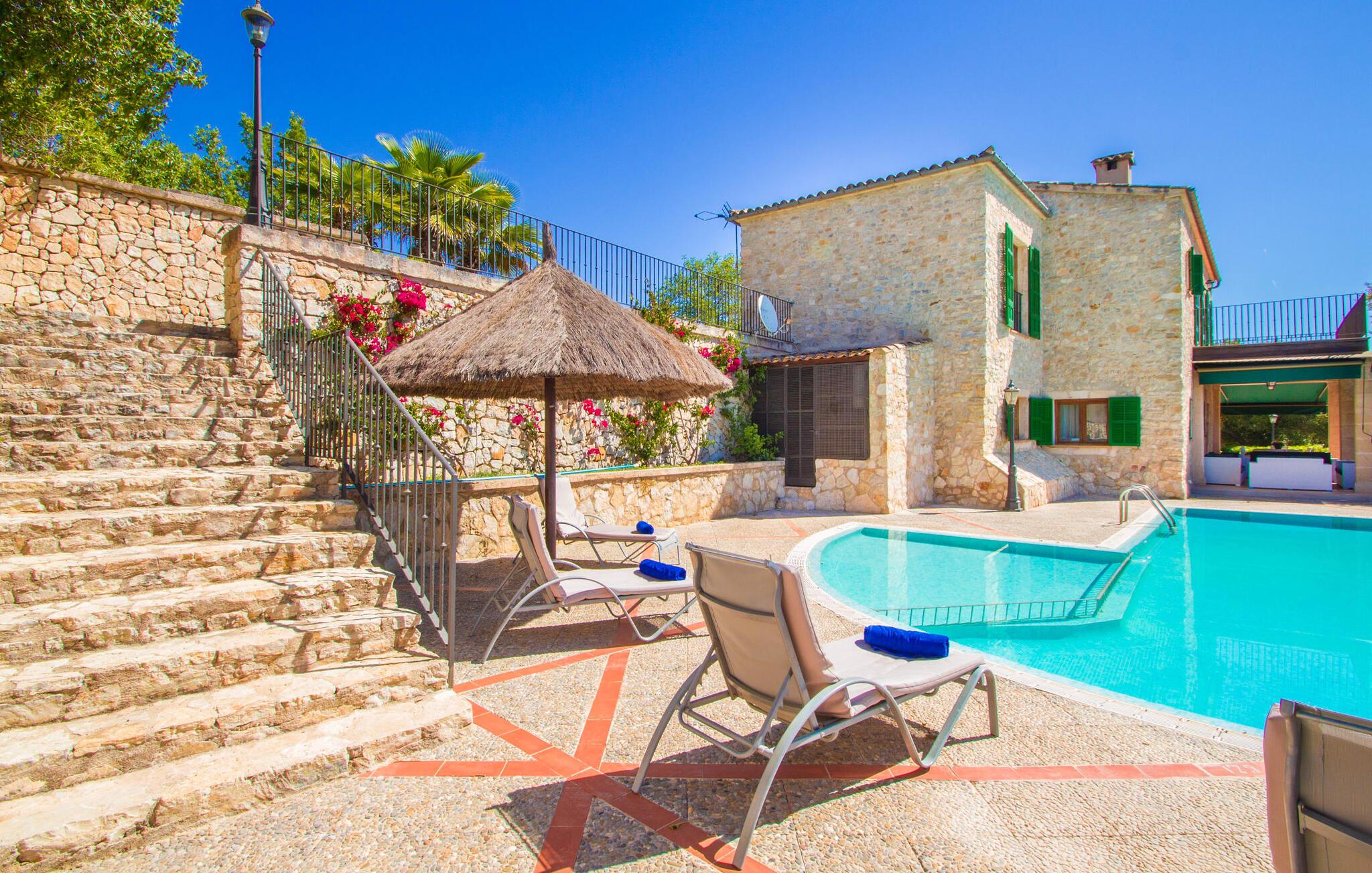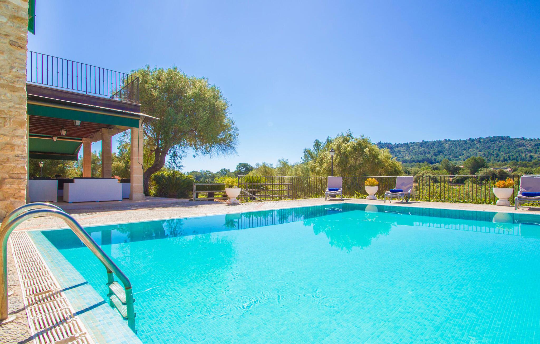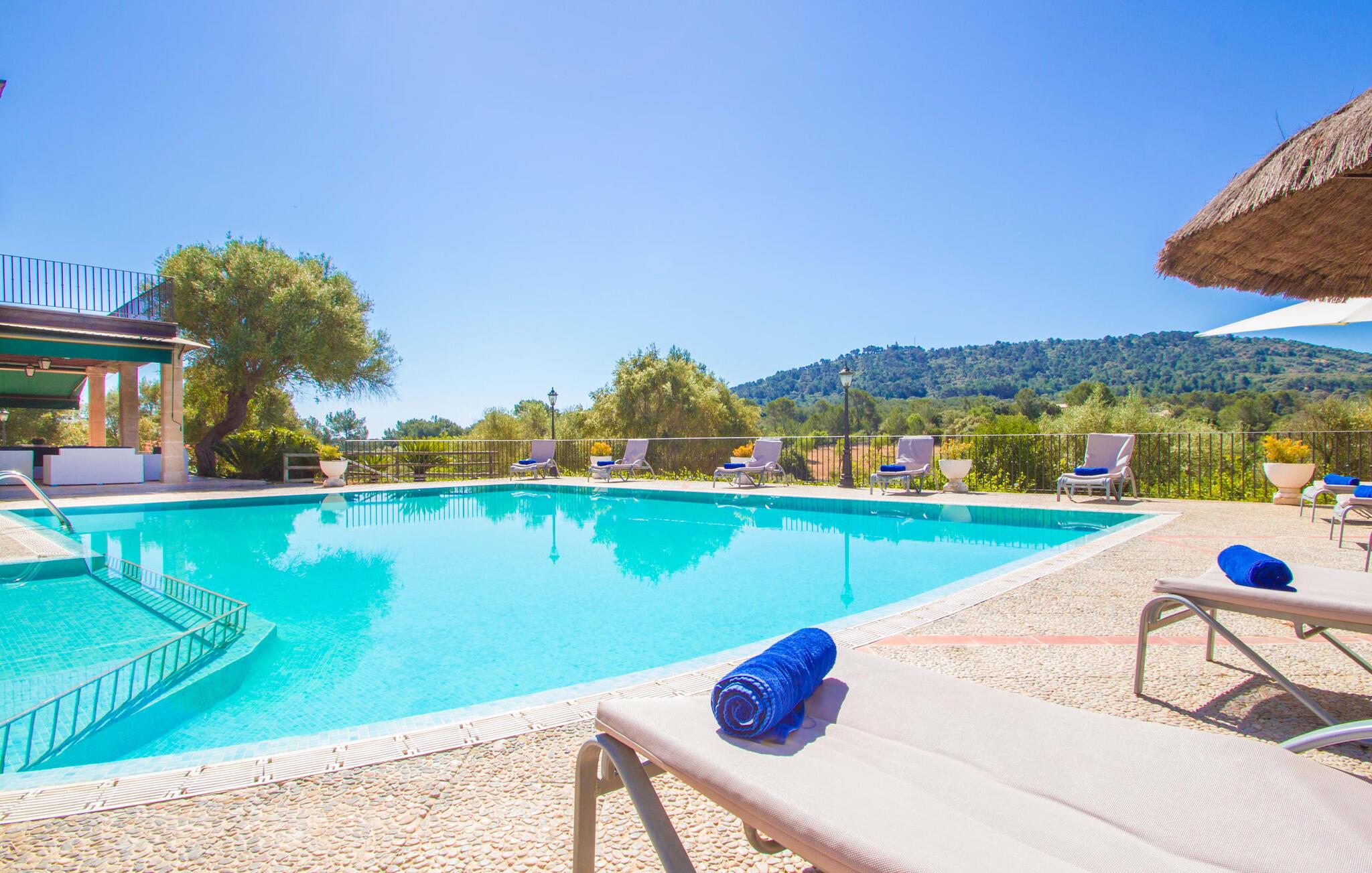 Denne luksusvilla ligger i den østlige del af Mallorca og tilbyder en sensationel udsigt over Puig de Bonany. Hvis I vil shoppe, skal I blot køre til nabobyen Petra, hvor I finder adskillige supermarkeder, barer og restauranter. De smukke strande Son Real og Son Serra er inden for rækkevidde.