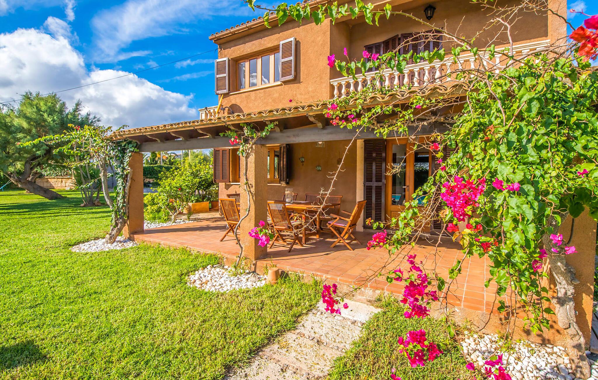 Den charmerende villa "Son Moro Vell" tilbyder den perfekte blanding til en ferie fuld af idyllisk fred og spændende oplevelser! Det skyldes i høj grad den fantastiske beliggenhed. Selvom I er i umiddelbar nærhed af byen, med alle muligheder for en varieret fritidsaktivitet, er villaen stadig så landligt beliggende, at der er garanteret en landlig stemning. Ved første øjekast er villaens smukke udendørsområde slående. En rummelig have inviterer jer til at blive hængende. Her finder I ikke kun et gennemtænkt plantelayout, men også komfortable liggestole, en forfriskende pool og endda en hængekøje, der inviterer til afslapning. Der er også to små siddepladser, hvor I kan nyde en drink eller to. På den overdækkede terrasse finder I det store spisebord, hvor I kan spise efter hjertens lyst. Lækre lækkerier kan tilberedes i det lille udekøkken med grill. Omgivet af det smukke landskab er madlavning dobbelt så sjovt! Og foretrækker I et fuldt udstyret køkken mellem fire solide vægge, så er det netop det, I finder i villaen. I den hyggelige, rustikke atmosfære kan I hugge og lave mad efter hjertens lyst. Husets øvrige rum har også meget at byde på. Stuen og spisestuen er i åbent plan, og de store vinduespartier sikrer, at rummet er lyst og luftigt. De store sofaer inviterer jer til at slappe af, dase og se tv. Og en af de komfortable gyngestole er bestemt ideel til en hyggelig læsetime. Når I bliver træt om aftenen, skal I bare gå op ad trætrappen med fortryllende farverige fliser og vælge et af de pragtfulde soveværelser på første sal. Hvad med en stor dobbeltseng? Eller vil I hellere have en af de elegante enkeltsenge? Valget er dit! Til de mindste gæster er der en sød barneseng til rådighed, som tilbyder et fantastisk sted at slumre og drømme. Et af de rummelige badeværelser kan bruges til brusebad om morgenen. Her er god plads og indretningen lader intet tilbage at ønske. I kan også opfylde mange ønsker i området omkring villaen. Der er mange måder at skabe uforglemmelige ferieminder på. De landlige omgivelser indbyder til lange gå- og vandreture. Og for fans af lidt mere action, tilbyder ejendommens beliggenhed tæt på vejen et godt udgangspunkt for at køre til forlystelsesparken i Cala Millor eller Safari Zoo i Sa Coma, kun få minutter væk. Især yngre gæster vil helt sikkert få noget for pengene her. I Cala Millor finder I også utallige butikker, hvor I kan købe smukke feriesouvenirs. Og de fantastiske restauranter venter bare på, at I skal besøge. Herligheder er garanteret! Og vil I tilbringe en afslappende dag, så pak en picnickurv og et par badehåndklæder i bilen og tag til Mallorcas østkyst, som kun ligger få minutter væk i bil. Der er adskillige strande på begge sider, som bestemt er et besøg værd. Den smukke villa "Son Moro Vell" ligger på en rummelig ejendom i den smukke østlige del af De Baleariske Øer i udkanten af Cala Millor. Byen tilbyder alt til jeres daglige behov; fra supermarkedet til apoteket og adskillige restauranter og butikker. Og kysten med sine mange flotte sandstrande ligger kun 900 m væk i luftlinje.