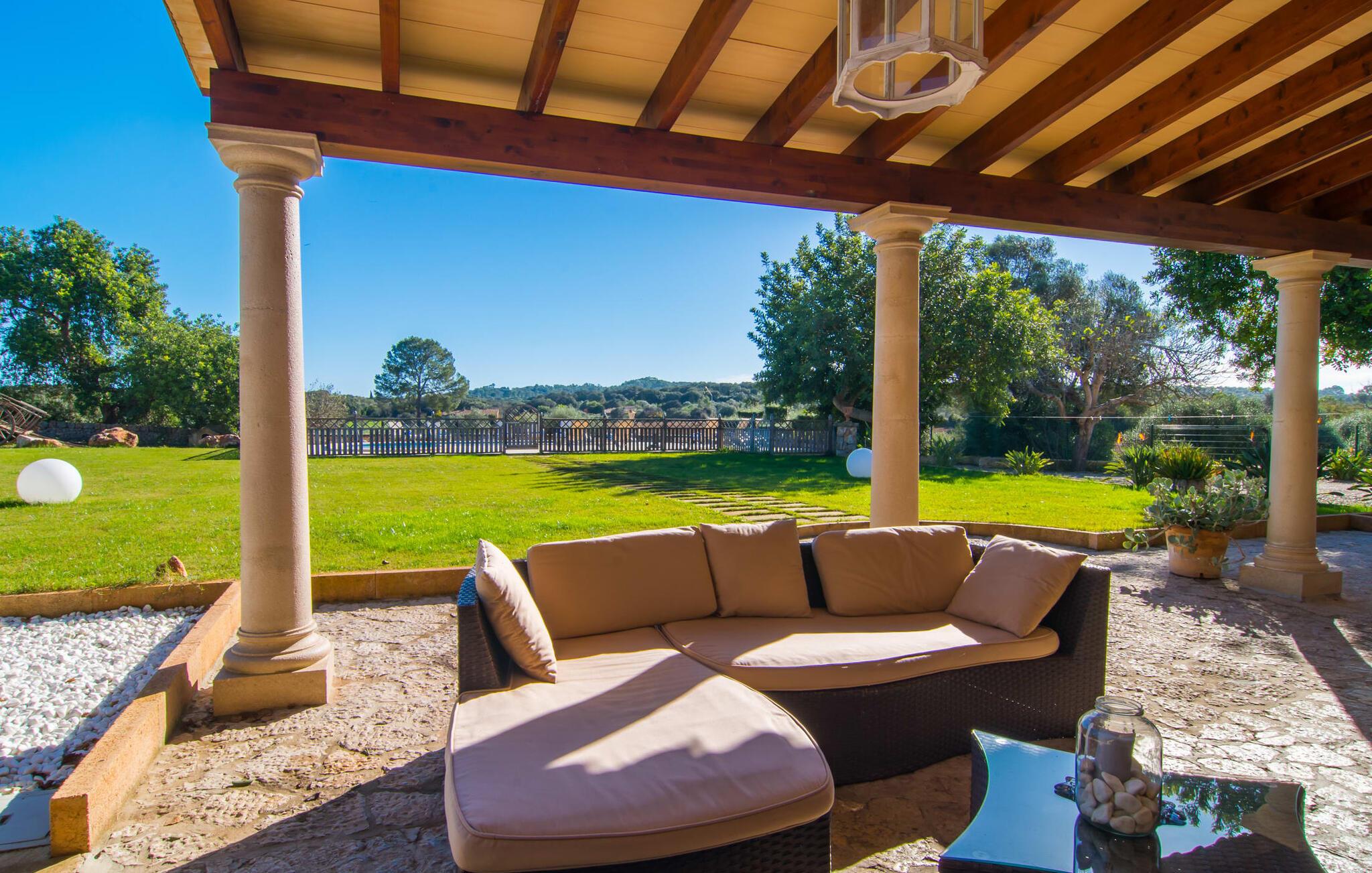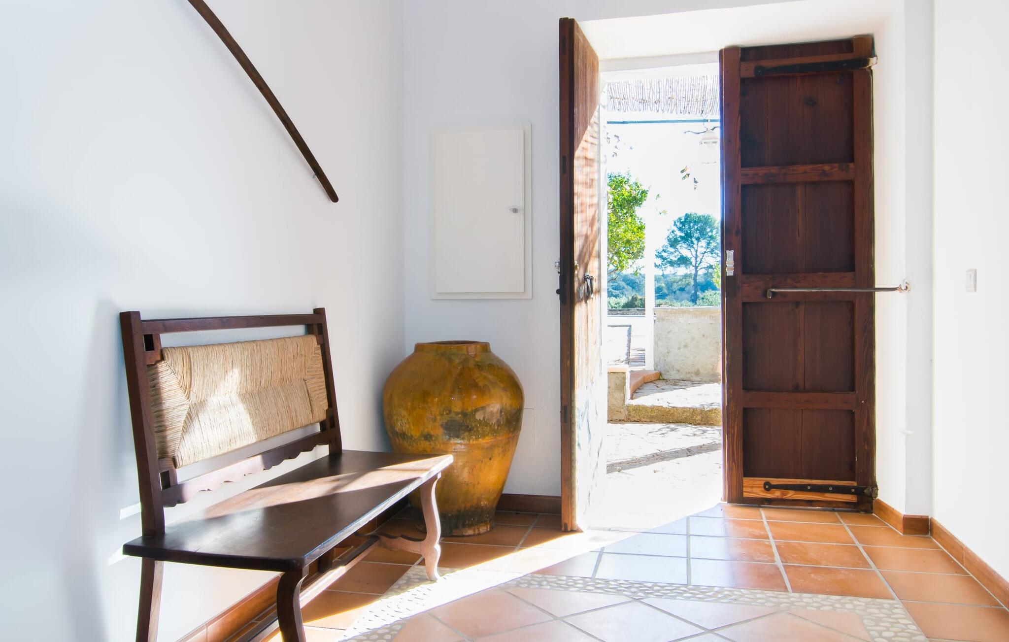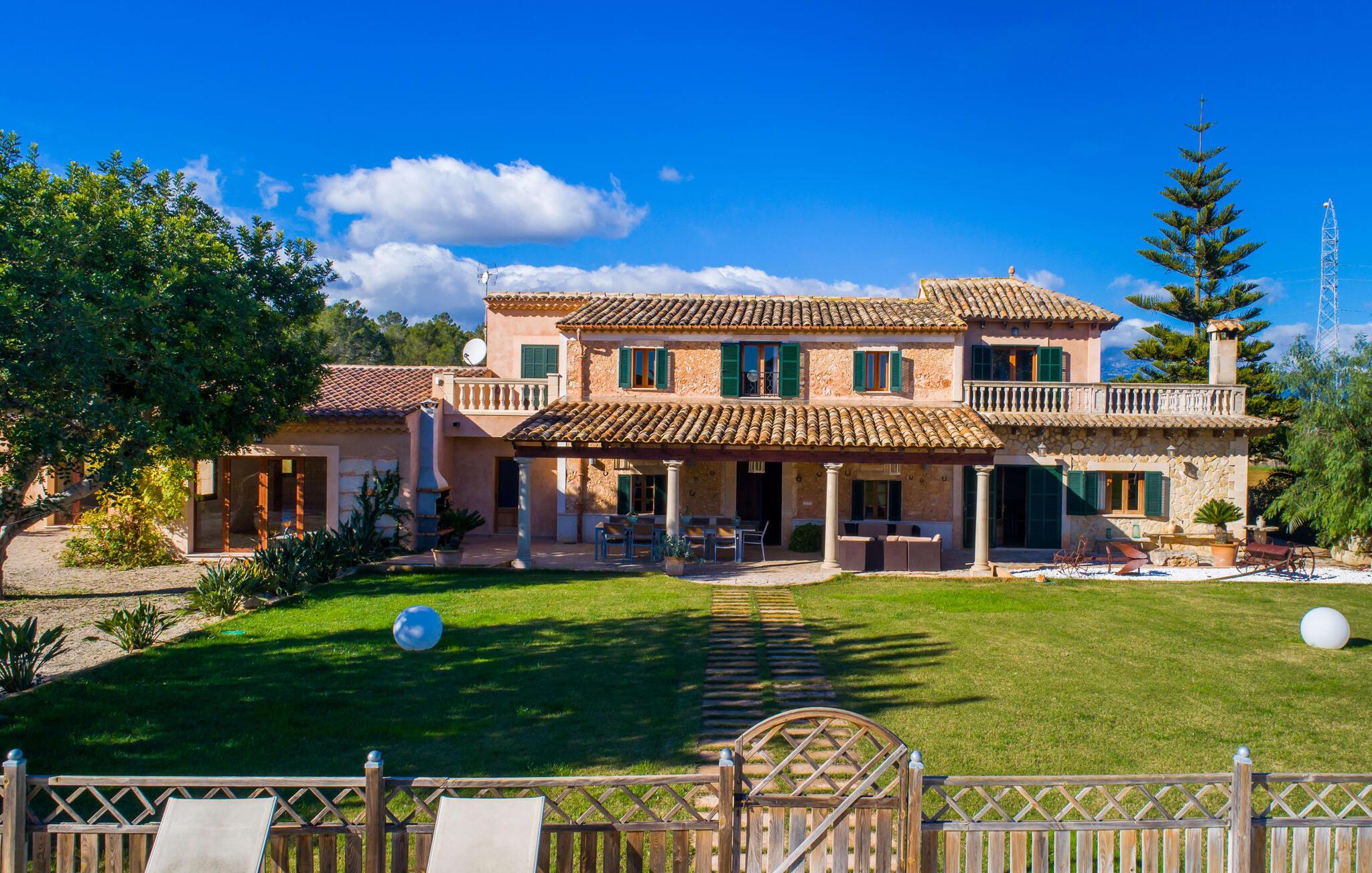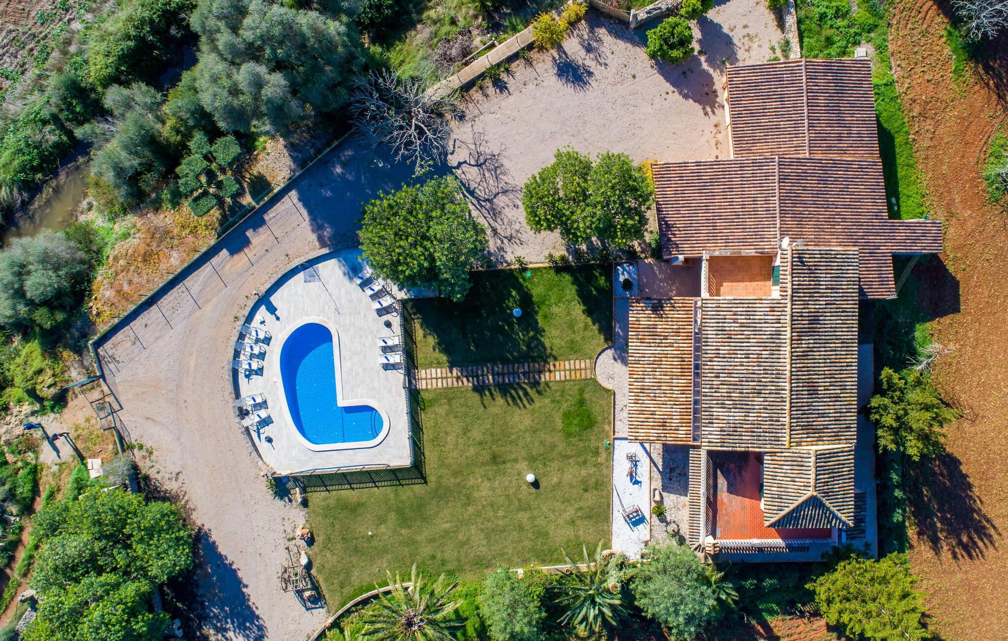 Hvis væggene i den omhyggeligt renoverede villa "Son Nadal" kunne tale, ville de afsløre det "gamle" Mallorcas rige historie. Denne imponerende ejendom på 80.000 m² byder på levn fra sin landbrugsfortid, herunder en brønd og en træplov, omgivet af gamle palmer og oliventræer. En asfalteret sti fører fra den skyggefulde terrasse til det smukke poolområde, omgivet af en stensolterrasse, hvor I kan slappe af under store parasoller. På den overdækkede terrasse er der et langt spisebord, hvor man kan nyde sommerretter, måske tilberedt på grillen. Indvendigt kombinerer villaen traditionel charme med moderne komfort. Den åbne stue er smagfuldt indrettet og har en åben pejs. Seks soveværelser kan rumme op til tolv gæster, hvoraf fem har aircondition og et med ventilator. Med fire stilfulde badeværelser og rummelige opholdsområder er denne villa ideel til familier. Fincaen "Son Nadal" er beliggende i en smuk afsondret beliggenhed i den smukke landsby Costitx, i hjertet af øen. Den vidunderlige ejendom er beliggende i en meget rolig naturlig beliggenhed, mellem de større byer Inca og Sineu. Fra denne centrale beliggenhed kan I nemt og hurtigt nå alle øens byer og strande. Lørdag er der et ugentligt marked på pladserne Mare de Deu og Del Jardi. Bemærk venligst, at denne ejendom ikke accepterer ungdomsgrupper eller polterabender. En ungdomsgruppe på denne ejendom består af personer under 25 år. Book ikke denne ejendom, hvis I er en ungdomsgruppe eller polterabend, da jeres reservation vil blive afvist, når den er booket, hvilket kan være ved ankomsten til ejendommen eller under jeres ophold, og I vil ikke modtage en refusion.