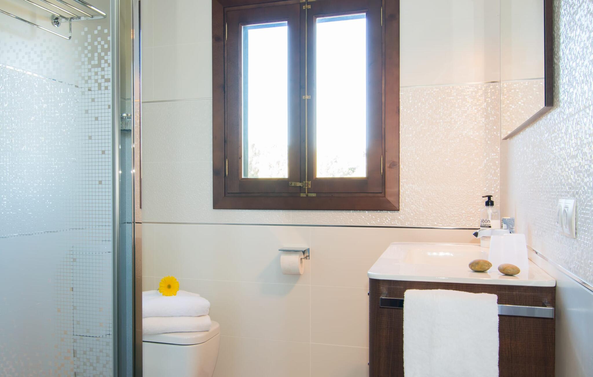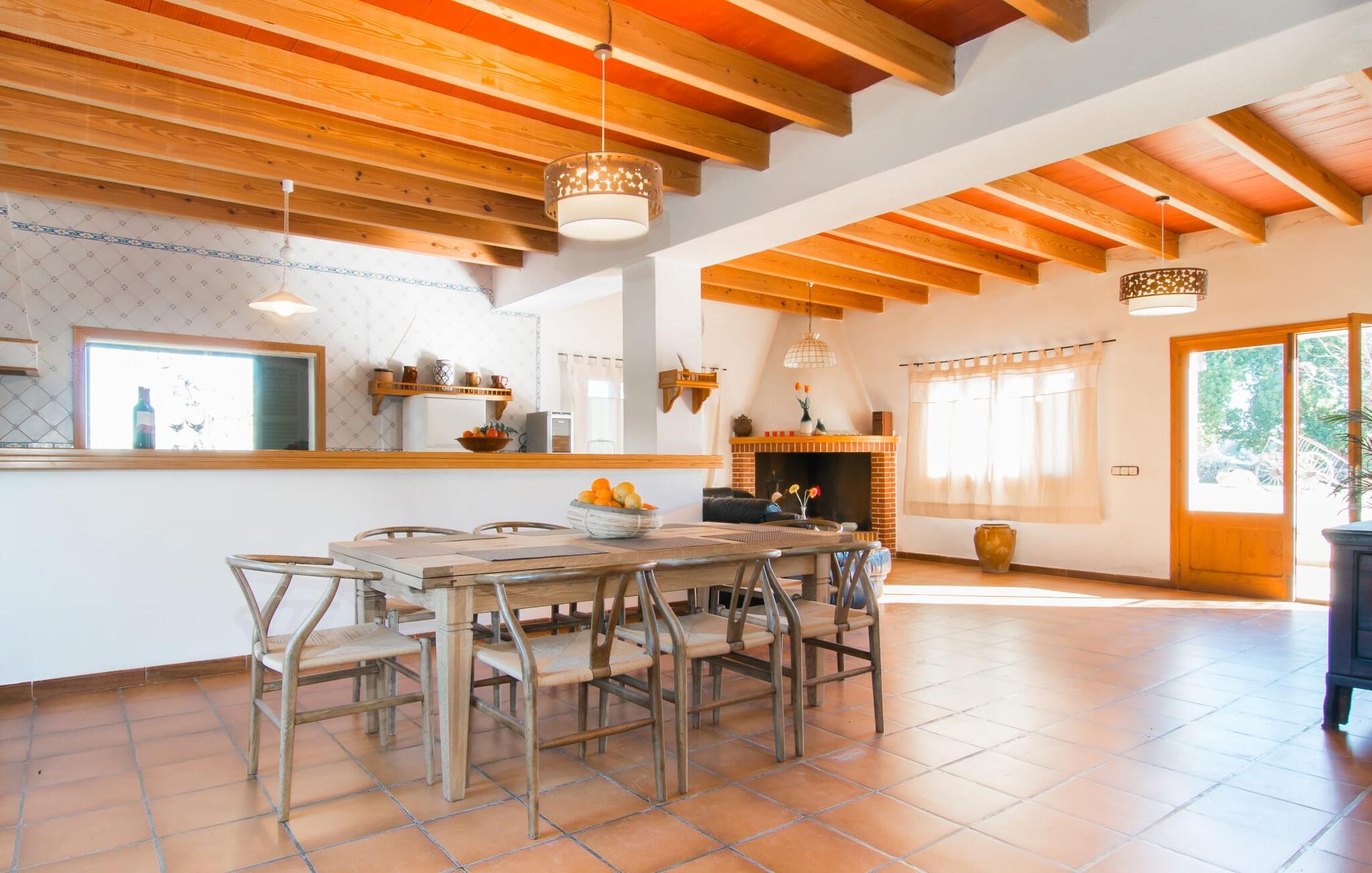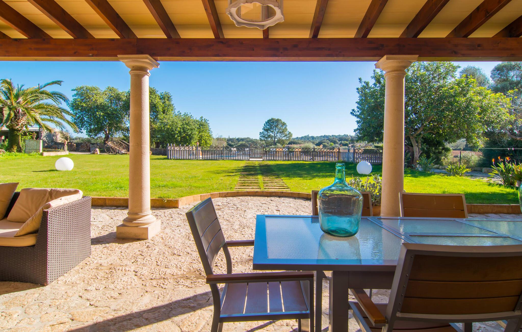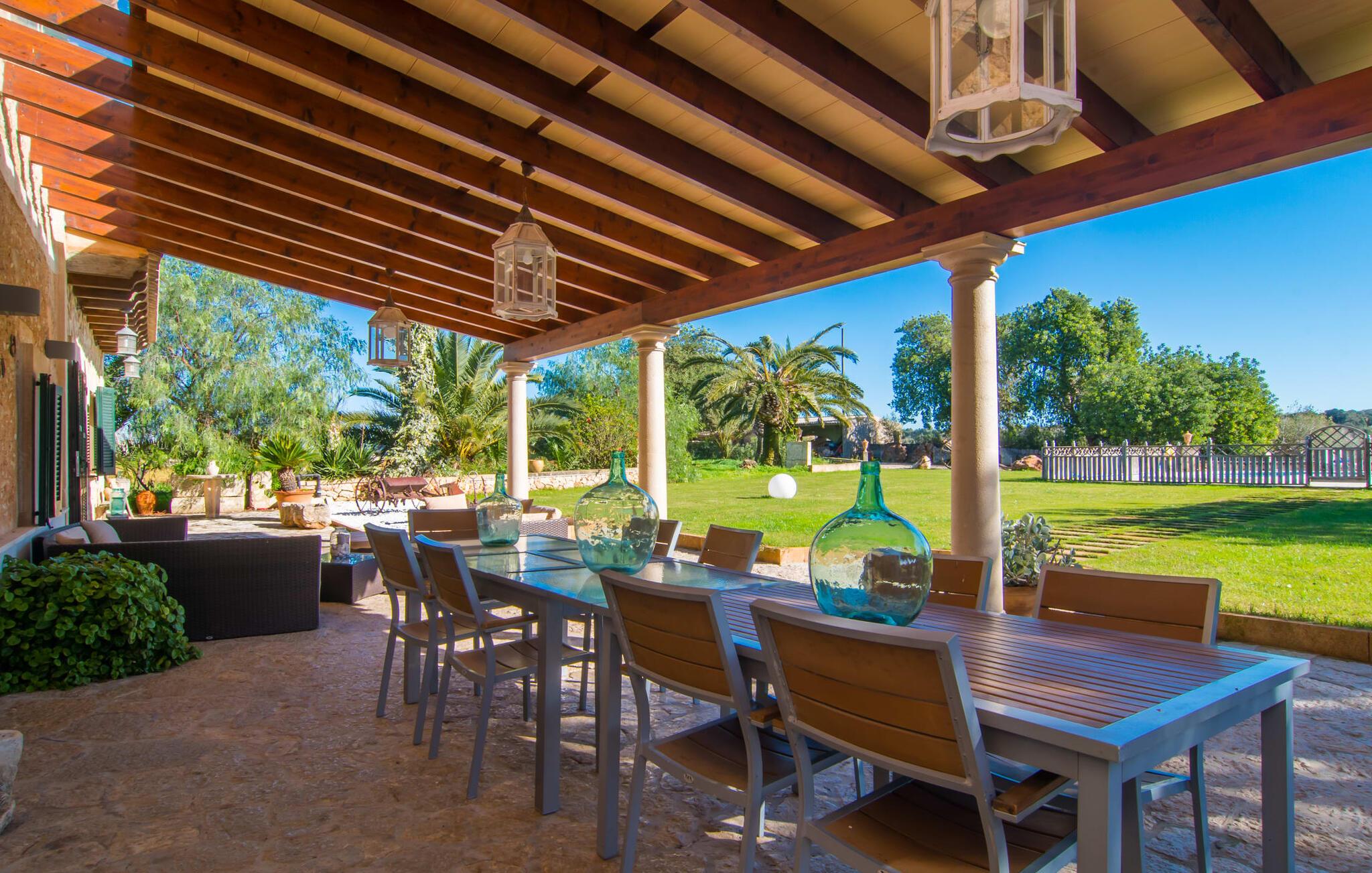 Hvis væggene i den omhyggeligt renoverede villa "Son Nadal" kunne tale, ville de afsløre det "gamle" Mallorcas rige historie. Denne imponerende ejendom på 80.000 m² byder på levn fra sin landbrugsfortid, herunder en brønd og en træplov, omgivet af gamle palmer og oliventræer. En asfalteret sti fører fra den skyggefulde terrasse til det smukke poolområde, omgivet af en stensolterrasse, hvor I kan slappe af under store parasoller. På den overdækkede terrasse er der et langt spisebord, hvor man kan nyde sommerretter, måske tilberedt på grillen. Indvendigt kombinerer villaen traditionel charme med moderne komfort. Den åbne stue er smagfuldt indrettet og har en åben pejs. Seks soveværelser kan rumme op til tolv gæster, hvoraf fem har aircondition og et med ventilator. Med fire stilfulde badeværelser og rummelige opholdsområder er denne villa ideel til familier. Fincaen "Son Nadal" er beliggende i en smuk afsondret beliggenhed i den smukke landsby Costitx, i hjertet af øen. Den vidunderlige ejendom er beliggende i en meget rolig naturlig beliggenhed, mellem de større byer Inca og Sineu. Fra denne centrale beliggenhed kan I nemt og hurtigt nå alle øens byer og strande. Lørdag er der et ugentligt marked på pladserne Mare de Deu og Del Jardi. Bemærk venligst, at denne ejendom ikke accepterer ungdomsgrupper eller polterabender. En ungdomsgruppe på denne ejendom består af personer under 25 år. Book ikke denne ejendom, hvis I er en ungdomsgruppe eller polterabend, da jeres reservation vil blive afvist, når den er booket, hvilket kan være ved ankomsten til ejendommen eller under jeres ophold, og I vil ikke modtage en refusion.