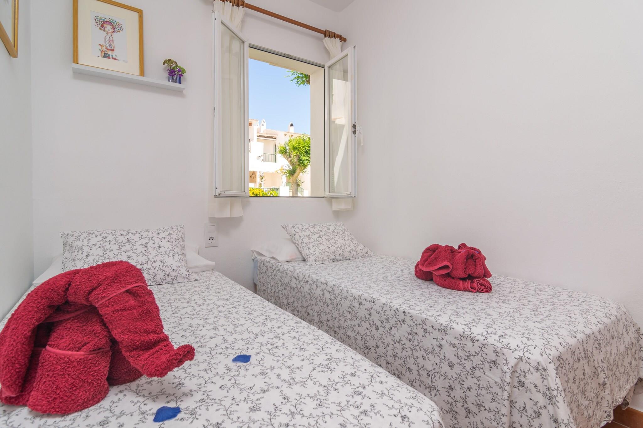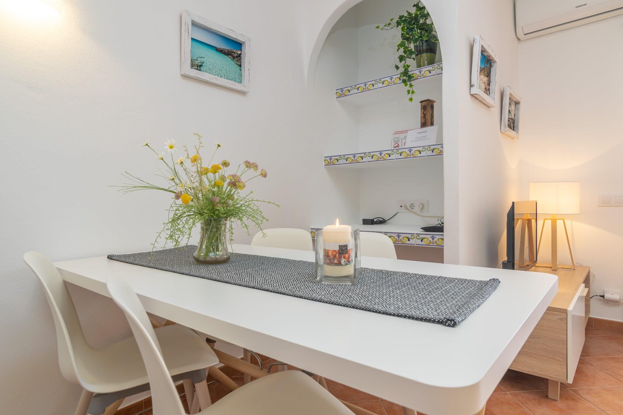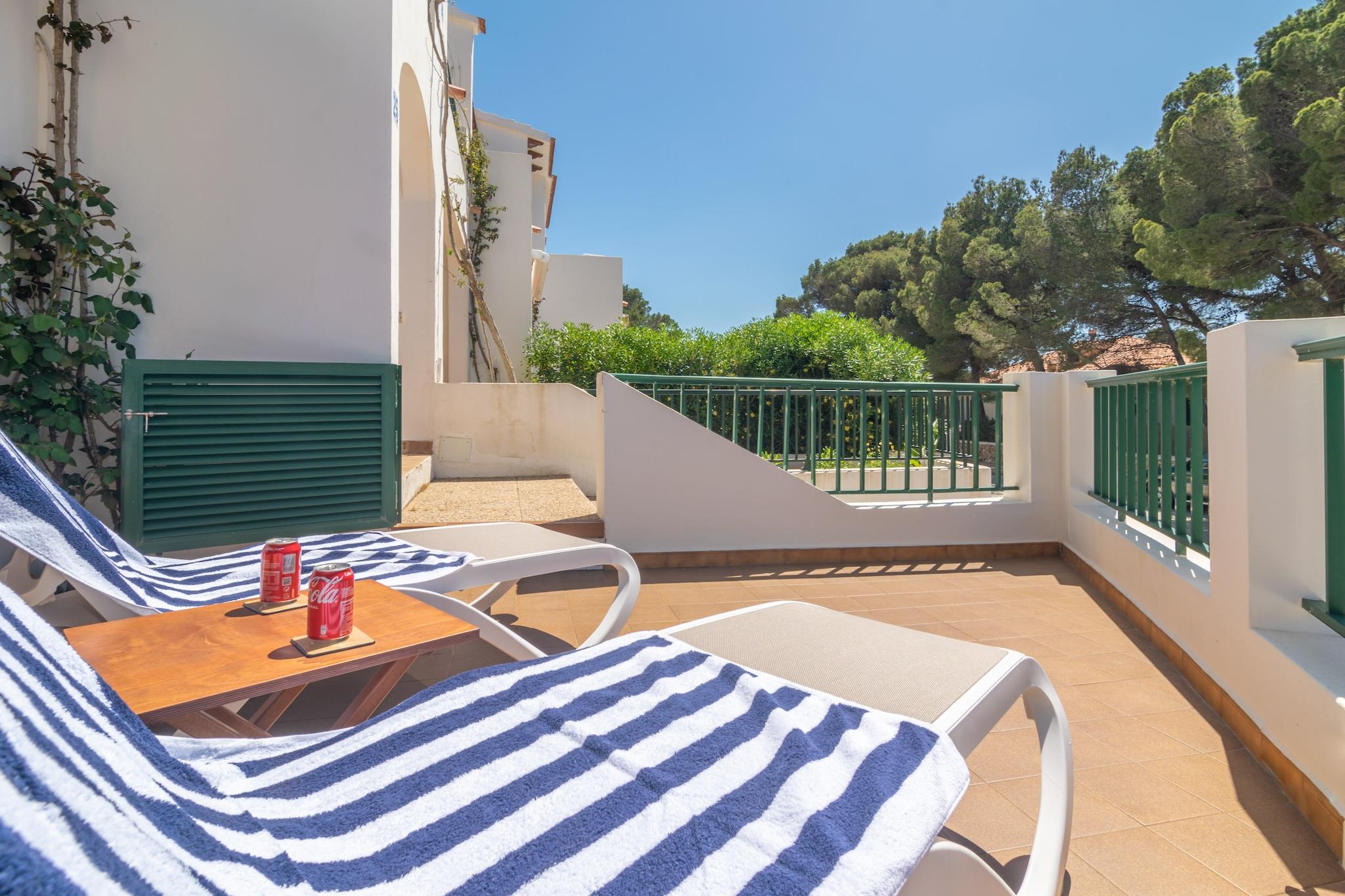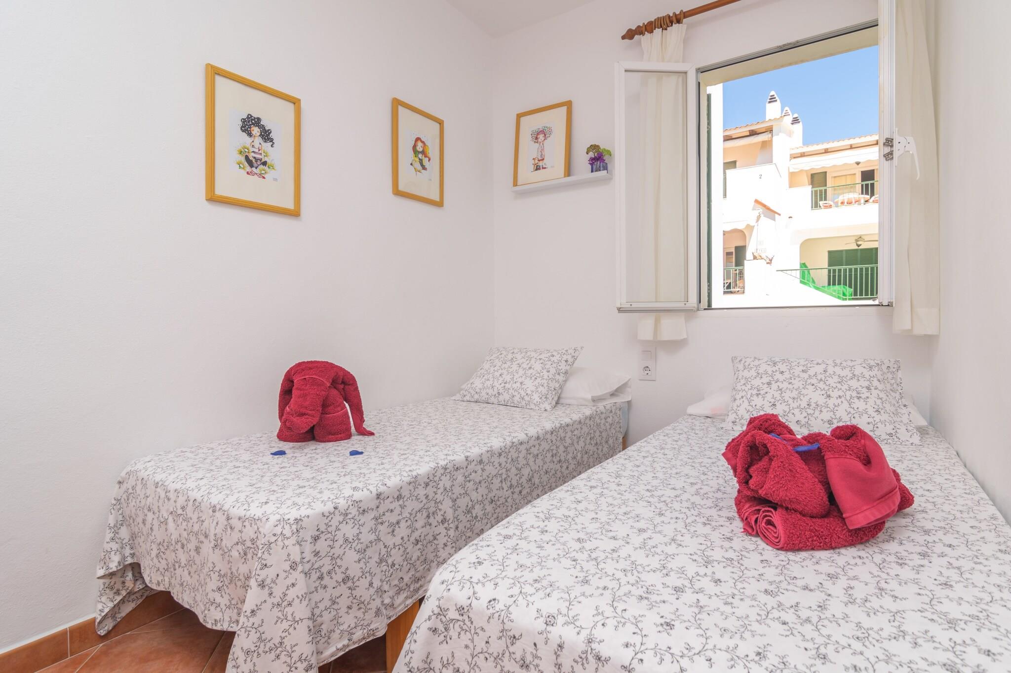 Ydersiden af lejlighedskomplekset vil overføre dig den autentiske Menorca-essens. Når du slentrer gennem dens smukke haver, kommer du til en fælles klor-swimmingpool med et børneområde. Den måler 20x10m og dens dybde varierer mellem 0,5m og 2m. Når du er i lejligheden, vil du være i stand til at nyde en terrasse, hvor du kan slappe af i solen eller få noget at spise med din familie og venner På grund af sin beliggenhed i en bygning har lejligheden direkte naboer. Det indre af lejligheden er designet til din afslapning. Stue-spisestuen har AC og TV og er åben til køkkenet, som er udstyret med alt hvad du behøver for at tilberede lækre måltider. Der er også vaskemaskine, strygejern og strygebræt i huset. Når det er tid til at sove, finder du 2 soveværelser, et med dobbeltseng og et med to enkeltsenge. Der er også et badeværelse med bruser. Lejligheden ligger i en rigtig privilegeret enklave, da mange seværdigheder er tæt på. Således er de magiske landsbyer Es Mercadal og Fornells, som bevarer al den minorcanske essens, kun få kilometer væk. Begge er perfekte til at vandre blandt deres hvidkalkede bygninger og nyde de bedste restauranter, hvor du kan nyde typiske retter fra øens gastronomi. Turistlicens: ET2610ME Som reaktion på Coronavirus (COVID-19) er yderligere sikkerheds- og sanitære foranstaltninger i kraft på denne ejendom.