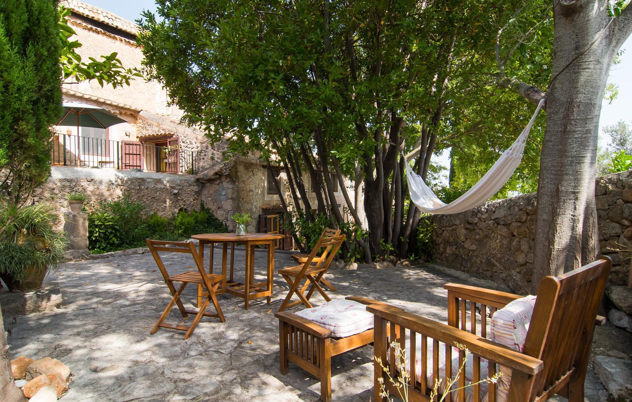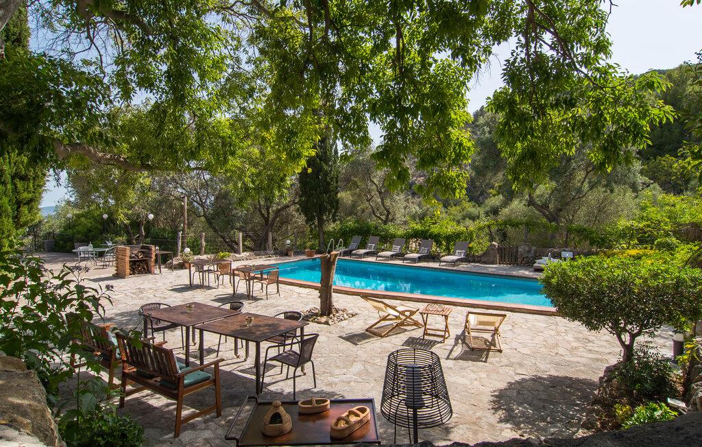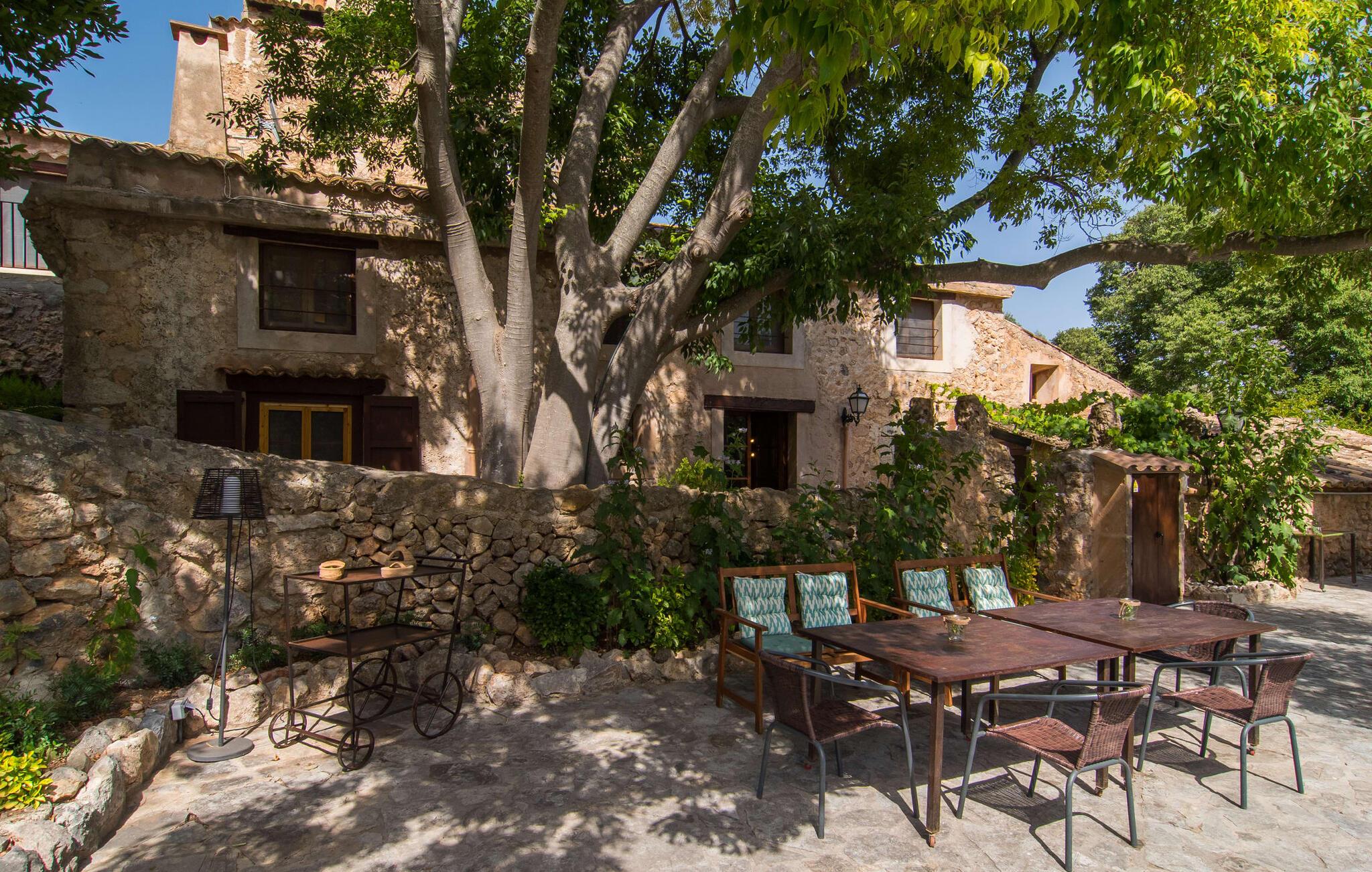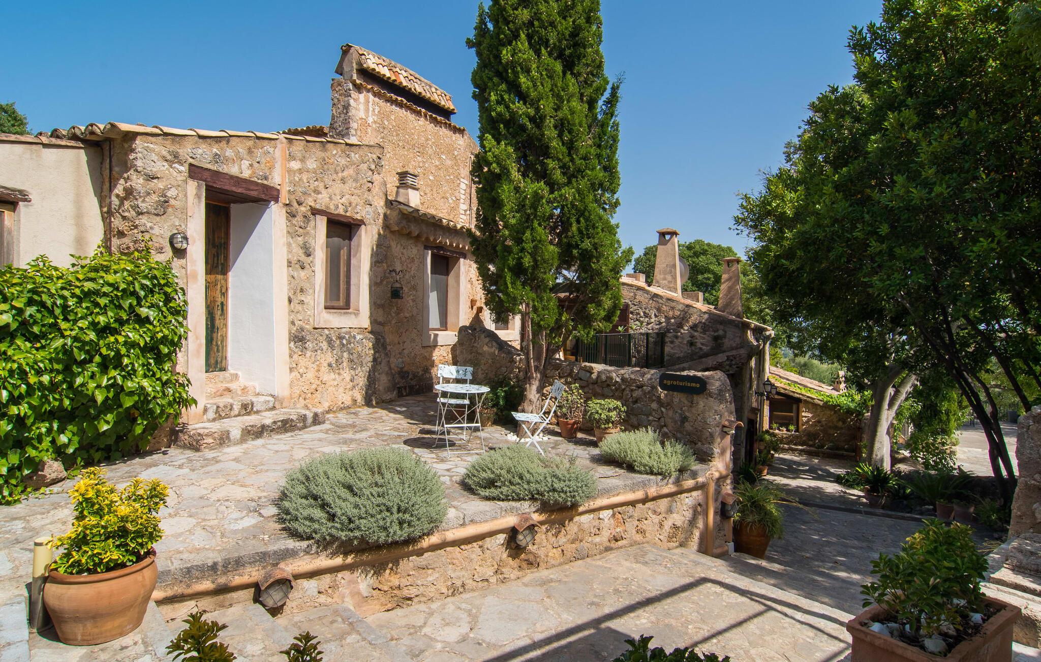 Den majestætiske ejendom "Son Penyaflor Agroturismo" med over 16 hektar jord i spektakulære landlige omgivelser ligger i det lidt bemærkede centrum af øen nær Alaró. Langt væk fra masseturismen kan I opleve naturens skønhed i ubekymret stilhed. Nyd den smukke have på den rummelige lejefinca fuld af oliventræer, cypresser, palmer og en frugthave, og tilbring en ubekymret ferie der. Her kan I være ét med naturen, vandre, meditere eller køle af i den forfriskende pool med omgivende solterrasse. Områder til solbadning og talrige smukt designede siddepladser, hvoraf nogle er overdækkede, giver jer komfortable muligheder for aktiv eller afslappet afslapning. Bortset fra naturens lyde vil intet distrahere jer fra jeres ferie. Her kan I nyde jeres morgenmad sammen og en hyggelig grillaften - måske med et godt glas mallorcansk vin fra den venlige driftsfamilie - i en idyllisk atmosfære. I denne fortryllende smukke leje finca vil I opdage et sandt paradis af enestående skønhed, der er uden sidestykke. Der er næppe bedre rammer for at sætte farten ned end dette bæredygtigt renoverede feriehus. Spor af Mallorcas historie kan også findes inde som en tidligere landejendom. De synlige stenmure og andre traditionelle detaljer er blevet dygtigt fremvist og overgået af moderne komfort. Resultatet er en næsten utraditionel planløsning med to hyggelige stuer med pejse og syv soveværelser, hver med en-suite badeværelser. Disse er i etager, et par trin fører jer fra soveværelset til badeværelset, og nogle har et opholdsområde med plads til en suite. Det er denne ekstra komfort, der gør huset ideelt til mange personlige konstellationer - det være sig en tur til familie- eller firmajubilæum eller en ferie med venner, der gerne vil tilbringe tid sammen, men stadig værdsætter et værdigt privatliv. Fællesarealerne som opholds- og spisestuerne er alle meget komfortable med komfortable sofaer eller et opholdsområde med klublokale-atmosfære. Det fuldt udstyrede køkken imponerer også med sin kombination af naturlige, muntre farver og materialer og bestemmer dermed kvaliteten af dette mallorcanske landhus i topklasse med spektakulære perspektiver, der kan ændre jeres syn. Med den imponerende ejendom "Son Penyaflor Agroturismo" fra 1200-tallet præsenterer vi jer et stateligt landsted med det mest moderne udstyr og en idyllisk pool og have. Den absolut rolige mallorcanske finca ligger på den maleriske baggrund af Tramuntana-bjergene og er derfor et godt udgangspunkt for vandreture. Den rolige landsby Alaró kan nås på 6 minutter med udlejningsbil. Der kan I shoppe eller besøge markedet. Strandene i hovedstaden Palma kan nås på 30 minutter.