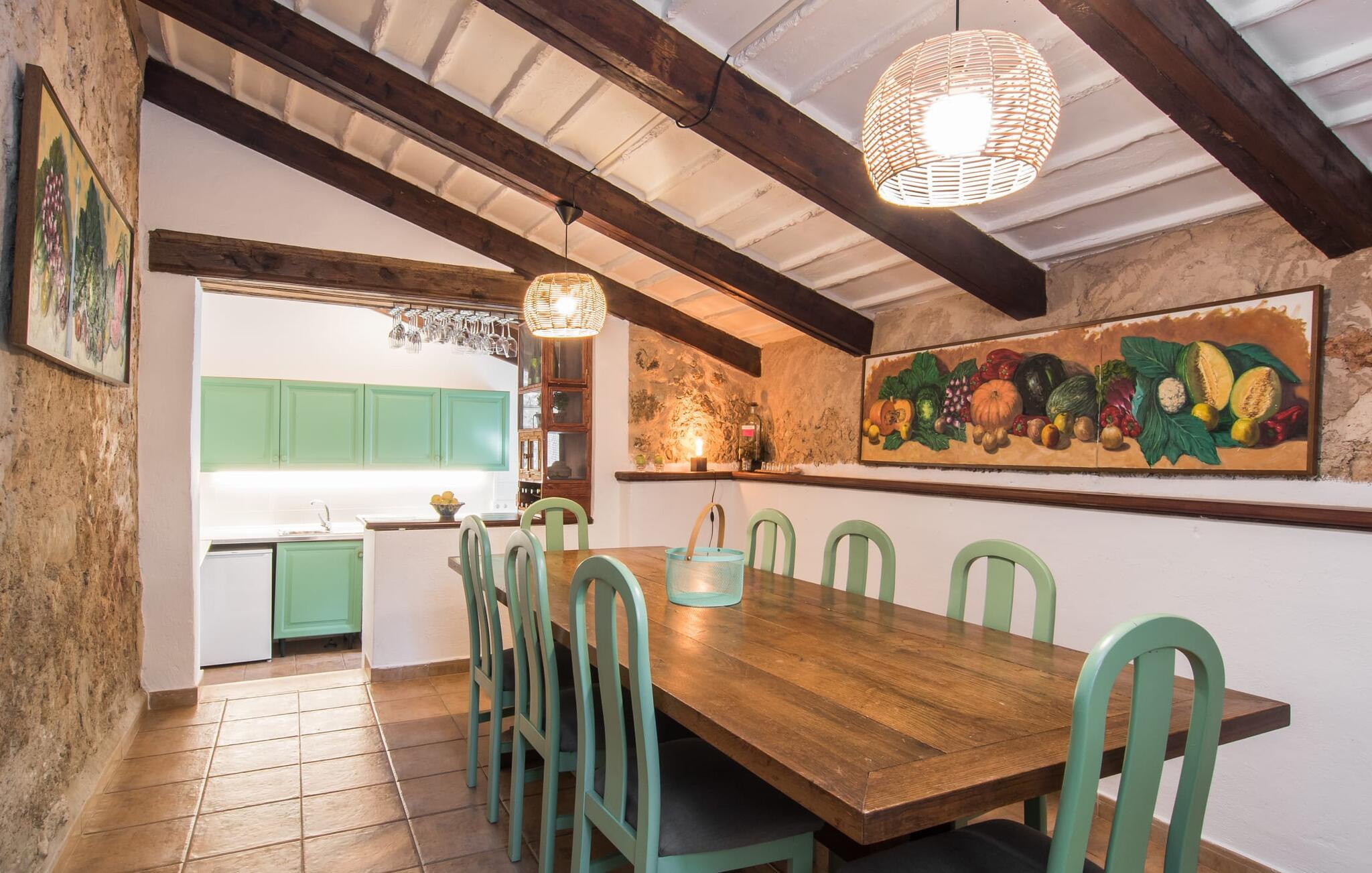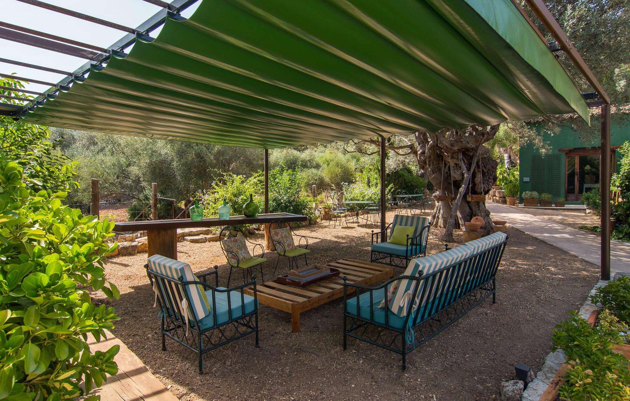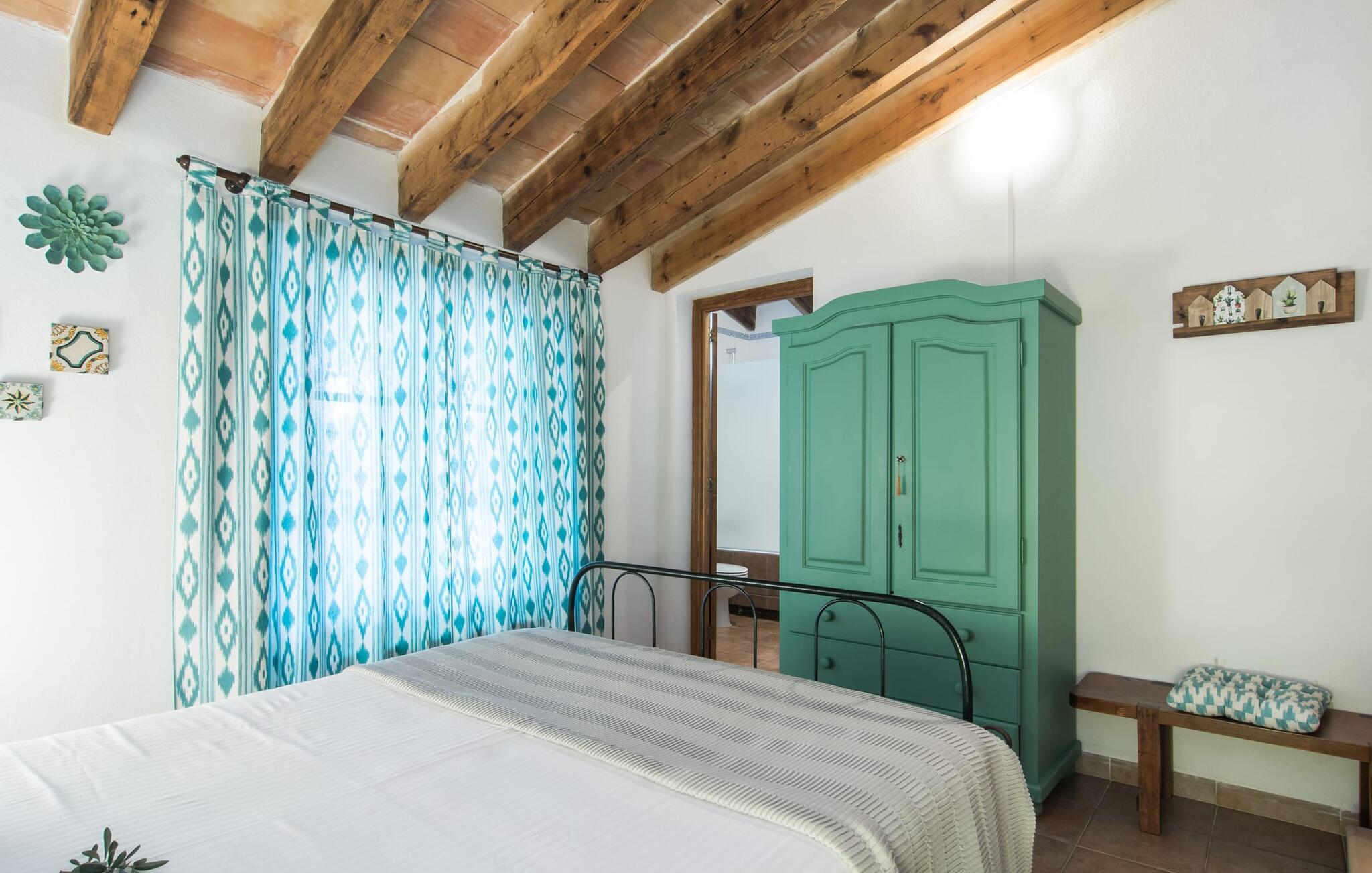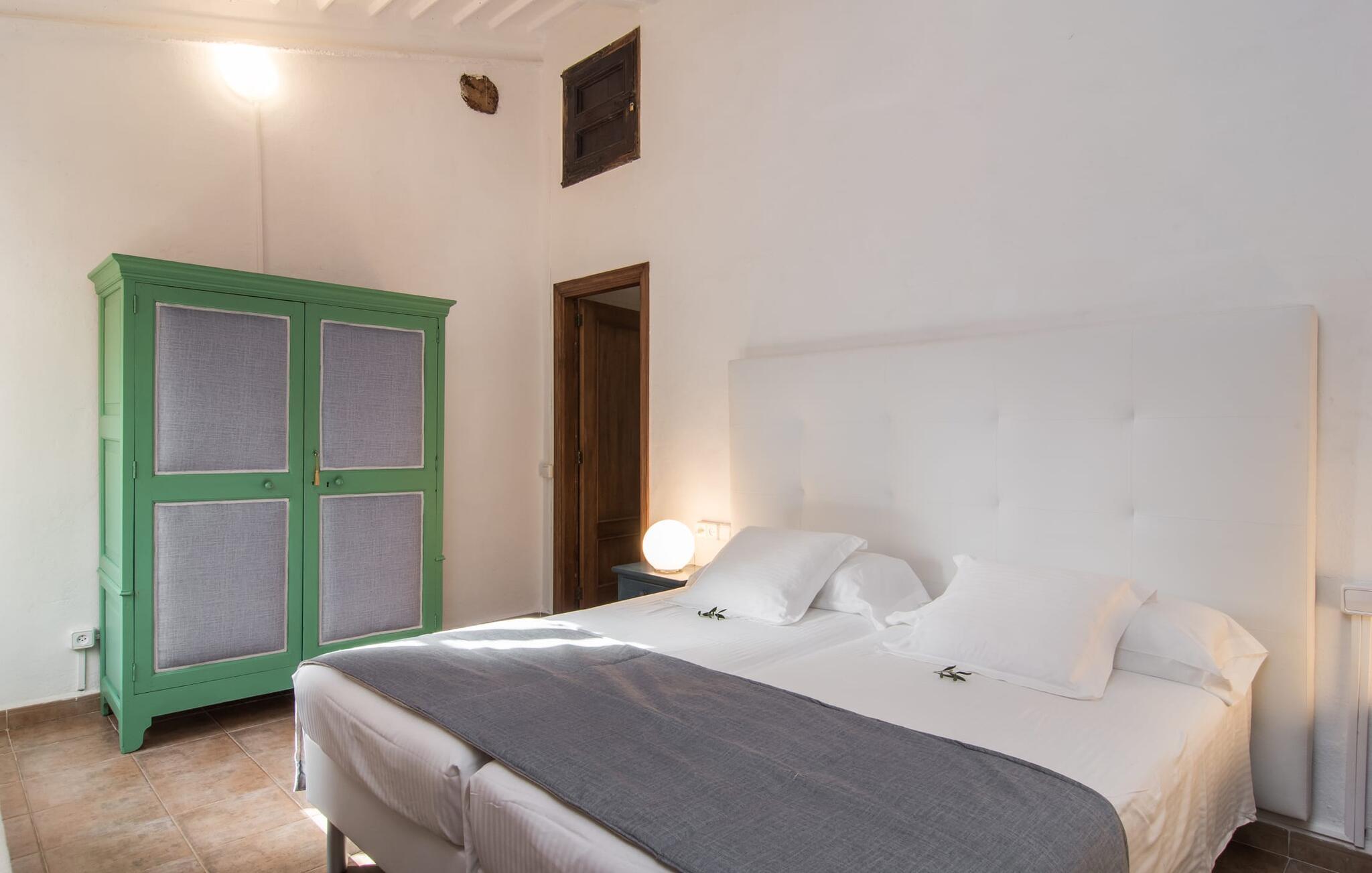 Den majestætiske ejendom "Son Penyaflor Agroturismo" med over 16 hektar jord i spektakulære landlige omgivelser ligger i det lidt bemærkede centrum af øen nær Alaró. Langt væk fra masseturismen kan I opleve naturens skønhed i ubekymret stilhed. Nyd den smukke have på den rummelige lejefinca fuld af oliventræer, cypresser, palmer og en frugthave, og tilbring en ubekymret ferie der. Her kan I være ét med naturen, vandre, meditere eller køle af i den forfriskende pool med omgivende solterrasse. Områder til solbadning og talrige smukt designede siddepladser, hvoraf nogle er overdækkede, giver jer komfortable muligheder for aktiv eller afslappet afslapning. Bortset fra naturens lyde vil intet distrahere jer fra jeres ferie. Her kan I nyde jeres morgenmad sammen og en hyggelig grillaften - måske med et godt glas mallorcansk vin fra den venlige driftsfamilie - i en idyllisk atmosfære. I denne fortryllende smukke leje finca vil I opdage et sandt paradis af enestående skønhed, der er uden sidestykke. Der er næppe bedre rammer for at sætte farten ned end dette bæredygtigt renoverede feriehus. Spor af Mallorcas historie kan også findes inde som en tidligere landejendom. De synlige stenmure og andre traditionelle detaljer er blevet dygtigt fremvist og overgået af moderne komfort. Resultatet er en næsten utraditionel planløsning med to hyggelige stuer med pejse og syv soveværelser, hver med en-suite badeværelser. Disse er i etager, et par trin fører jer fra soveværelset til badeværelset, og nogle har et opholdsområde med plads til en suite. Det er denne ekstra komfort, der gør huset ideelt til mange personlige konstellationer - det være sig en tur til familie- eller firmajubilæum eller en ferie med venner, der gerne vil tilbringe tid sammen, men stadig værdsætter et værdigt privatliv. Fællesarealerne som opholds- og spisestuerne er alle meget komfortable med komfortable sofaer eller et opholdsområde med klublokale-atmosfære. Det fuldt udstyrede køkken imponerer også med sin kombination af naturlige, muntre farver og materialer og bestemmer dermed kvaliteten af dette mallorcanske landhus i topklasse med spektakulære perspektiver, der kan ændre jeres syn. Med den imponerende ejendom "Son Penyaflor Agroturismo" fra 1200-tallet præsenterer vi jer et stateligt landsted med det mest moderne udstyr og en idyllisk pool og have. Den absolut rolige mallorcanske finca ligger på den maleriske baggrund af Tramuntana-bjergene og er derfor et godt udgangspunkt for vandreture. Den rolige landsby Alaró kan nås på 6 minutter med udlejningsbil. Der kan I shoppe eller besøge markedet. Strandene i hovedstaden Palma kan nås på 30 minutter.