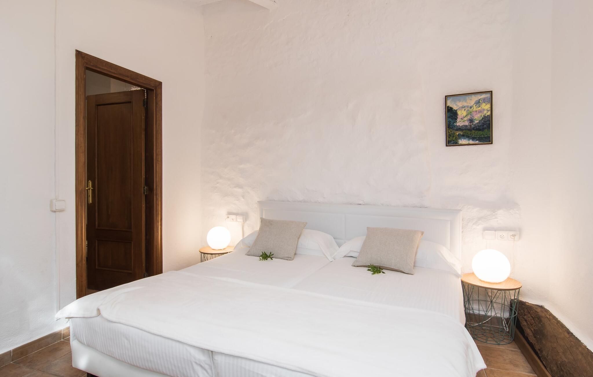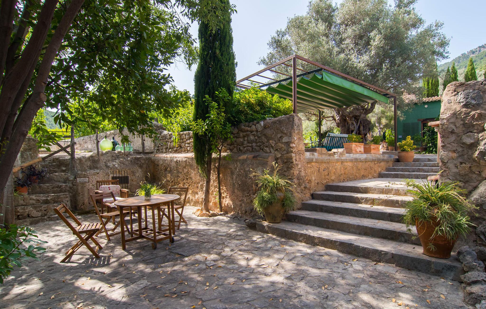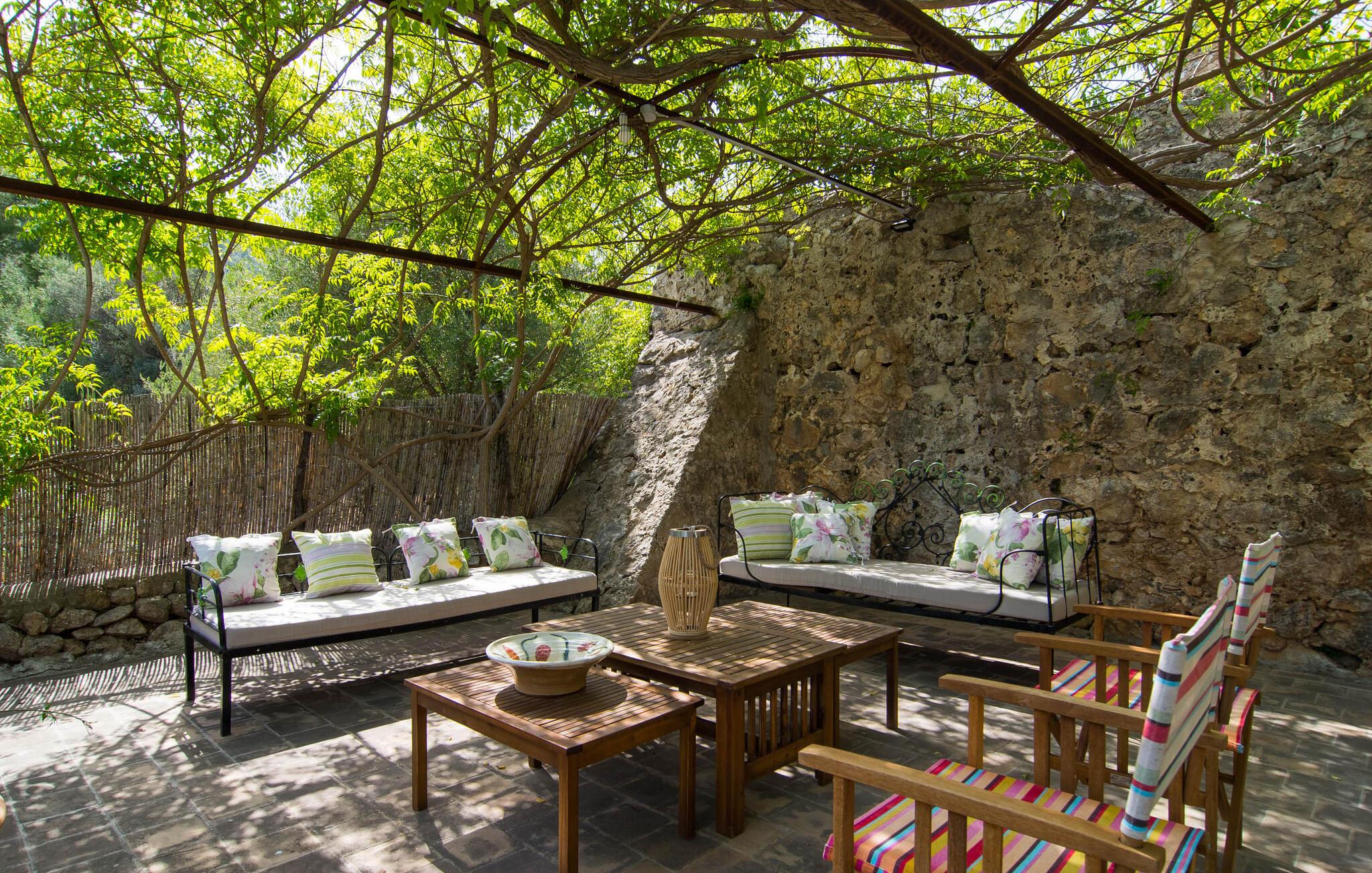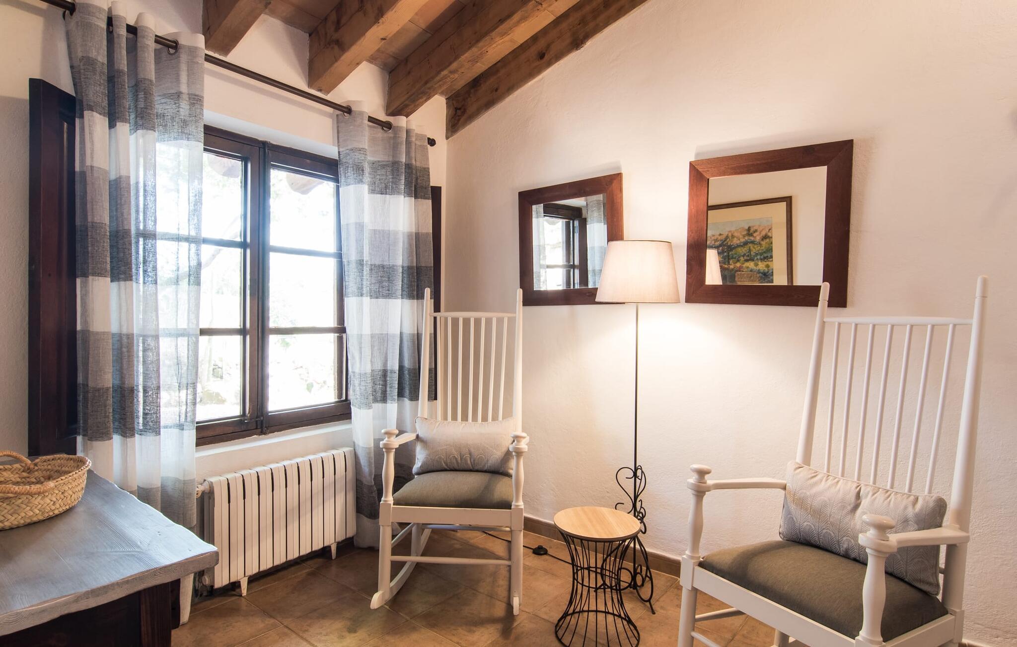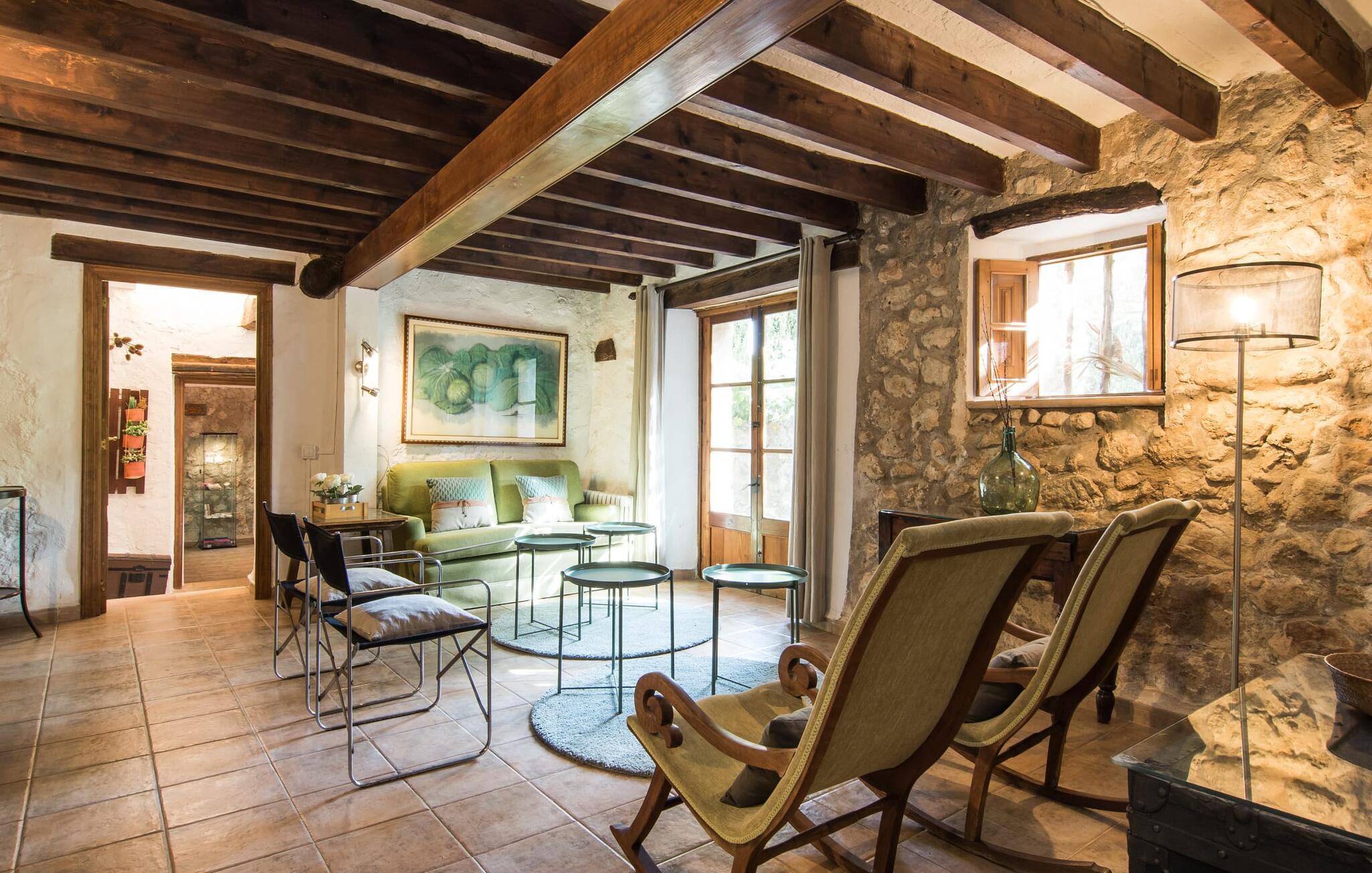 Den majestætiske ejendom "Son Penyaflor Agroturismo" med over 16 hektar jord i spektakulære landlige omgivelser ligger i det lidt bemærkede centrum af øen nær Alaró. Langt væk fra masseturismen kan I opleve naturens skønhed i ubekymret stilhed. Nyd den smukke have på den rummelige lejefinca fuld af oliventræer, cypresser, palmer og en frugthave, og tilbring en ubekymret ferie der. Her kan I være ét med naturen, vandre, meditere eller køle af i den forfriskende pool med omgivende solterrasse. Områder til solbadning og talrige smukt designede siddepladser, hvoraf nogle er overdækkede, giver jer komfortable muligheder for aktiv eller afslappet afslapning. Bortset fra naturens lyde vil intet distrahere jer fra jeres ferie. Her kan I nyde jeres morgenmad sammen og en hyggelig grillaften - måske med et godt glas mallorcansk vin fra den venlige driftsfamilie - i en idyllisk atmosfære. I denne fortryllende smukke leje finca vil I opdage et sandt paradis af enestående skønhed, der er uden sidestykke. Der er næppe bedre rammer for at sætte farten ned end dette bæredygtigt renoverede feriehus. Spor af Mallorcas historie kan også findes inde som en tidligere landejendom. De synlige stenmure og andre traditionelle detaljer er blevet dygtigt fremvist og overgået af moderne komfort. Resultatet er en næsten utraditionel planløsning med to hyggelige stuer med pejse og syv soveværelser, hver med en-suite badeværelser. Disse er i etager, et par trin fører jer fra soveværelset til badeværelset, og nogle har et opholdsområde med plads til en suite. Det er denne ekstra komfort, der gør huset ideelt til mange personlige konstellationer - det være sig en tur til familie- eller firmajubilæum eller en ferie med venner, der gerne vil tilbringe tid sammen, men stadig værdsætter et værdigt privatliv. Fællesarealerne som opholds- og spisestuerne er alle meget komfortable med komfortable sofaer eller et opholdsområde med klublokale-atmosfære. Det fuldt udstyrede køkken imponerer også med sin kombination af naturlige, muntre farver og materialer og bestemmer dermed kvaliteten af dette mallorcanske landhus i topklasse med spektakulære perspektiver, der kan ændre jeres syn. Med den imponerende ejendom "Son Penyaflor Agroturismo" fra 1200-tallet præsenterer vi jer et stateligt landsted med det mest moderne udstyr og en idyllisk pool og have. Den absolut rolige mallorcanske finca ligger på den maleriske baggrund af Tramuntana-bjergene og er derfor et godt udgangspunkt for vandreture. Den rolige landsby Alaró kan nås på 6 minutter med udlejningsbil. Der kan I shoppe eller besøge markedet. Strandene i hovedstaden Palma kan nås på 30 minutter.