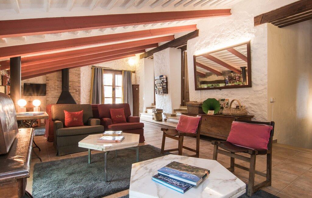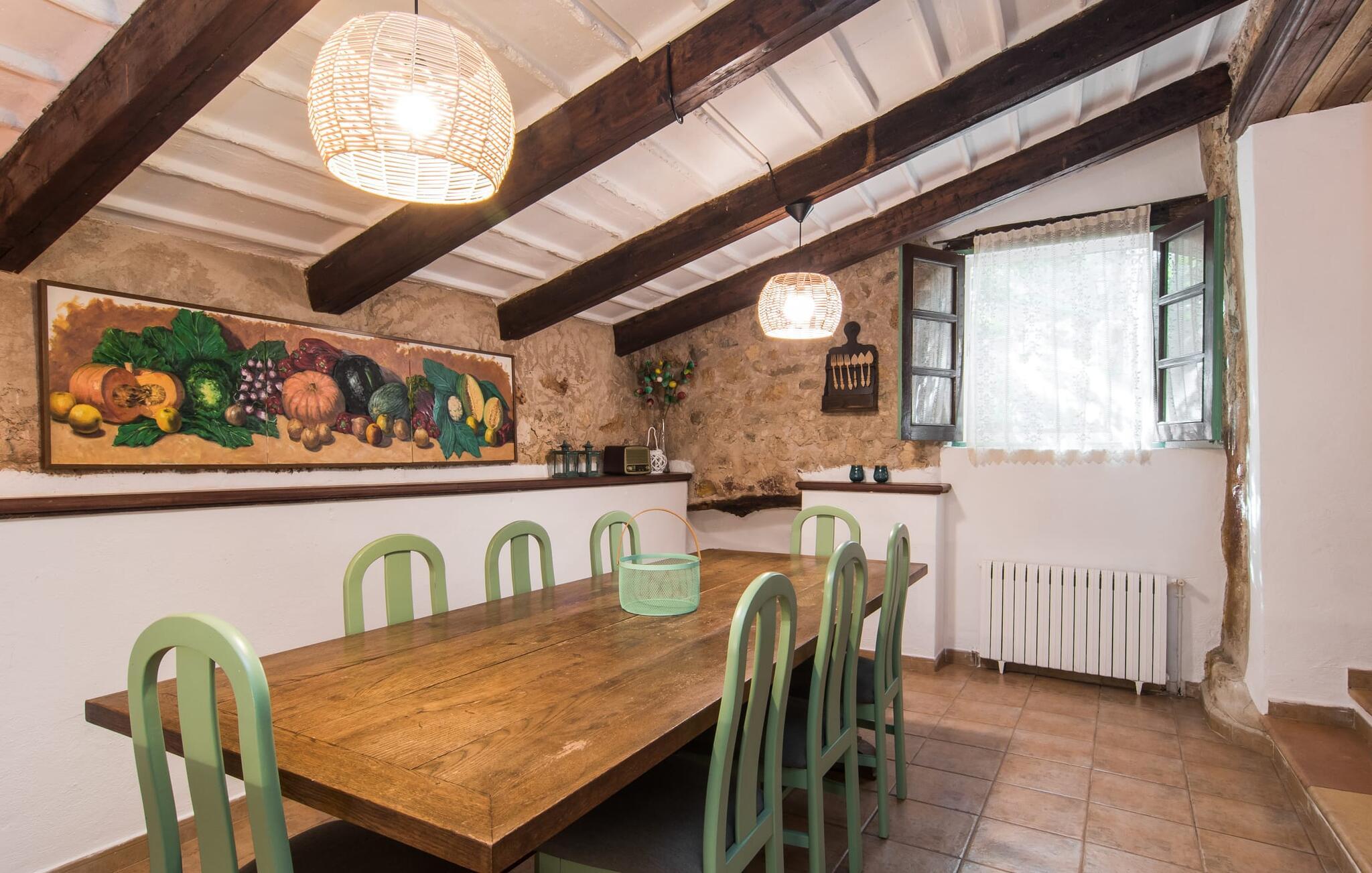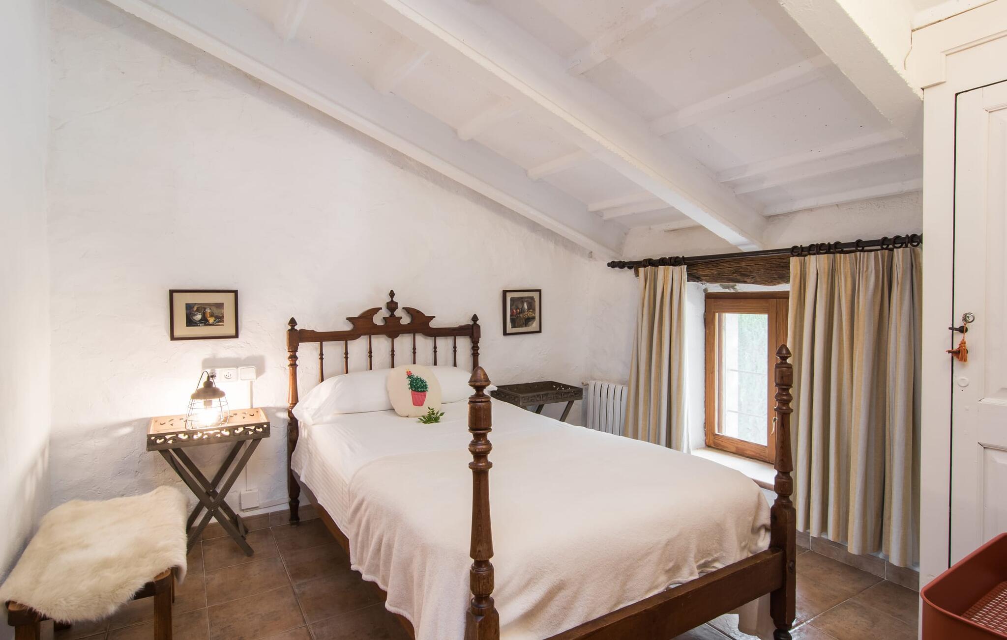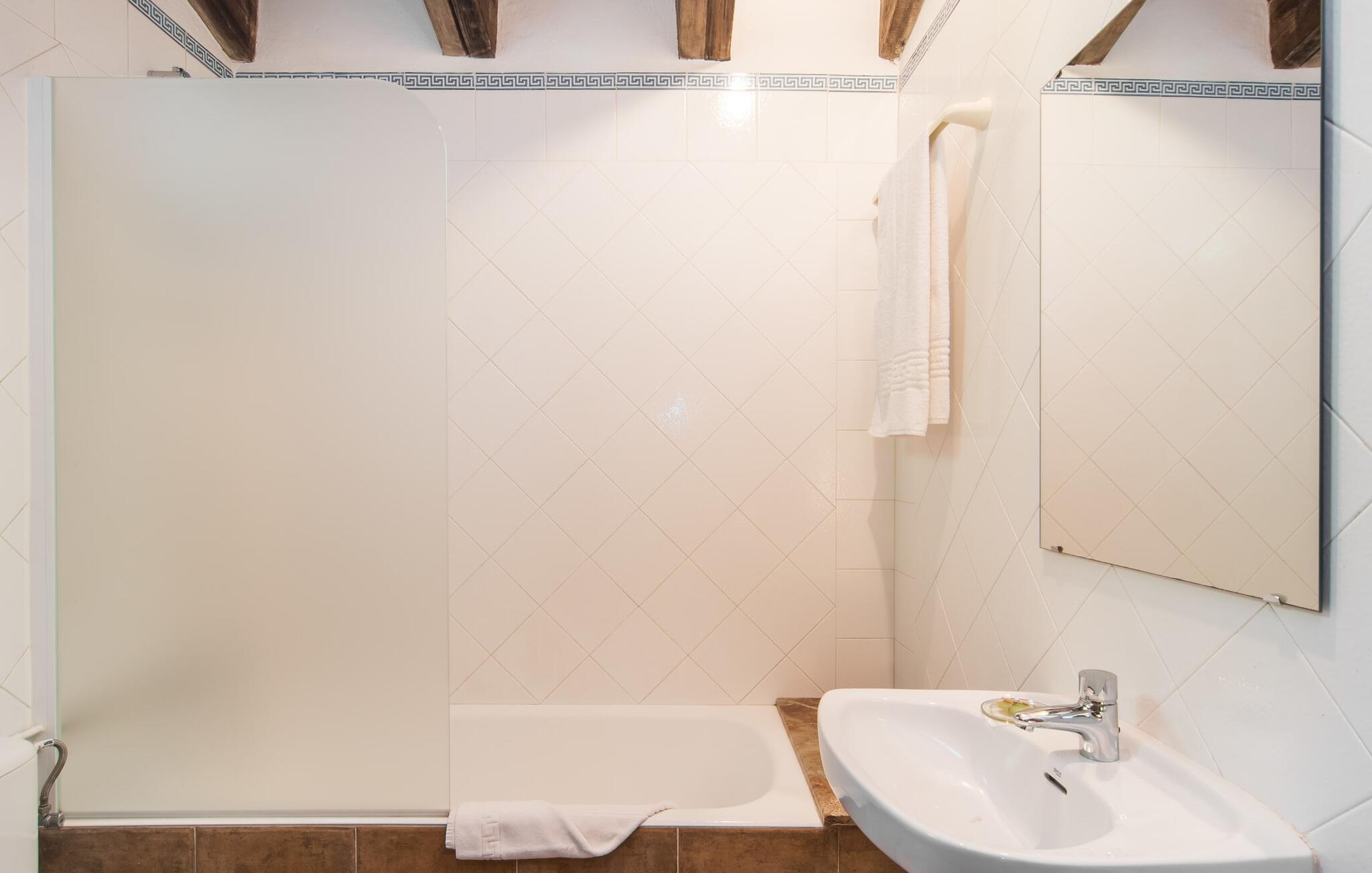 Den majestætiske ejendom "Son Penyaflor Agroturismo" med over 16 hektar jord i spektakulære landlige omgivelser ligger i det lidt bemærkede centrum af øen nær Alaró. Langt væk fra masseturismen kan I opleve naturens skønhed i ubekymret stilhed. Nyd den smukke have på den rummelige lejefinca fuld af oliventræer, cypresser, palmer og en frugthave, og tilbring en ubekymret ferie der. Her kan I være ét med naturen, vandre, meditere eller køle af i den forfriskende pool med omgivende solterrasse. Områder til solbadning og talrige smukt designede siddepladser, hvoraf nogle er overdækkede, giver jer komfortable muligheder for aktiv eller afslappet afslapning. Bortset fra naturens lyde vil intet distrahere jer fra jeres ferie. Her kan I nyde jeres morgenmad sammen og en hyggelig grillaften - måske med et godt glas mallorcansk vin fra den venlige driftsfamilie - i en idyllisk atmosfære. I denne fortryllende smukke leje finca vil I opdage et sandt paradis af enestående skønhed, der er uden sidestykke. Der er næppe bedre rammer for at sætte farten ned end dette bæredygtigt renoverede feriehus. Spor af Mallorcas historie kan også findes inde som en tidligere landejendom. De synlige stenmure og andre traditionelle detaljer er blevet dygtigt fremvist og overgået af moderne komfort. Resultatet er en næsten utraditionel planløsning med to hyggelige stuer med pejse og syv soveværelser, hver med en-suite badeværelser. Disse er i etager, et par trin fører jer fra soveværelset til badeværelset, og nogle har et opholdsområde med plads til en suite. Det er denne ekstra komfort, der gør huset ideelt til mange personlige konstellationer - det være sig en tur til familie- eller firmajubilæum eller en ferie med venner, der gerne vil tilbringe tid sammen, men stadig værdsætter et værdigt privatliv. Fællesarealerne som opholds- og spisestuerne er alle meget komfortable med komfortable sofaer eller et opholdsområde med klublokale-atmosfære. Det fuldt udstyrede køkken imponerer også med sin kombination af naturlige, muntre farver og materialer og bestemmer dermed kvaliteten af dette mallorcanske landhus i topklasse med spektakulære perspektiver, der kan ændre jeres syn. Med den imponerende ejendom "Son Penyaflor Agroturismo" fra 1200-tallet præsenterer vi jer et stateligt landsted med det mest moderne udstyr og en idyllisk pool og have. Den absolut rolige mallorcanske finca ligger på den maleriske baggrund af Tramuntana-bjergene og er derfor et godt udgangspunkt for vandreture. Den rolige landsby Alaró kan nås på 6 minutter med udlejningsbil. Der kan I shoppe eller besøge markedet. Strandene i hovedstaden Palma kan nås på 30 minutter.