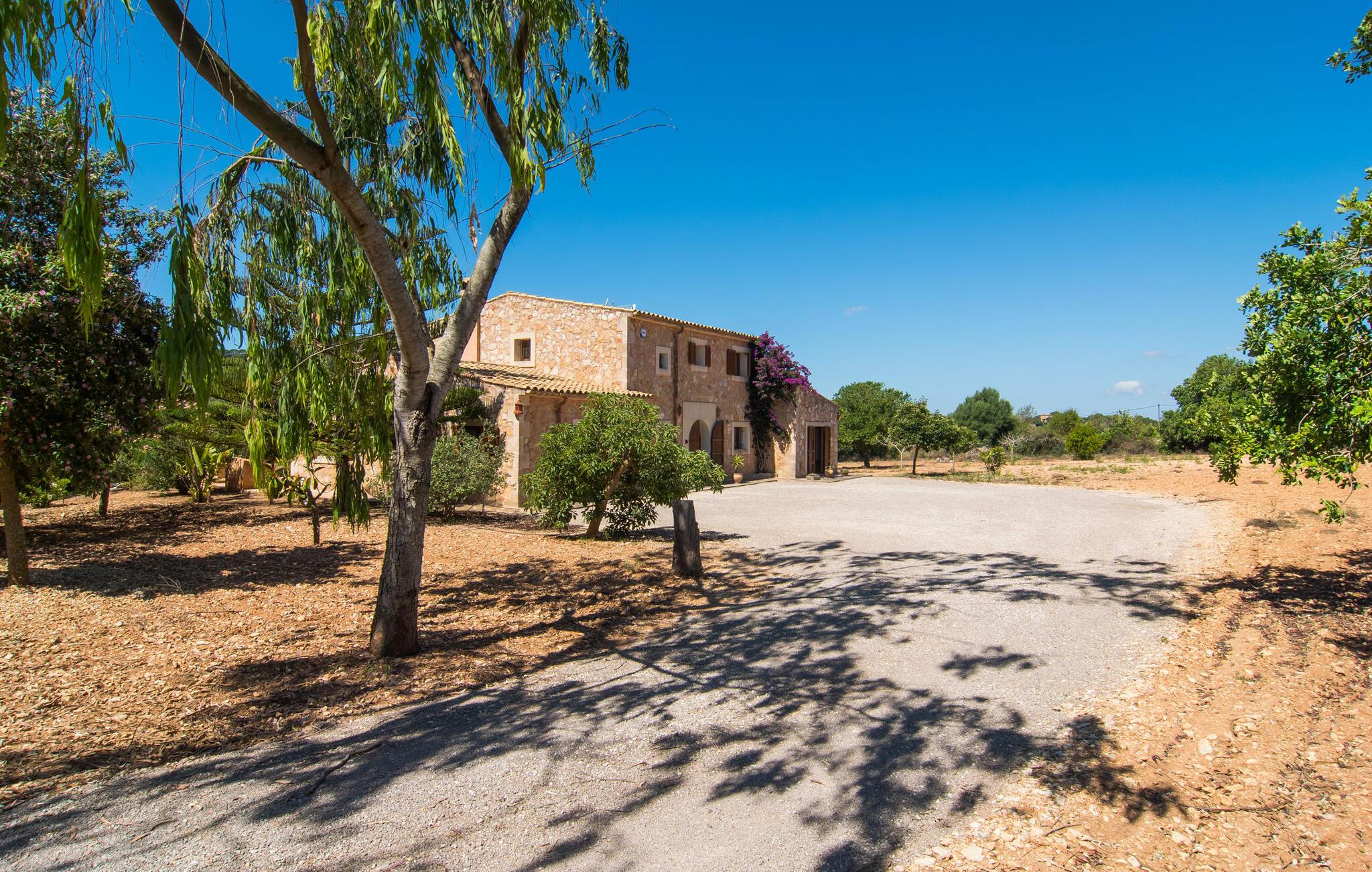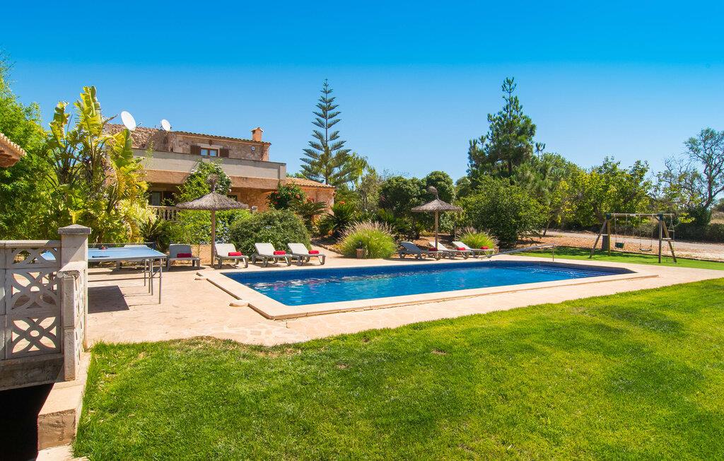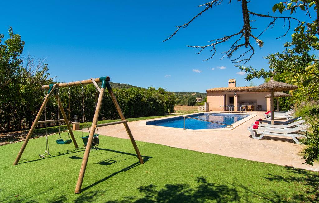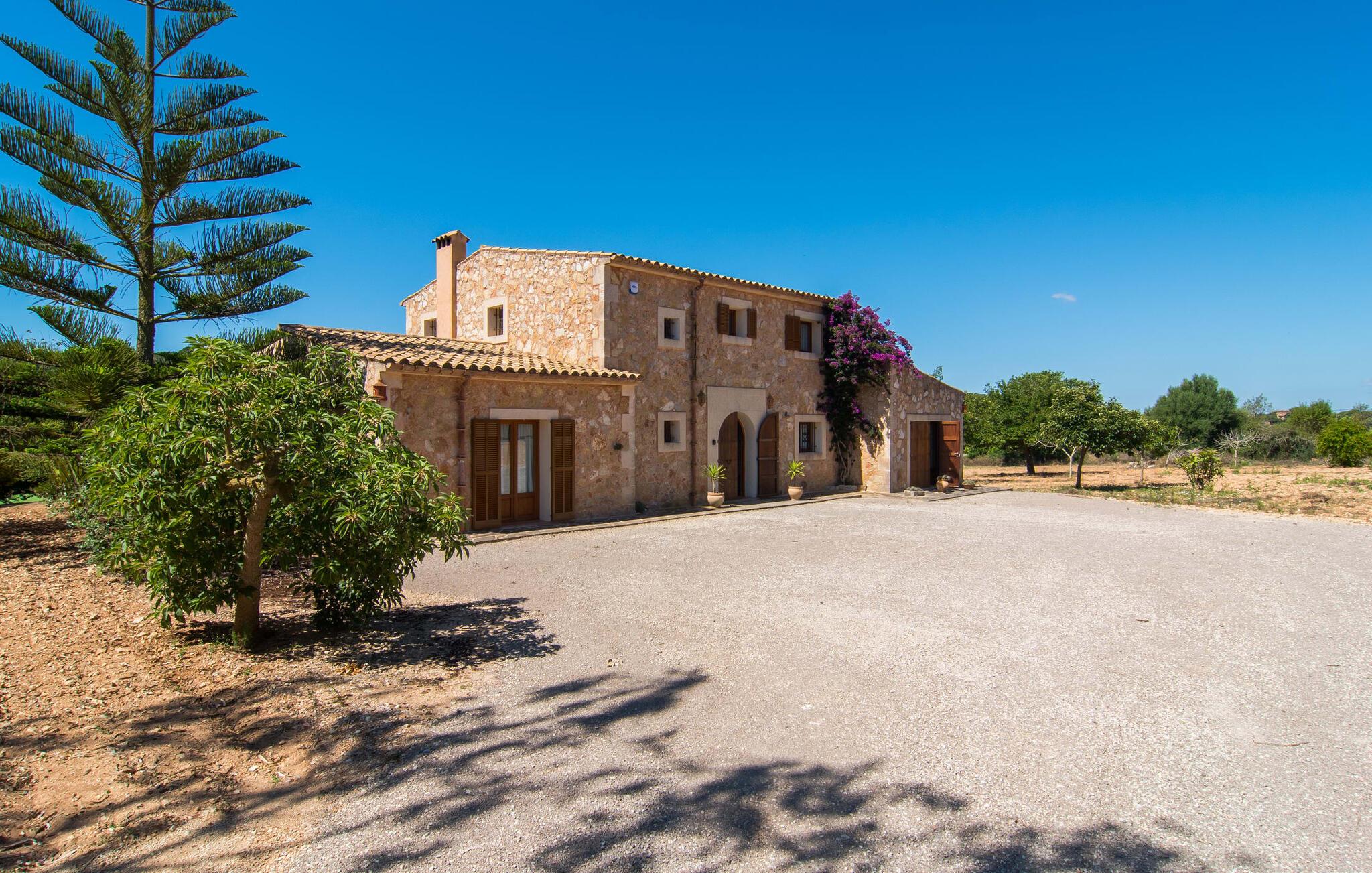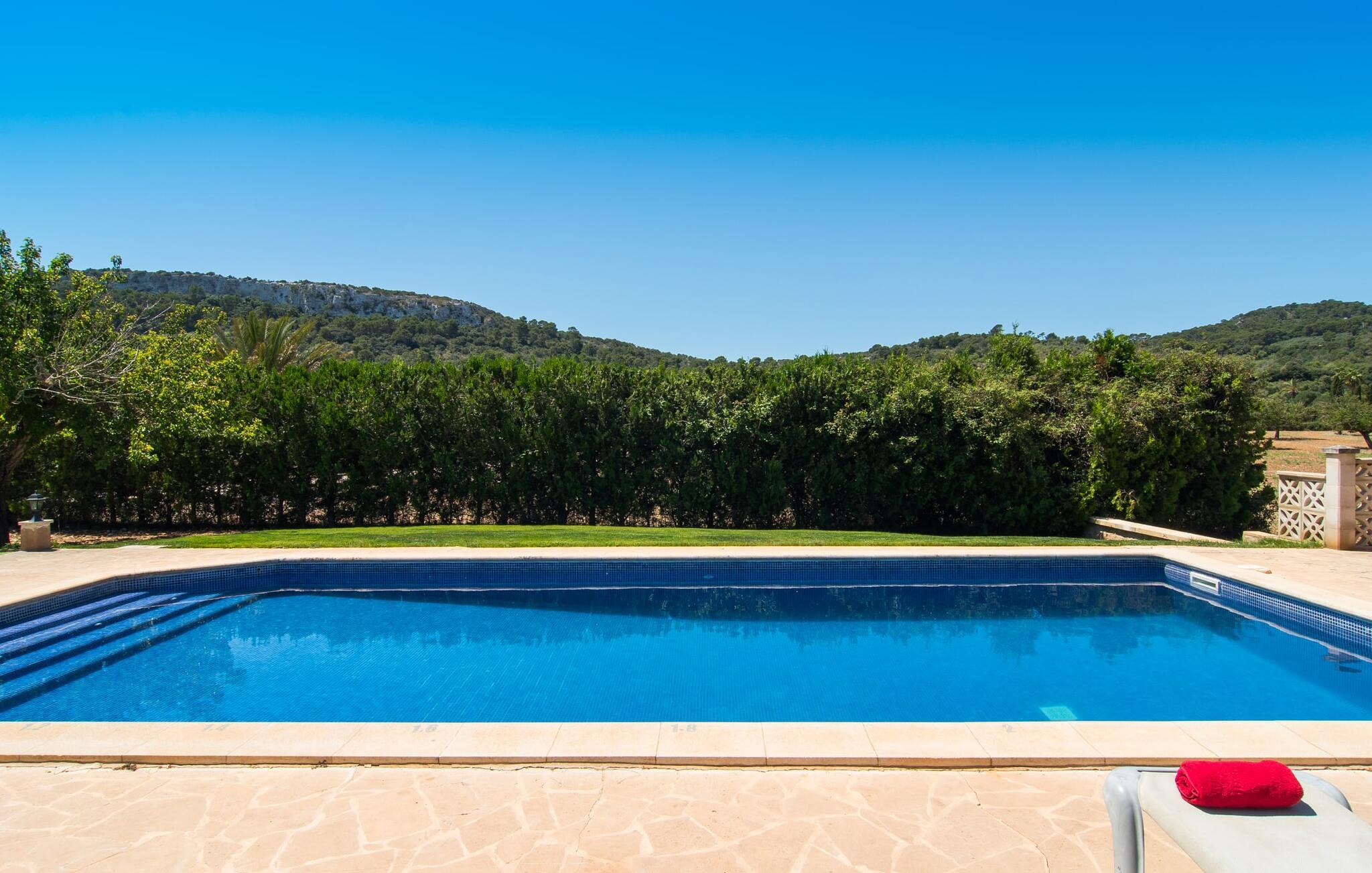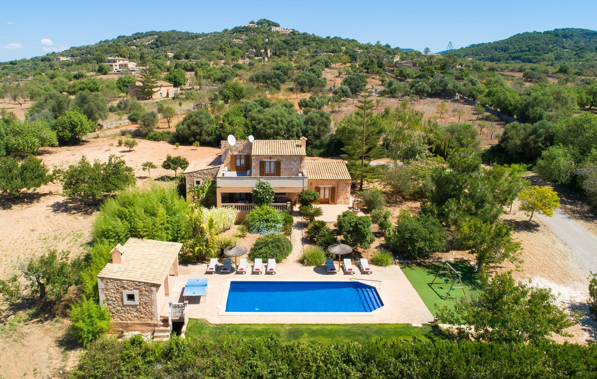 Fold jer ud i 17.000 m² roligt uderum, som byder på varierede loungeområder, smukke træer og et skønt poolområde. På 10 x 5 meter kan I gennemføre både sporty og afslappede kurser om morgenen og starte den nye dag veludhvilet. Morgenmaden vil helt sikkert smage særligt godt på den store veranda med en magisk udsigt - flere siddemuligheder inviterer jer til at slappe af. Om dagen kan I nyde liggestolene eller den overdækkede terrasse ved det hyggelige poolhus, hvor I også om aftenen kan sidde og fremtrylle grillspecialiteter i det praktiske udekøkken. De små, der rejser med jer, vil nyde en række forskellige legemuligheder. I kan i øvrigt få endnu mere panoramaudsigt fra altanen - hold øjnene åbne og fremsyn! Indersiden af fincaen er også meget venlig. Når man træder ind i huset gennem hovedindgangen, befinder man sig først i en rummelig entre, hvorfra trappen fører op til overetagen. På denne etage finder I også det store køkken, to soveværelser med hver to enkeltsenge, et soveværelse med en dobbeltseng, et eget badeværelse og endnu et badeværelse. Stuen og spisestuen, der ligger direkte på verandaen, er harmonisk forbundet med hinanden - et smukt loungeområde til at tilbringe tid sammen indendørs. Den første stueetage rummer et soveværelse med dobbeltseng og badeværelse en suite. Den enkle, rolige stil på denne finca med pool gør det nemt for jer at komme her for at slappe af og få mest muligt ud af den smukke tid på året. Alt dette til et godt pris-ydelsesforhold gør dette hus til et rigtigt tip til os! Denne solide feriefinca med pool byder velkommen i en landlig atmosfære og ligger mindre end 3 km fra den lille by Cas Concos des Cavaller, hvor I kan få alt, hvad I behøver til jeres daglige behov. Efter cirka 14 km er I i Campos, en charmerende by med talrige barer, restauranter og butikker. Feanitx ligger 11 km derfra. I kystbyen Porto Colom - kun et kvarters kørsel væk - kan I slentre langs promenaden eller nyde en svømmetur i Middelhavet.