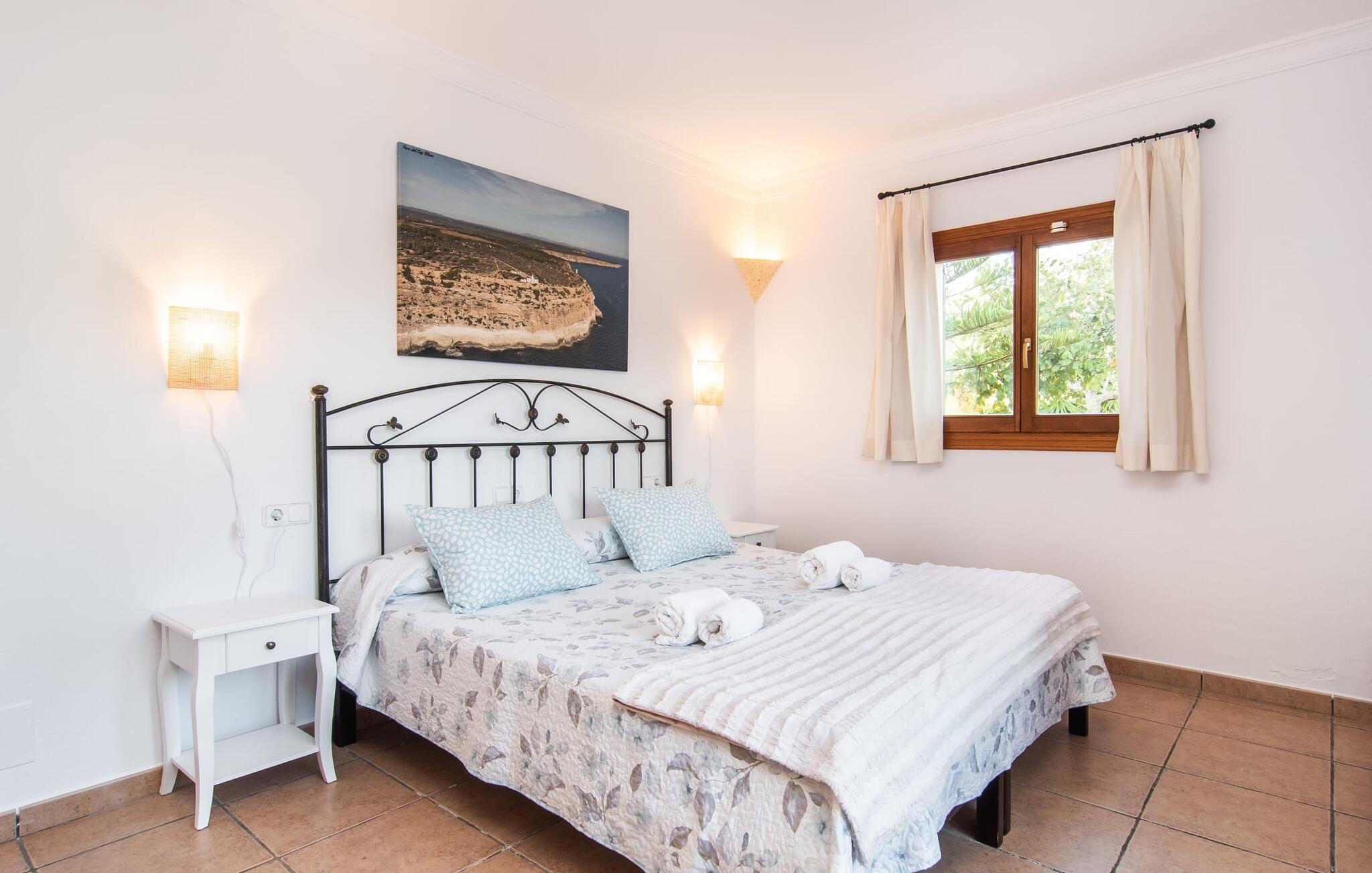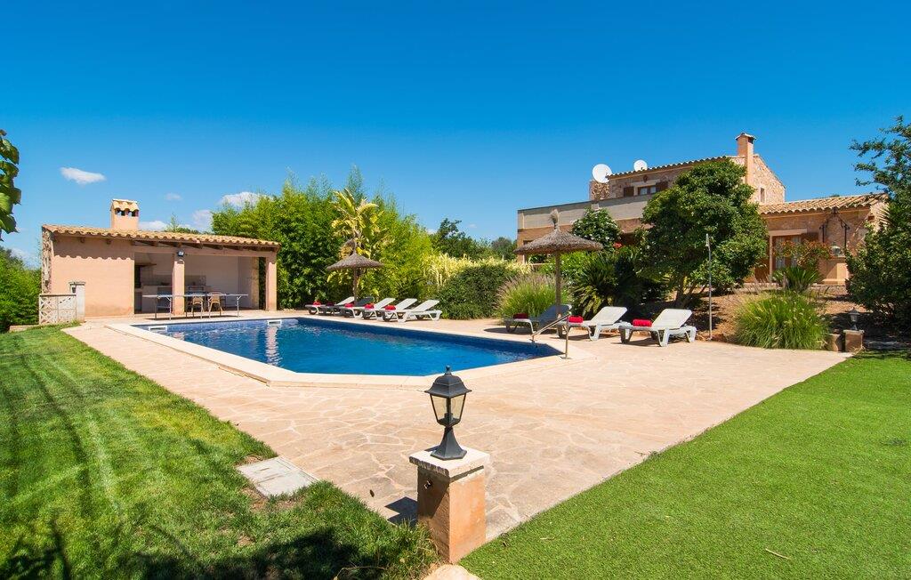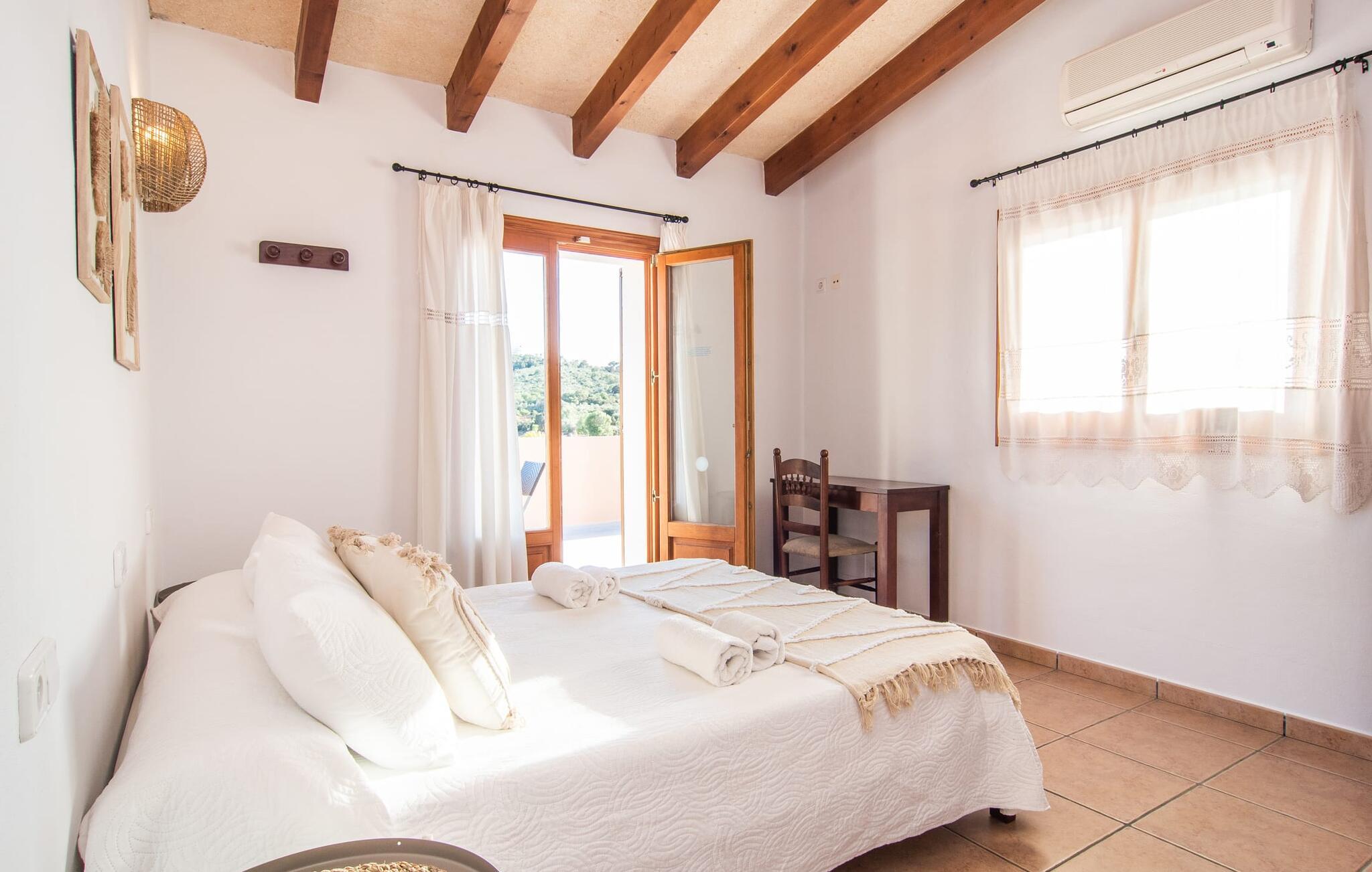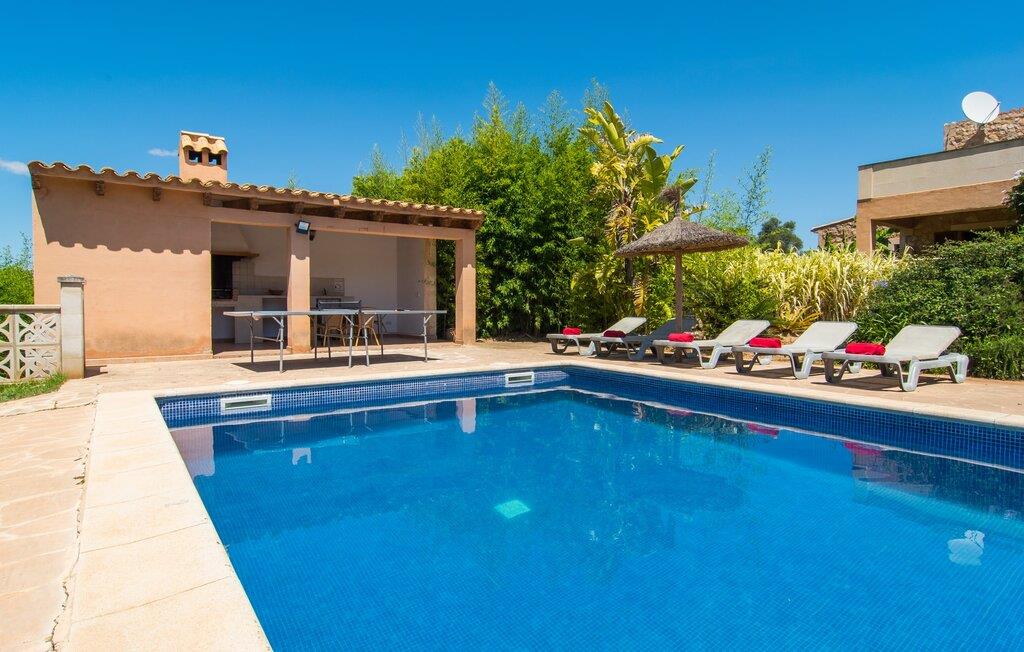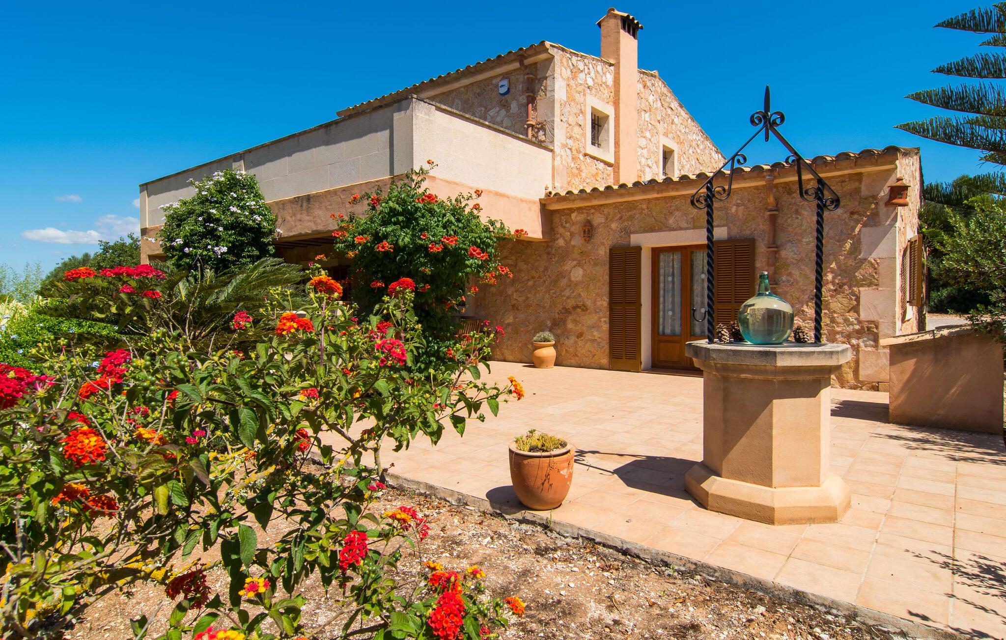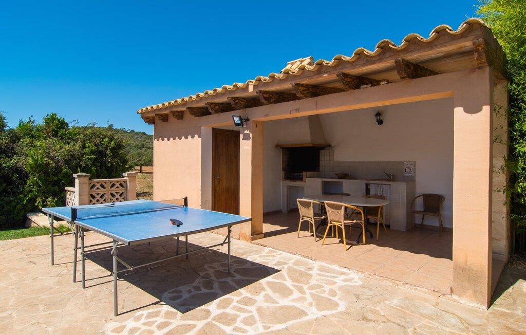 Fold jer ud i 17.000 m² roligt uderum, som byder på varierede loungeområder, smukke træer og et skønt poolområde. På 10 x 5 meter kan I gennemføre både sporty og afslappede kurser om morgenen og starte den nye dag veludhvilet. Morgenmaden vil helt sikkert smage særligt godt på den store veranda med en magisk udsigt - flere siddemuligheder inviterer jer til at slappe af. Om dagen kan I nyde liggestolene eller den overdækkede terrasse ved det hyggelige poolhus, hvor I også om aftenen kan sidde og fremtrylle grillspecialiteter i det praktiske udekøkken. De små, der rejser med jer, vil nyde en række forskellige legemuligheder. I kan i øvrigt få endnu mere panoramaudsigt fra altanen - hold øjnene åbne og fremsyn! Indersiden af fincaen er også meget venlig. Når man træder ind i huset gennem hovedindgangen, befinder man sig først i en rummelig entre, hvorfra trappen fører op til overetagen. På denne etage finder I også det store køkken, to soveværelser med hver to enkeltsenge, et soveværelse med en dobbeltseng, et eget badeværelse og endnu et badeværelse. Stuen og spisestuen, der ligger direkte på verandaen, er harmonisk forbundet med hinanden - et smukt loungeområde til at tilbringe tid sammen indendørs. Den første stueetage rummer et soveværelse med dobbeltseng og badeværelse en suite. Den enkle, rolige stil på denne finca med pool gør det nemt for jer at komme her for at slappe af og få mest muligt ud af den smukke tid på året. Alt dette til et godt pris-ydelsesforhold gør dette hus til et rigtigt tip til os! Denne solide feriefinca med pool byder velkommen i en landlig atmosfære og ligger mindre end 3 km fra den lille by Cas Concos des Cavaller, hvor I kan få alt, hvad I behøver til jeres daglige behov. Efter cirka 14 km er I i Campos, en charmerende by med talrige barer, restauranter og butikker. Feanitx ligger 11 km derfra. I kystbyen Porto Colom - kun et kvarters kørsel væk - kan I slentre langs promenaden eller nyde en svømmetur i Middelhavet.