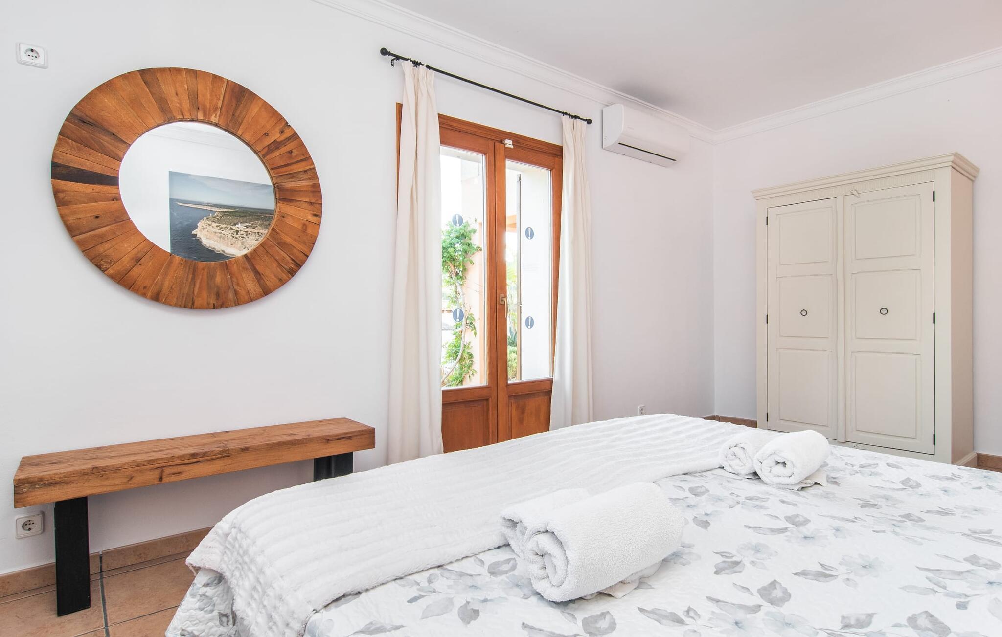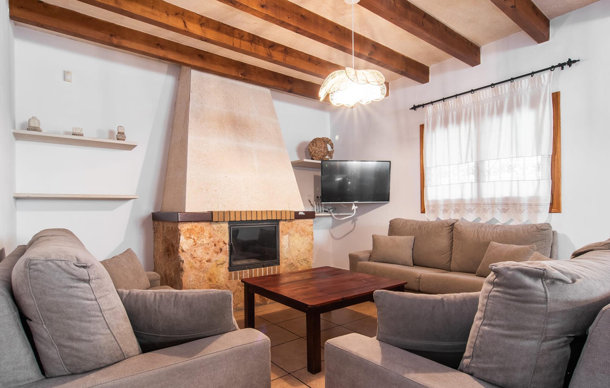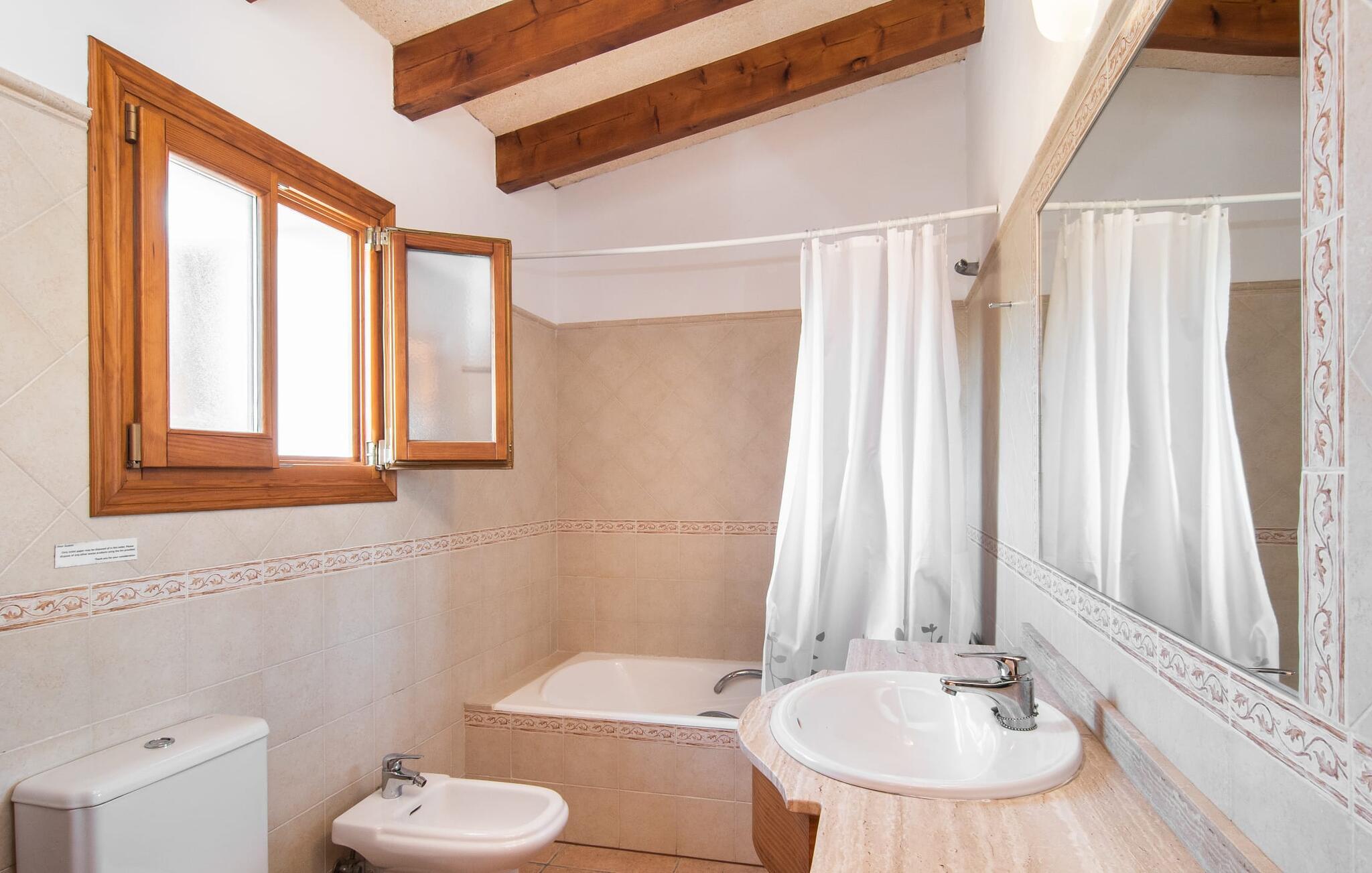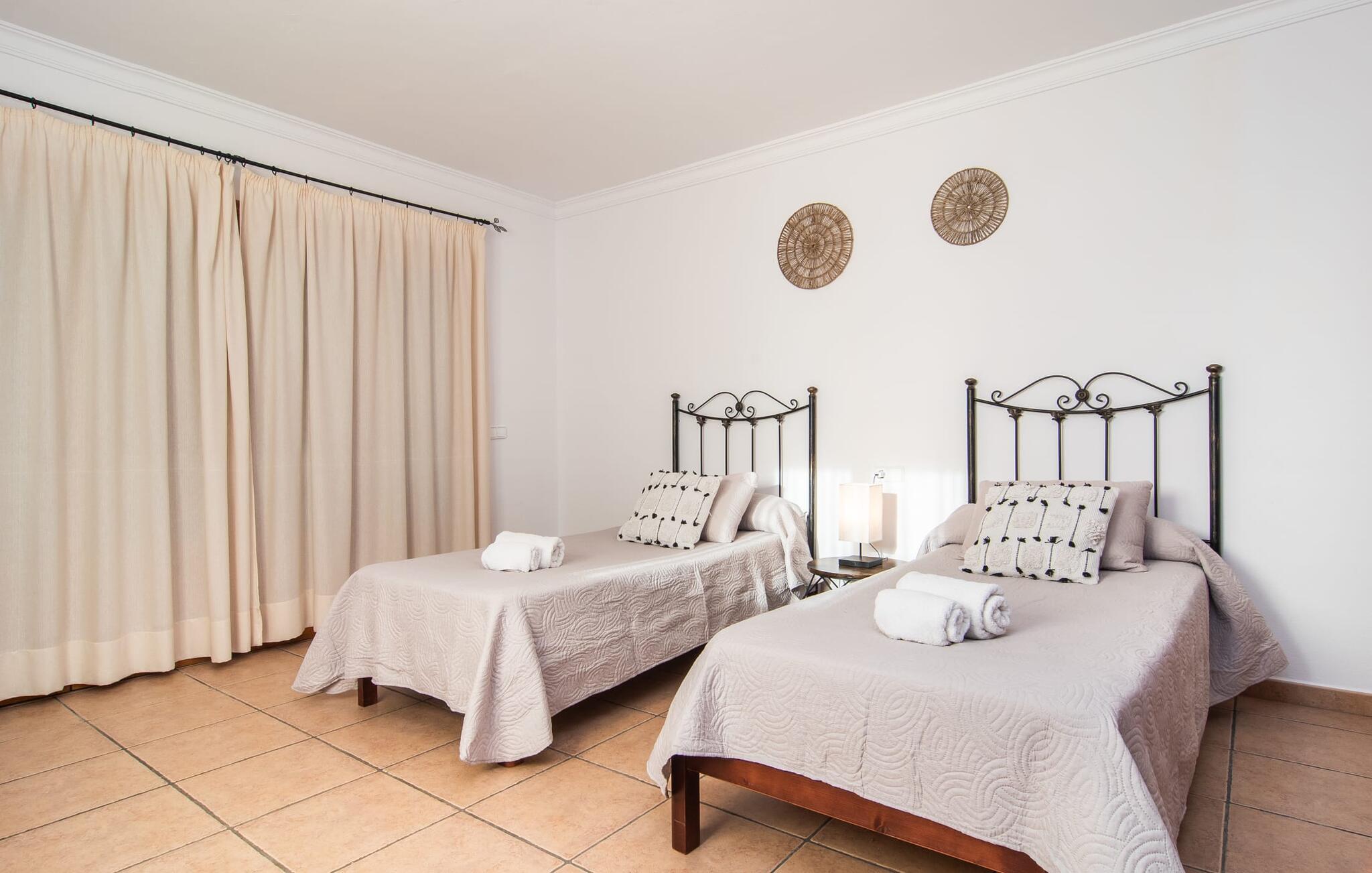 Fold jer ud i 17.000 m² roligt uderum, som byder på varierede loungeområder, smukke træer og et skønt poolområde. På 10 x 5 meter kan I gennemføre både sporty og afslappede kurser om morgenen og starte den nye dag veludhvilet. Morgenmaden vil helt sikkert smage særligt godt på den store veranda med en magisk udsigt - flere siddemuligheder inviterer jer til at slappe af. Om dagen kan I nyde liggestolene eller den overdækkede terrasse ved det hyggelige poolhus, hvor I også om aftenen kan sidde og fremtrylle grillspecialiteter i det praktiske udekøkken. De små, der rejser med jer, vil nyde en række forskellige legemuligheder. I kan i øvrigt få endnu mere panoramaudsigt fra altanen - hold øjnene åbne og fremsyn! Indersiden af fincaen er også meget venlig. Når man træder ind i huset gennem hovedindgangen, befinder man sig først i en rummelig entre, hvorfra trappen fører op til overetagen. På denne etage finder I også det store køkken, to soveværelser med hver to enkeltsenge, et soveværelse med en dobbeltseng, et eget badeværelse og endnu et badeværelse. Stuen og spisestuen, der ligger direkte på verandaen, er harmonisk forbundet med hinanden - et smukt loungeområde til at tilbringe tid sammen indendørs. Den første stueetage rummer et soveværelse med dobbeltseng og badeværelse en suite. Den enkle, rolige stil på denne finca med pool gør det nemt for jer at komme her for at slappe af og få mest muligt ud af den smukke tid på året. Alt dette til et godt pris-ydelsesforhold gør dette hus til et rigtigt tip til os! Denne solide feriefinca med pool byder velkommen i en landlig atmosfære og ligger mindre end 3 km fra den lille by Cas Concos des Cavaller, hvor I kan få alt, hvad I behøver til jeres daglige behov. Efter cirka 14 km er I i Campos, en charmerende by med talrige barer, restauranter og butikker. Feanitx ligger 11 km derfra. I kystbyen Porto Colom - kun et kvarters kørsel væk - kan I slentre langs promenaden eller nyde en svømmetur i Middelhavet.