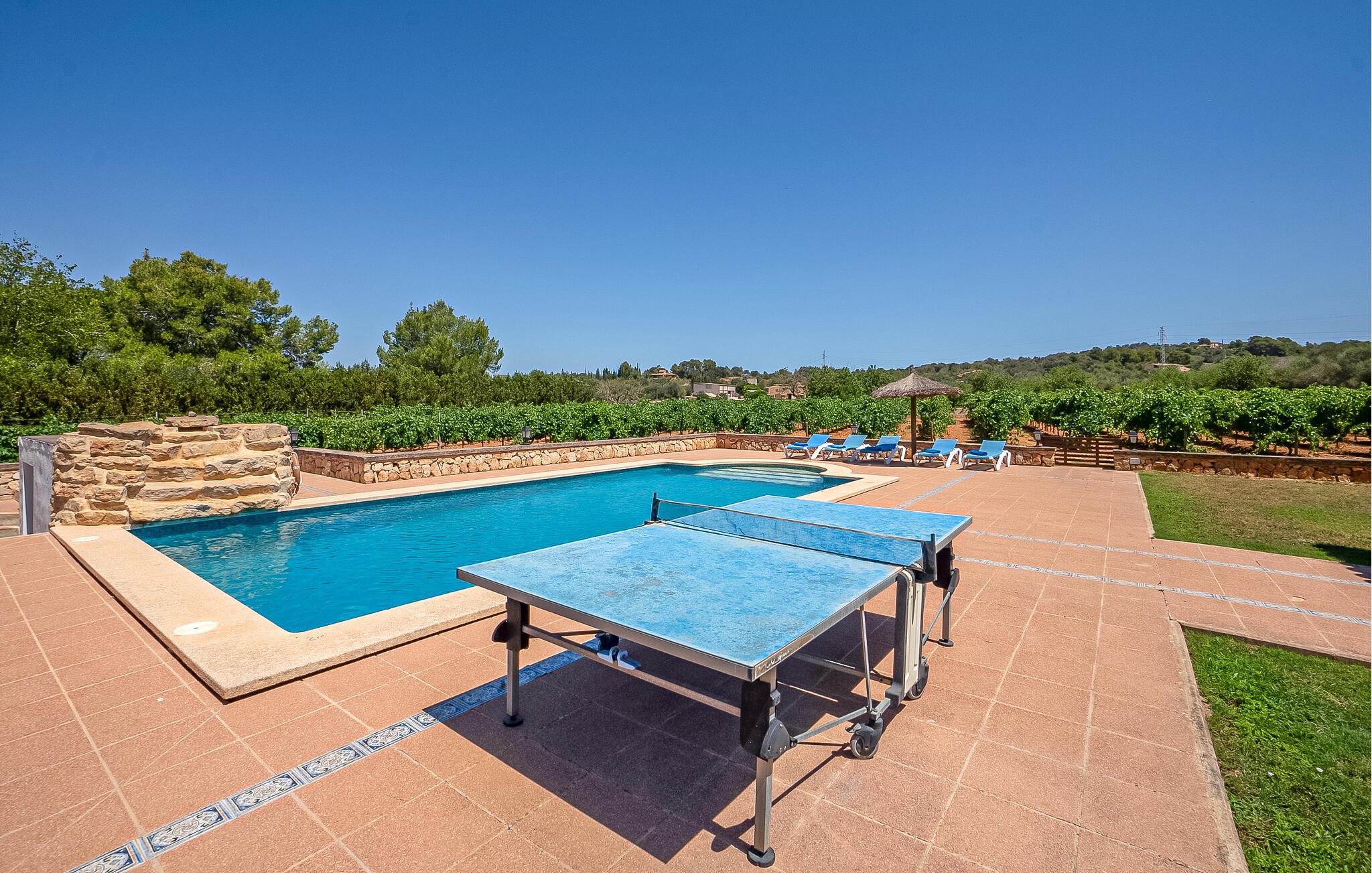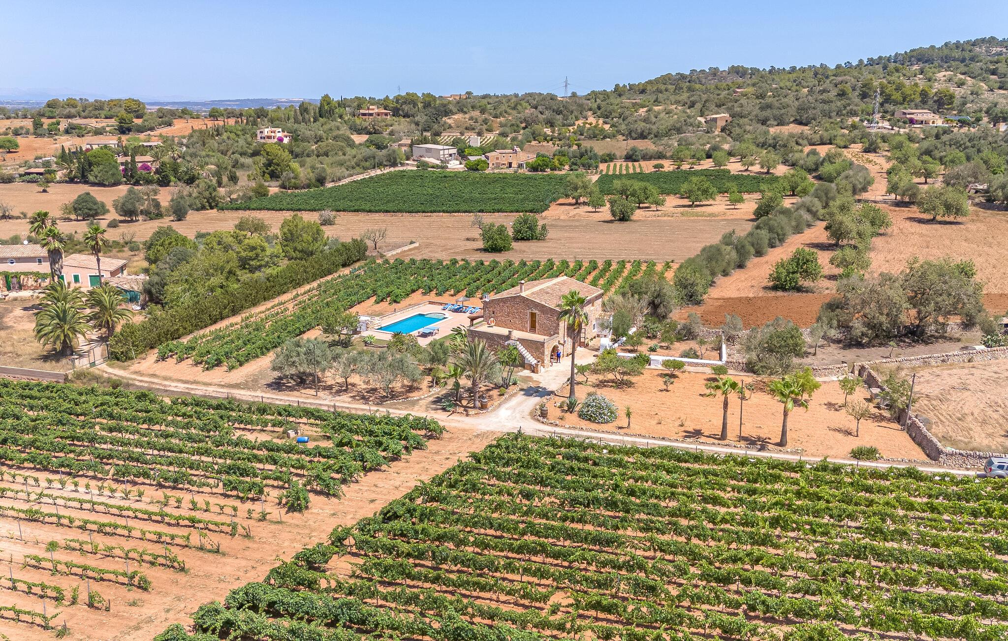 Dette feriehus ligger omgivet af vinmarker og har egen pool.