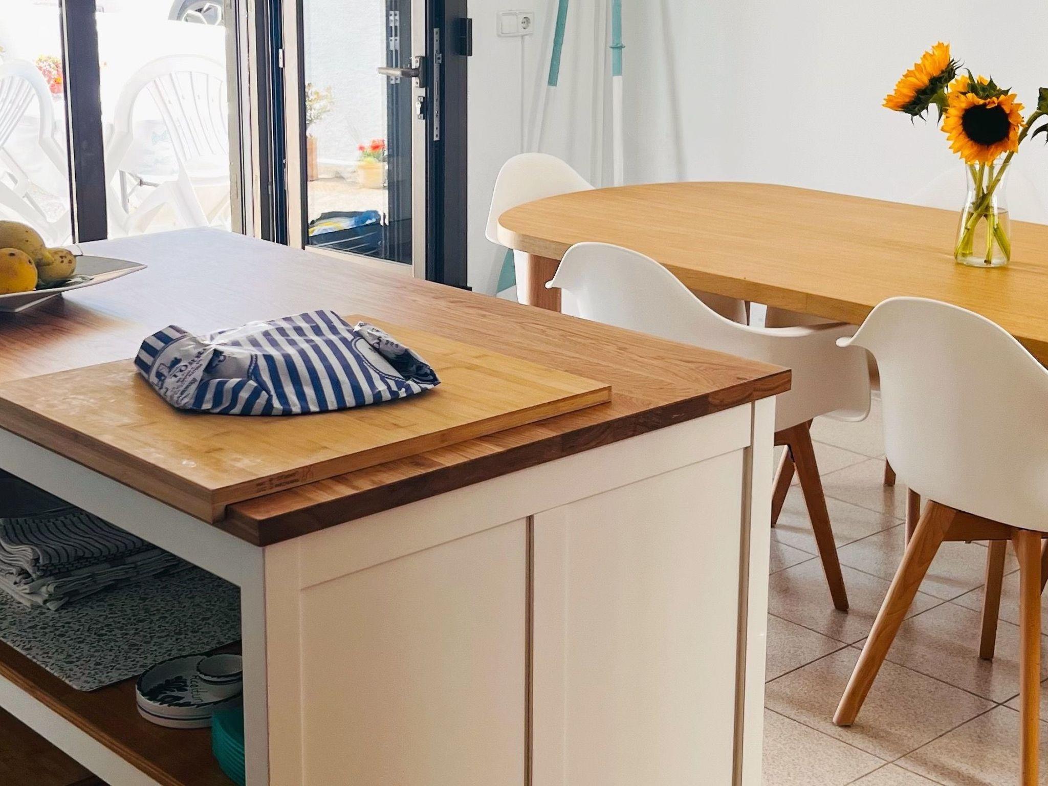 The interior of the house is equipped with your comfort and convenience in mind. There is air-conditioning throughout, essential for warm summer days. The house has 4 bedrooms and 2 bathrooms, one with a shower and one with a bath, ensuring everyone has space and privacy. Facilities include a Smart TV for those relaxing moments, plus a fully equipped induction cooker with dishwasher, capsule coffee machine, and kettle, among others, promising a hassle-free stay.