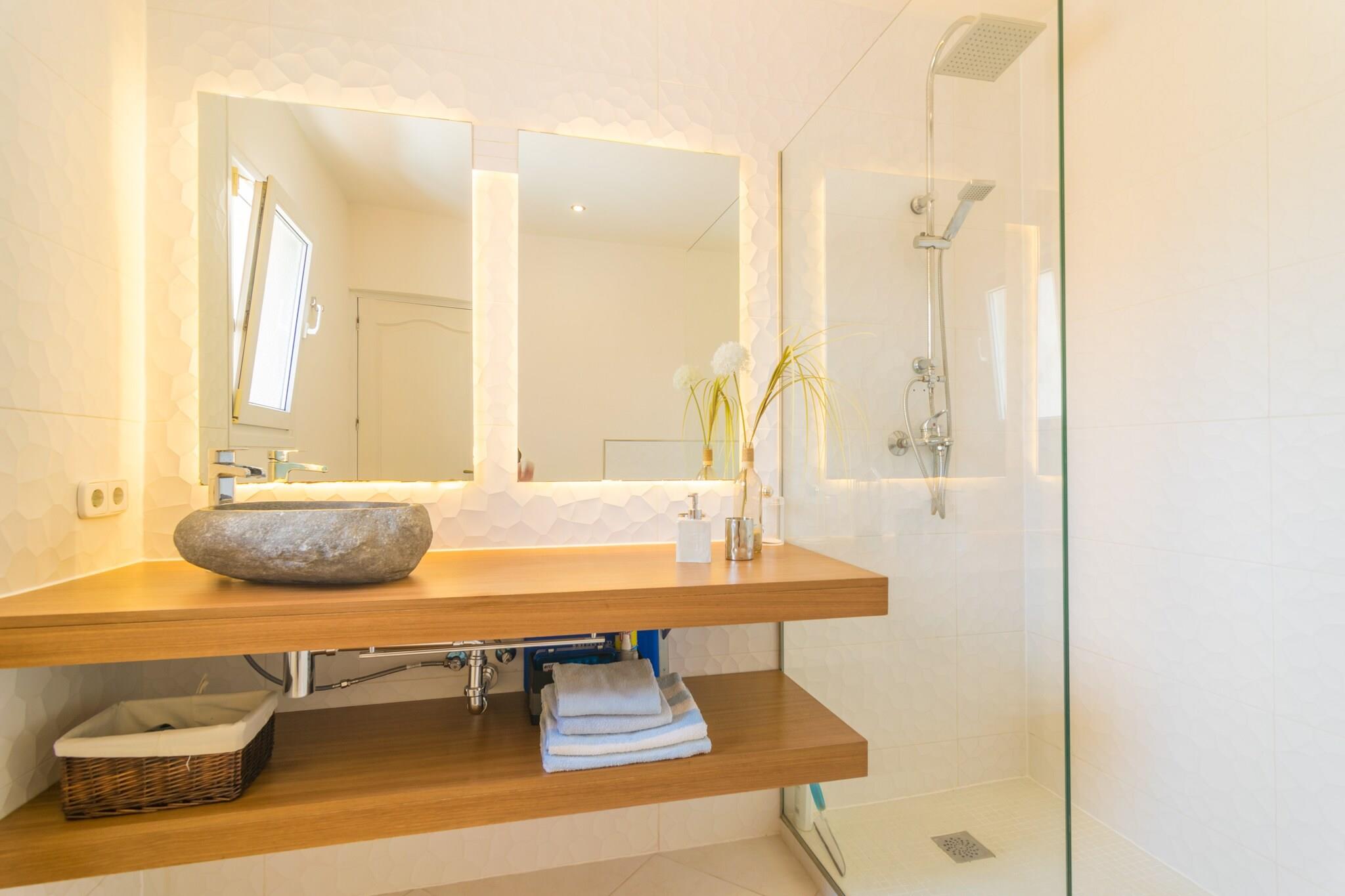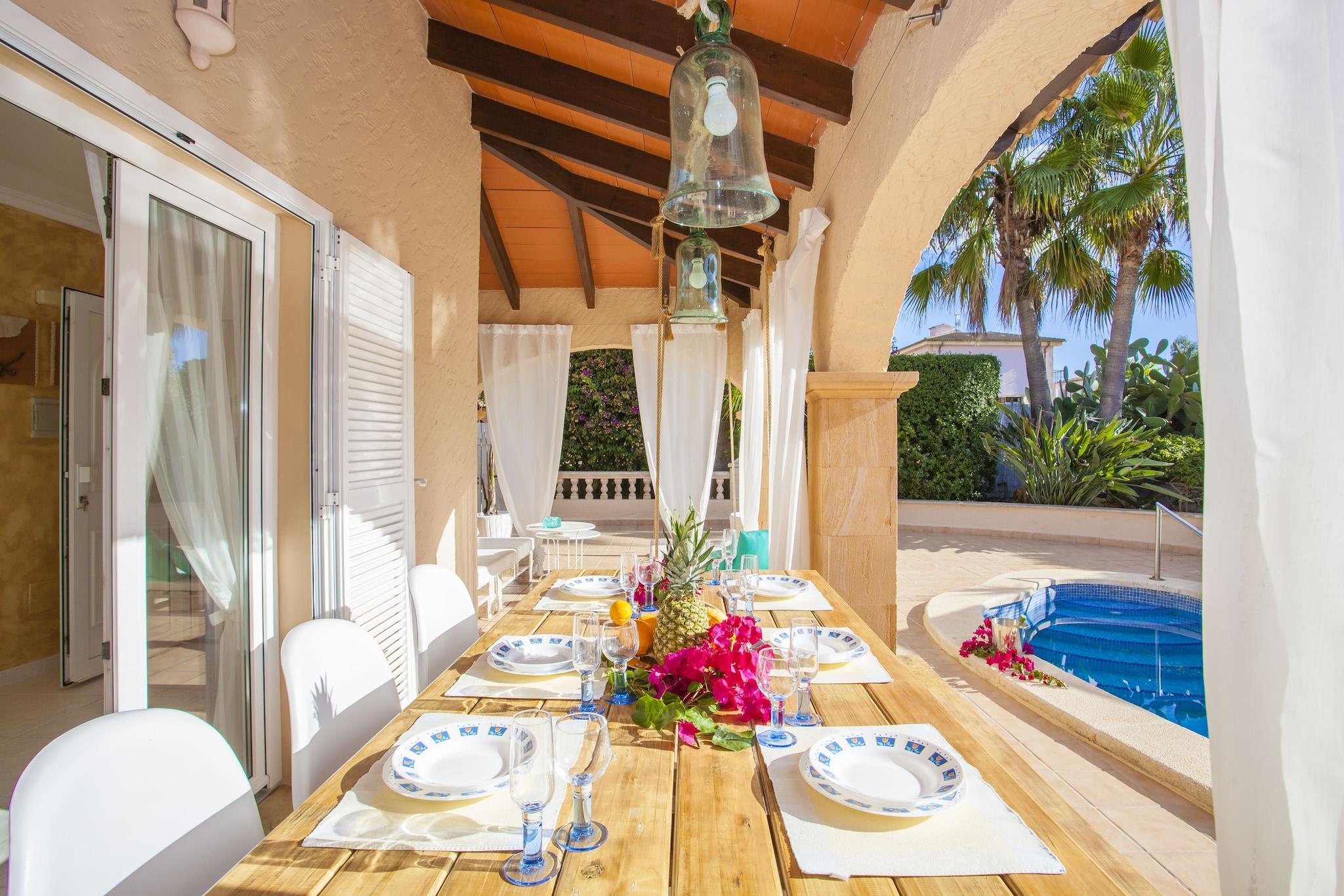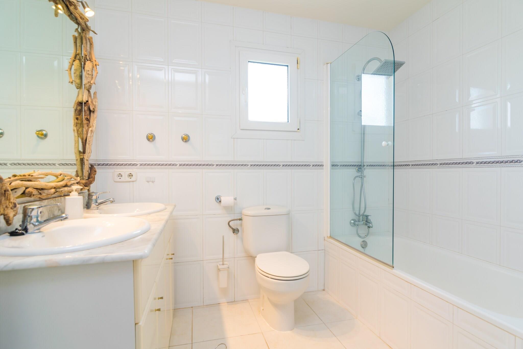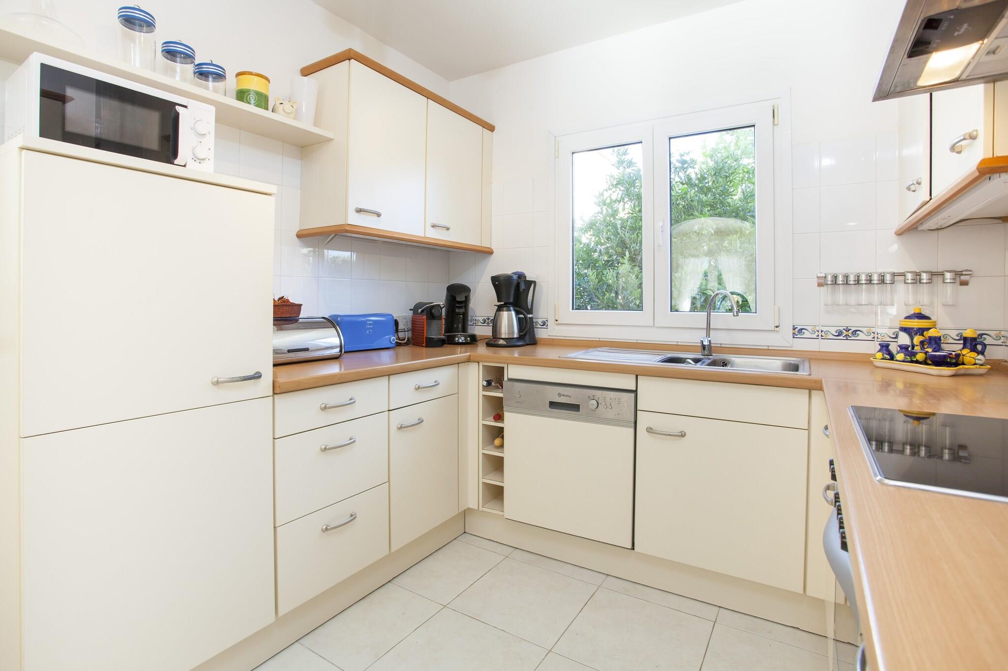 Pool og udendørs afslapning Træd ind i din private 6 x 3 m klorpool, perfekt til en forfriskende dukkert eller slapper af under den mallorcanske sol. Terrassen byder på 4 liggestole og en skyggefuld veranda, ideel til at læse eller nyde et glas vin. Et spiseområde med grill giver dig mulighed for at nyde måltider under åben himmel, mens den indhegnede ejendom sikrer både privatliv og et fredeligt miljø. Naboer i nærheden tilføjer en følelse af fællesskab uden at kompromittere din afsondrethed. Komfortabelt indendørs ophold Indvendigt strækker villaen sig over to etager med middelhavsinspireret stil og bløde toner overalt. Stuen, med komfortable sofaer og satellit-tv, forbinder til spisepladsen. Køkkenet er fuldt udstyret med keramisk kogeplade, ovn, mikroovn og opvaskemaskine. Tre dobbeltværelser har hver en-suite badeværelser, to med bruser og et med badekar. Aircondition, ventilatorer, en barneseng og en høj stol er tilgængelige efter anmodning. Et vaskerum omfatter vaskemaskine, tørretumbler, strygejern og strygebræt. To soveværelser i stueetagen og et ovenpå giver nem adgang til terrassen til morgenkaffe eller aftenafslapning. Charmerende kystnære beliggenhed Beliggende i den fredelige landsby Son Serra de Marina, er du 1,2 km fra stranden med lavt, krystalklart vand og en familievenlig atmosfære. Restauranter, butikker og grundlæggende tjenester er i nærheden, mens Can Picafort ligger 11 km væk for yderligere spisning og fritid. Udforsk de omkringliggende strande som Puerto de Alcúdia, eller tag til Sa Pobla for at se lokale markeder.