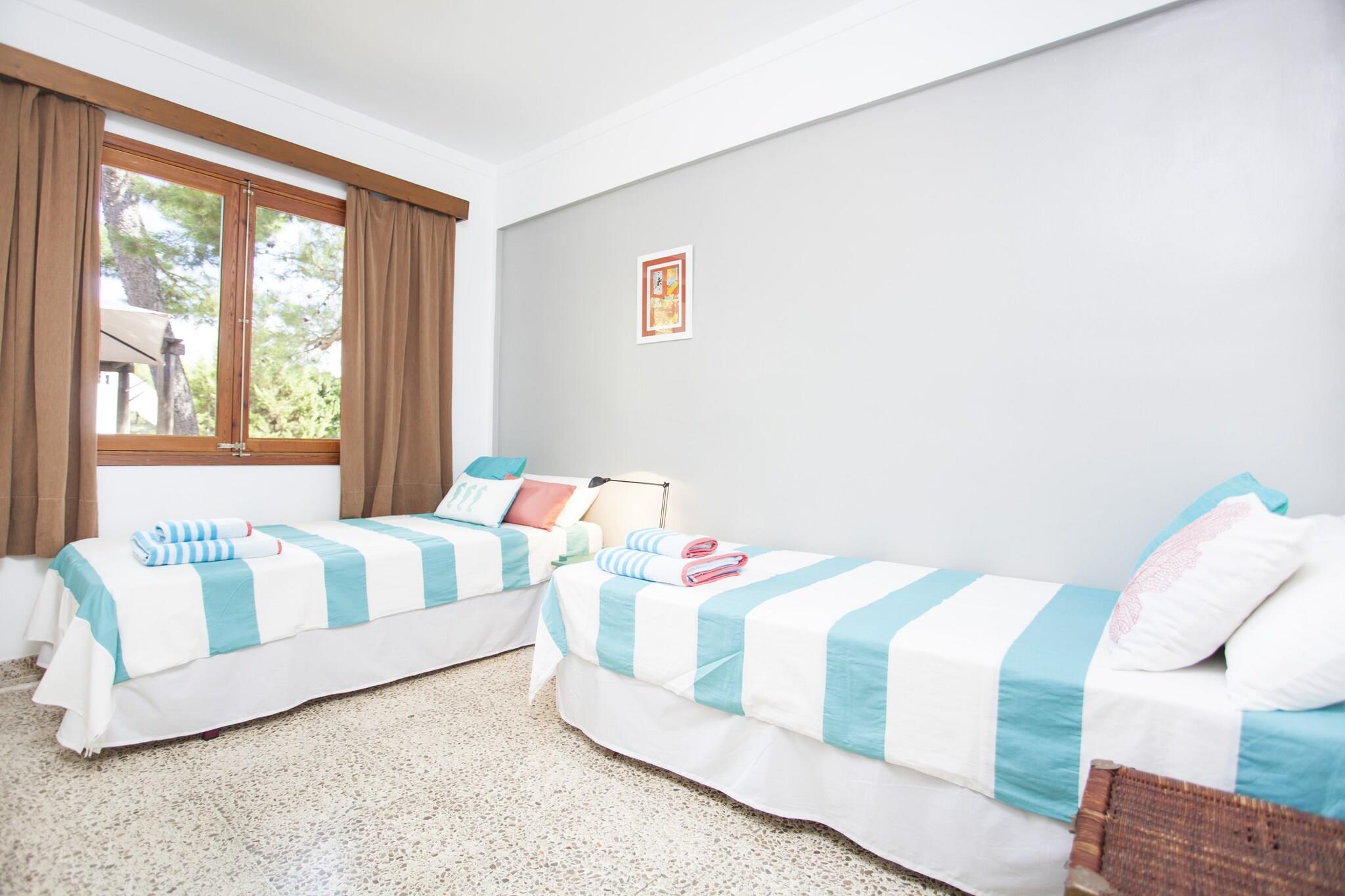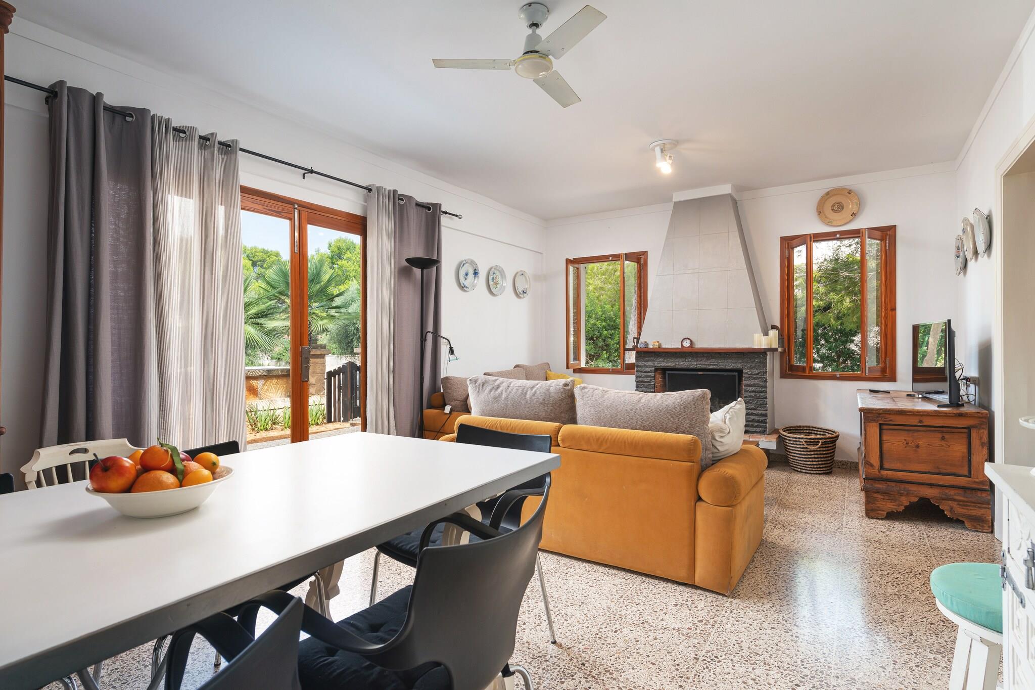 Kun 400 meter fra stranden tilbyder denne hyggelige villa i Son Serra de Marina det perfekte sted at slappe af efter en solblød dag. Nyd en skyggefuld terrasse under fyrretræerne, komplet med fire liggestole, en grill, brændeovn og en udendørs bruser. Mens børn nyder gyngerne, kan voksne slappe af med en bog eller nyde udendørs spisning i disse fuldt indhegnede, fredelige omgivelser. To cykler er til rådighed for at udforske omgivelserne. Etplansboligen har et enkelt, men funktionelt interiør. Stuen/spisestuen inviterer dig til at slappe af med satellit-tv eller en film på DVD, mens spisebordet har plads til seks. Køkkenet har gaskomfur og basisredskaber. Der er tre soveværelser: et med køjeseng og enkeltseng, et med dobbeltseng og et andet med to enkeltsenge. Et badeværelse er knyttet eksternt, og et andet indendørs badeværelse fuldender hjemmet. En barneseng og høj stol er til rådighed, sammen med en vaskemaskine, strygejern og strygebræt. Son Serra de Marina ligger i en rolig urbanisering og er ideel for naturelskere, vandrere og strandgæster. Det nærliggende Can Picafort byder på supermarkeder og underholdning. Kæledyr op til 10 kg er velkomne. Arrangementer er ikke tilladt.