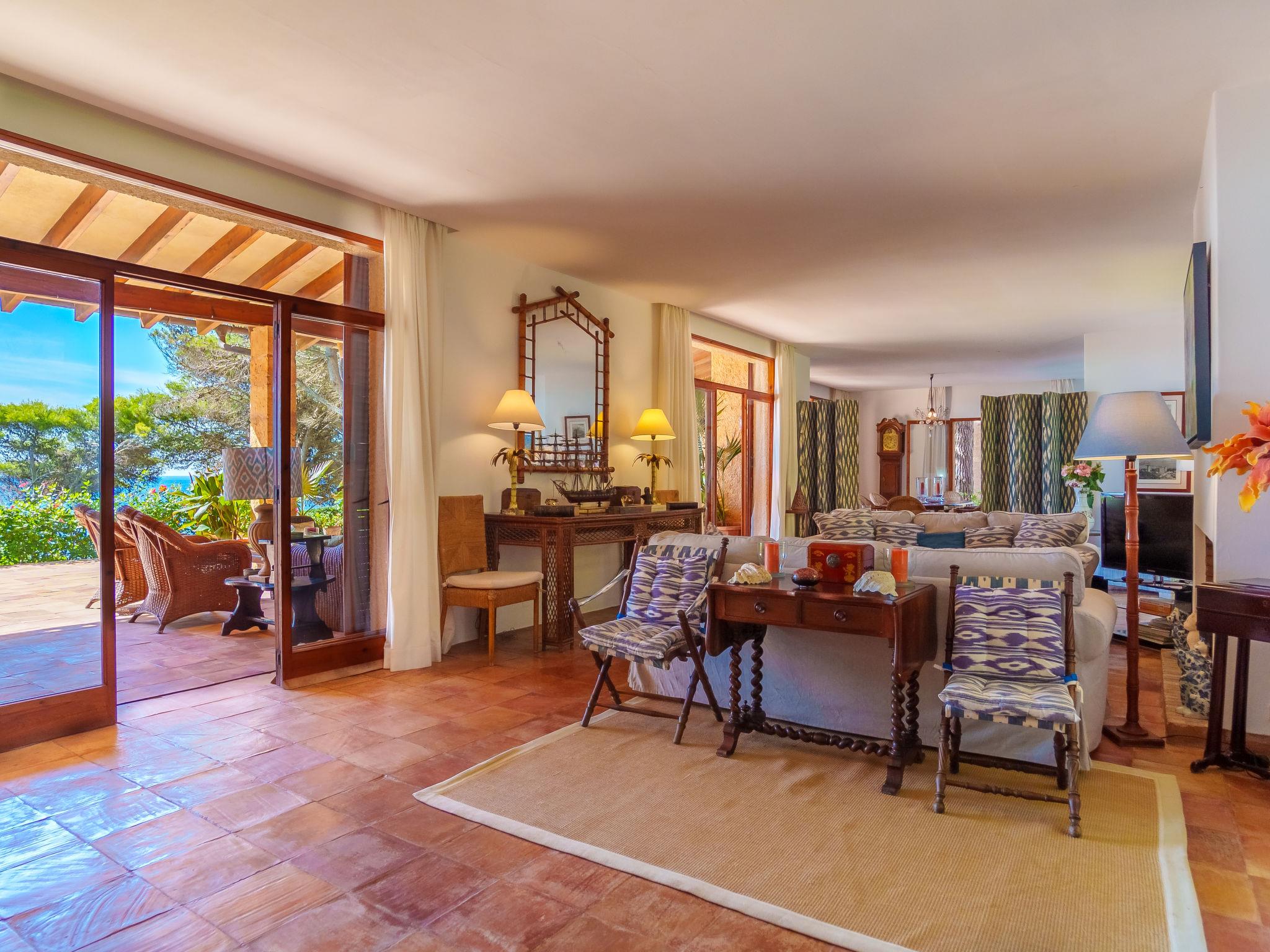 "Finca L'Embat", 7-room villa 360 m2. Stylish furnishings: living/dining room with open-hearth fireplace, dining table, satellite TV and DVD. Exit to the terrace. Living room with electric heater. Exit to the terrace. 1 room with 1 french bed (180 cm), bath/WC, double hand-basin and electric heater. Exit to the terrace. 1 room with 2 beds, bath/WC and double hand-basin. Exit to the terrace. 1 room with 2 beds and shower/WC. Exit to the terrace. 2 rooms, each room with 2 beds, shower/WC, air conditioning and forced-air heating. Exit to the terrace. Kitchen (oven, dishwasher, 3 ceramic glass hob hotplates, toaster, microwave, freezer, electric coffee machine). Bath/shower/WC. Heating not available in all rooms. Terrace 60 m2, terrace 200 m2 partly roofed. Terrace furniture, deck chairs. Marvellous view of the sea. Facilities: washing machine, iron, children's high chair, baby cot for up to 2 year olds. Internet (WiFi, free). Please note: non-smoking house. No internal connecting door between the separated properties. When there are less than the maximum number of guests staying at the property, not all of the bedrooms will be available for use. ETV10667 // Reg. Nr.: ESFCTU00000702300037122500000000000000000000ETV106677