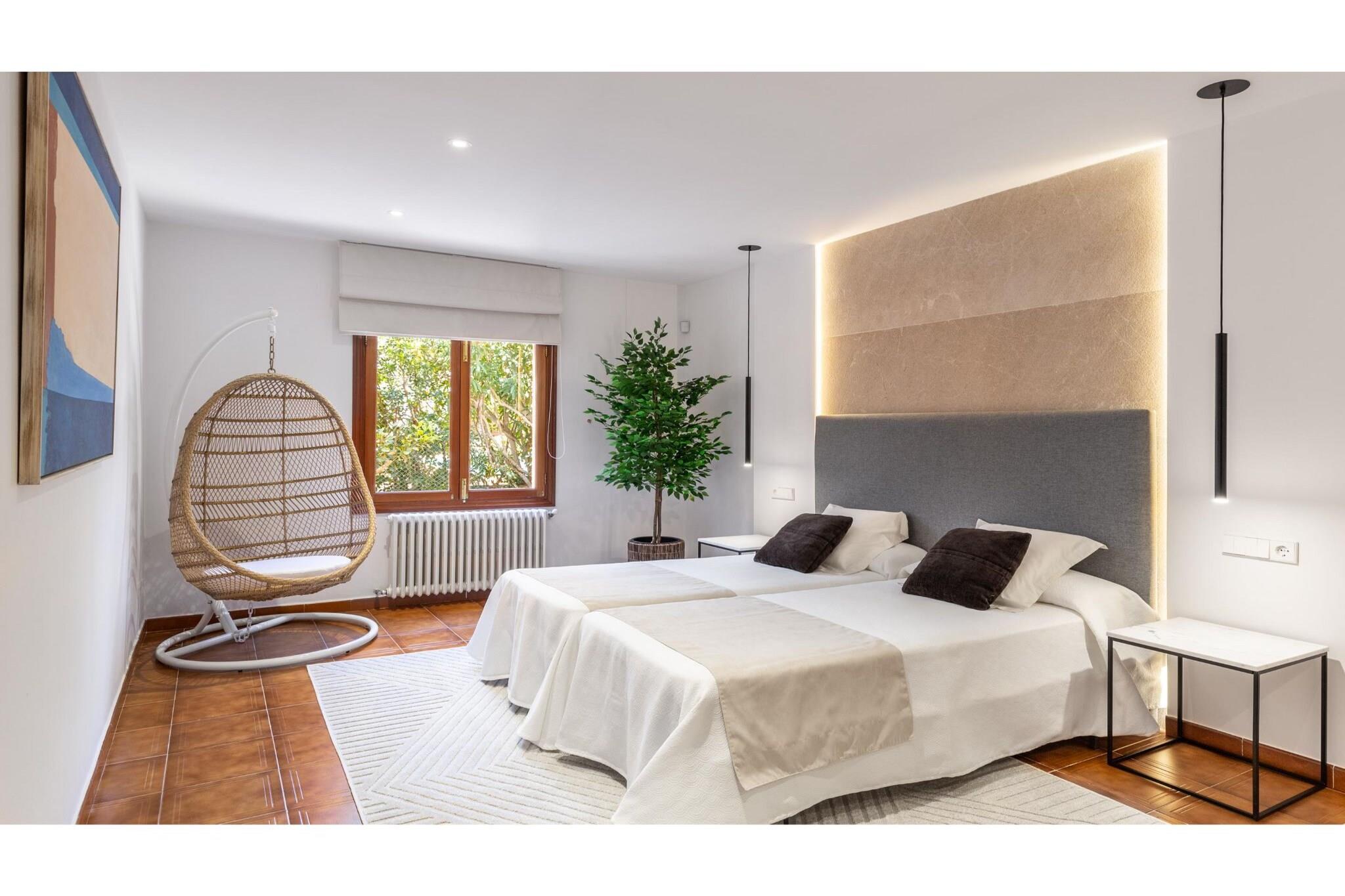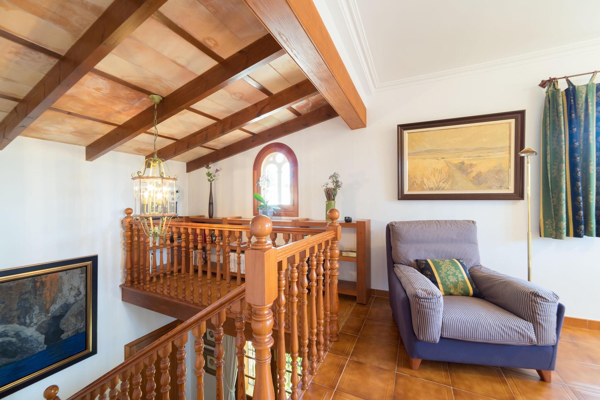 Stueetage: (Køkken(komfur(Komfur med fire kogeplader), ovn, mikrobølgeovn, opvaskemaskine , køle-fryseskab, tørretumbler, vaskemaskine, barnestol), stue / spisestue(Fjernsyn(parabol), pejs, DVD-afspiller, CD-afspiller), soveværelse(dobbeltseng, varme, klimaanlæg), soveværelse(2x enkeltseng, enkeltfoldeseng, varme, klimaanlæg), badeværelse(badekar med bruser, håndvask, bidet), varme(central), klimaanlæg) På 1. etage: (soveværelse(2x enkeltseng, varme), Soveværelse med badeværelse(dobbeltseng, bruser, håndvask, bidet, varme, klimaanlæg), badeværelse(badekar med bruser, håndvask, bidet)) havestue/veranda, garage, bruser(udendørs), terrasse, have, havemøbler, parkering, swimmingpool(privat, 5 x 5 m., opened from Mar upto and including Sep), bordtennisbord, barneseng