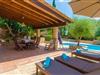 Omgivet af middelhavsvegetation tilbyder denne charmerende villa total privatliv og et enkelt, men indbydende udendørsområde. Højdepunktet er den 4,5 x 3 m ovale klorpool (dybde: 0,8-1,2 m), som er opvarmet i marts, april, maj og oktober – ideel til ferier i skuldersæsonen. Efter en svømmetur kan du slappe af på en af ??de seks liggestole eller nyde en grill under den skyggefulde veranda. En udendørs bruser fuldender rummet. Indenfor byder det lyse og moderne interiør på en hyggelig stue/spisestue med satellit-tv og AC. Det separate køkken har en keramisk kogeplade, og vaskerummet har vaskemaskine, strygejern og strygebræt. Villaen har 3 soveværelser - 2 med dobbeltsenge (et med adgang til haven) og 1 med to enkeltsenge. To komplette badeværelser (1 bruser, 1 badekar) sikrer komfort. Soveværelserne afkøles via AC på gangen. En barneseng og høj stol er til rådighed for familier. Beliggende kun 1 km fra Costa dels Pins-stranden og tæt på topsteder som Cala Bona og Cala Millor. Golfelskere vil nyde nærheden til Pula Golf, kun 4,3 km væk. Son Servera, 4 km væk, tilbyder alle væsentlige tjenester. Arrangementer og kæledyr ikke tilladt. Elektricitet: 0,50 EURO/kWh. Udvendig parkering til 3 biler. Ecotasa gælder. Opvarmet pool tilgængelig efter forudgående anmodning (5 dages varsel).