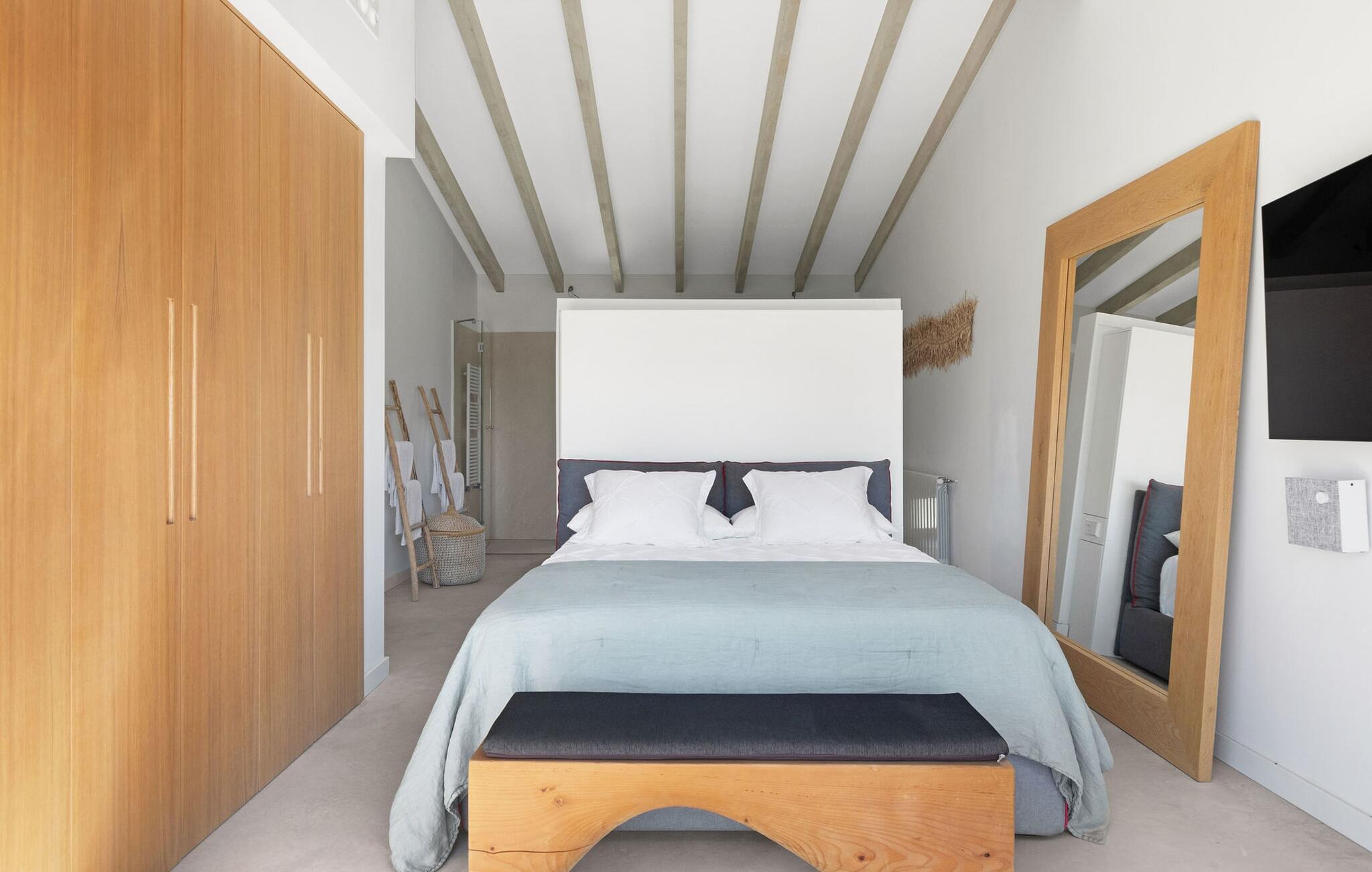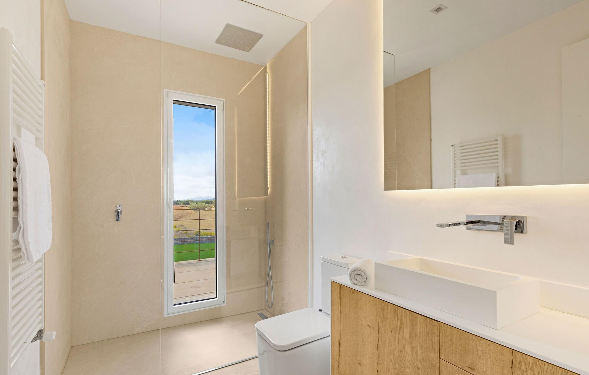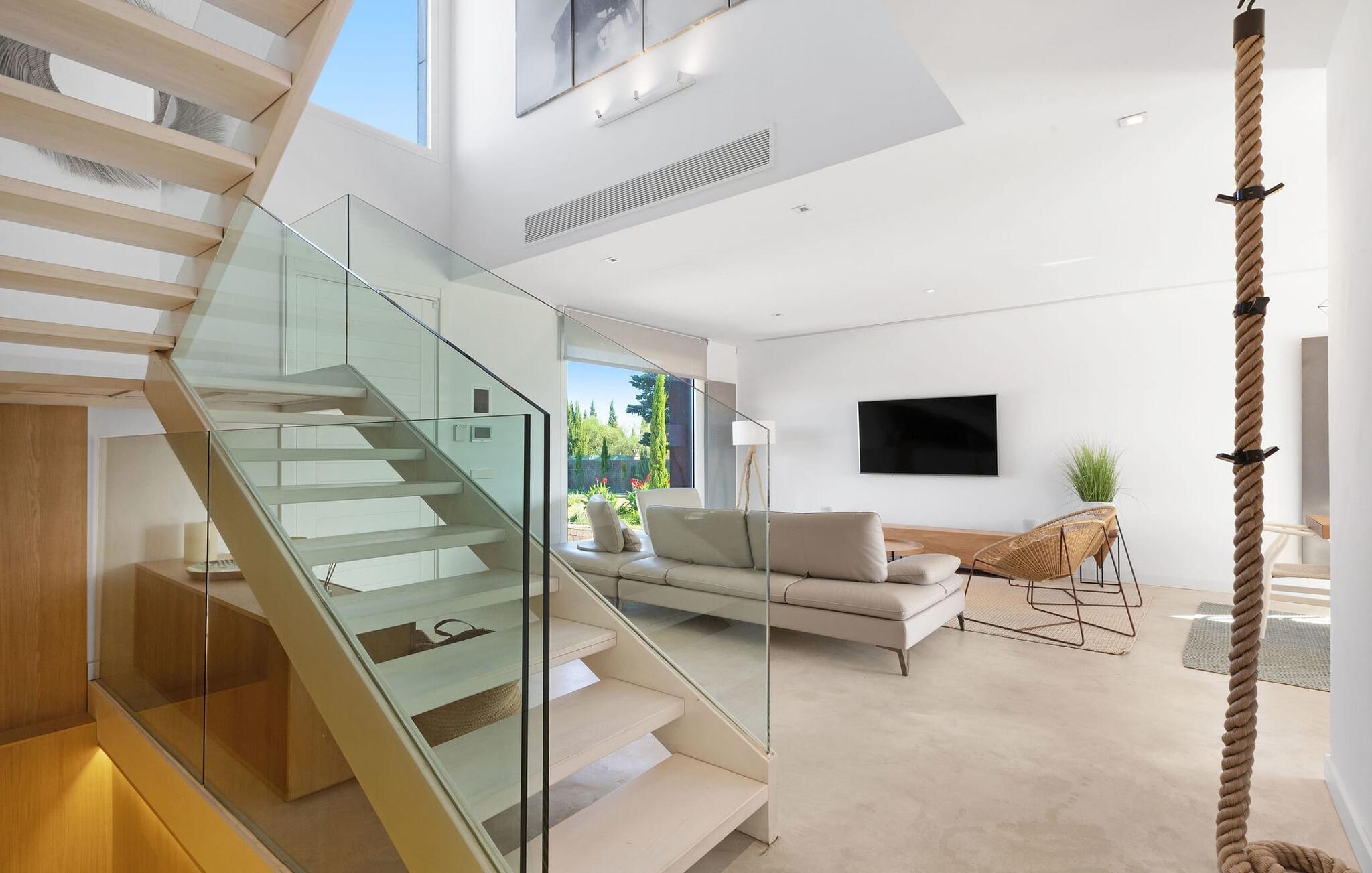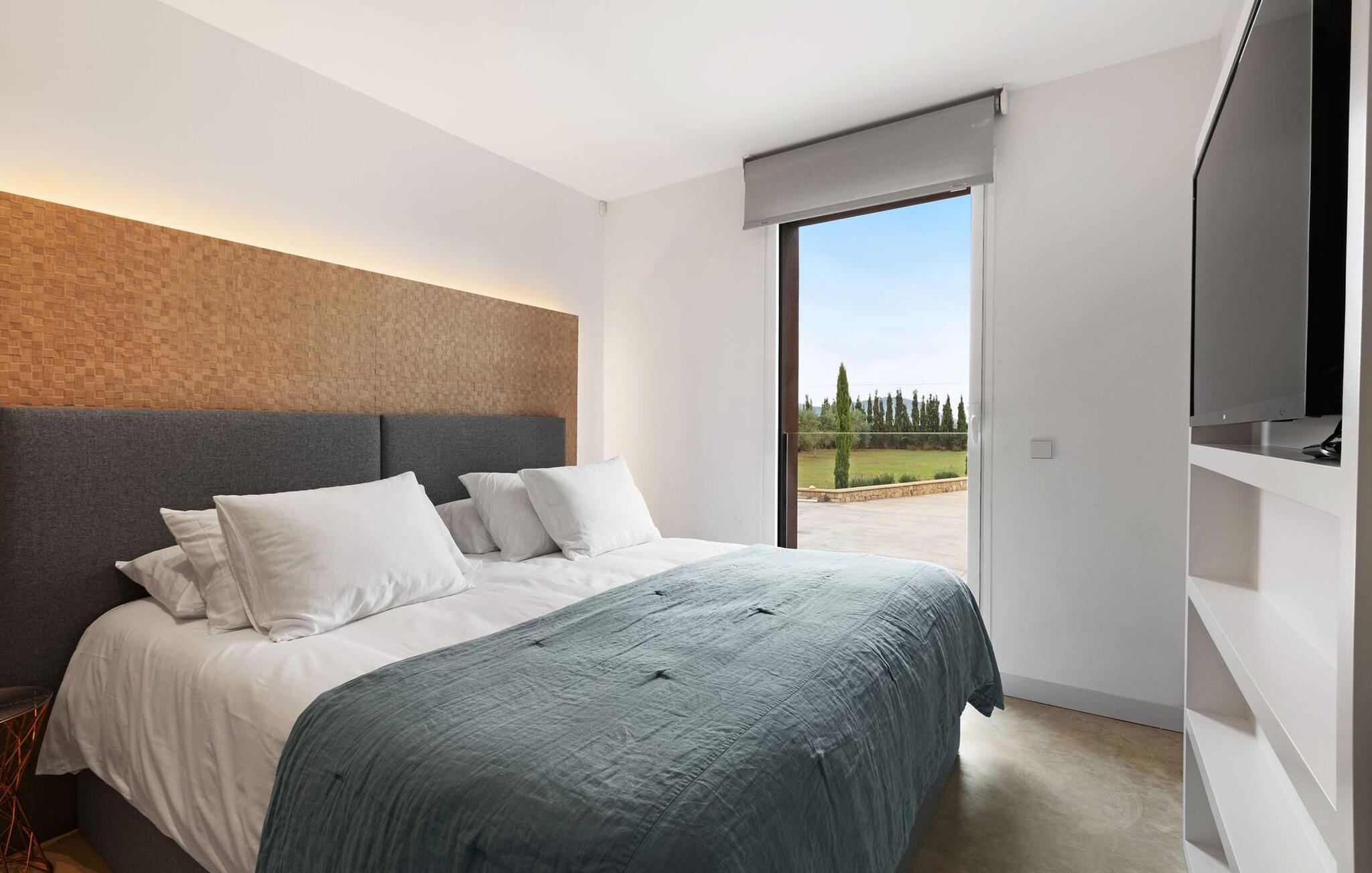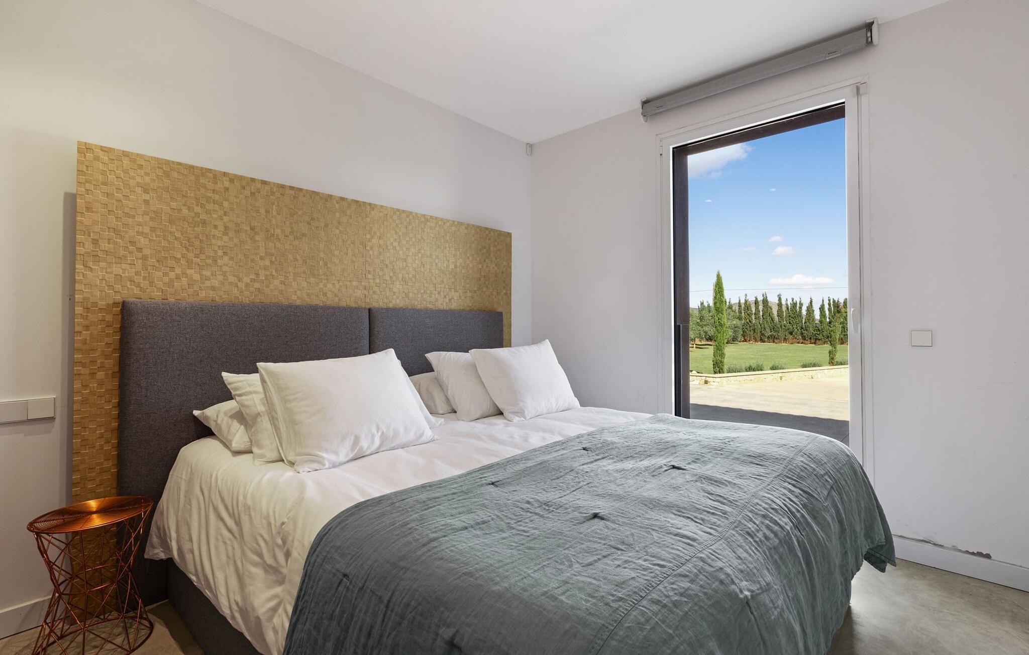 Har I en stjernebesat ferie i tankerne, så se nærmere på dette enestående feriehus. Denne Mallorca-gård er en rigtig allrounder, der vil glæde feriegæster med kræsne forventninger. “Son Set” viser allerede talent på udeområdet, som bestemt scorer point ikke kun med sin størrelse, men også med sine velholdte arealer som den stedsegrønne (kunstige) græsplæne med fodboldbane, stilfulde terrasser med og uden tag . Et af højdepunkterne ved denne feriefinca er den store pool med trapper og tilstødende solterrasse, som ikke kun byder på komfortable liggestole, men også en balinesisk seng. Et ekstraordinært og perfekt udstyret udekøkken med kogeø og bord, vinkøleskab, køleskab, opvaskemaskine, ovn, Weber grill og spisebord er endnu et højdepunkt, der kan lukkes med glasskydedøre. Den overdækkede, komfortabelt møblerede terrasse direkte ved huset kan også bruges som indendørs eller udendørs område. Udvidelsen af denne terrasse danner stuen, som på imponerende vis afspejler stuehusets højkvalitets, smagfulde stil. Lyse, harmoniske farver samt unikke møbler og dekorative stykker skaber en trendy flair. Den åbne og lyse stue-spisestue flyder glat ud i køkkenet med en centralt placeret kogeø. Det elegante og hyggelige udtryk fortsætter i soveværelserne: I stueetagen er der et soveværelse med dobbeltseng og et badeværelse, på øverste etage er der yderligere tre dobbeltværelser, hvoraf det ene har eget badeværelse og egen terrasse. Et andet badeværelse fuldender disse opholdsrum. I kælderen finder I et praktisk vaskerum og et airconditioneret fitnessområde med forskellige træningselementer samt siddepladser og et komplet badeværelse. Denne bondegård på Mallorca er et absolut must for enhver, der lægger særlig vægt på eksklusive møbler kombineret med generøsitet og ynde. I landlig beliggenhed nær byen Costitx finder I det stilfulde bondehus "Son Set" med 2.000 m2 yderst velholdt have med græsplæne og middelhavsplanter. Øens hovedstad og sandstrandene i Alcúdia-bugten er omkring en halv times kørsel væk. I Costitx, som ligger omkring 10 minutter væk i bil, kan I gøre jeres indkøb om lørdagen, for eksempel på det lokale ugentlige marked. Centrum af Inca er kun omkring 4 km væk.