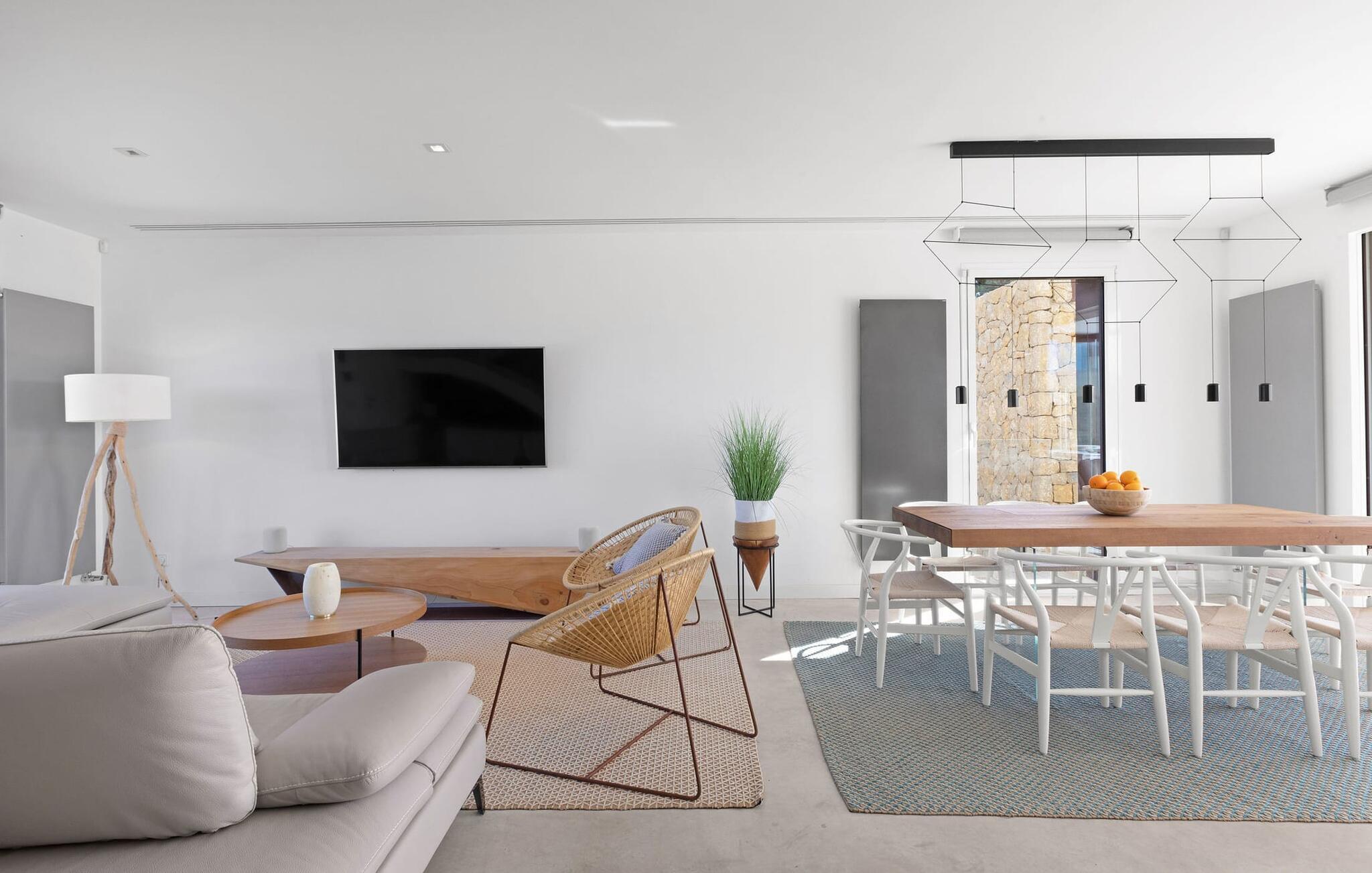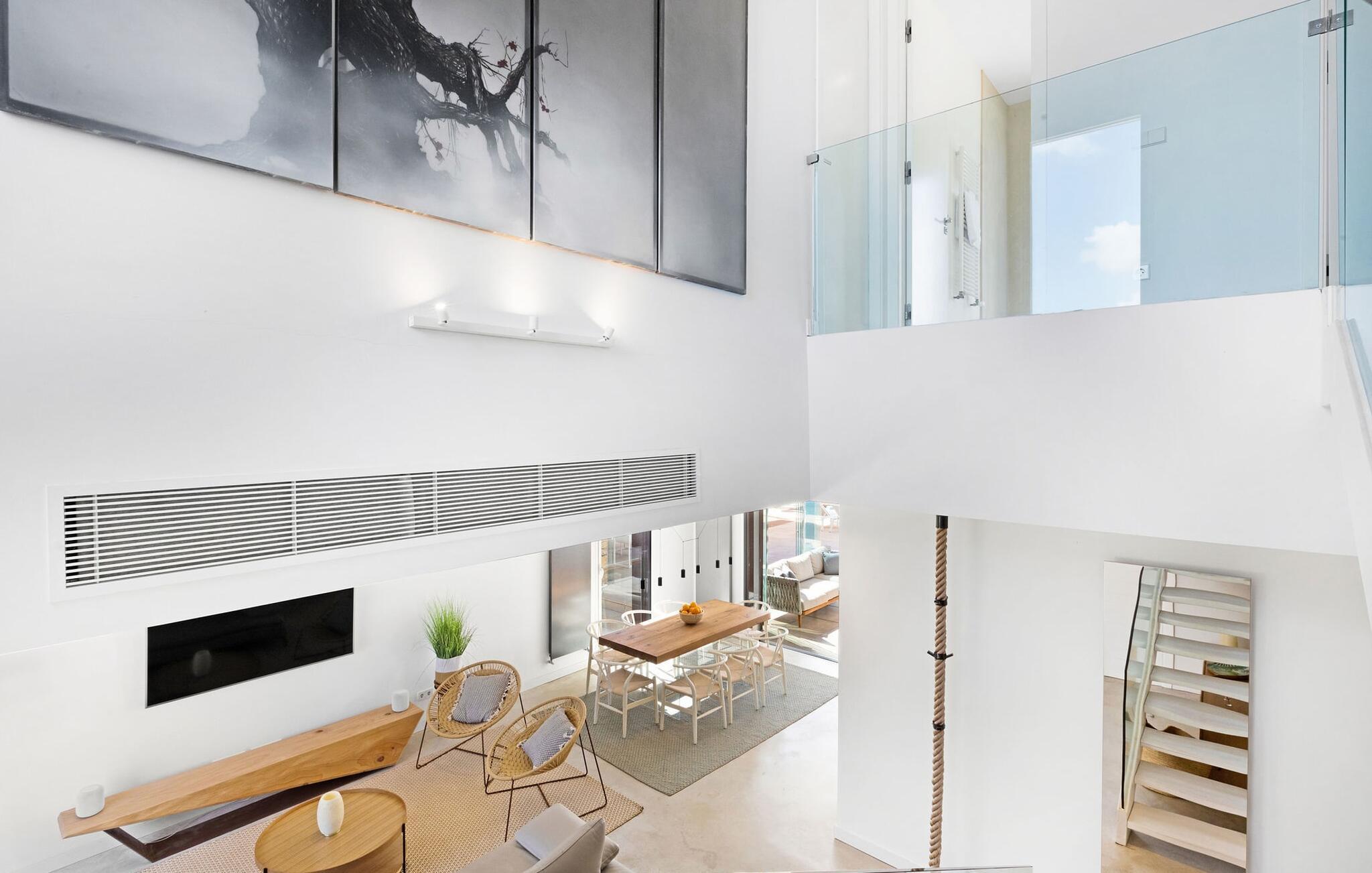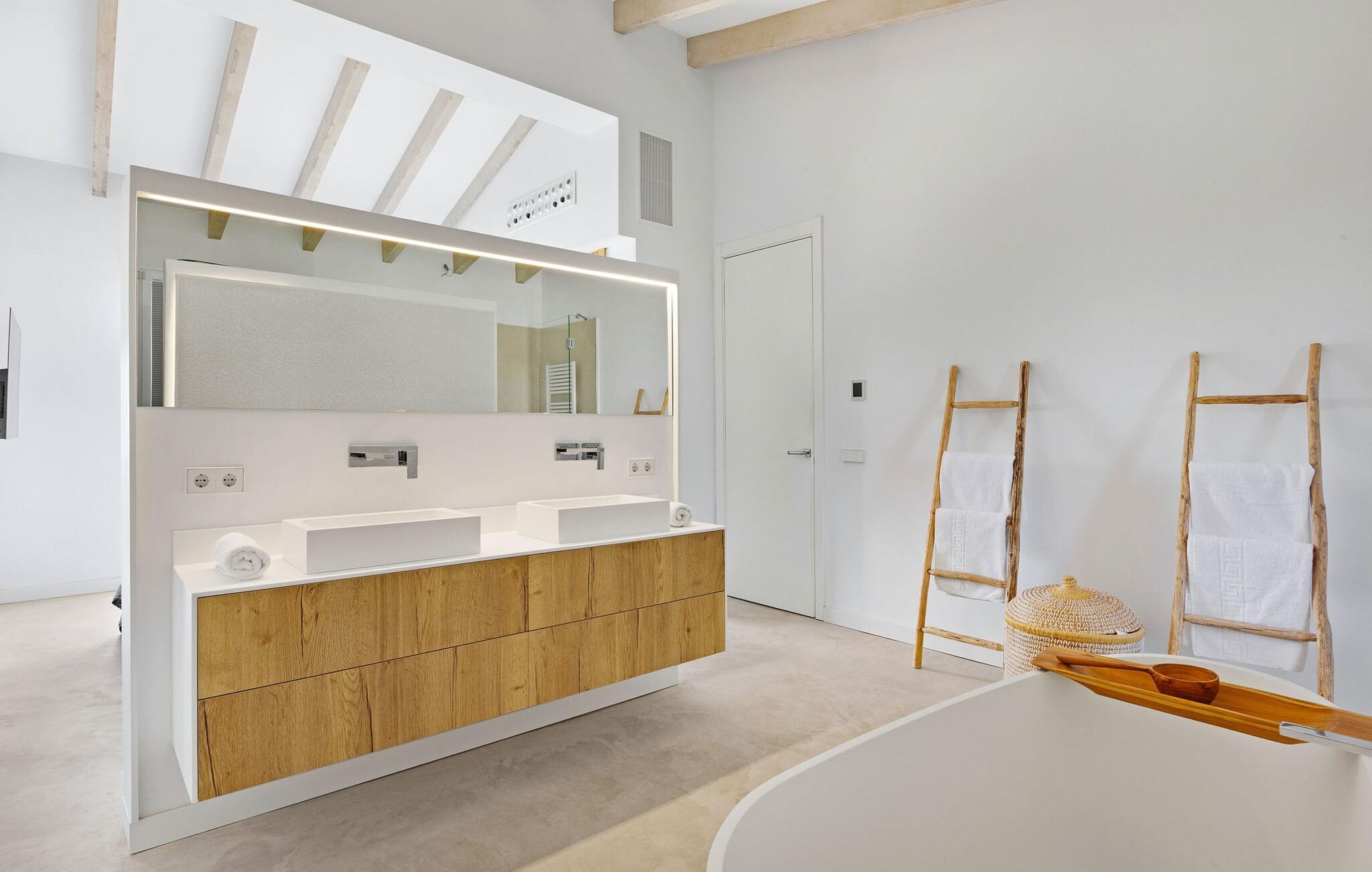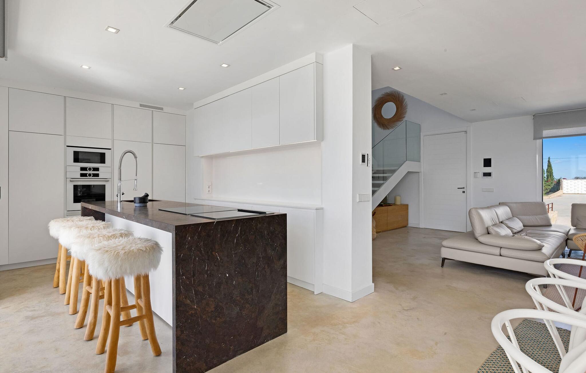 Har I en stjernebesat ferie i tankerne, så se nærmere på dette enestående feriehus. Denne Mallorca-gård er en rigtig allrounder, der vil glæde feriegæster med kræsne forventninger. “Son Set” viser allerede talent på udeområdet, som bestemt scorer point ikke kun med sin størrelse, men også med sine velholdte arealer som den stedsegrønne (kunstige) græsplæne med fodboldbane, stilfulde terrasser med og uden tag . Et af højdepunkterne ved denne feriefinca er den store pool med trapper og tilstødende solterrasse, som ikke kun byder på komfortable liggestole, men også en balinesisk seng. Et ekstraordinært og perfekt udstyret udekøkken med kogeø og bord, vinkøleskab, køleskab, opvaskemaskine, ovn, Weber grill og spisebord er endnu et højdepunkt, der kan lukkes med glasskydedøre. Den overdækkede, komfortabelt møblerede terrasse direkte ved huset kan også bruges som indendørs eller udendørs område. Udvidelsen af denne terrasse danner stuen, som på imponerende vis afspejler stuehusets højkvalitets, smagfulde stil. Lyse, harmoniske farver samt unikke møbler og dekorative stykker skaber en trendy flair. Den åbne og lyse stue-spisestue flyder glat ud i køkkenet med en centralt placeret kogeø. Det elegante og hyggelige udtryk fortsætter i soveværelserne: I stueetagen er der et soveværelse med dobbeltseng og et badeværelse, på øverste etage er der yderligere tre dobbeltværelser, hvoraf det ene har eget badeværelse og egen terrasse. Et andet badeværelse fuldender disse opholdsrum. I kælderen finder I et praktisk vaskerum og et airconditioneret fitnessområde med forskellige træningselementer samt siddepladser og et komplet badeværelse. Denne bondegård på Mallorca er et absolut must for enhver, der lægger særlig vægt på eksklusive møbler kombineret med generøsitet og ynde. I landlig beliggenhed nær byen Costitx finder I det stilfulde bondehus "Son Set" med 2.000 m2 yderst velholdt have med græsplæne og middelhavsplanter. Øens hovedstad og sandstrandene i Alcúdia-bugten er omkring en halv times kørsel væk. I Costitx, som ligger omkring 10 minutter væk i bil, kan I gøre jeres indkøb om lørdagen, for eksempel på det lokale ugentlige marked. Centrum af Inca er kun omkring 4 km væk.