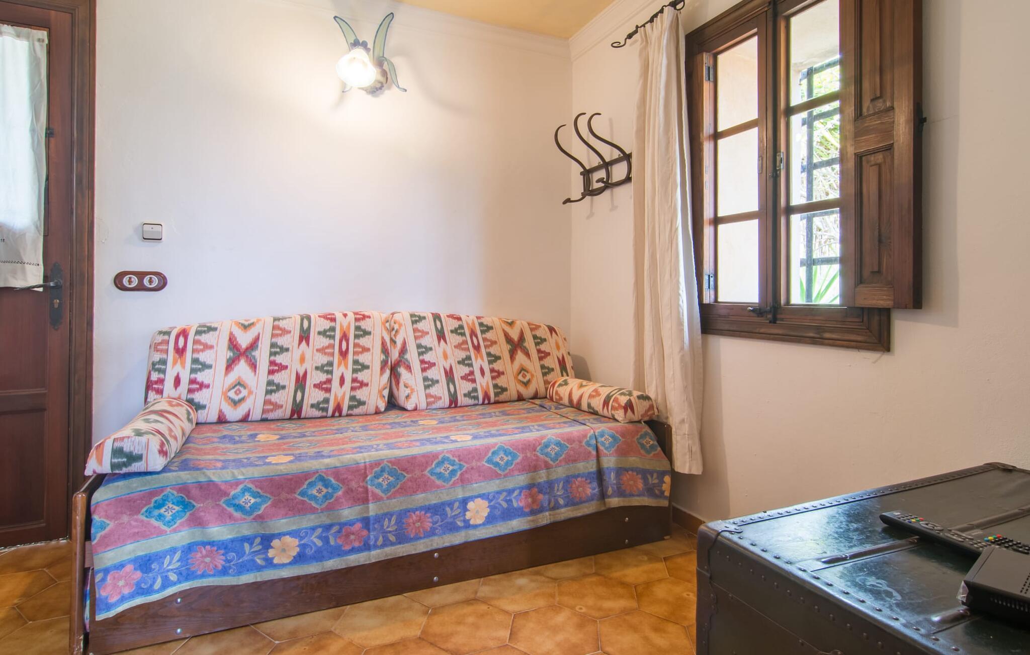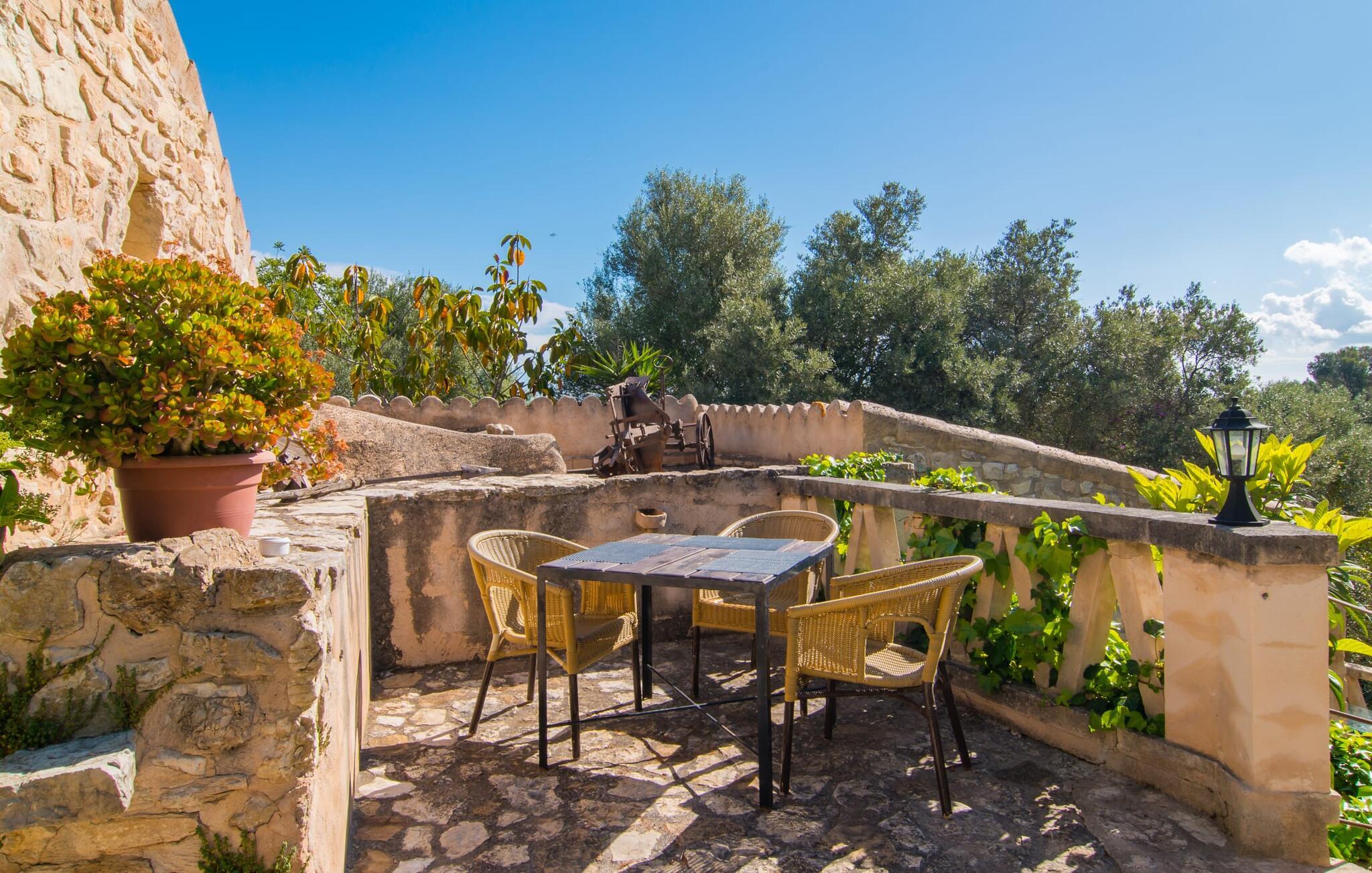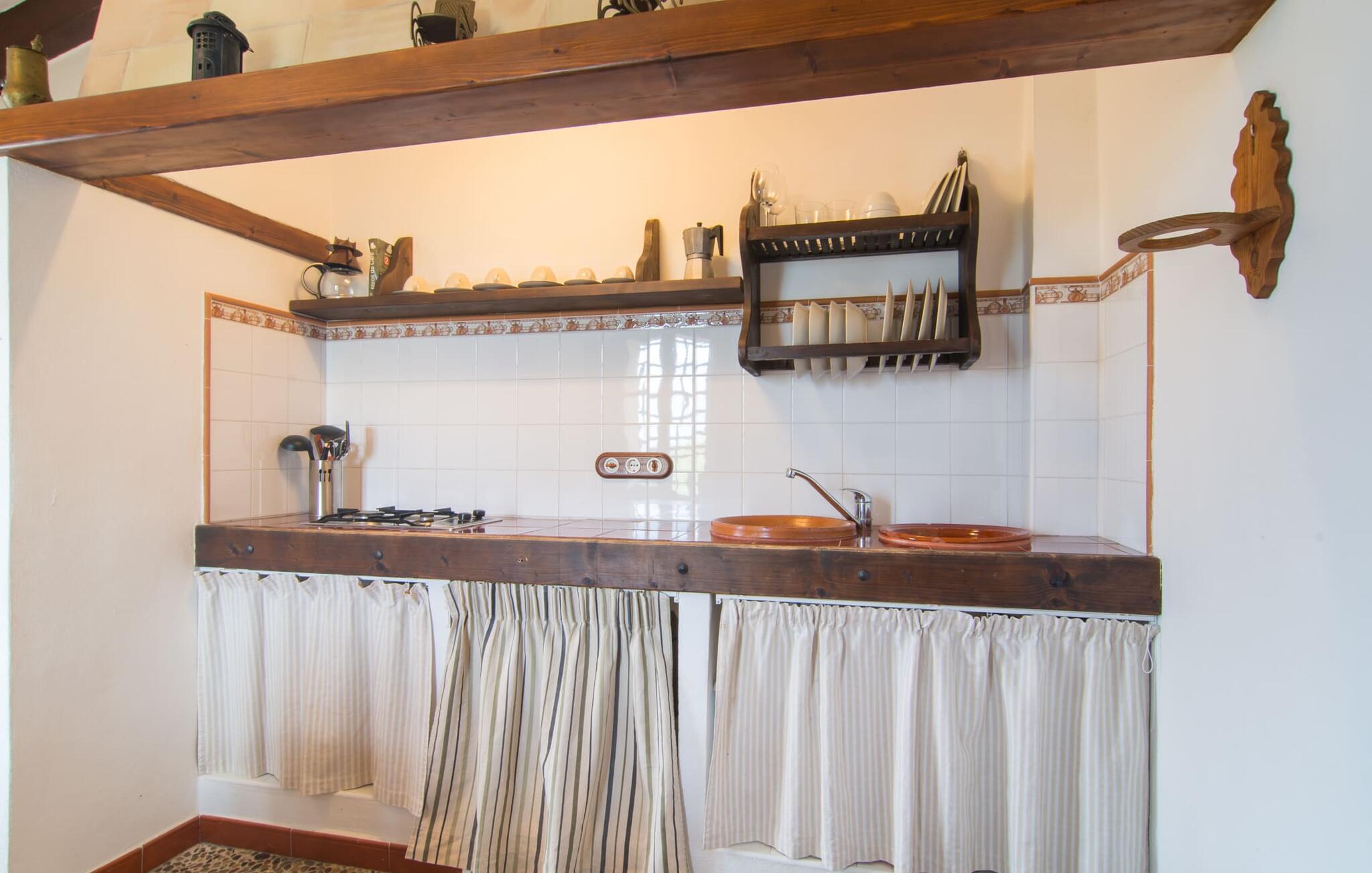 Lejligheden "Son Torrat Es Sostre" er et charmerende minihus i det maleriske agriturismeresort "Son Torrat" i det landlige Mallorca, nær Petra. Ejendommen ligger på en bjergskråning og har rustikke naturstensbygninger omgivet af frodigt middelhavslandskab og har sin egen frugthave. Gæsterne har masser af plads til at slappe af og nyde udendørs aktiviteter som bordtennis og volleyball samt en fælles pool med liggestole og parasoller. En særlig babypool er tilgængelig for yngre besøgende, mens et unikt spabad i læ af en stenhule giver et romantisk tilflugtssted. Lejligheden har en privat solterrasse med spisemøbler, der beriger udendørsoplevelsen. Indenfor afspejler møblerne en harmonisk blanding af rustik charme og komfort med lyse vægge, synlige bjælker og naturstenselementer. Opholdsstuen har en komfortabel sofa og et spisebord lavet af træskiver samt et praktisk køkken med terracotta vaske. Layoutet er praktisk, med alle bekvemmeligheder på ét plan, herunder et soveværelse med dobbeltseng og et badeværelse med brusebad. For optimal adgang til resortet anbefaler vi en terrænudlejningsbil. Hvis I elsker fred og natur og sætter pris på smukke landskaber, så er I kommet til det rette sted. Den smukke, maleriske og rustikke ferielejlighed "Son Torrat Es Sostre" er beliggende i en absolut rolig beliggenhed på en blid skråning, omgivet af smuk natur i den landlige centrum af øen, som er særligt berømt for sin regionalt dyrkede vine Cabernet Sauvignon og Chardonnay og Merlot ligger 4,2 km derfra, mens den nærmeste strand ligger 20 km derfra.