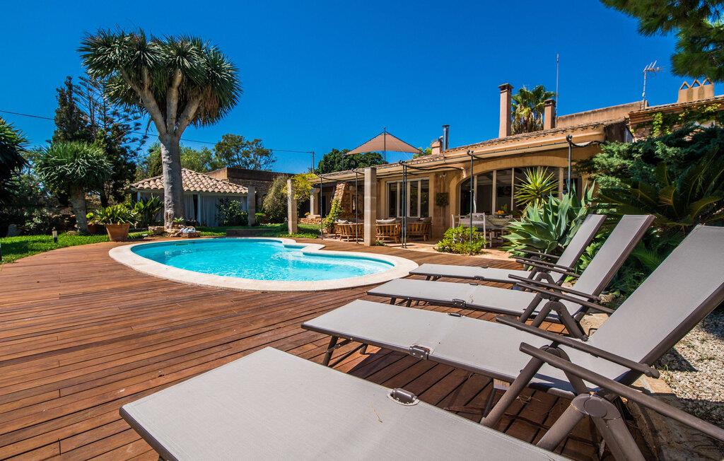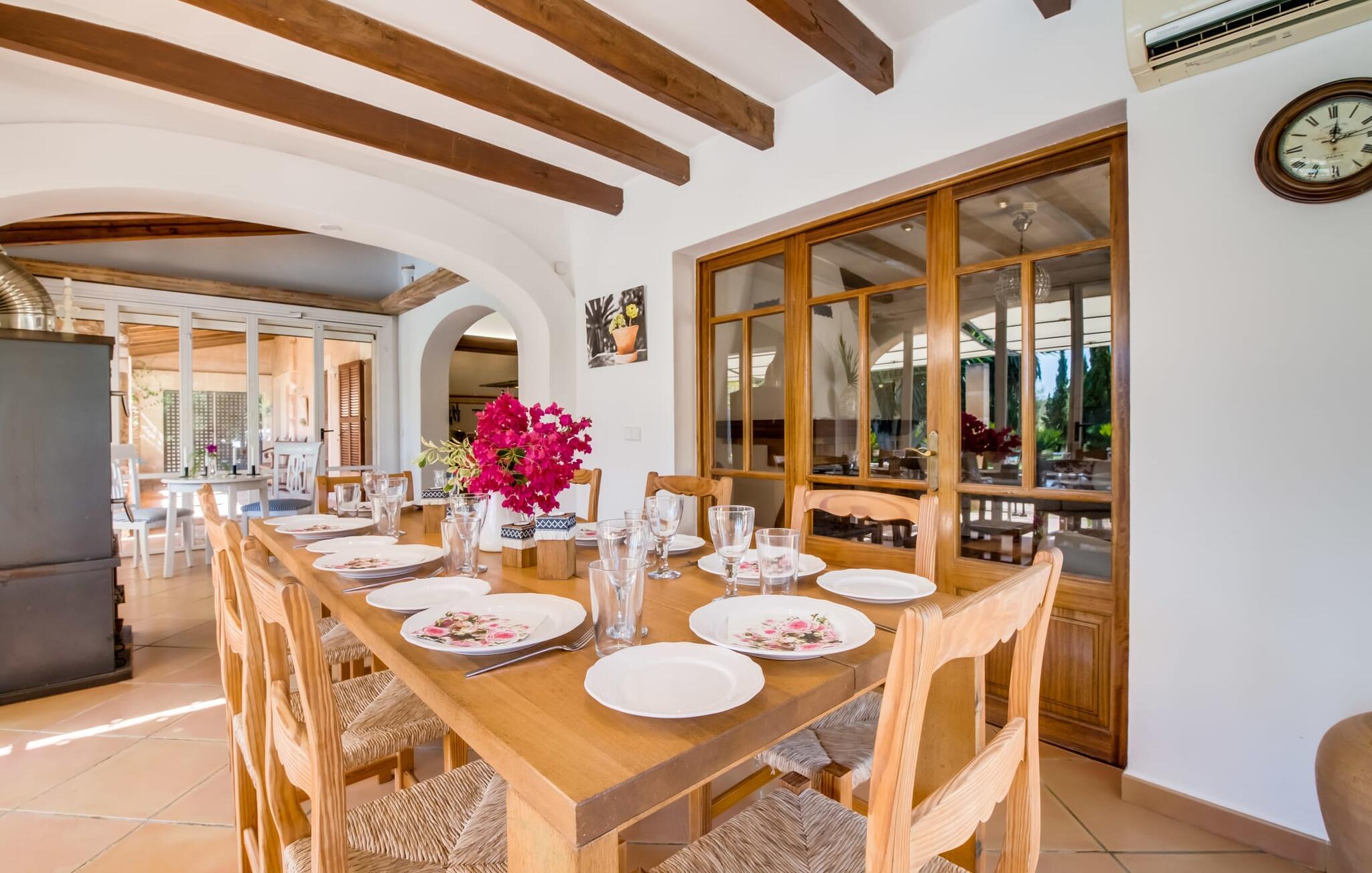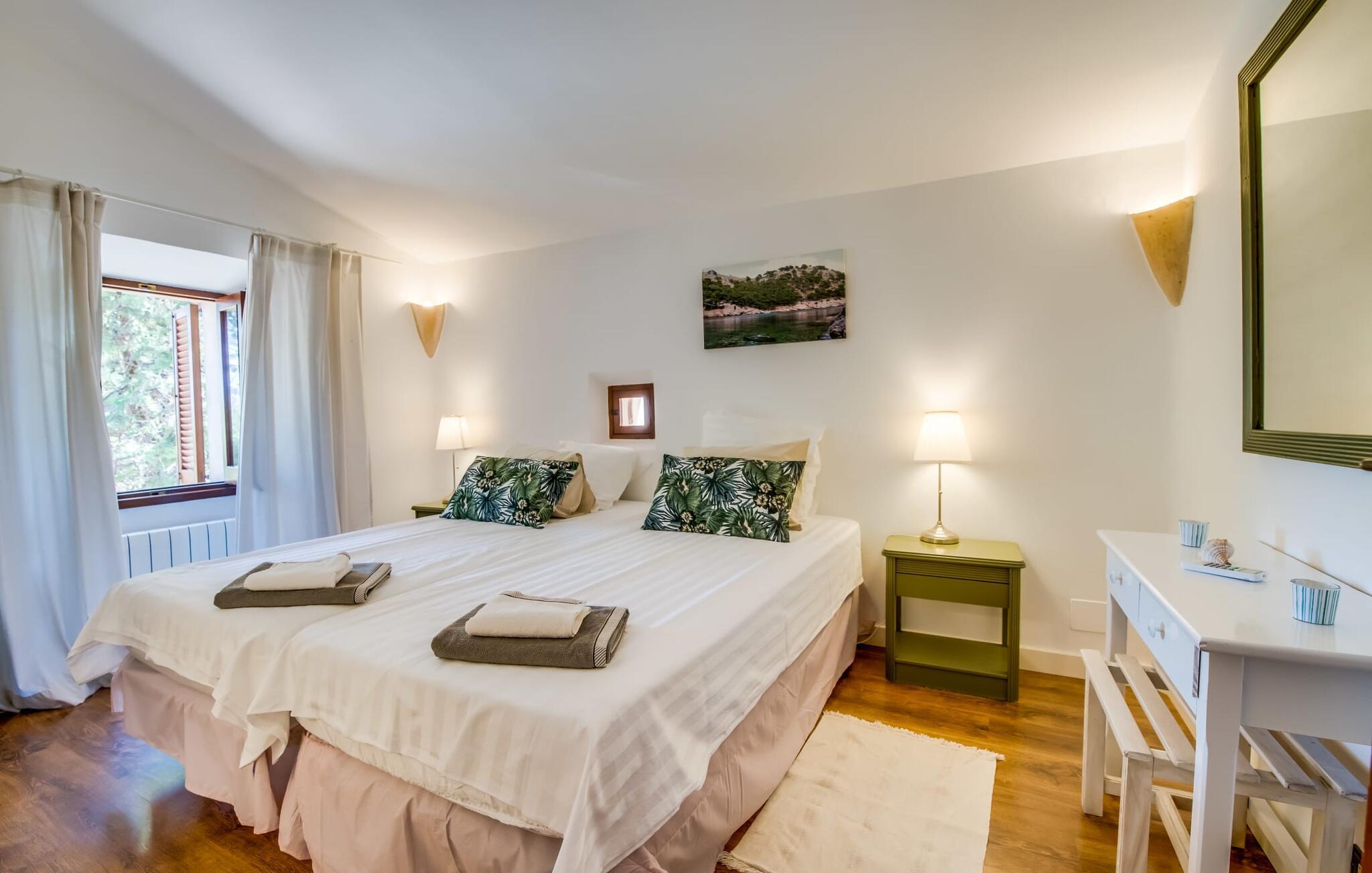 Hvis I vælger villaen "Son Tous", vil I finde charmerende indkvartering, hvis udendørs område er ideelt til solbadning: poolens blide kurver med træplankerne på den omkringliggende solterrasse, de eksotiske træer med bizarre former og meget mere mange retreats i den vidunderlige have skaber den perfekte stemning til afslappende dage. Med en sans for æstetik har ejeren formået at kombinere lounge-atmosfæren i et livsstilsetablissement med charmen fra en landvilla. Mange ekstrafunktioner som et praktisk udekøkken med en førsteklasses grill eller en dam med et behageligt pladrende springvand sikrer god stemning og masser af variation til jeres dage i villaen. De lange borde i haven giver plads nok til alle rejsende – og alle andre gæster. Uanset om I vælger at nyde jeres eftermiddagste på den skyggefulde terrasse eller den rummelige balkon, vil alle aspekter af villaen glæde jer med sin originalitet og kvalitet. Vinterhaven med sin lyse glasfacade og pejs er også et dejligt hyggeligt sted for selskabelige stunder. Adgang sker via det enorme køkken med kogeø, som opfylder selv de højeste krav. Inspireret af opfindsomheden i dette rum, vil I endelig finde tid til at prøve nogle af de mere komplicerede retter! Villaens stue har en rustik stemning med et hvælvet loft, der minder om middelalderlige vinbarer. Hvis I gerne vil slutte dagen af med et glas vin, er der en gyngestol og to komfortable hvide sofaer til jeres rådighed. Gangen med sine rustikke træelementer og de typiske mallorcanske tagbjælker er også et blikfang. Tre af soveværelserne er også i stueetagen - det ene med eget badeværelse, mens de to andre værelser deler badeværelse. De tre dobbeltværelser på øverste etage har alle deres eget badeværelse. Denne etage byder også på en moderne stue med en lædersofa og et fladskærms-tv, så I kan tilbringe en spændende filmaften her. Upåfaldende kunstværker og dekorative elementer som et ror understreger boligens maritime karakter. Den fristende nærhed til kysten indbyder til at gå ture og svømme. Den naturlige sandstrand Es Trenc nær Colonia St. Jordi kan nås på en halv time med udlejningsbil. Men der er også mange skjulte badebugter at opdage; Vi anbefaler Cala Santanyi, Cala Llombards og de dobbelte bugter Mondrago og S'Amarador. Besøger I den 700 år gamle kunstnerby Santanyí, kun 10 km fra villaen, finder I en spændende blanding af caféer, kunstgallerier og udsøgte restauranter. Den idylliske fiskerby Cala Figuera, 12 km væk, er et dejligt sted at se fiskerbådene komme tilbage om eftermiddagen. Her kan I nyde frisk fisk om aftenen, inden I vender tilbage til jeres vidunderligt rolige villa "Son Tous". Villa "Son Tous" byder på alt hvad I behøver for en uforglemmelig ferie, inklusive masser af kærlige detaljer og en fantastisk beliggenhed: det smukke Mondragó naturreservat i den sydøstlige del af Mallorca, det rolige Santanyi, kun 9,5 km væk, og utallige smukke badebugter som f.eks. som Cala Santanyi, Cala Llombards og dobbeltbugten Mondrago/S'Amarador – I er forkælet med valgmuligheder, når I planlægger jeres udflugter.