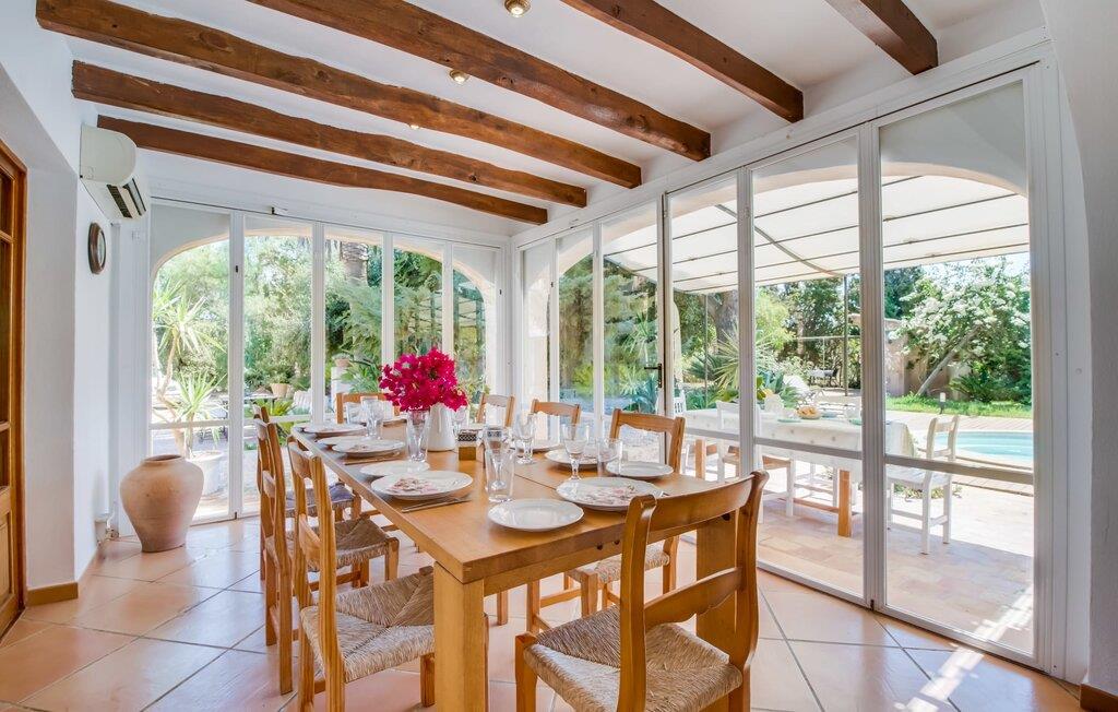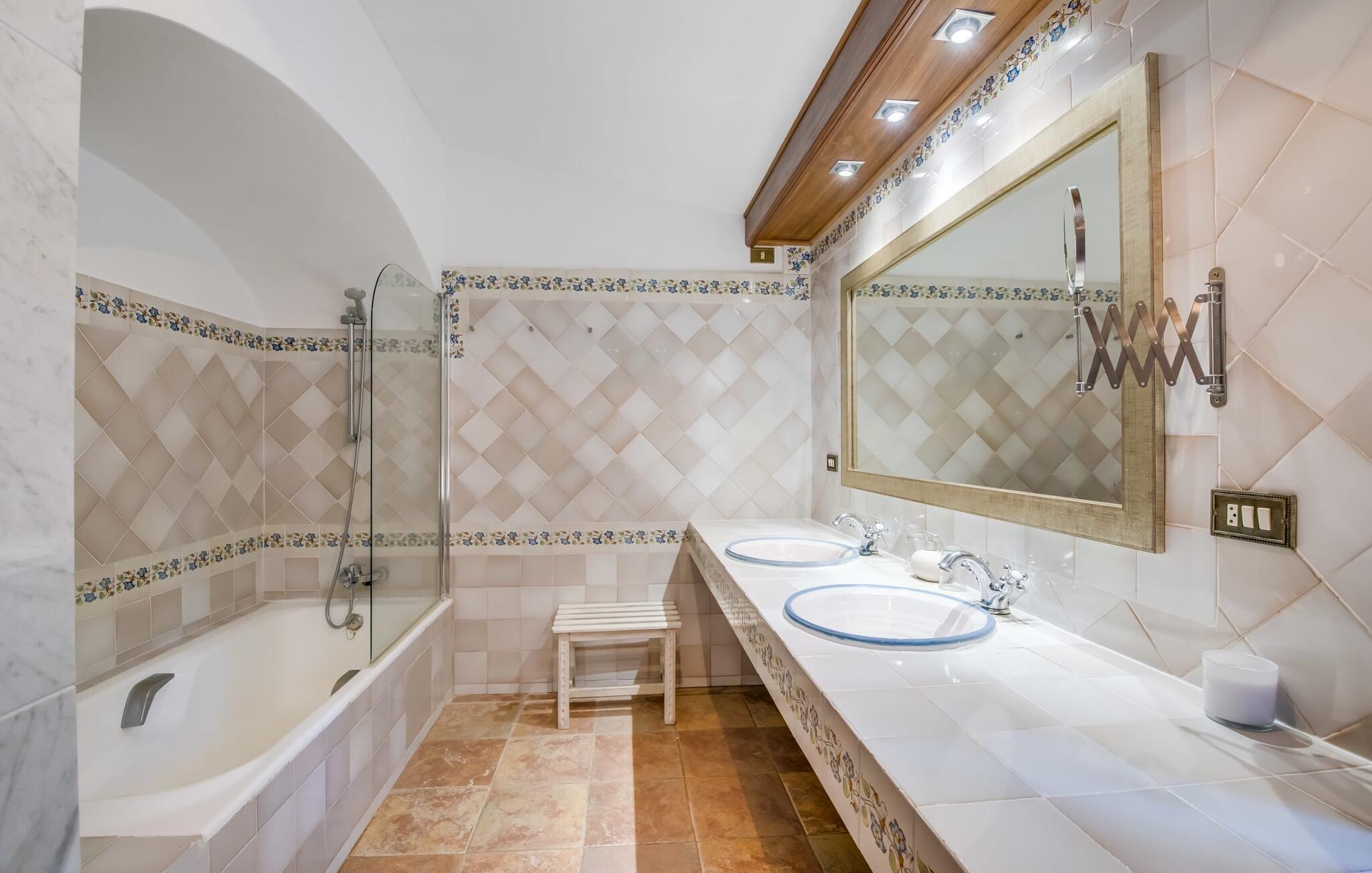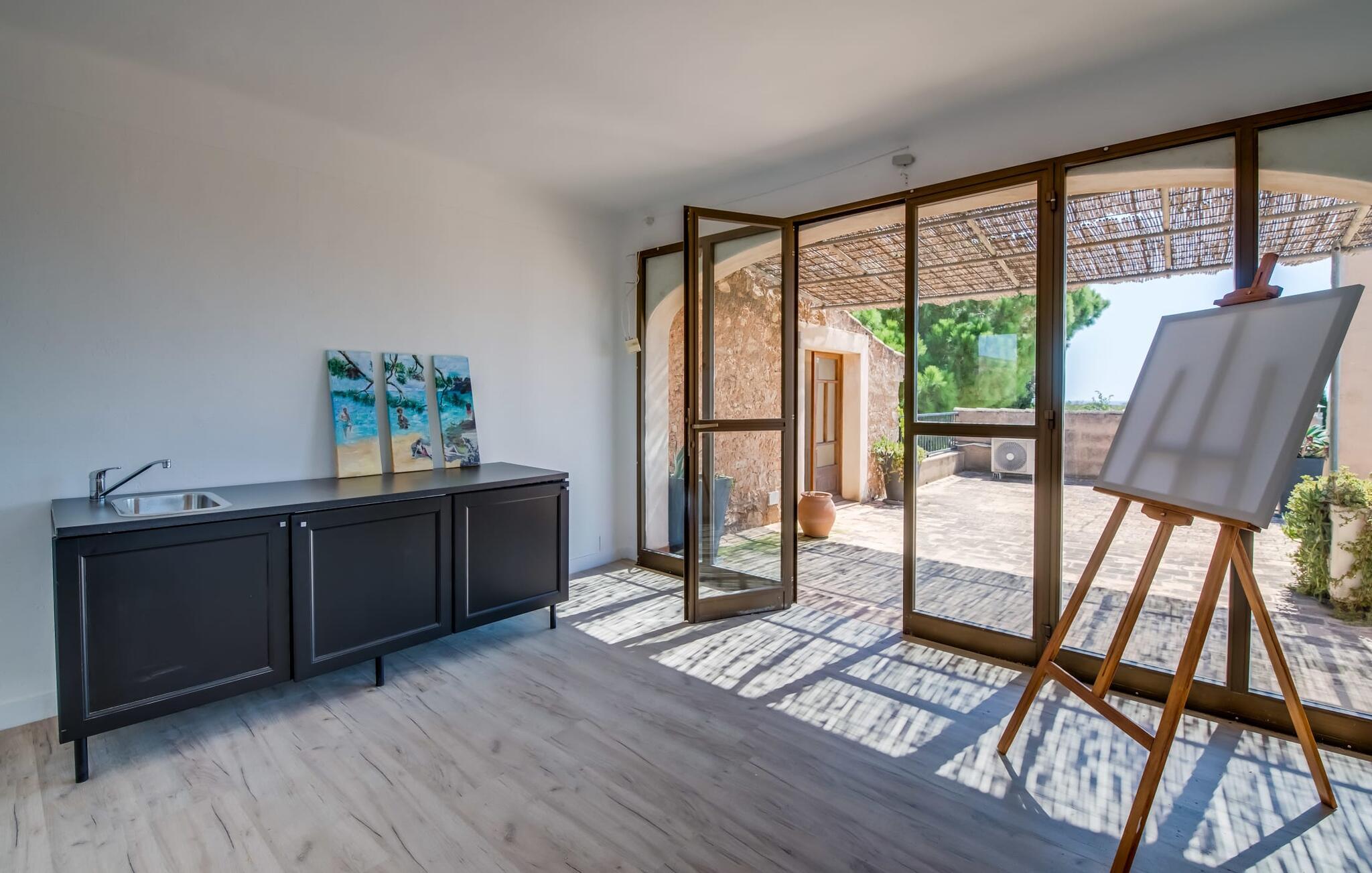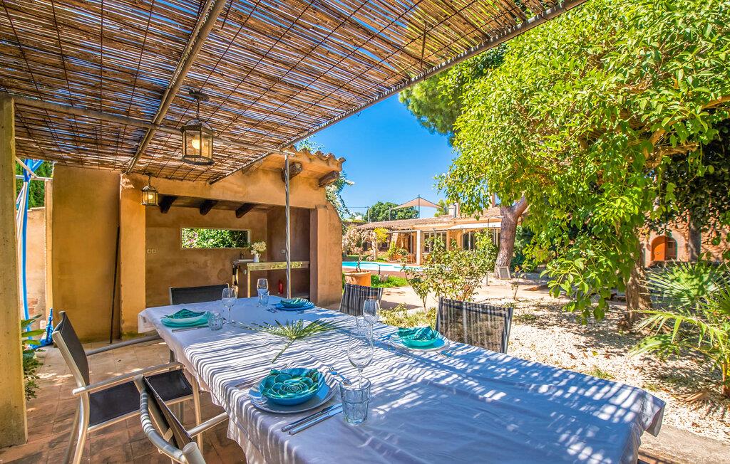 Hvis I vælger villaen "Son Tous", vil I finde charmerende indkvartering, hvis udendørs område er ideelt til solbadning: poolens blide kurver med træplankerne på den omkringliggende solterrasse, de eksotiske træer med bizarre former og meget mere mange retreats i den vidunderlige have skaber den perfekte stemning til afslappende dage. Med en sans for æstetik har ejeren formået at kombinere lounge-atmosfæren i et livsstilsetablissement med charmen fra en landvilla. Mange ekstrafunktioner som et praktisk udekøkken med en førsteklasses grill eller en dam med et behageligt pladrende springvand sikrer god stemning og masser af variation til jeres dage i villaen. De lange borde i haven giver plads nok til alle rejsende – og alle andre gæster. Uanset om I vælger at nyde jeres eftermiddagste på den skyggefulde terrasse eller den rummelige balkon, vil alle aspekter af villaen glæde jer med sin originalitet og kvalitet. Vinterhaven med sin lyse glasfacade og pejs er også et dejligt hyggeligt sted for selskabelige stunder. Adgang sker via det enorme køkken med kogeø, som opfylder selv de højeste krav. Inspireret af opfindsomheden i dette rum, vil I endelig finde tid til at prøve nogle af de mere komplicerede retter! Villaens stue har en rustik stemning med et hvælvet loft, der minder om middelalderlige vinbarer. Hvis I gerne vil slutte dagen af med et glas vin, er der en gyngestol og to komfortable hvide sofaer til jeres rådighed. Gangen med sine rustikke træelementer og de typiske mallorcanske tagbjælker er også et blikfang. Tre af soveværelserne er også i stueetagen - det ene med eget badeværelse, mens de to andre værelser deler badeværelse. De tre dobbeltværelser på øverste etage har alle deres eget badeværelse. Denne etage byder også på en moderne stue med en lædersofa og et fladskærms-tv, så I kan tilbringe en spændende filmaften her. Upåfaldende kunstværker og dekorative elementer som et ror understreger boligens maritime karakter. Den fristende nærhed til kysten indbyder til at gå ture og svømme. Den naturlige sandstrand Es Trenc nær Colonia St. Jordi kan nås på en halv time med udlejningsbil. Men der er også mange skjulte badebugter at opdage; Vi anbefaler Cala Santanyi, Cala Llombards og de dobbelte bugter Mondrago og S'Amarador. Besøger I den 700 år gamle kunstnerby Santanyí, kun 10 km fra villaen, finder I en spændende blanding af caféer, kunstgallerier og udsøgte restauranter. Den idylliske fiskerby Cala Figuera, 12 km væk, er et dejligt sted at se fiskerbådene komme tilbage om eftermiddagen. Her kan I nyde frisk fisk om aftenen, inden I vender tilbage til jeres vidunderligt rolige villa "Son Tous". Villa "Son Tous" byder på alt hvad I behøver for en uforglemmelig ferie, inklusive masser af kærlige detaljer og en fantastisk beliggenhed: det smukke Mondragó naturreservat i den sydøstlige del af Mallorca, det rolige Santanyi, kun 9,5 km væk, og utallige smukke badebugter som f.eks. som Cala Santanyi, Cala Llombards og dobbeltbugten Mondrago/S'Amarador – I er forkælet med valgmuligheder, når I planlægger jeres udflugter.