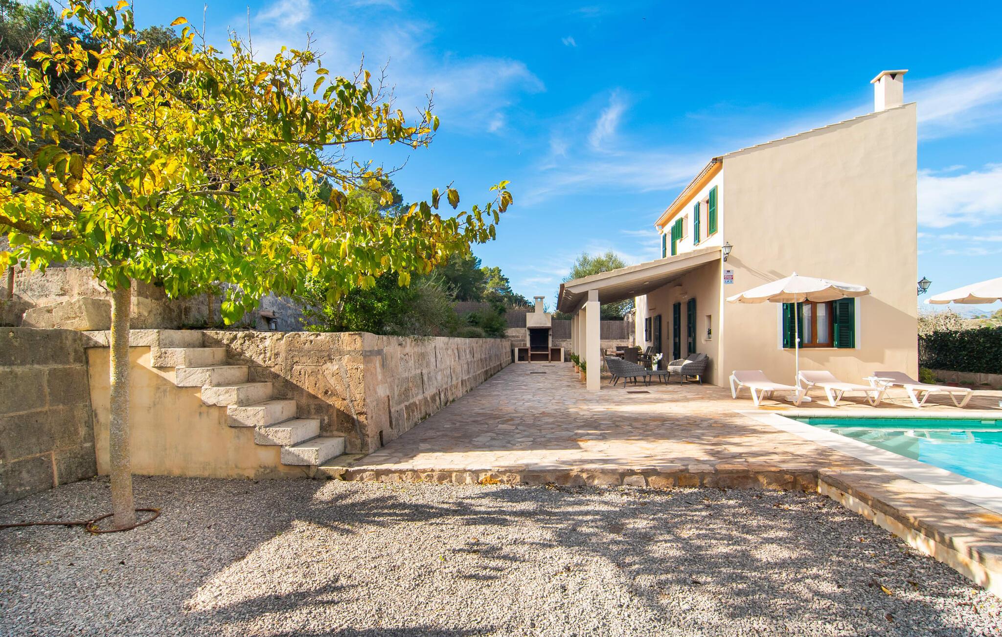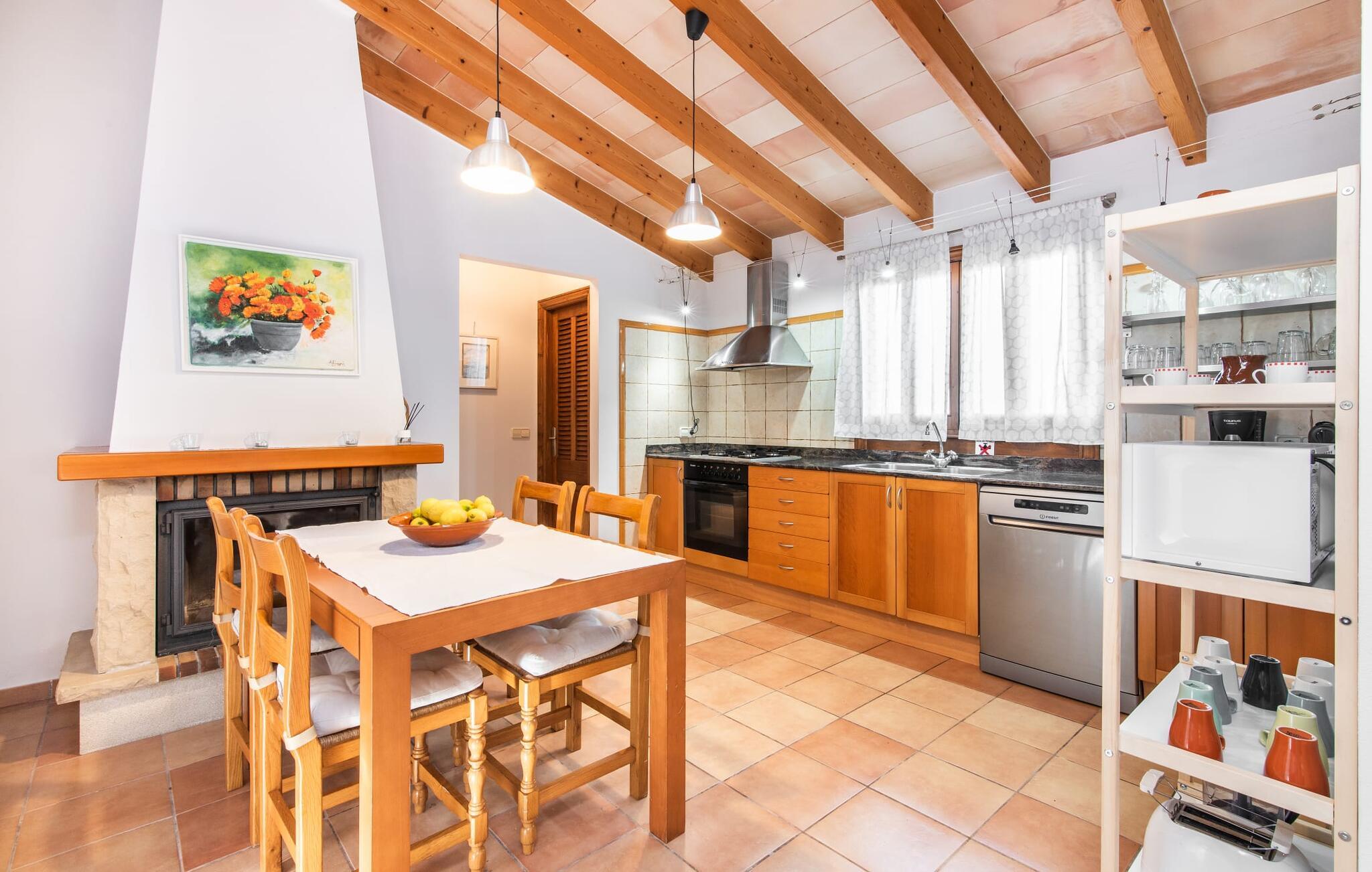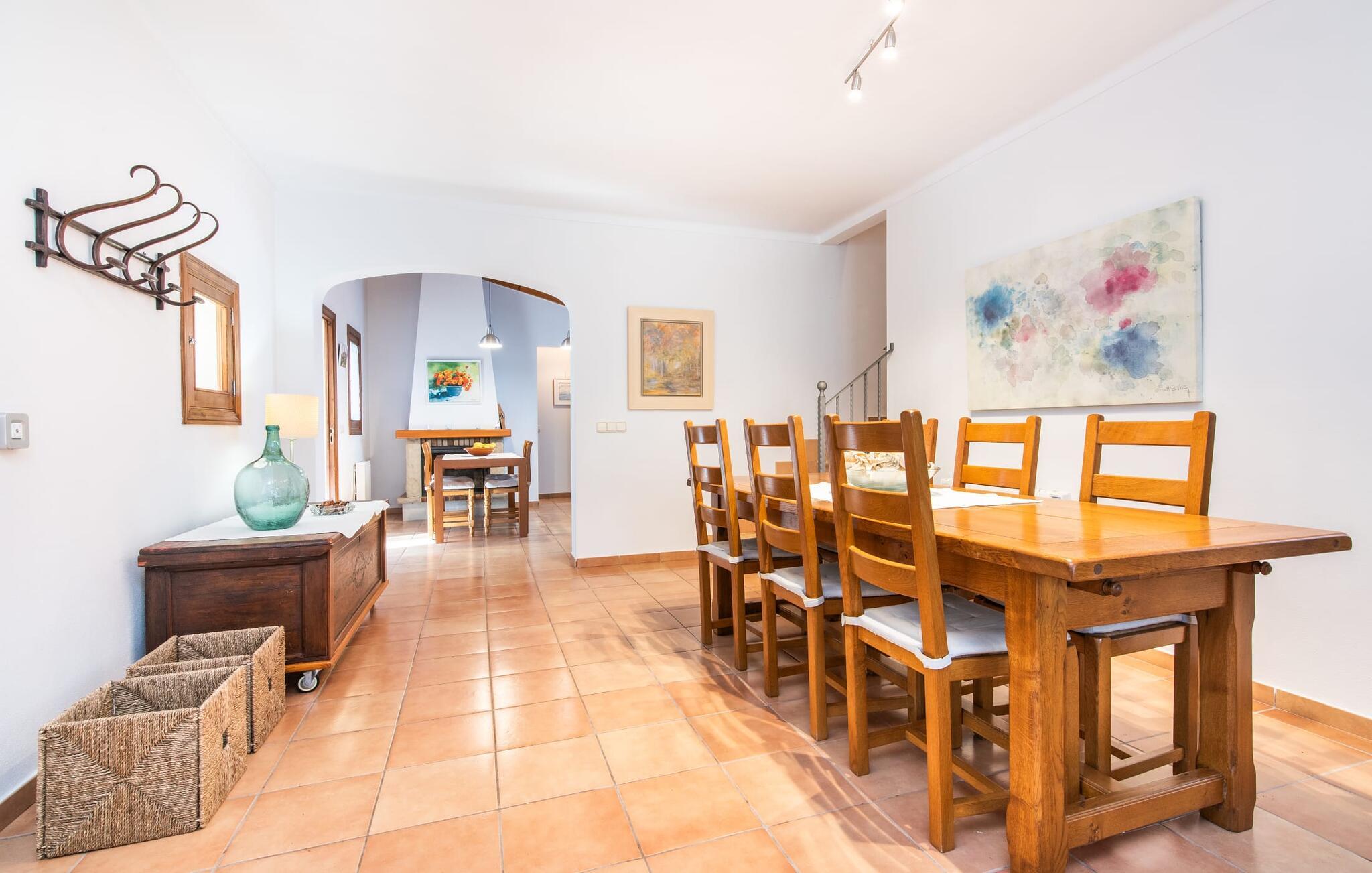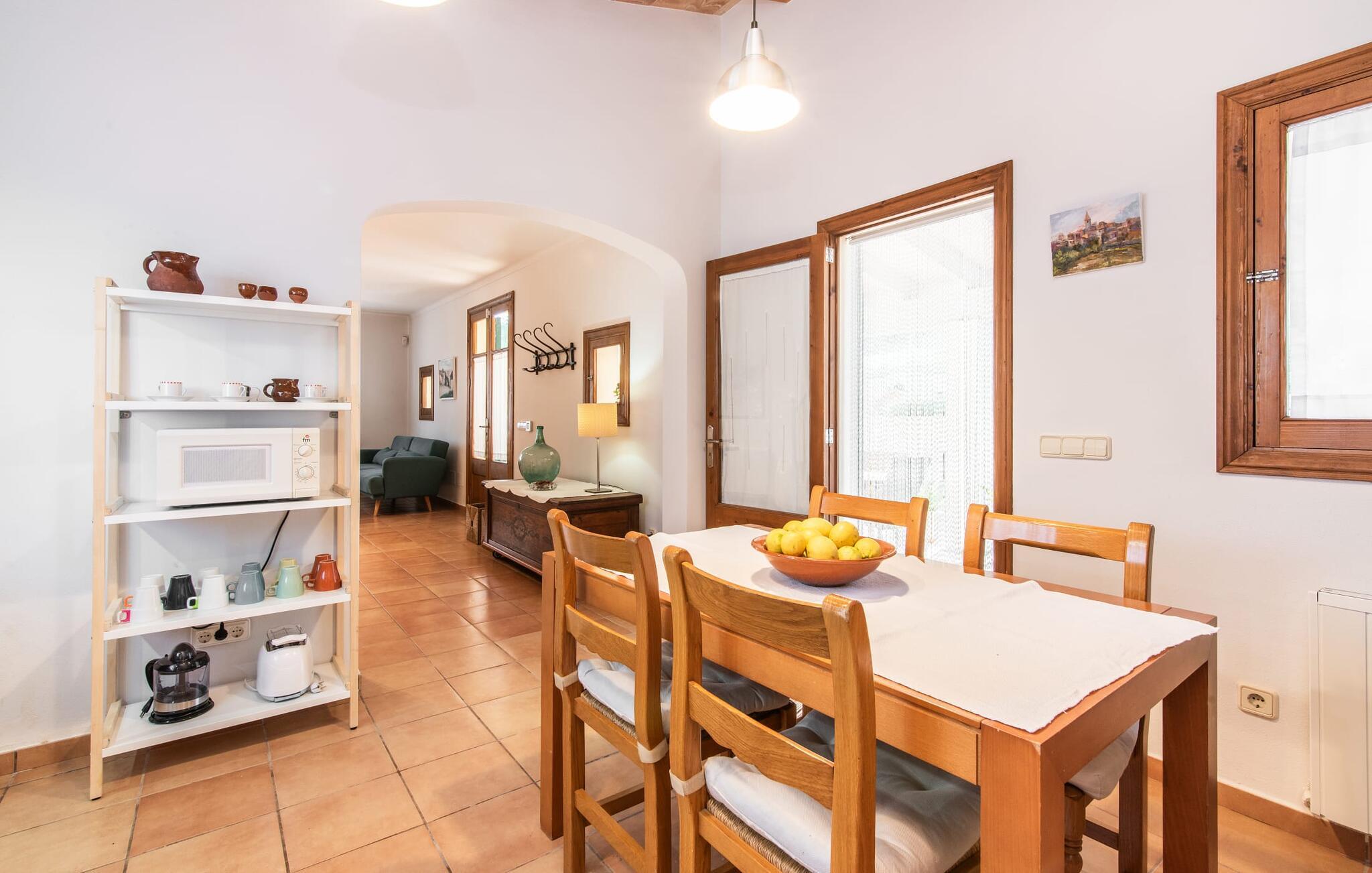 Efter en meget ukompliceret rejse når vi den moderniserede villa “Son Vado”, som ligger ca. 3 km fra porten til Santa Margalida i østlig retning, skrånende ned til kysten. På grund af sin to-etagers konstruktion fremstår den delikate villa med sin glat pudsede facade af let sandet ler nærmest hellig. De grønne skodder ser ud til at blive afspejlet i poolen foran villaen. Huset ligger i et charmerende landområde i et lidt kuperet område, beliggende mellem høje træer og en lille skrænt. Ordet "idyllisk" passer til sammenhængen, især da området stadig ligger uden for den slagne turiststi, og den nærmeste nabo bor omkring 200 m væk. Poolen er sat ind i en formet solterrasse. Fire kiwigrønne liggestole og liggestole med en skyggefuld parasol er til rådighed, så vores gæster kan slappe af og slappe af efter en forfriskende svømmetur i poolen. Poolterrassen fører ud til den overdækkede terrasse, som strækker sig over hele huset og byder på plads nok til et stort spisebord i træ med plads til op til otte personer. På grund af den lille hældning er terrassen omgivet af en naturstensmur. Her finder I også en lukket grillstation, så intet står i vejen for en afslappet BBQ. Der er dobbeltdøre ind til huset. I har mulighed for at komme ind i stuen eller direkte ind i det rummelige køkken. Den store stue er opdelt i et komfortabelt opholdsområde med et LCD-tv og en hyggelig pejs og en spiseplads med et stort bord. En trappe fører fra stuen til soveværelserne på øverste etage. Adgang til spisekøkken sker via en gang med kurvebue ved siden af spisepladsen. Der er et ekstra spisebord til fire personer foran en anden pejs. Man kan se villaens oprindelige stand før ejerens kærlige renovering ved åben pejs i det gamle gårdkøkken, som engang var den centrale stue for hele familien. I dag finder vi et fuldt udstyret køkken med de mest moderne hårde hvidevarer som mikroovn, kaffemaskine, gaskomfur, opvaskemaskine og meget mere. Alt sammen ting, der gør madlavning til jer selv til en absolut fornøjelse. Bag køkkenet er der et spisekammer og et af de to badeværelser. Det andet badeværelse, som betjener begge soveværelser, er placeret ovenpå. Opdelingen af badeværelserne i to etager er særdeles praktisk, og samtidig gør den det muligt at dele brugen af badeværelserne op på f.eks. to vennegrupper. Begge badeværelser har en moderne indretning af lyse fliser og har enten bruser med glasparti eller badekar. Den tykke keramiske kant skaber en smuk mallorcansk kontrast til badeværelsernes lyse design. De to hyggelige soveværelser på loftet er udstyret med en dobbeltseng på 1,50 eller 1,60 x 2 m. Der er masser af plads i skabene til jeres ferietøj - uanset om I har medbragt eller købt på det lokale marked eller en af de smukke små butikker. Den velholdte villa “Son Vado” ligger på en let forhøjet og kuperet grund nær landevejen, der fører fra Santa Margalida langs kysten næsten direkte til Son Serra de Marina. I Son Serra de Marina, lige ved den funklende hvide sandstrand, finder I en af øens smukkeste strandbarer - "El Sol", som er et besøg værd på alle tider af dagen. Strandene i Can Picafort og Son Baulo samt andre smukke sandstrande i Alcúdia-bugten er også nemme at nå fra den bekvemt beliggende villa. Den autentiske landsby Santa Margalida, som ligger kun 3 km fra villaen, vil glæde jer med sin autentiske charme og den typiske mallorcanske landsbykarakter, som landsbyen har bevaret. Dette er bestemt en af grundene til, at Santa Margalida betragtes som en af de smukkeste landsbyer på øen. Vi hos Fincallorca ønsker jer et afslappende og varieret ophold i den smukke villa "Son Vado". Den lille, moderniserede villa "Son Vado" er et ideelt feriehus for en familie eller et par venner. Villaen er fuldstændig afsondret, 3 km fra portene til den smukke landsby Santa Margalida. Her kan I shoppe og nyde den ægte mallorcanske livsstil. Strandene på østkysten med deres fremragende strandbarer og restauranter er let tilgængelige med lejebil.