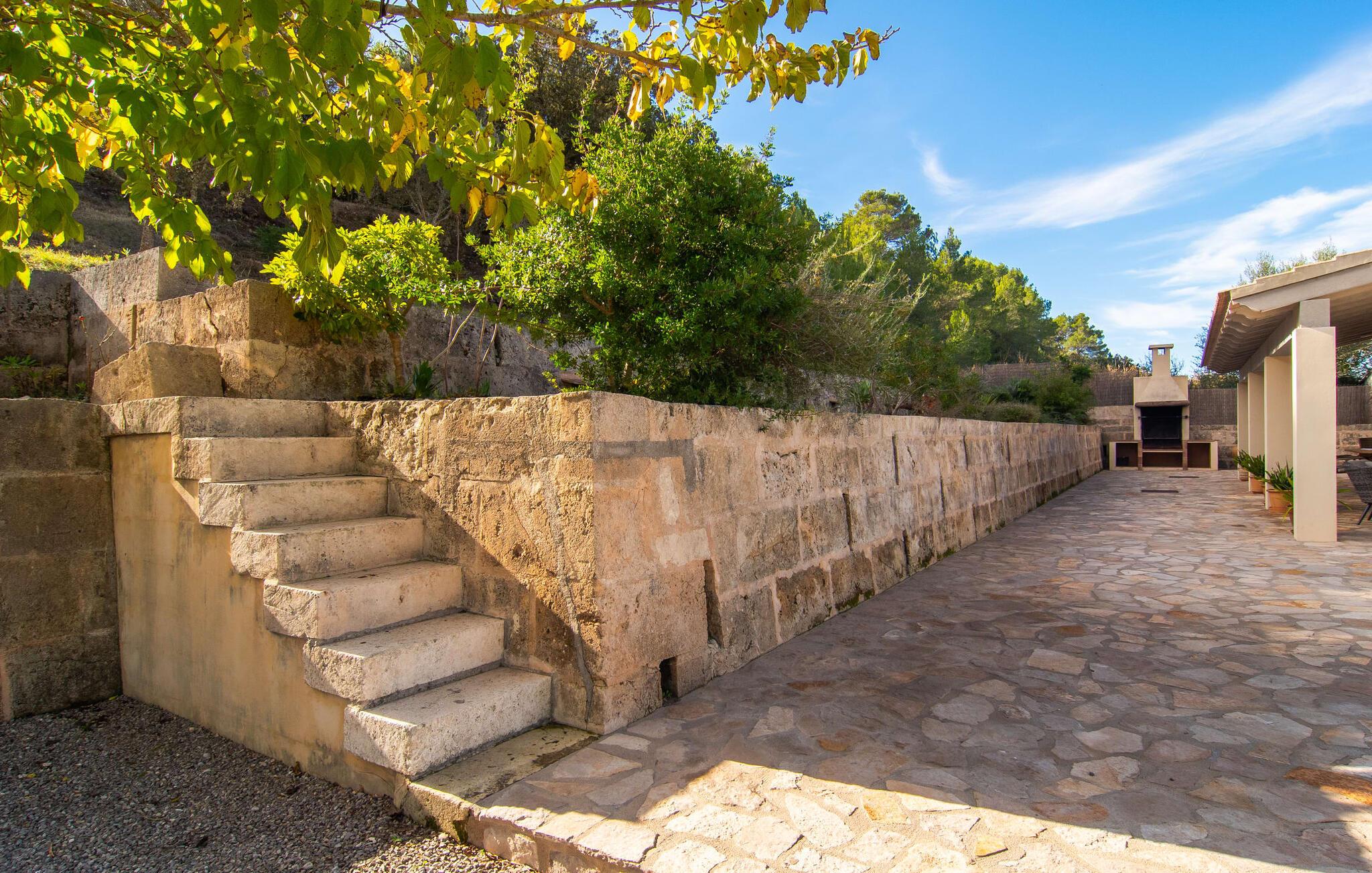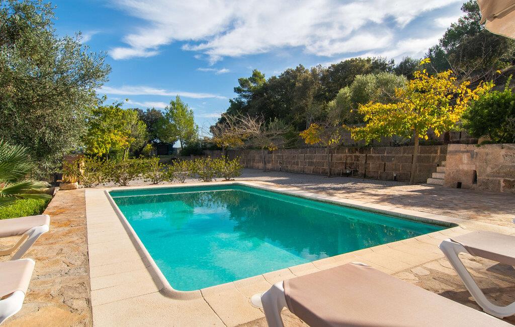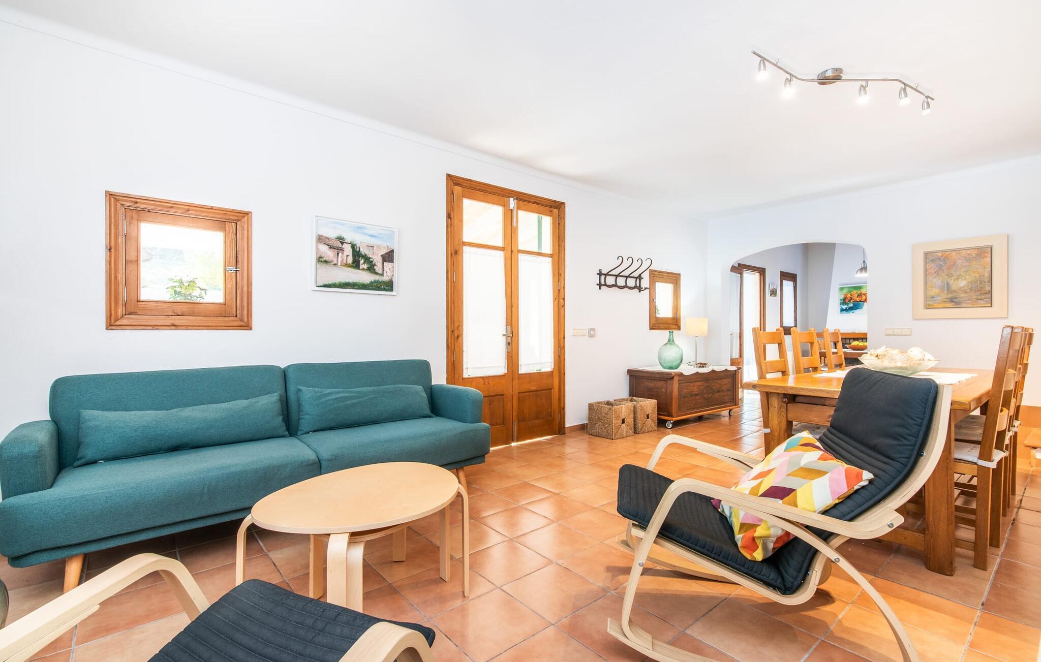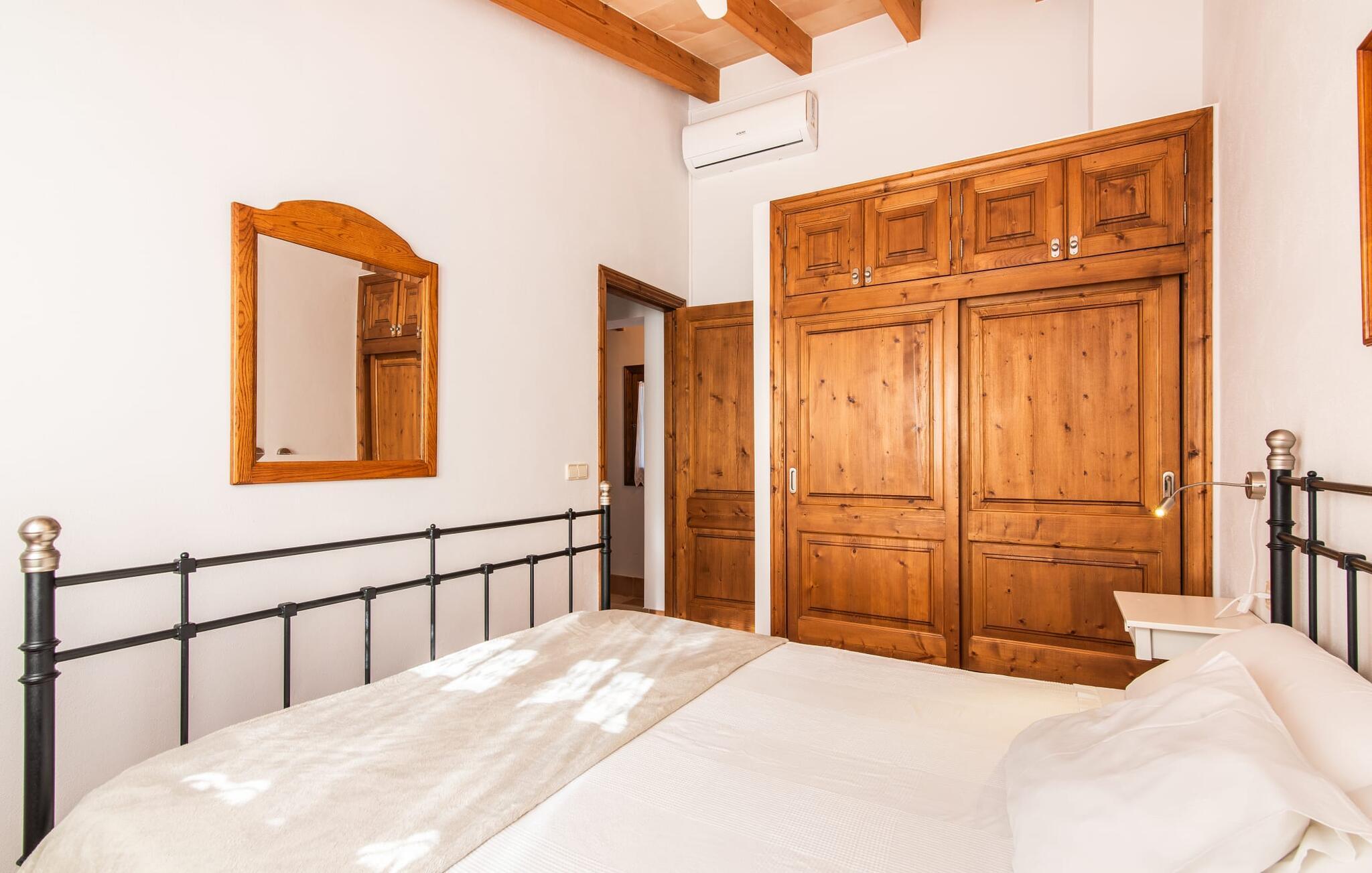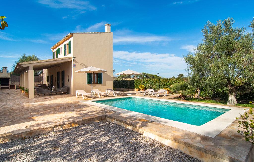 Efter en meget ukompliceret rejse når vi den moderniserede villa “Son Vado”, som ligger ca. 3 km fra porten til Santa Margalida i østlig retning, skrånende ned til kysten. På grund af sin to-etagers konstruktion fremstår den delikate villa med sin glat pudsede facade af let sandet ler nærmest hellig. De grønne skodder ser ud til at blive afspejlet i poolen foran villaen. Huset ligger i et charmerende landområde i et lidt kuperet område, beliggende mellem høje træer og en lille skrænt. Ordet "idyllisk" passer til sammenhængen, især da området stadig ligger uden for den slagne turiststi, og den nærmeste nabo bor omkring 200 m væk. Poolen er sat ind i en formet solterrasse. Fire kiwigrønne liggestole og liggestole med en skyggefuld parasol er til rådighed, så vores gæster kan slappe af og slappe af efter en forfriskende svømmetur i poolen. Poolterrassen fører ud til den overdækkede terrasse, som strækker sig over hele huset og byder på plads nok til et stort spisebord i træ med plads til op til otte personer. På grund af den lille hældning er terrassen omgivet af en naturstensmur. Her finder I også en lukket grillstation, så intet står i vejen for en afslappet BBQ. Der er dobbeltdøre ind til huset. I har mulighed for at komme ind i stuen eller direkte ind i det rummelige køkken. Den store stue er opdelt i et komfortabelt opholdsområde med et LCD-tv og en hyggelig pejs og en spiseplads med et stort bord. En trappe fører fra stuen til soveværelserne på øverste etage. Adgang til spisekøkken sker via en gang med kurvebue ved siden af spisepladsen. Der er et ekstra spisebord til fire personer foran en anden pejs. Man kan se villaens oprindelige stand før ejerens kærlige renovering ved åben pejs i det gamle gårdkøkken, som engang var den centrale stue for hele familien. I dag finder vi et fuldt udstyret køkken med de mest moderne hårde hvidevarer som mikroovn, kaffemaskine, gaskomfur, opvaskemaskine og meget mere. Alt sammen ting, der gør madlavning til jer selv til en absolut fornøjelse. Bag køkkenet er der et spisekammer og et af de to badeværelser. Det andet badeværelse, som betjener begge soveværelser, er placeret ovenpå. Opdelingen af badeværelserne i to etager er særdeles praktisk, og samtidig gør den det muligt at dele brugen af badeværelserne op på f.eks. to vennegrupper. Begge badeværelser har en moderne indretning af lyse fliser og har enten bruser med glasparti eller badekar. Den tykke keramiske kant skaber en smuk mallorcansk kontrast til badeværelsernes lyse design. De to hyggelige soveværelser på loftet er udstyret med en dobbeltseng på 1,50 eller 1,60 x 2 m. Der er masser af plads i skabene til jeres ferietøj - uanset om I har medbragt eller købt på det lokale marked eller en af de smukke små butikker. Den velholdte villa “Son Vado” ligger på en let forhøjet og kuperet grund nær landevejen, der fører fra Santa Margalida langs kysten næsten direkte til Son Serra de Marina. I Son Serra de Marina, lige ved den funklende hvide sandstrand, finder I en af øens smukkeste strandbarer - "El Sol", som er et besøg værd på alle tider af dagen. Strandene i Can Picafort og Son Baulo samt andre smukke sandstrande i Alcúdia-bugten er også nemme at nå fra den bekvemt beliggende villa. Den autentiske landsby Santa Margalida, som ligger kun 3 km fra villaen, vil glæde jer med sin autentiske charme og den typiske mallorcanske landsbykarakter, som landsbyen har bevaret. Dette er bestemt en af grundene til, at Santa Margalida betragtes som en af de smukkeste landsbyer på øen. Vi hos Fincallorca ønsker jer et afslappende og varieret ophold i den smukke villa "Son Vado". Den lille, moderniserede villa "Son Vado" er et ideelt feriehus for en familie eller et par venner. Villaen er fuldstændig afsondret, 3 km fra portene til den smukke landsby Santa Margalida. Her kan I shoppe og nyde den ægte mallorcanske livsstil. Strandene på østkysten med deres fremragende strandbarer og restauranter er let tilgængelige med lejebil.