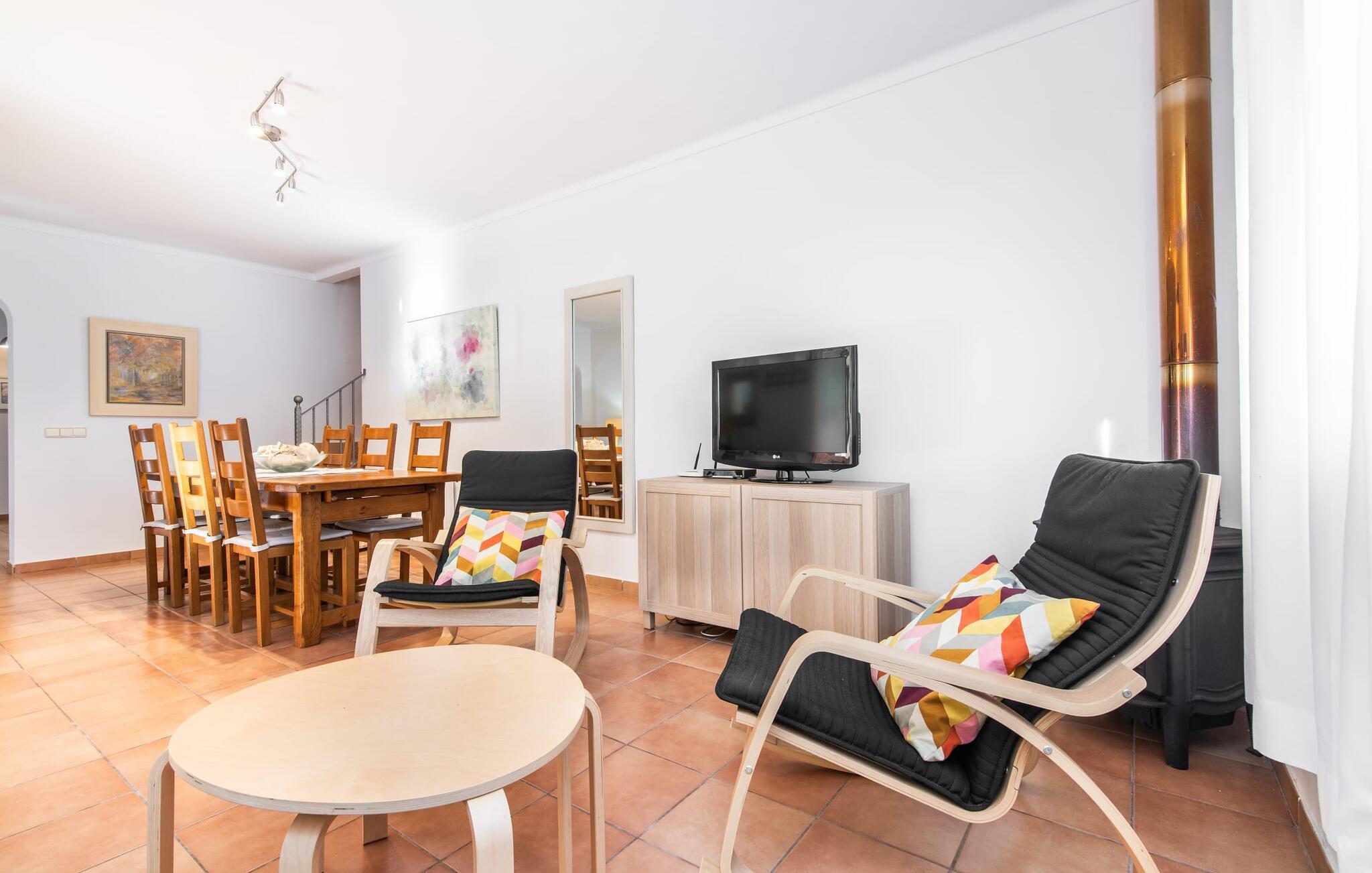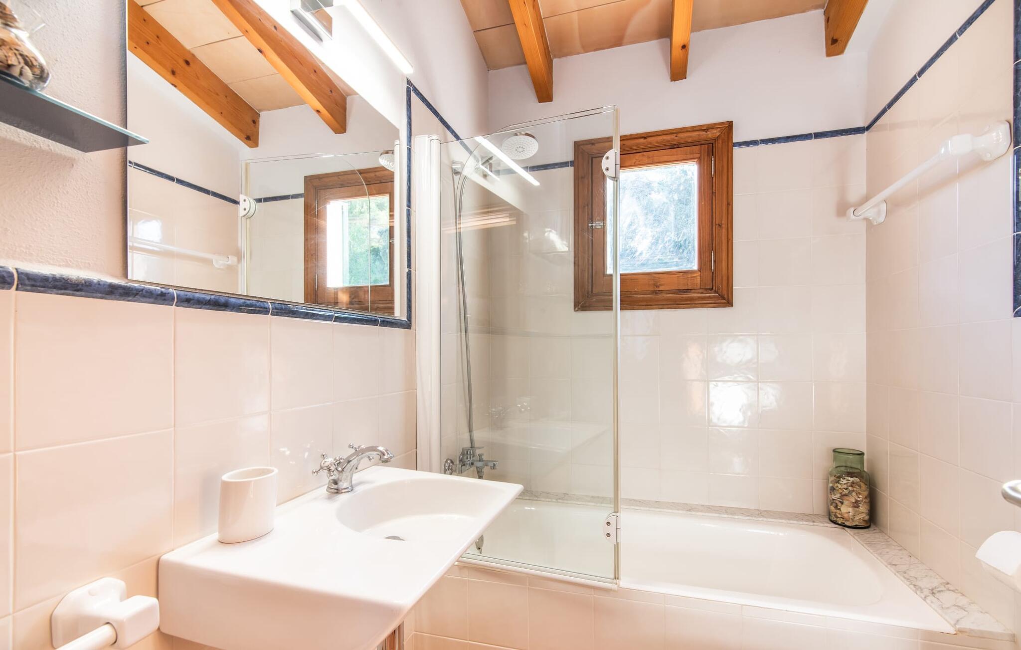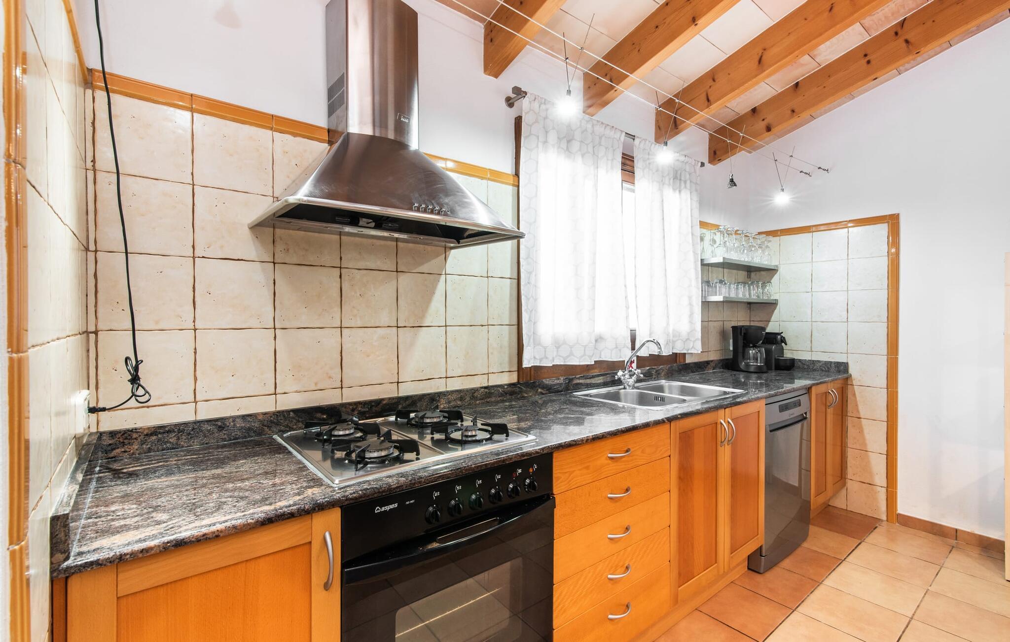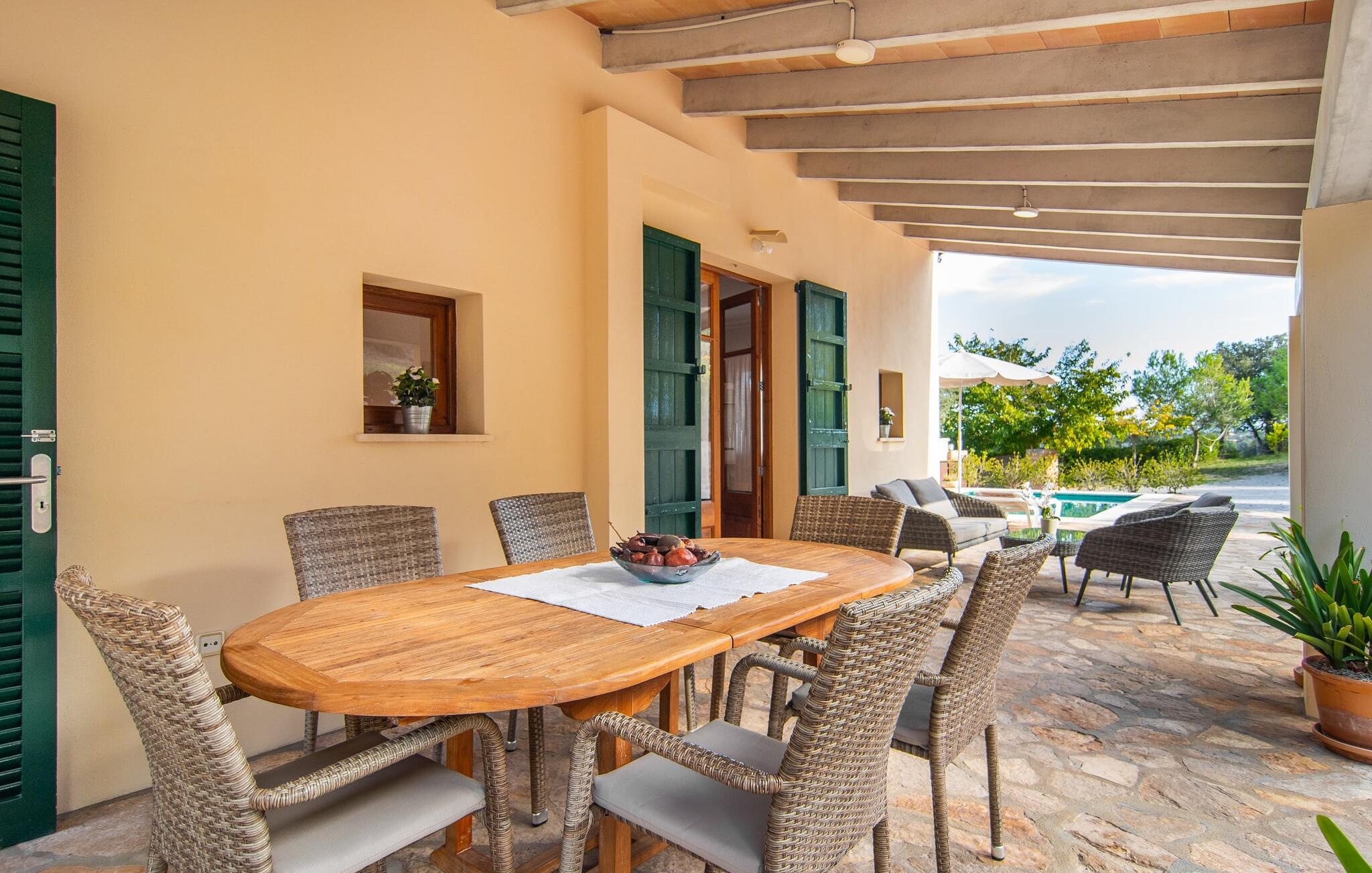 Efter en meget ukompliceret rejse når vi den moderniserede villa “Son Vado”, som ligger ca. 3 km fra porten til Santa Margalida i østlig retning, skrånende ned til kysten. På grund af sin to-etagers konstruktion fremstår den delikate villa med sin glat pudsede facade af let sandet ler nærmest hellig. De grønne skodder ser ud til at blive afspejlet i poolen foran villaen. Huset ligger i et charmerende landområde i et lidt kuperet område, beliggende mellem høje træer og en lille skrænt. Ordet "idyllisk" passer til sammenhængen, især da området stadig ligger uden for den slagne turiststi, og den nærmeste nabo bor omkring 200 m væk. Poolen er sat ind i en formet solterrasse. Fire kiwigrønne liggestole og liggestole med en skyggefuld parasol er til rådighed, så vores gæster kan slappe af og slappe af efter en forfriskende svømmetur i poolen. Poolterrassen fører ud til den overdækkede terrasse, som strækker sig over hele huset og byder på plads nok til et stort spisebord i træ med plads til op til otte personer. På grund af den lille hældning er terrassen omgivet af en naturstensmur. Her finder I også en lukket grillstation, så intet står i vejen for en afslappet BBQ. Der er dobbeltdøre ind til huset. I har mulighed for at komme ind i stuen eller direkte ind i det rummelige køkken. Den store stue er opdelt i et komfortabelt opholdsområde med et LCD-tv og en hyggelig pejs og en spiseplads med et stort bord. En trappe fører fra stuen til soveværelserne på øverste etage. Adgang til spisekøkken sker via en gang med kurvebue ved siden af spisepladsen. Der er et ekstra spisebord til fire personer foran en anden pejs. Man kan se villaens oprindelige stand før ejerens kærlige renovering ved åben pejs i det gamle gårdkøkken, som engang var den centrale stue for hele familien. I dag finder vi et fuldt udstyret køkken med de mest moderne hårde hvidevarer som mikroovn, kaffemaskine, gaskomfur, opvaskemaskine og meget mere. Alt sammen ting, der gør madlavning til jer selv til en absolut fornøjelse. Bag køkkenet er der et spisekammer og et af de to badeværelser. Det andet badeværelse, som betjener begge soveværelser, er placeret ovenpå. Opdelingen af badeværelserne i to etager er særdeles praktisk, og samtidig gør den det muligt at dele brugen af badeværelserne op på f.eks. to vennegrupper. Begge badeværelser har en moderne indretning af lyse fliser og har enten bruser med glasparti eller badekar. Den tykke keramiske kant skaber en smuk mallorcansk kontrast til badeværelsernes lyse design. De to hyggelige soveværelser på loftet er udstyret med en dobbeltseng på 1,50 eller 1,60 x 2 m. Der er masser af plads i skabene til jeres ferietøj - uanset om I har medbragt eller købt på det lokale marked eller en af de smukke små butikker. Den velholdte villa “Son Vado” ligger på en let forhøjet og kuperet grund nær landevejen, der fører fra Santa Margalida langs kysten næsten direkte til Son Serra de Marina. I Son Serra de Marina, lige ved den funklende hvide sandstrand, finder I en af øens smukkeste strandbarer - "El Sol", som er et besøg værd på alle tider af dagen. Strandene i Can Picafort og Son Baulo samt andre smukke sandstrande i Alcúdia-bugten er også nemme at nå fra den bekvemt beliggende villa. Den autentiske landsby Santa Margalida, som ligger kun 3 km fra villaen, vil glæde jer med sin autentiske charme og den typiske mallorcanske landsbykarakter, som landsbyen har bevaret. Dette er bestemt en af grundene til, at Santa Margalida betragtes som en af de smukkeste landsbyer på øen. Vi hos Fincallorca ønsker jer et afslappende og varieret ophold i den smukke villa "Son Vado". Den lille, moderniserede villa "Son Vado" er et ideelt feriehus for en familie eller et par venner. Villaen er fuldstændig afsondret, 3 km fra portene til den smukke landsby Santa Margalida. Her kan I shoppe og nyde den ægte mallorcanske livsstil. Strandene på østkysten med deres fremragende strandbarer og restauranter er let tilgængelige med lejebil.