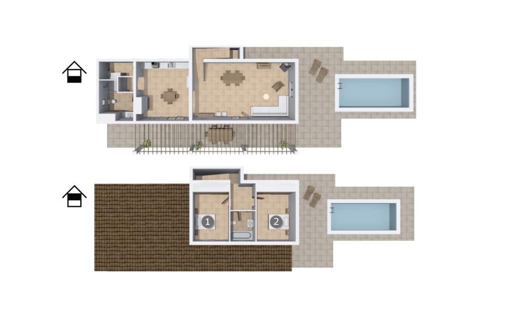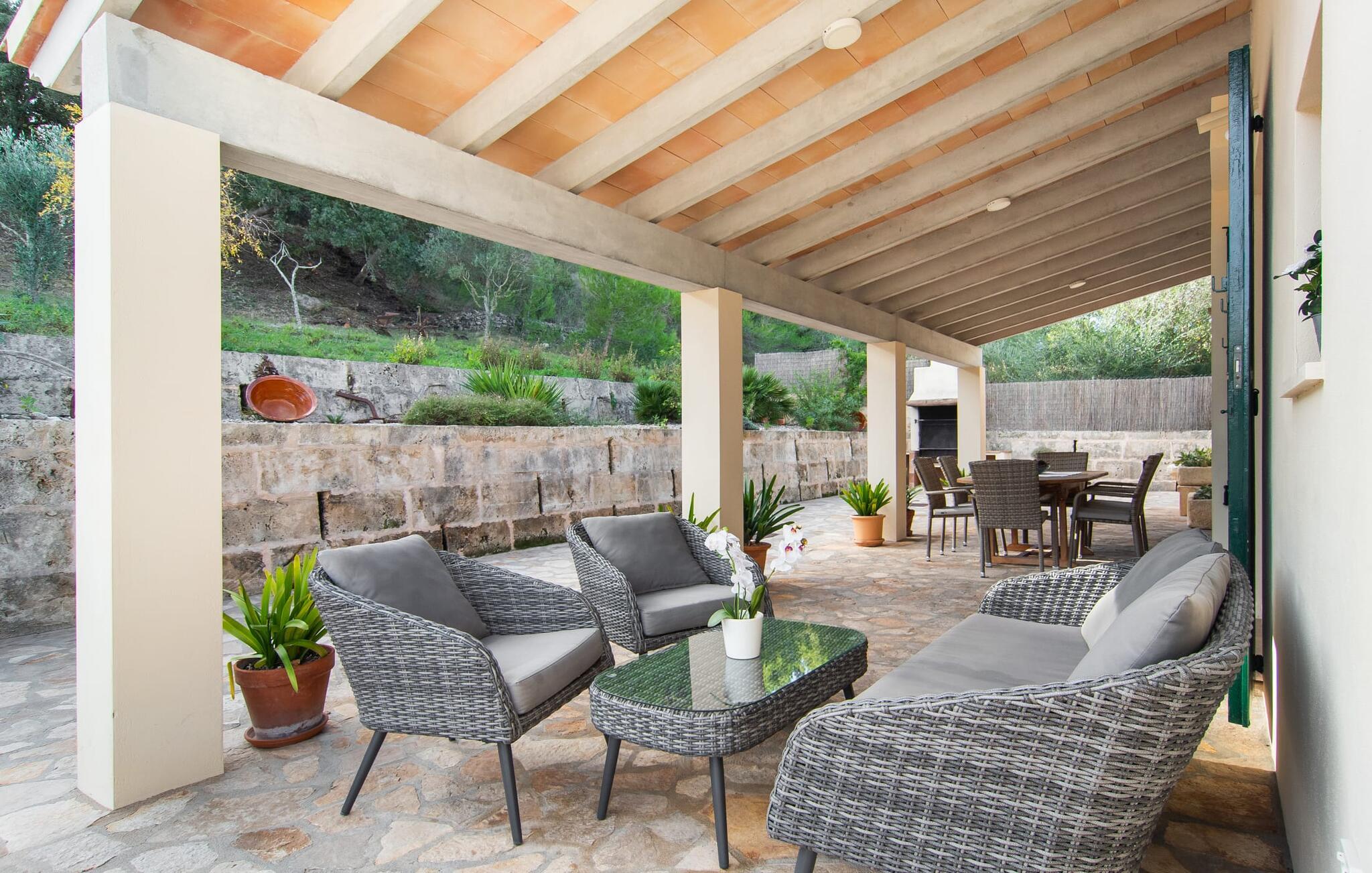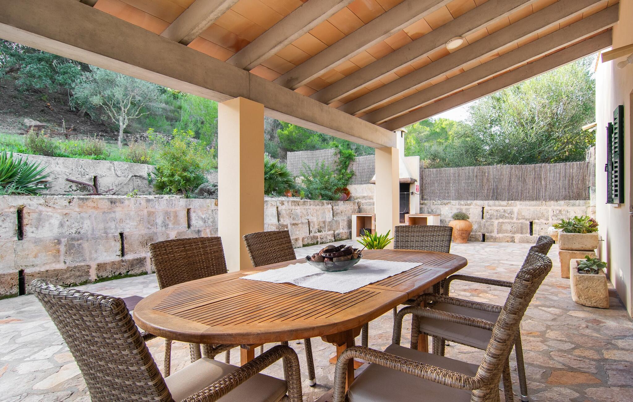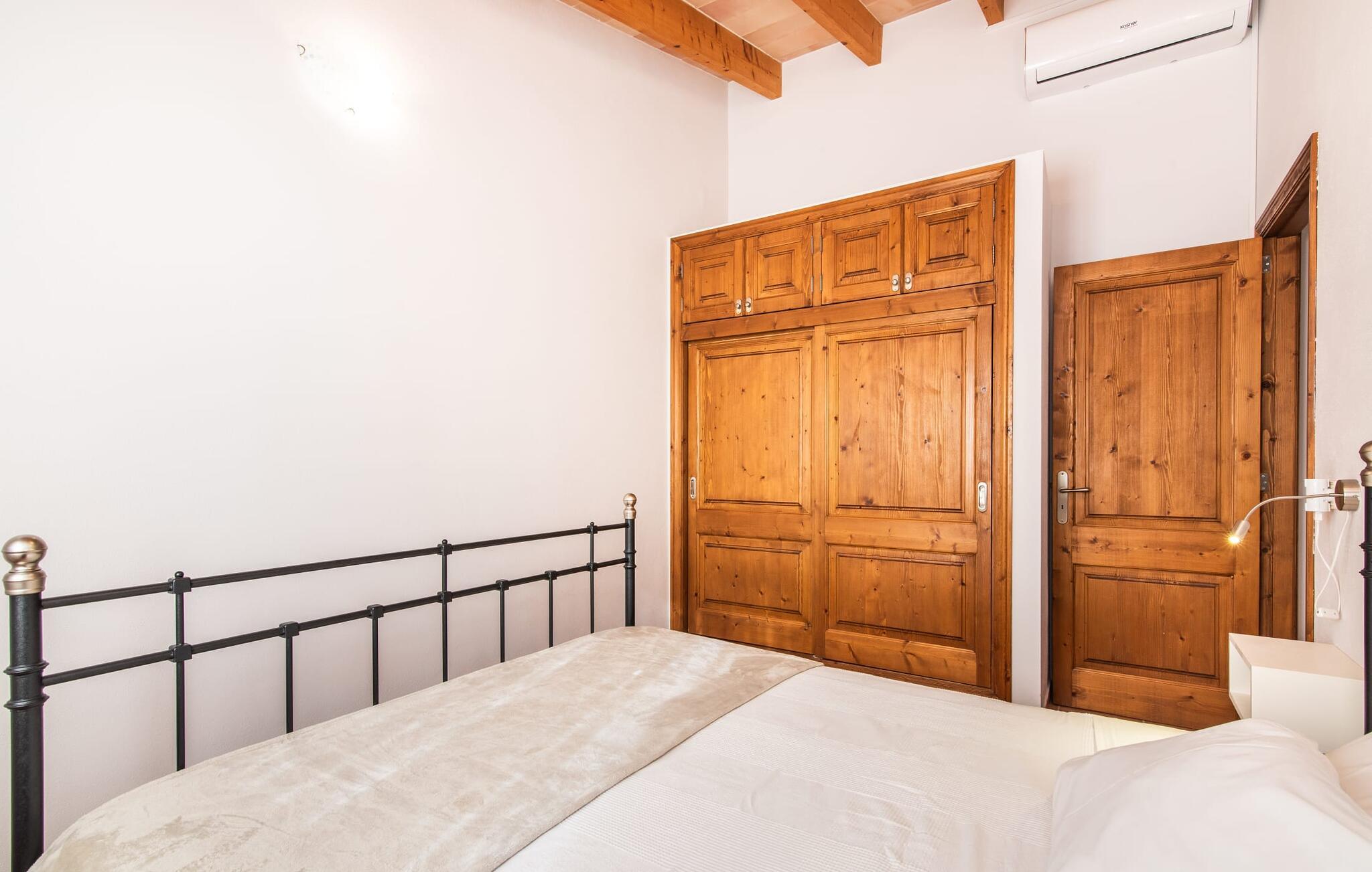 Efter en meget ukompliceret rejse når vi den moderniserede villa “Son Vado”, som ligger ca. 3 km fra porten til Santa Margalida i østlig retning, skrånende ned til kysten. På grund af sin to-etagers konstruktion fremstår den delikate villa med sin glat pudsede facade af let sandet ler nærmest hellig. De grønne skodder ser ud til at blive afspejlet i poolen foran villaen. Huset ligger i et charmerende landområde i et lidt kuperet område, beliggende mellem høje træer og en lille skrænt. Ordet "idyllisk" passer til sammenhængen, især da området stadig ligger uden for den slagne turiststi, og den nærmeste nabo bor omkring 200 m væk. Poolen er sat ind i en formet solterrasse. Fire kiwigrønne liggestole og liggestole med en skyggefuld parasol er til rådighed, så vores gæster kan slappe af og slappe af efter en forfriskende svømmetur i poolen. Poolterrassen fører ud til den overdækkede terrasse, som strækker sig over hele huset og byder på plads nok til et stort spisebord i træ med plads til op til otte personer. På grund af den lille hældning er terrassen omgivet af en naturstensmur. Her finder I også en lukket grillstation, så intet står i vejen for en afslappet BBQ. Der er dobbeltdøre ind til huset. I har mulighed for at komme ind i stuen eller direkte ind i det rummelige køkken. Den store stue er opdelt i et komfortabelt opholdsområde med et LCD-tv og en hyggelig pejs og en spiseplads med et stort bord. En trappe fører fra stuen til soveværelserne på øverste etage. Adgang til spisekøkken sker via en gang med kurvebue ved siden af spisepladsen. Der er et ekstra spisebord til fire personer foran en anden pejs. Man kan se villaens oprindelige stand før ejerens kærlige renovering ved åben pejs i det gamle gårdkøkken, som engang var den centrale stue for hele familien. I dag finder vi et fuldt udstyret køkken med de mest moderne hårde hvidevarer som mikroovn, kaffemaskine, gaskomfur, opvaskemaskine og meget mere. Alt sammen ting, der gør madlavning til jer selv til en absolut fornøjelse. Bag køkkenet er der et spisekammer og et af de to badeværelser. Det andet badeværelse, som betjener begge soveværelser, er placeret ovenpå. Opdelingen af badeværelserne i to etager er særdeles praktisk, og samtidig gør den det muligt at dele brugen af badeværelserne op på f.eks. to vennegrupper. Begge badeværelser har en moderne indretning af lyse fliser og har enten bruser med glasparti eller badekar. Den tykke keramiske kant skaber en smuk mallorcansk kontrast til badeværelsernes lyse design. De to hyggelige soveværelser på loftet er udstyret med en dobbeltseng på 1,50 eller 1,60 x 2 m. Der er masser af plads i skabene til jeres ferietøj - uanset om I har medbragt eller købt på det lokale marked eller en af de smukke små butikker. Den velholdte villa “Son Vado” ligger på en let forhøjet og kuperet grund nær landevejen, der fører fra Santa Margalida langs kysten næsten direkte til Son Serra de Marina. I Son Serra de Marina, lige ved den funklende hvide sandstrand, finder I en af øens smukkeste strandbarer - "El Sol", som er et besøg værd på alle tider af dagen. Strandene i Can Picafort og Son Baulo samt andre smukke sandstrande i Alcúdia-bugten er også nemme at nå fra den bekvemt beliggende villa. Den autentiske landsby Santa Margalida, som ligger kun 3 km fra villaen, vil glæde jer med sin autentiske charme og den typiske mallorcanske landsbykarakter, som landsbyen har bevaret. Dette er bestemt en af grundene til, at Santa Margalida betragtes som en af de smukkeste landsbyer på øen. Vi hos Fincallorca ønsker jer et afslappende og varieret ophold i den smukke villa "Son Vado". Den lille, moderniserede villa "Son Vado" er et ideelt feriehus for en familie eller et par venner. Villaen er fuldstændig afsondret, 3 km fra portene til den smukke landsby Santa Margalida. Her kan I shoppe og nyde den ægte mallorcanske livsstil. Strandene på østkysten med deres fremragende strandbarer og restauranter er let tilgængelige med lejebil.