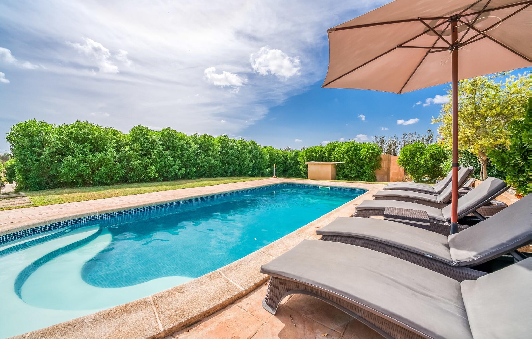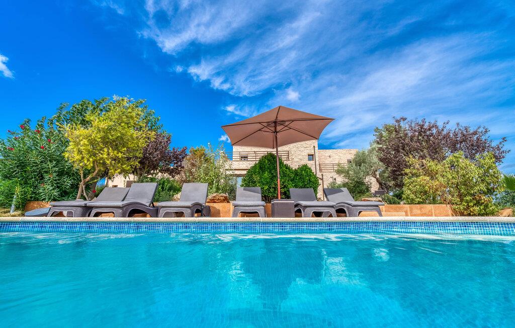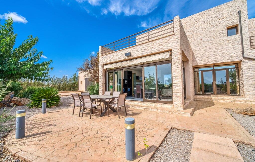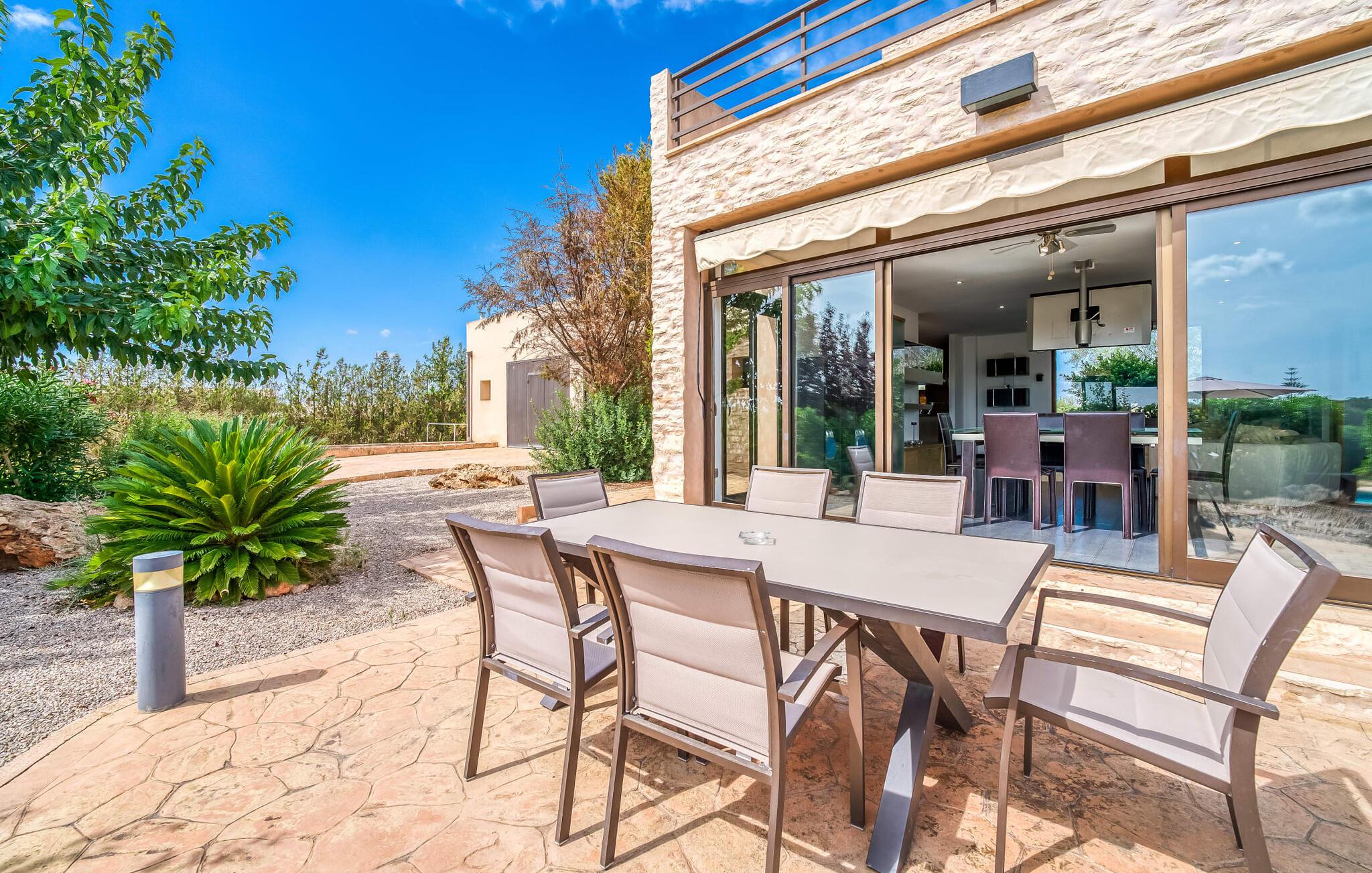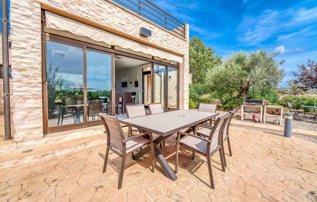 Villa "Son Virgili" tilbyder et moderne, familievenligt tilflugtssted med faciliteter af høj kvalitet, ideelt for dem, der søger både luksus og komfort. Denne sandstensfarvede villa er opdelt i kubiske sektioner og har gulv-til-loft-vinduer, der tilbyder en betagende udsigt over den omkringliggende natur. Altanerne byder på panoramaudsigt, mens udendørsarealet er velegnet til både voksne og børn. En rummelig legeplads inviterer børn til at lege, og den ovale pool med brede trin for nem adgang er ideel for alle aldre. Solterrassen, der er udstyret med liggestole og parasoller, byder på masser af plads til at slappe af. Et afslapningsområde omgivet af stenmure tilbyder privatliv og beskyttelse mod vinden, mens en rolig hængekøje ved siden af huset er perfekt til et roligt tilflugtssted. Indvendigt er villaens moderne design både rummelig og indbydende. Stueetagen i åbent plan har et komfortabelt opholdsområde, en stilfuld spiseplads og et køkken af høj kvalitet med ø, perfekt til tilberedning af måltider. Børneværelset byder med sin legende gule og grønne indretning på to enkeltsenge, mens de to voksne soveværelser byder på masser af plads og opbevaring. Det store soveværelse har eget badeværelse, og de andre soveværelser deler badeværelse. Med sin rolige, rustikke beliggenhed lover "Son Virgili" en afslappende ferie for hele familien. Den moderne finca "Son Virgili" ligger i smukke landlige omgivelser nær byen Campos. Fra villaen kan I køre til smukke strande som Sa Rapita eller den naturlige sandstrand "Es Trenc". For shopping er Campos stedet at tage hen med et ugentligt marked, der finder sted hver torsdag og lørdag.