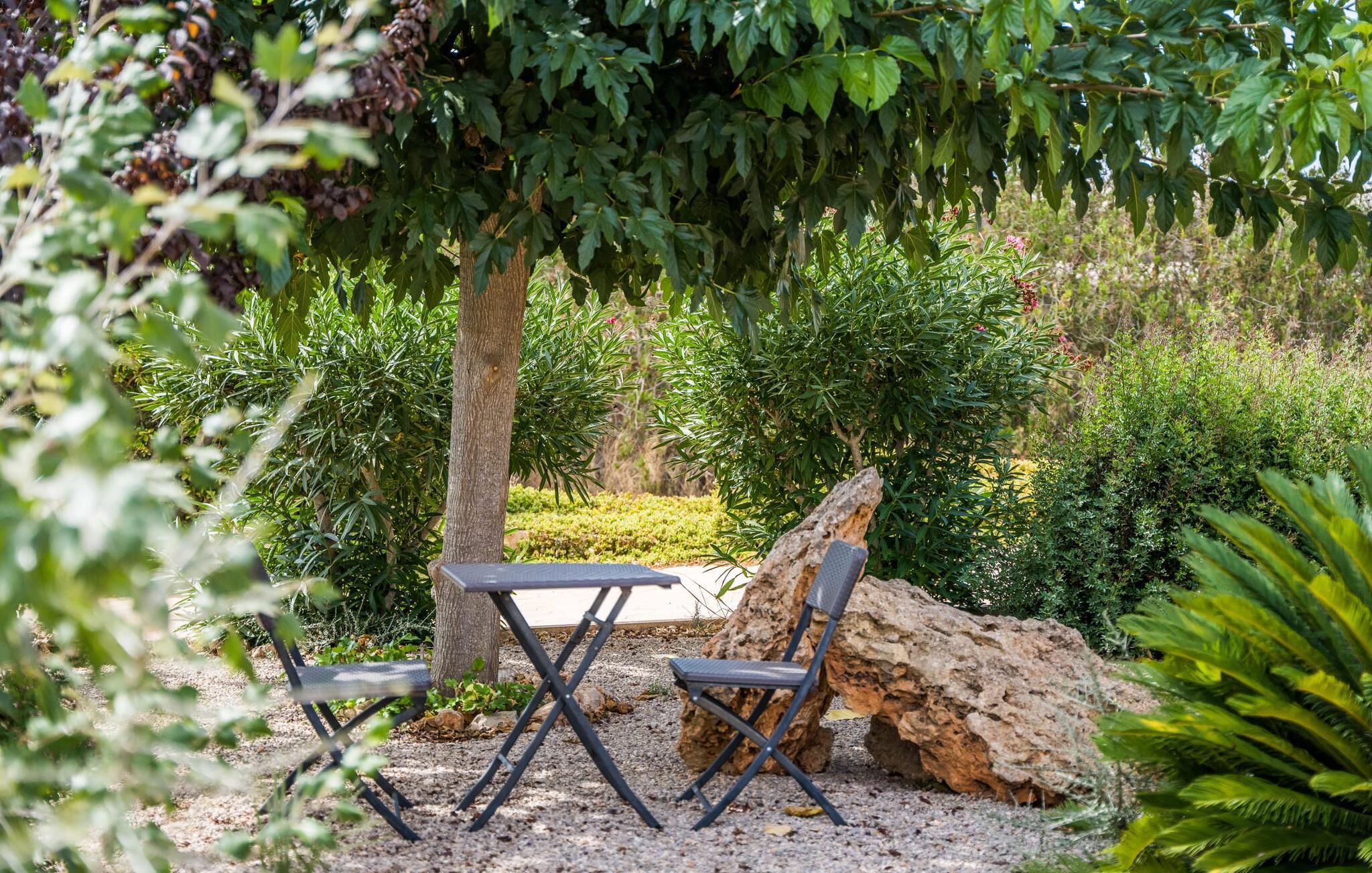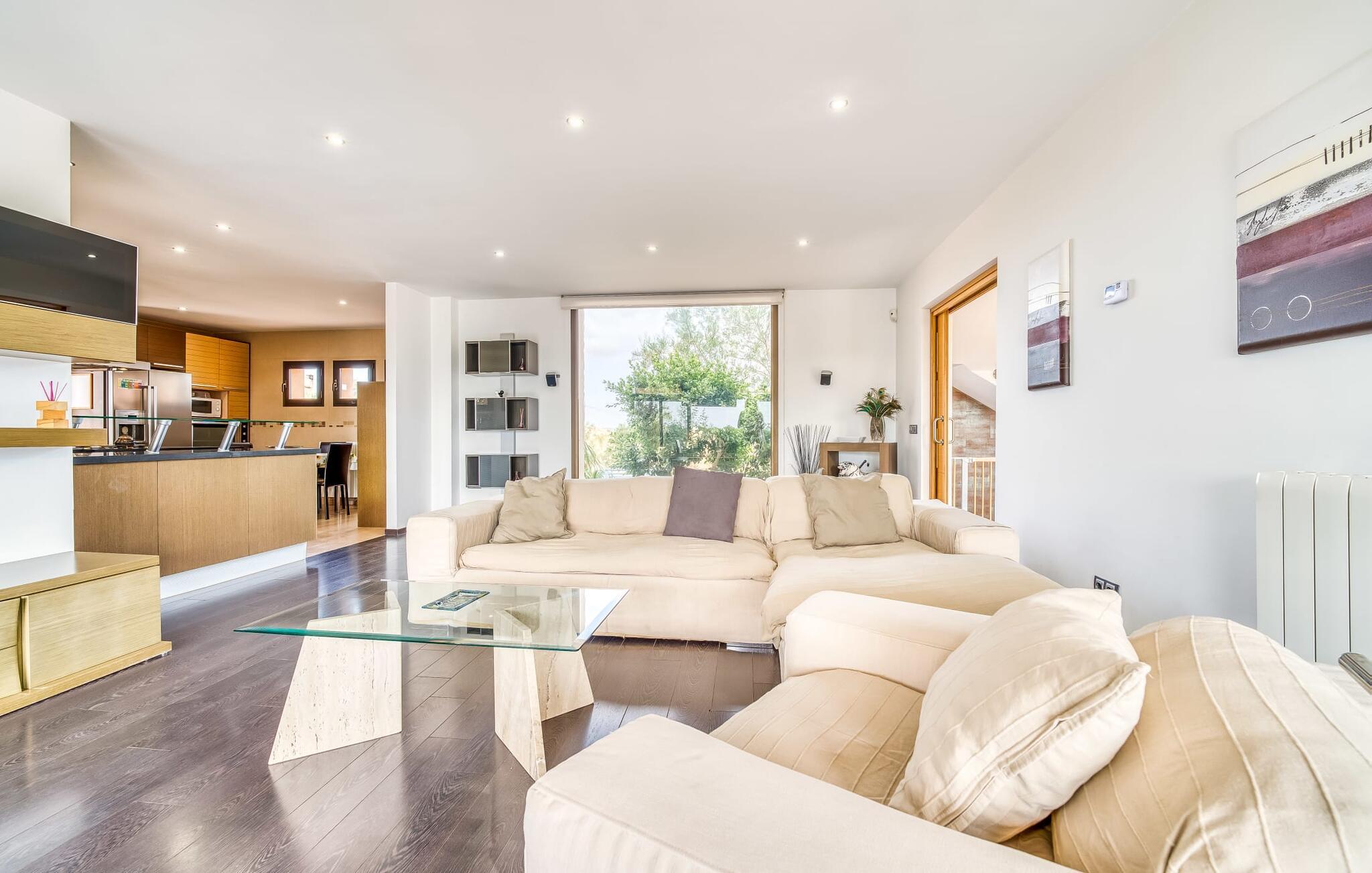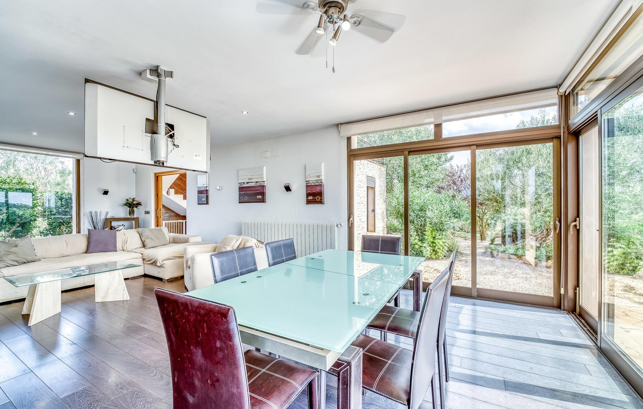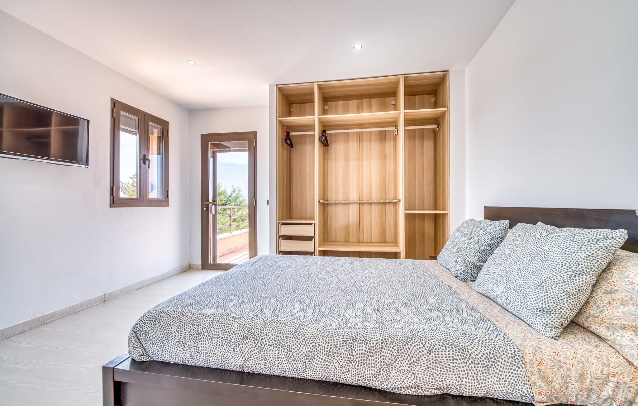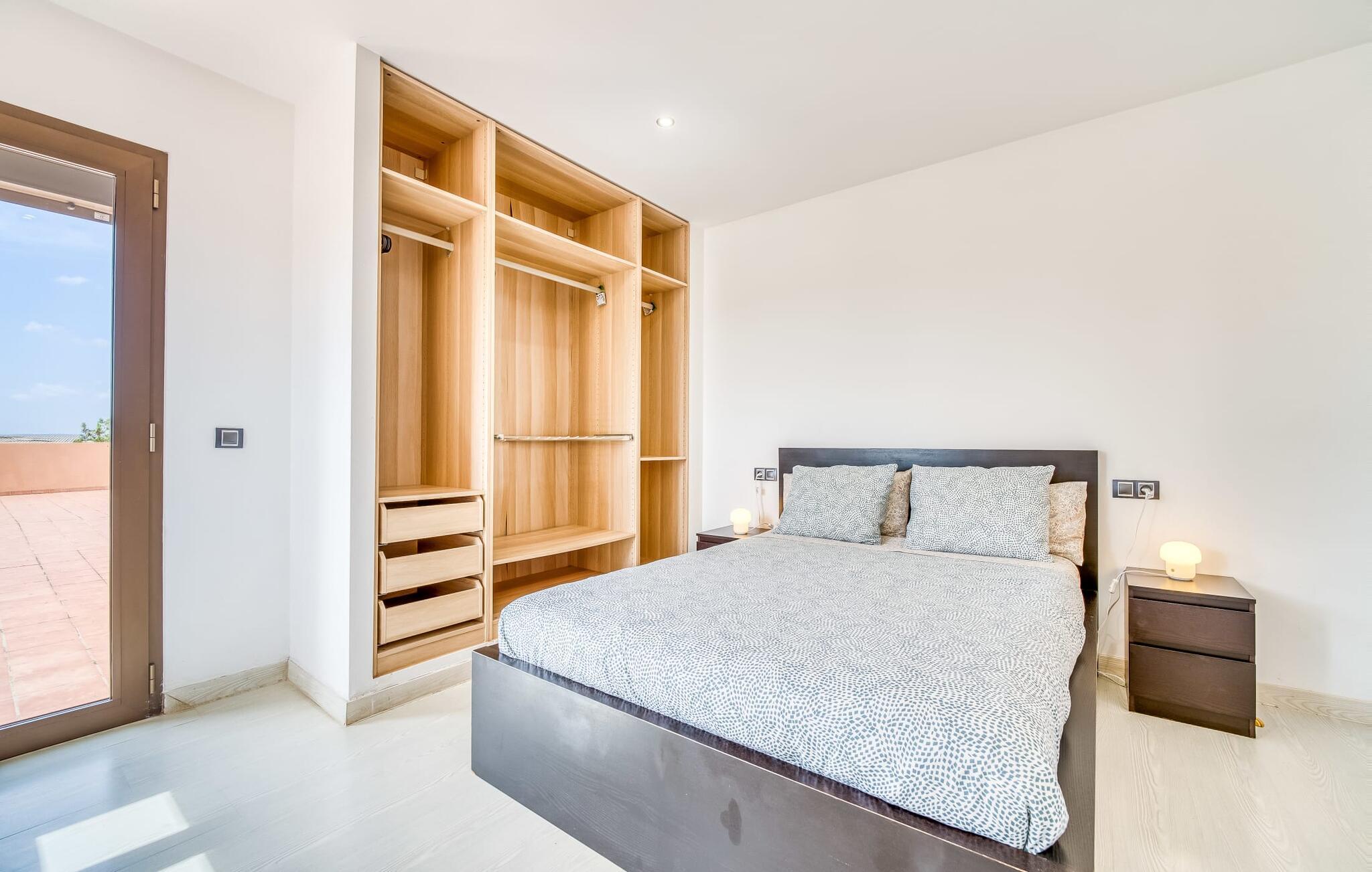 Villa "Son Virgili" tilbyder et moderne, familievenligt tilflugtssted med faciliteter af høj kvalitet, ideelt for dem, der søger både luksus og komfort. Denne sandstensfarvede villa er opdelt i kubiske sektioner og har gulv-til-loft-vinduer, der tilbyder en betagende udsigt over den omkringliggende natur. Altanerne byder på panoramaudsigt, mens udendørsarealet er velegnet til både voksne og børn. En rummelig legeplads inviterer børn til at lege, og den ovale pool med brede trin for nem adgang er ideel for alle aldre. Solterrassen, der er udstyret med liggestole og parasoller, byder på masser af plads til at slappe af. Et afslapningsområde omgivet af stenmure tilbyder privatliv og beskyttelse mod vinden, mens en rolig hængekøje ved siden af huset er perfekt til et roligt tilflugtssted. Indvendigt er villaens moderne design både rummelig og indbydende. Stueetagen i åbent plan har et komfortabelt opholdsområde, en stilfuld spiseplads og et køkken af høj kvalitet med ø, perfekt til tilberedning af måltider. Børneværelset byder med sin legende gule og grønne indretning på to enkeltsenge, mens de to voksne soveværelser byder på masser af plads og opbevaring. Det store soveværelse har eget badeværelse, og de andre soveværelser deler badeværelse. Med sin rolige, rustikke beliggenhed lover "Son Virgili" en afslappende ferie for hele familien. Den moderne finca "Son Virgili" ligger i smukke landlige omgivelser nær byen Campos. Fra villaen kan I køre til smukke strande som Sa Rapita eller den naturlige sandstrand "Es Trenc". For shopping er Campos stedet at tage hen med et ugentligt marked, der finder sted hver torsdag og lørdag.