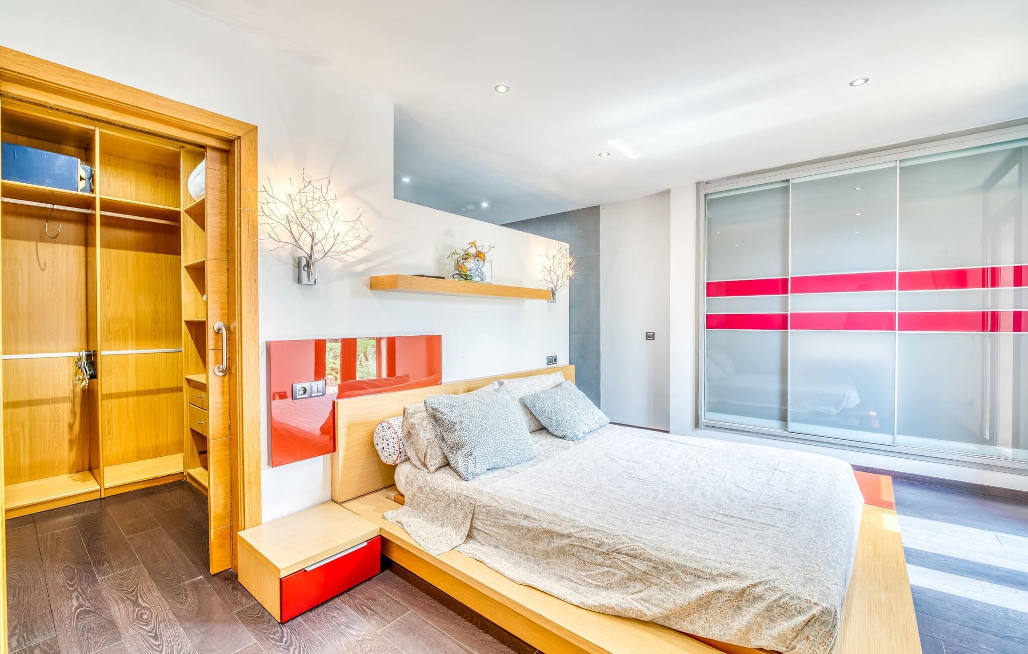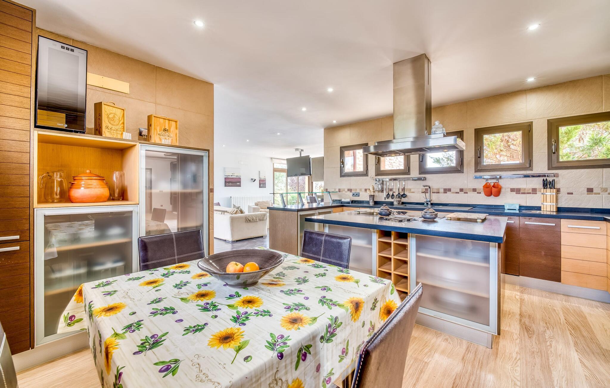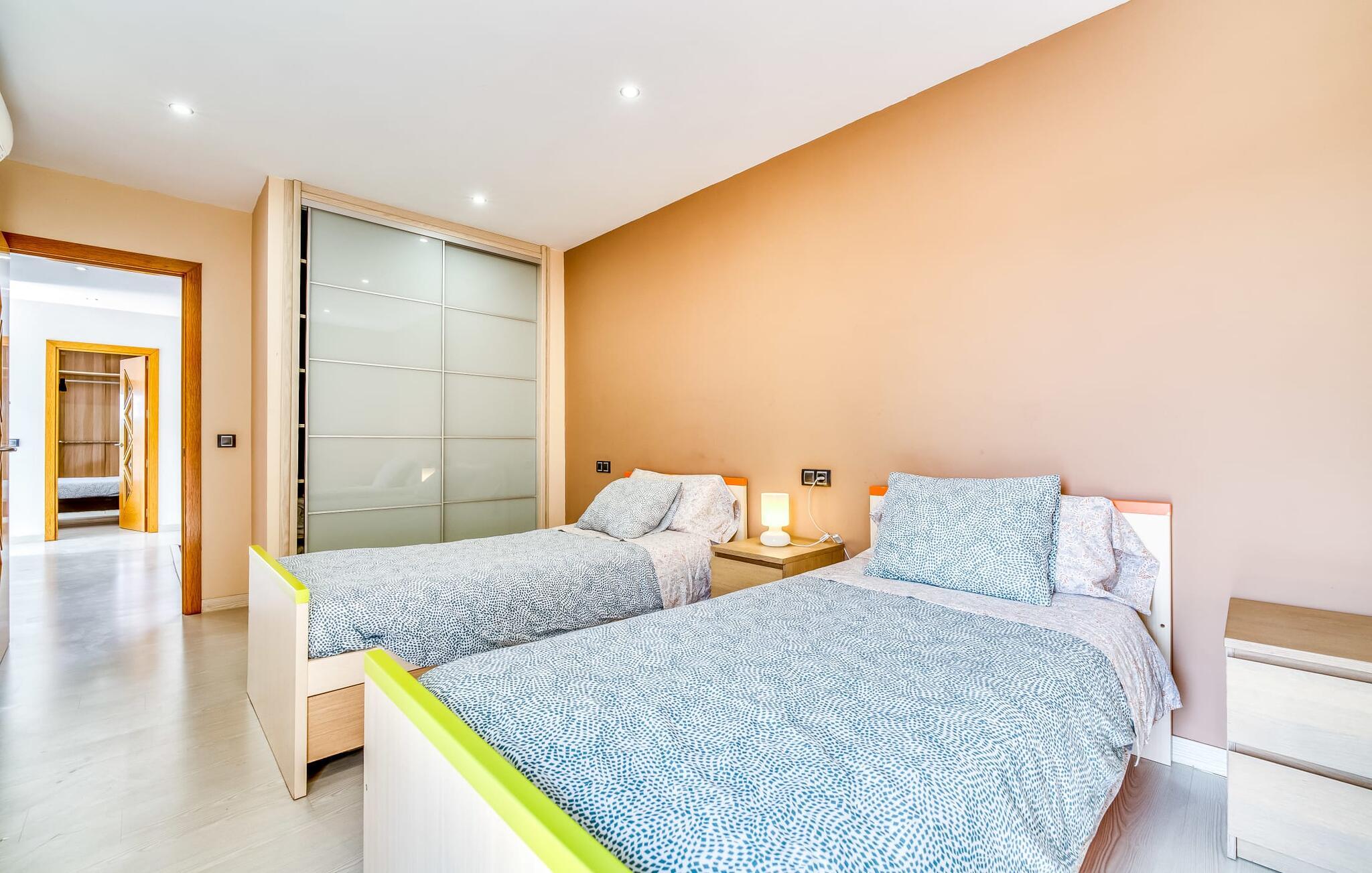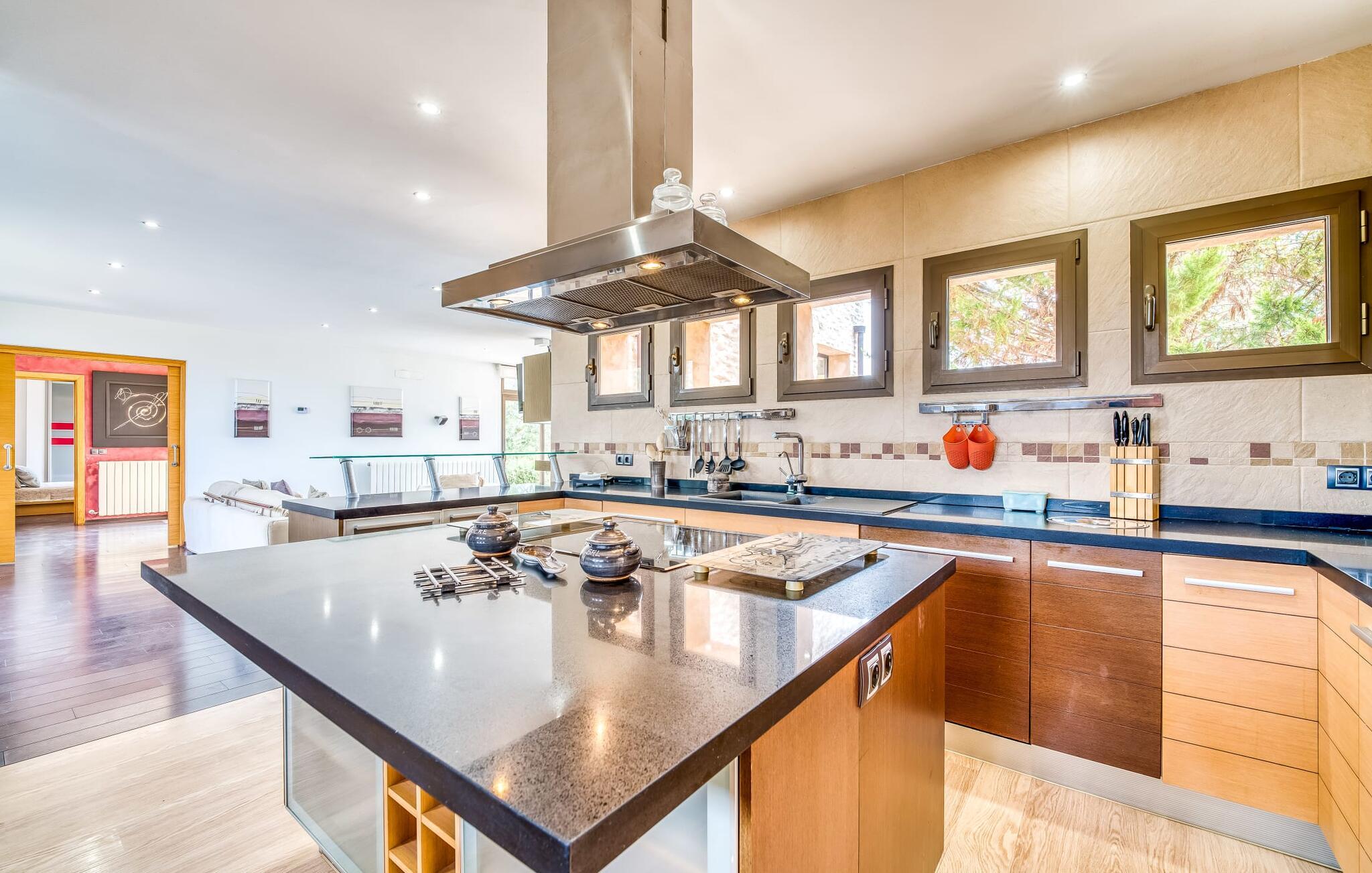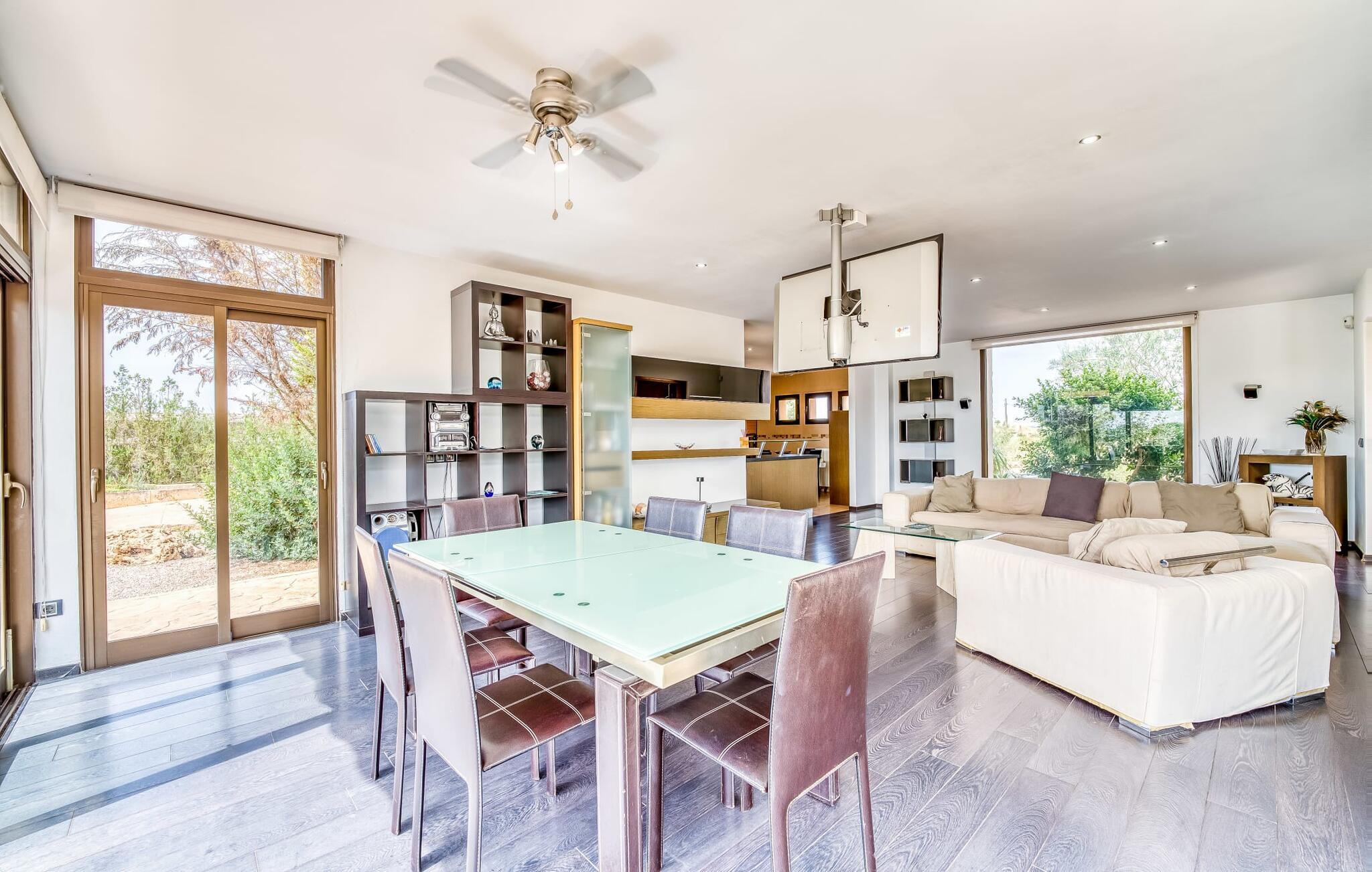 Villa "Son Virgili" tilbyder et moderne, familievenligt tilflugtssted med faciliteter af høj kvalitet, ideelt for dem, der søger både luksus og komfort. Denne sandstensfarvede villa er opdelt i kubiske sektioner og har gulv-til-loft-vinduer, der tilbyder en betagende udsigt over den omkringliggende natur. Altanerne byder på panoramaudsigt, mens udendørsarealet er velegnet til både voksne og børn. En rummelig legeplads inviterer børn til at lege, og den ovale pool med brede trin for nem adgang er ideel for alle aldre. Solterrassen, der er udstyret med liggestole og parasoller, byder på masser af plads til at slappe af. Et afslapningsområde omgivet af stenmure tilbyder privatliv og beskyttelse mod vinden, mens en rolig hængekøje ved siden af huset er perfekt til et roligt tilflugtssted. Indvendigt er villaens moderne design både rummelig og indbydende. Stueetagen i åbent plan har et komfortabelt opholdsområde, en stilfuld spiseplads og et køkken af høj kvalitet med ø, perfekt til tilberedning af måltider. Børneværelset byder med sin legende gule og grønne indretning på to enkeltsenge, mens de to voksne soveværelser byder på masser af plads og opbevaring. Det store soveværelse har eget badeværelse, og de andre soveværelser deler badeværelse. Med sin rolige, rustikke beliggenhed lover "Son Virgili" en afslappende ferie for hele familien. Den moderne finca "Son Virgili" ligger i smukke landlige omgivelser nær byen Campos. Fra villaen kan I køre til smukke strande som Sa Rapita eller den naturlige sandstrand "Es Trenc". For shopping er Campos stedet at tage hen med et ugentligt marked, der finder sted hver torsdag og lørdag.